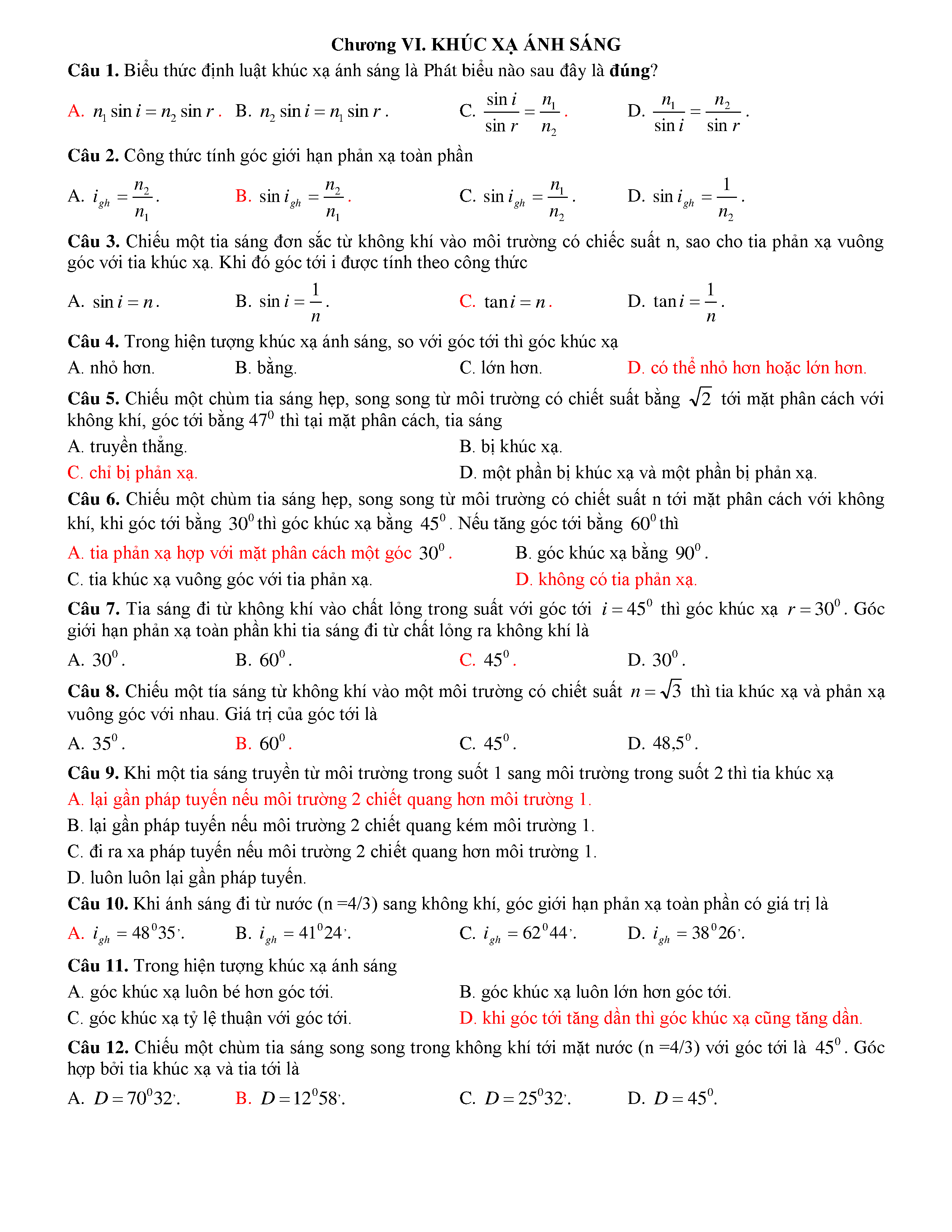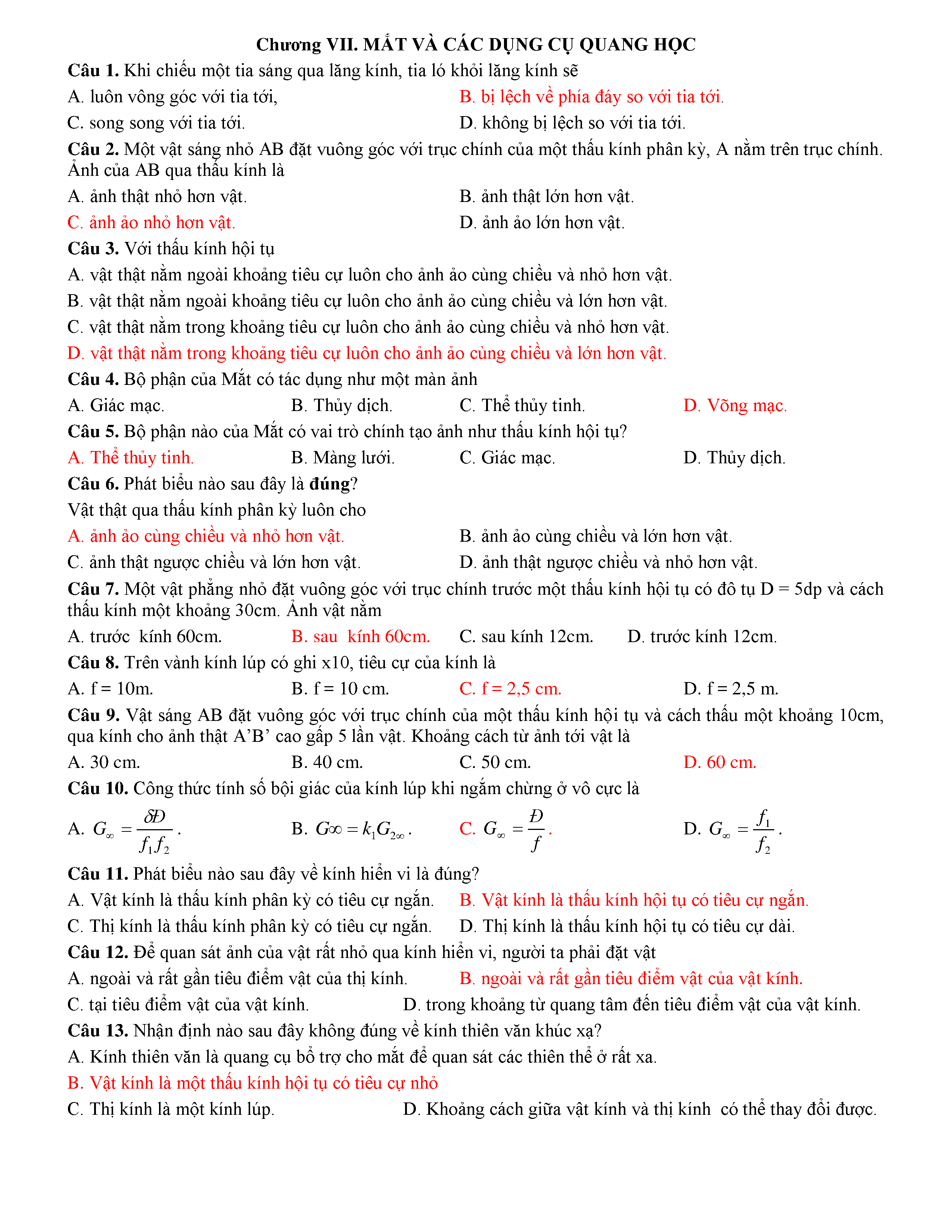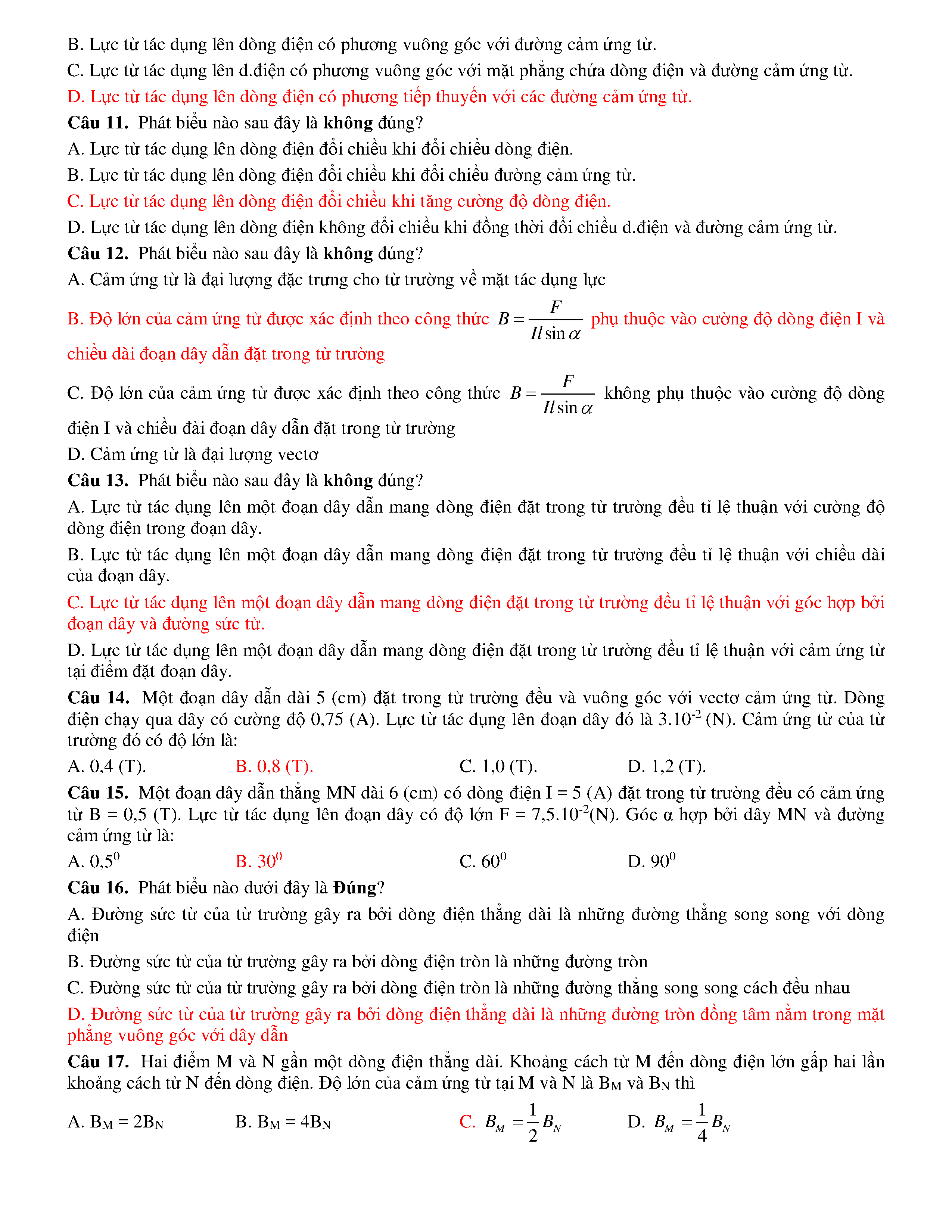 B. Bài tập ôn tập vật lý 11 học kỳ 2