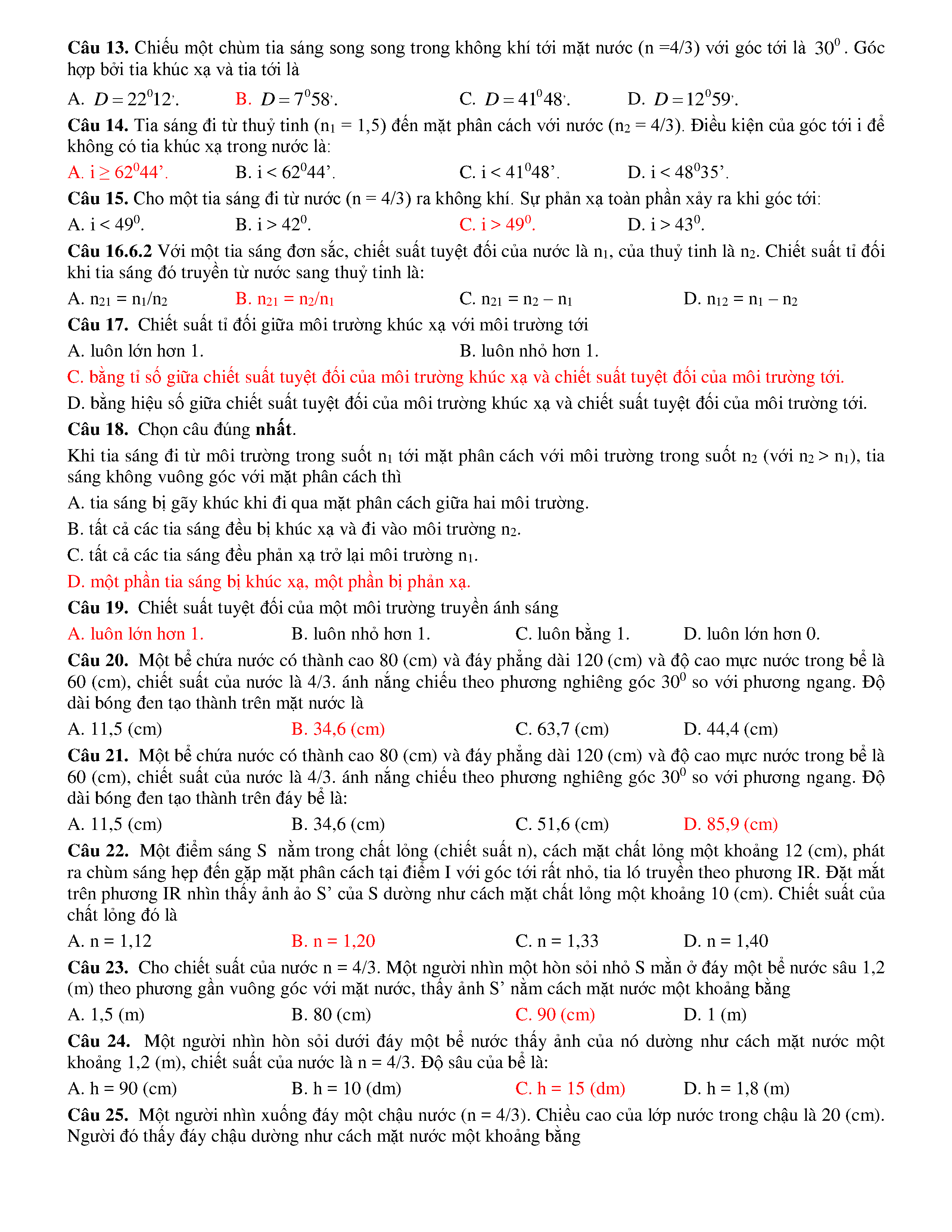 - Liên hệ giữa chiết suất và vận tốc ánh sáng