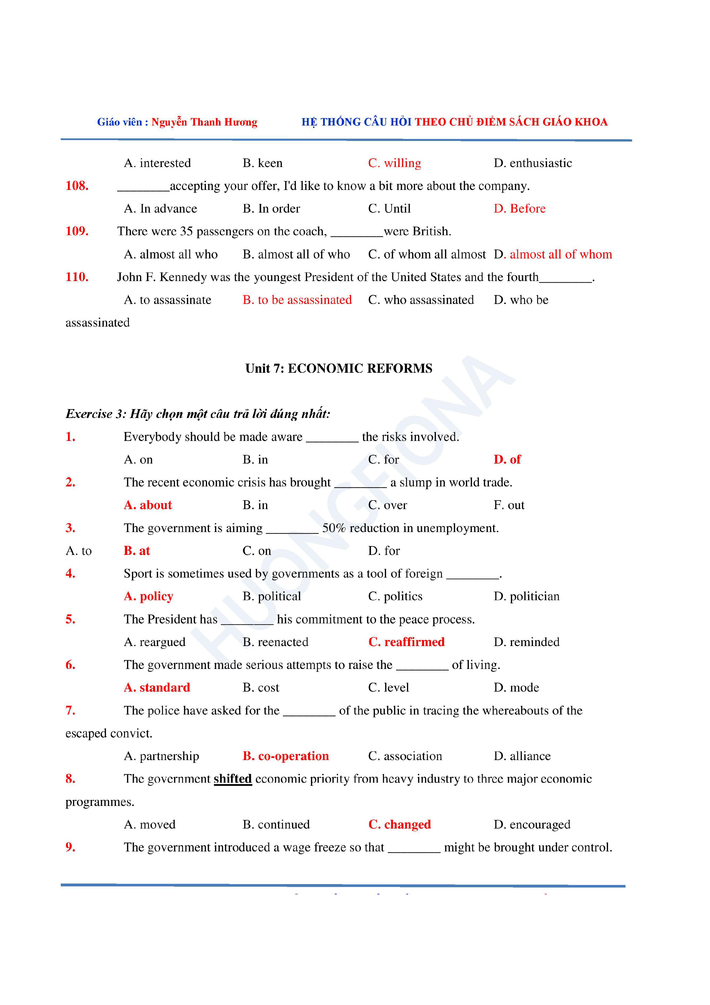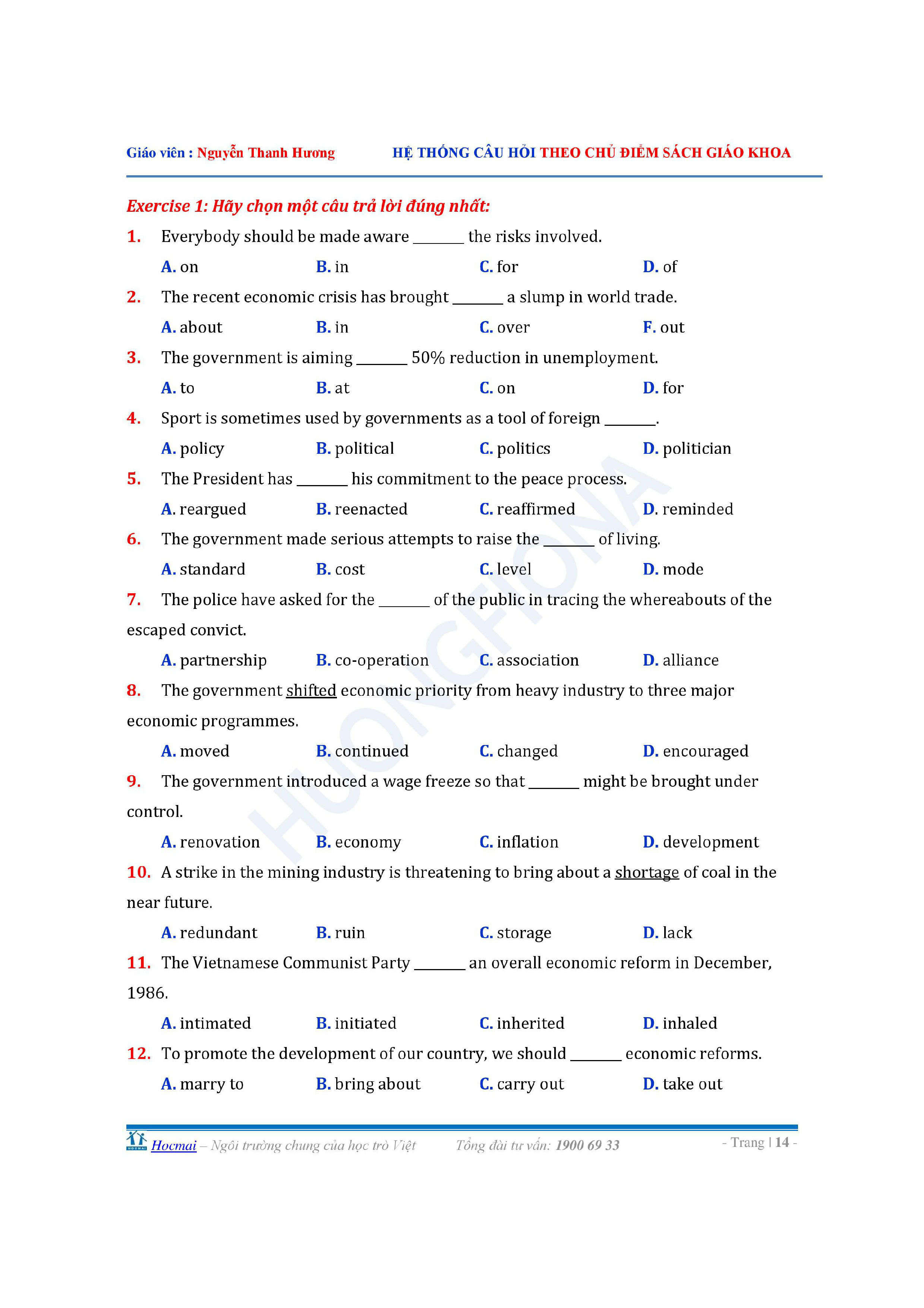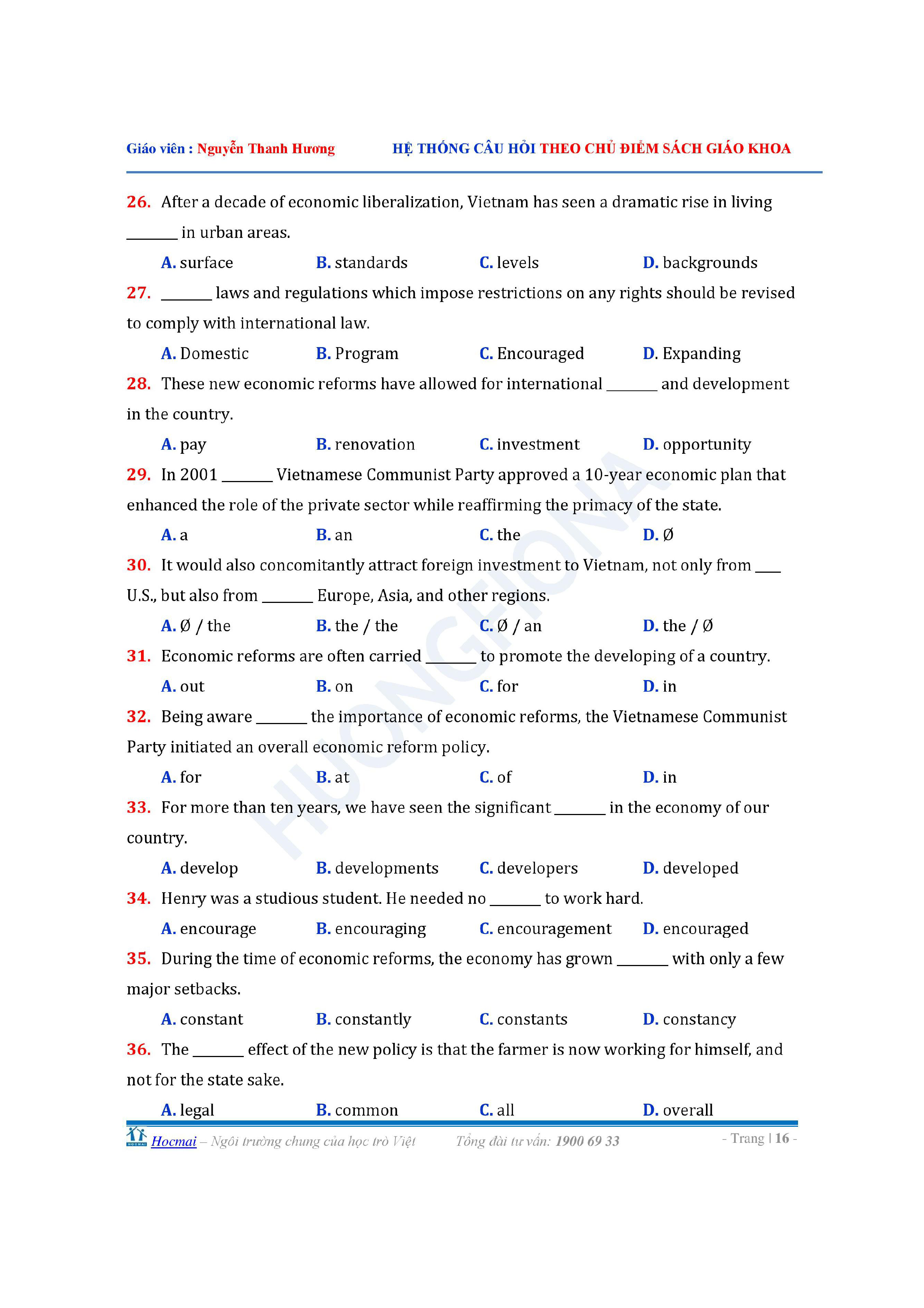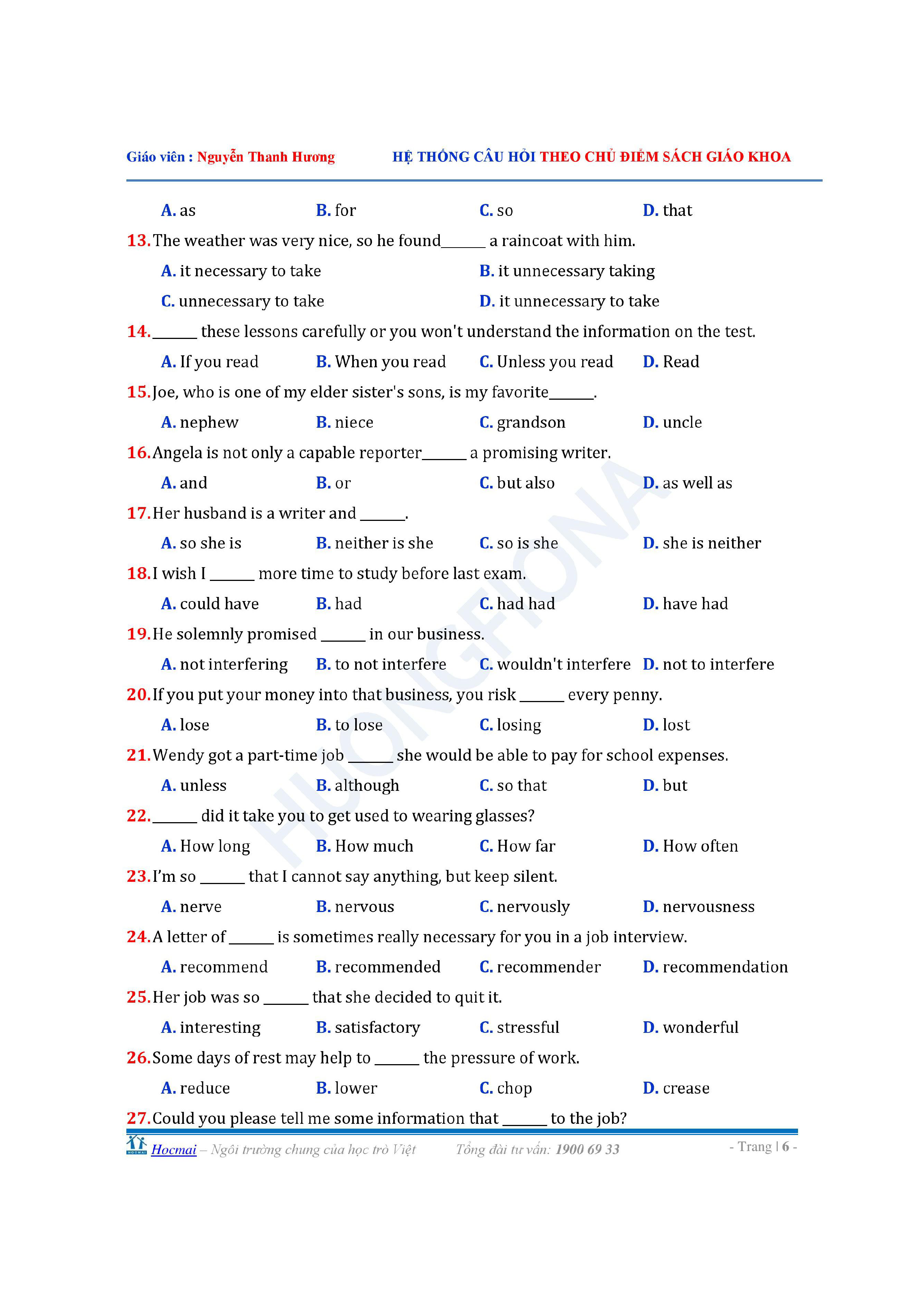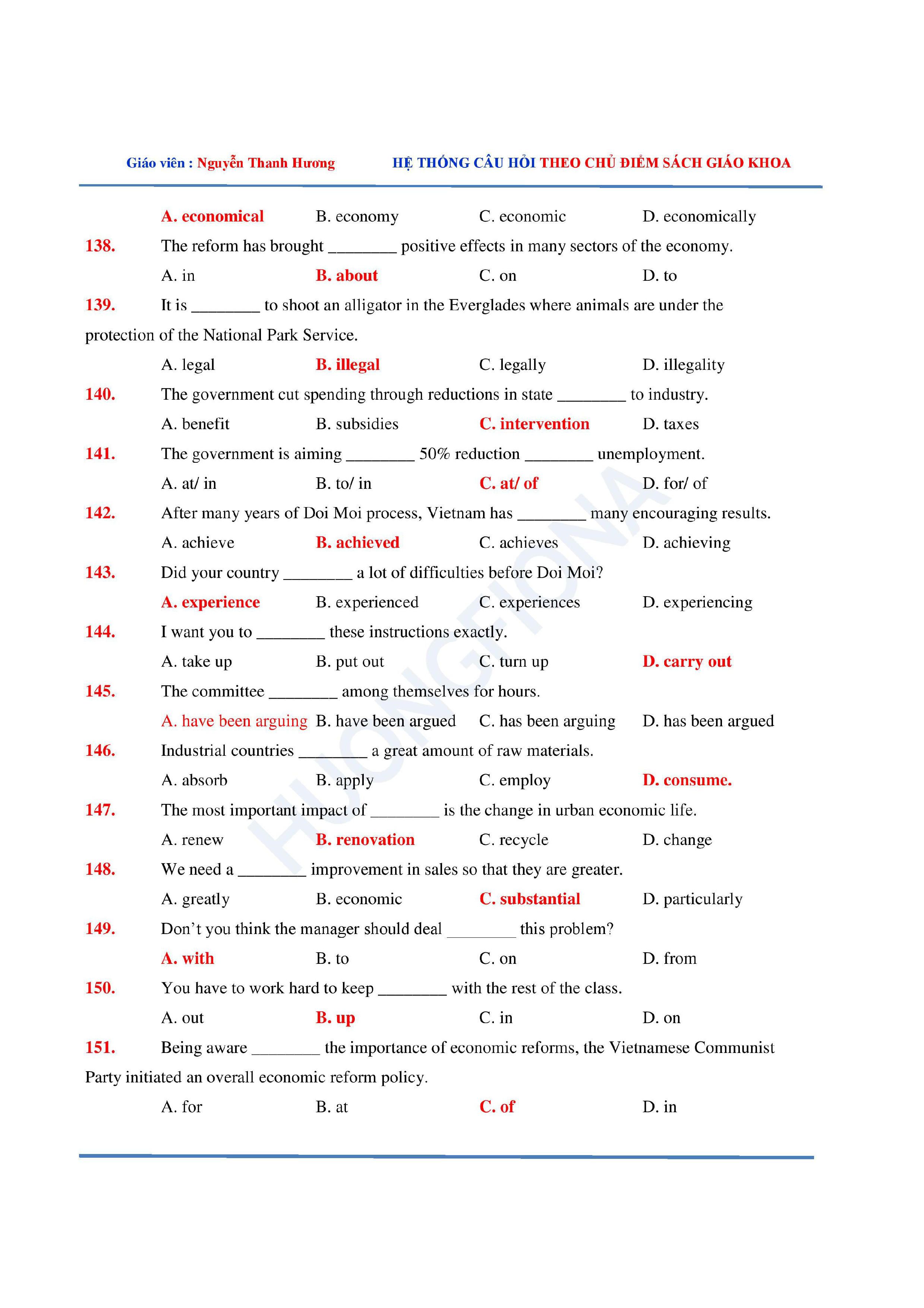 Câu hỏi trắc nghiệm Tiếng Anh theo từng chủ điểm (phần 2)