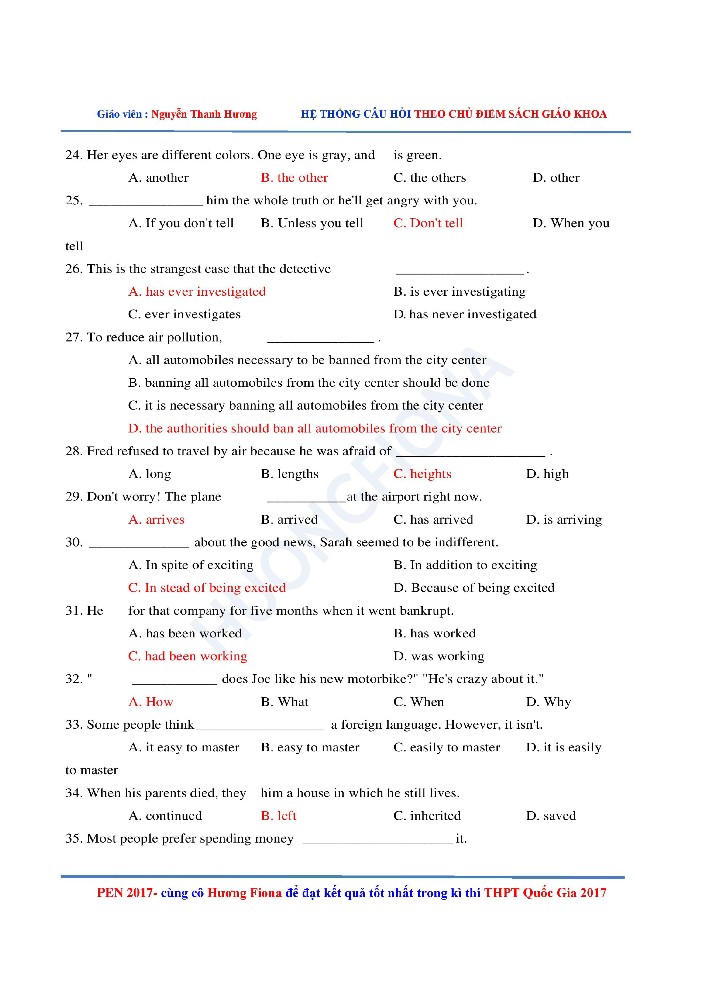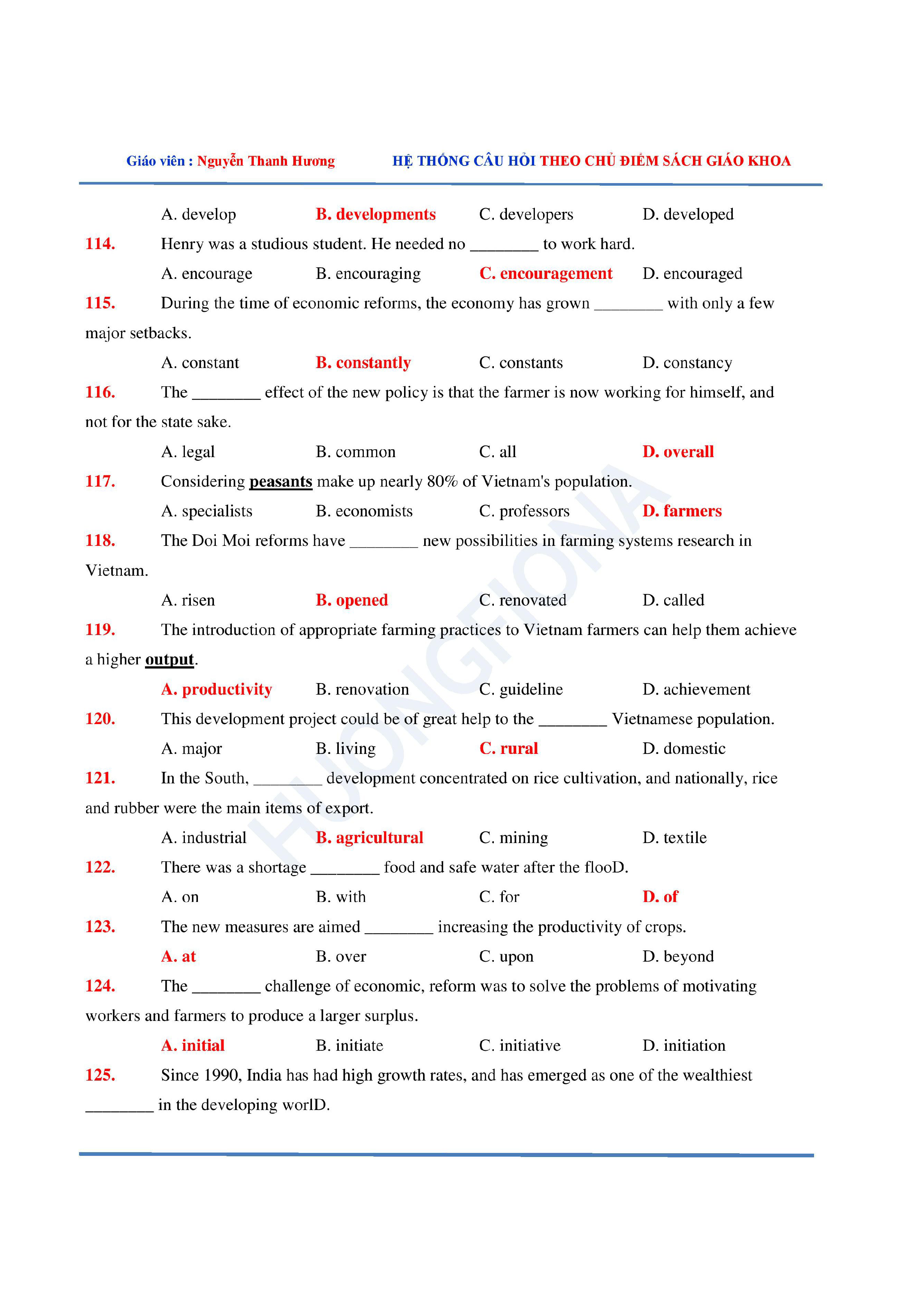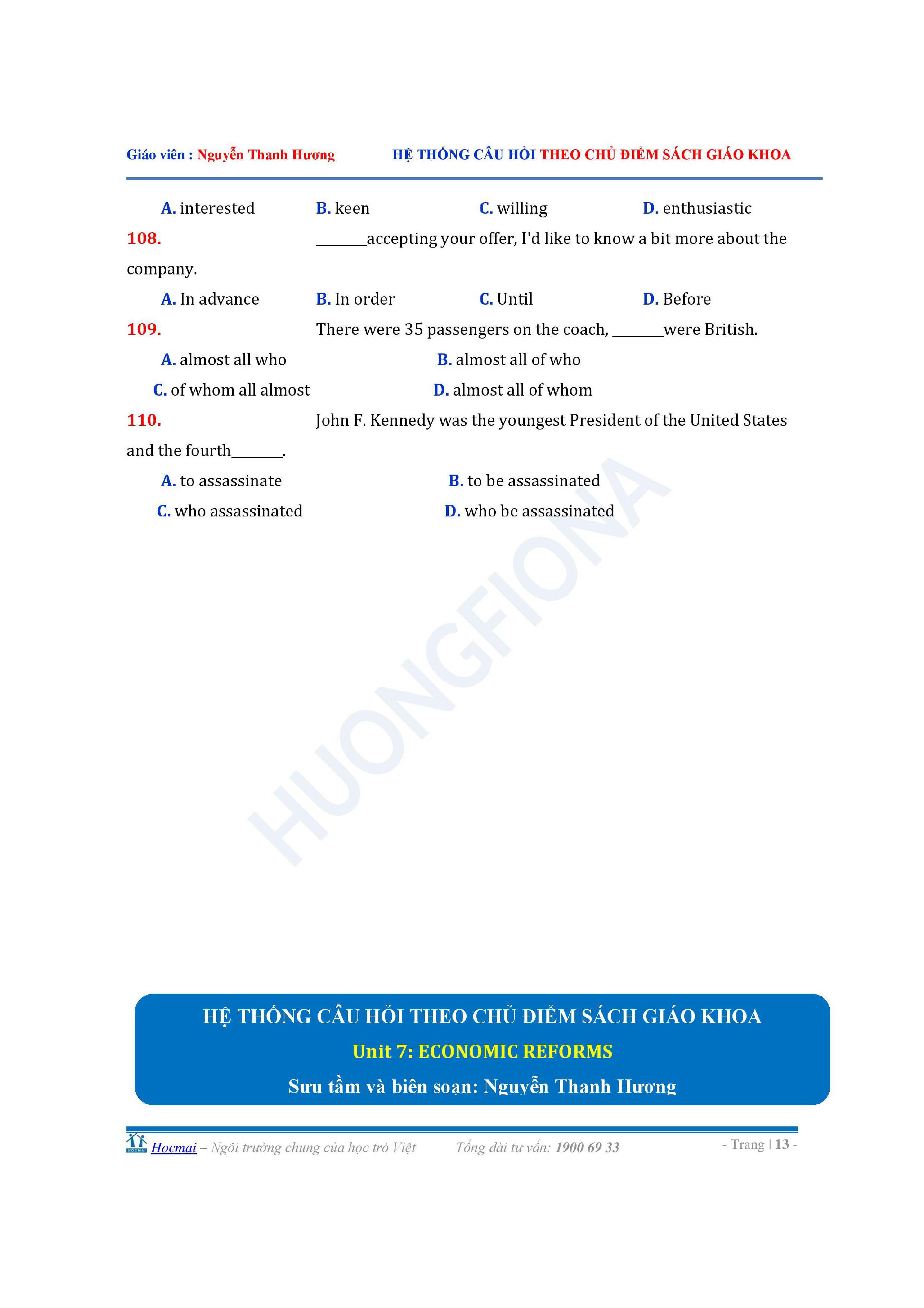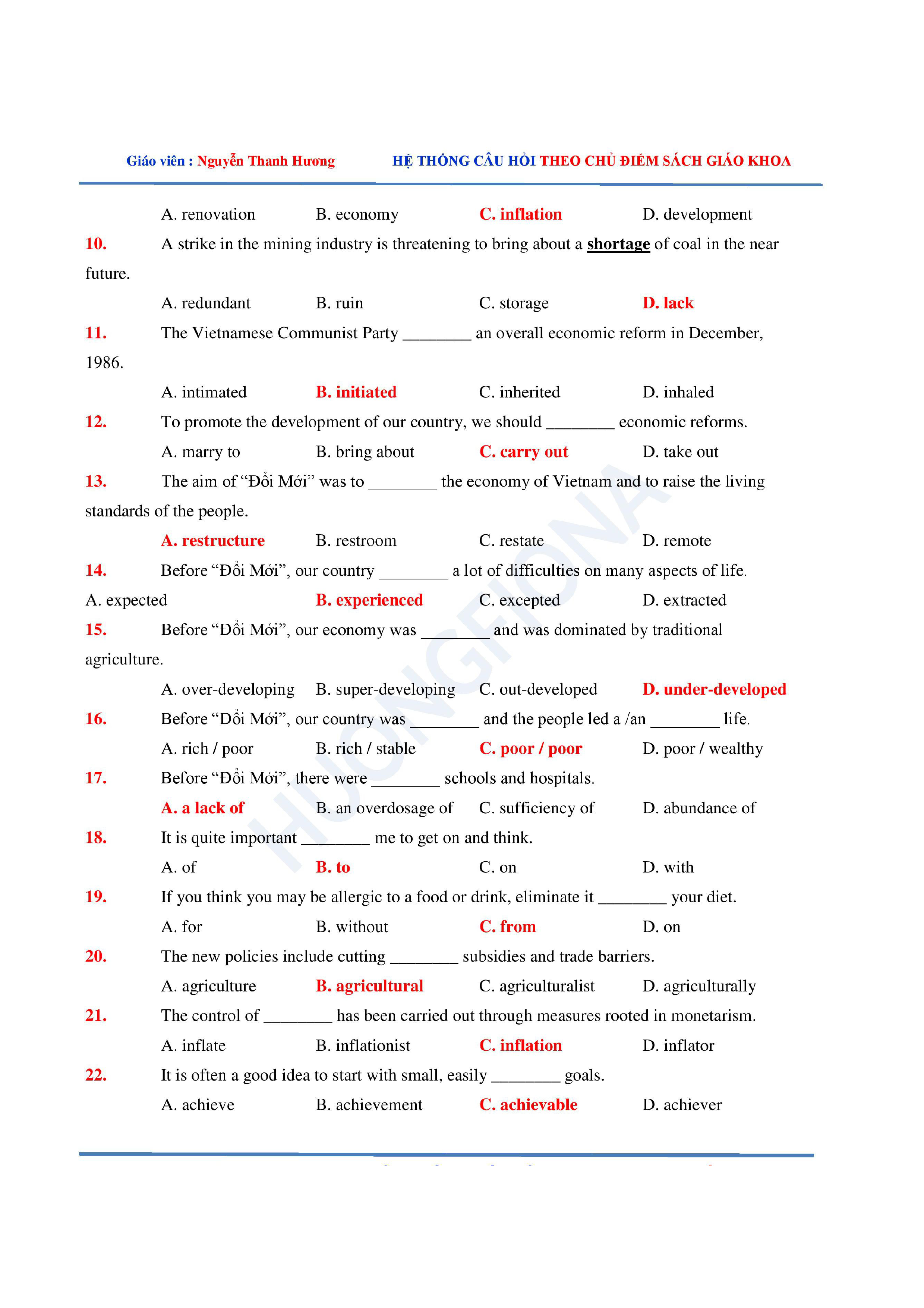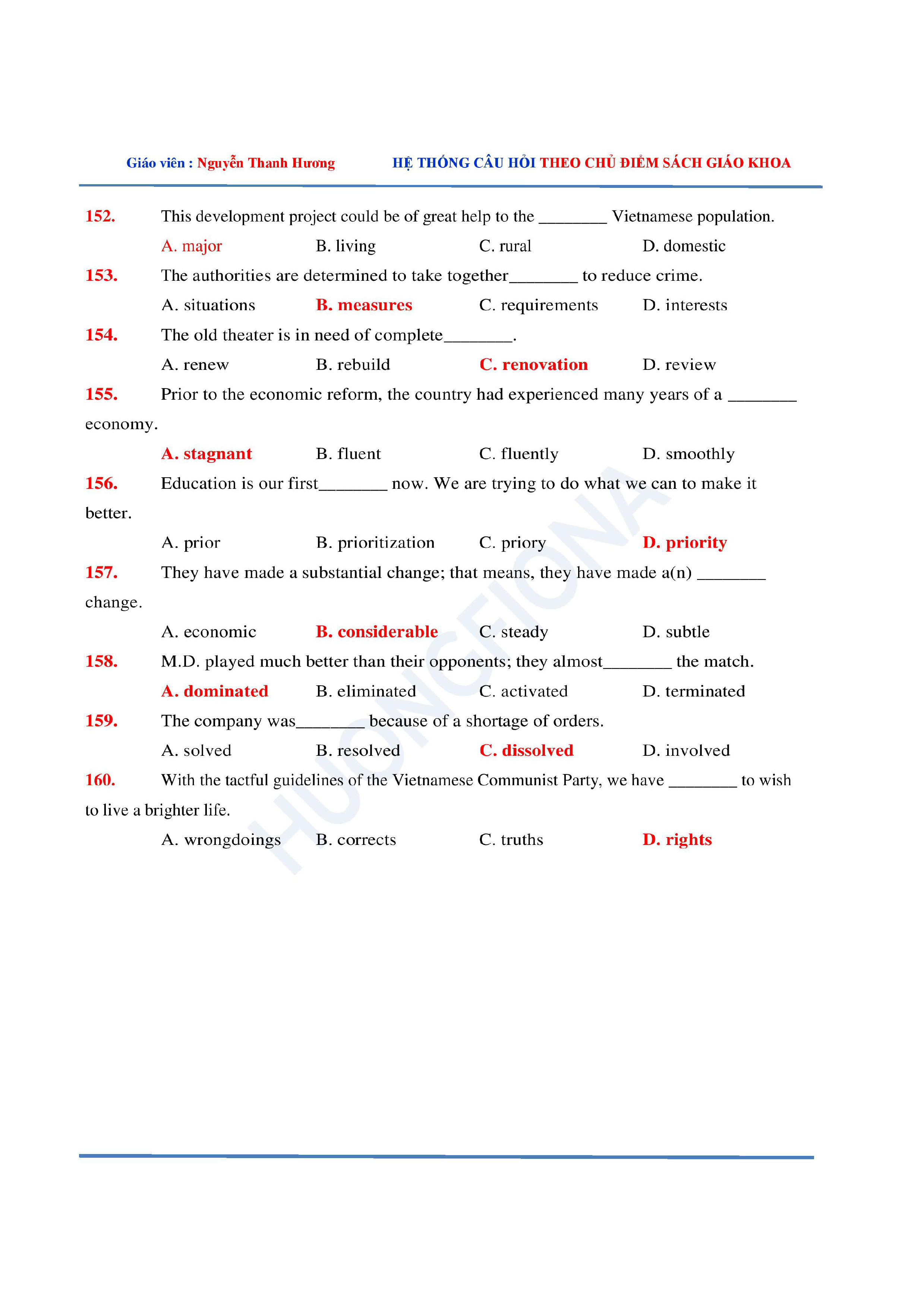 Câu hỏi trắc nghiệm Tiếng Anh theo từng chủ điểm (phần 2)