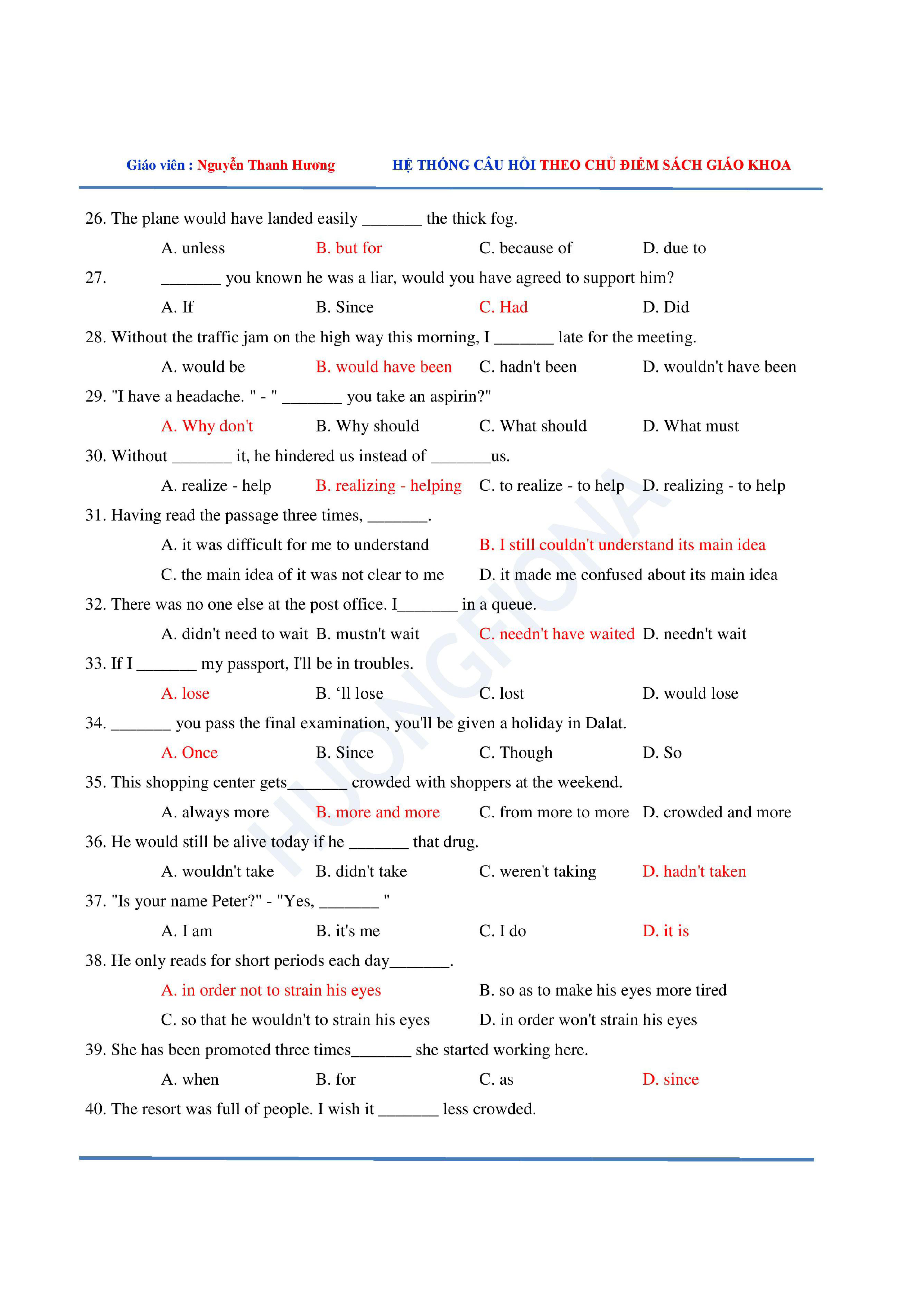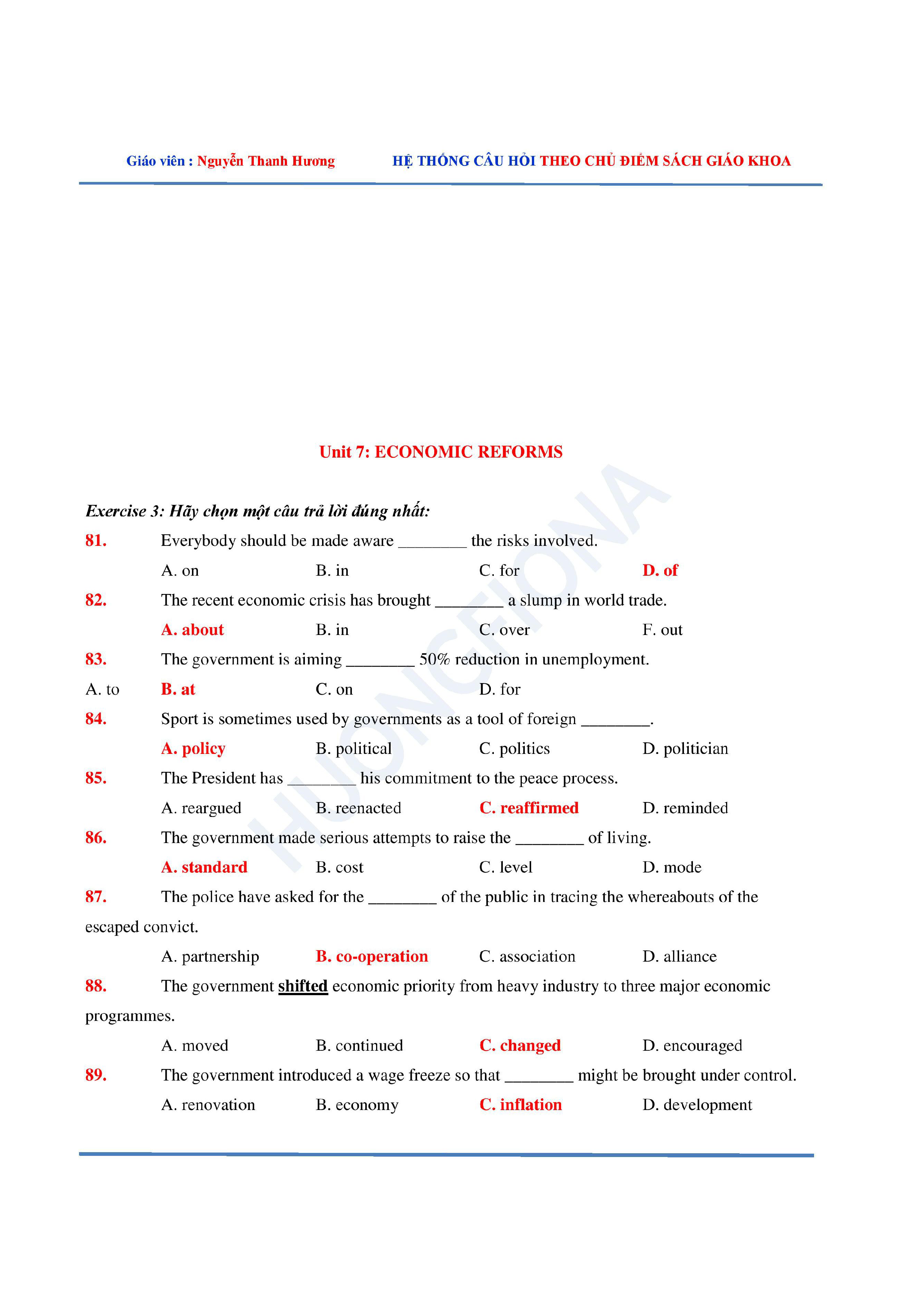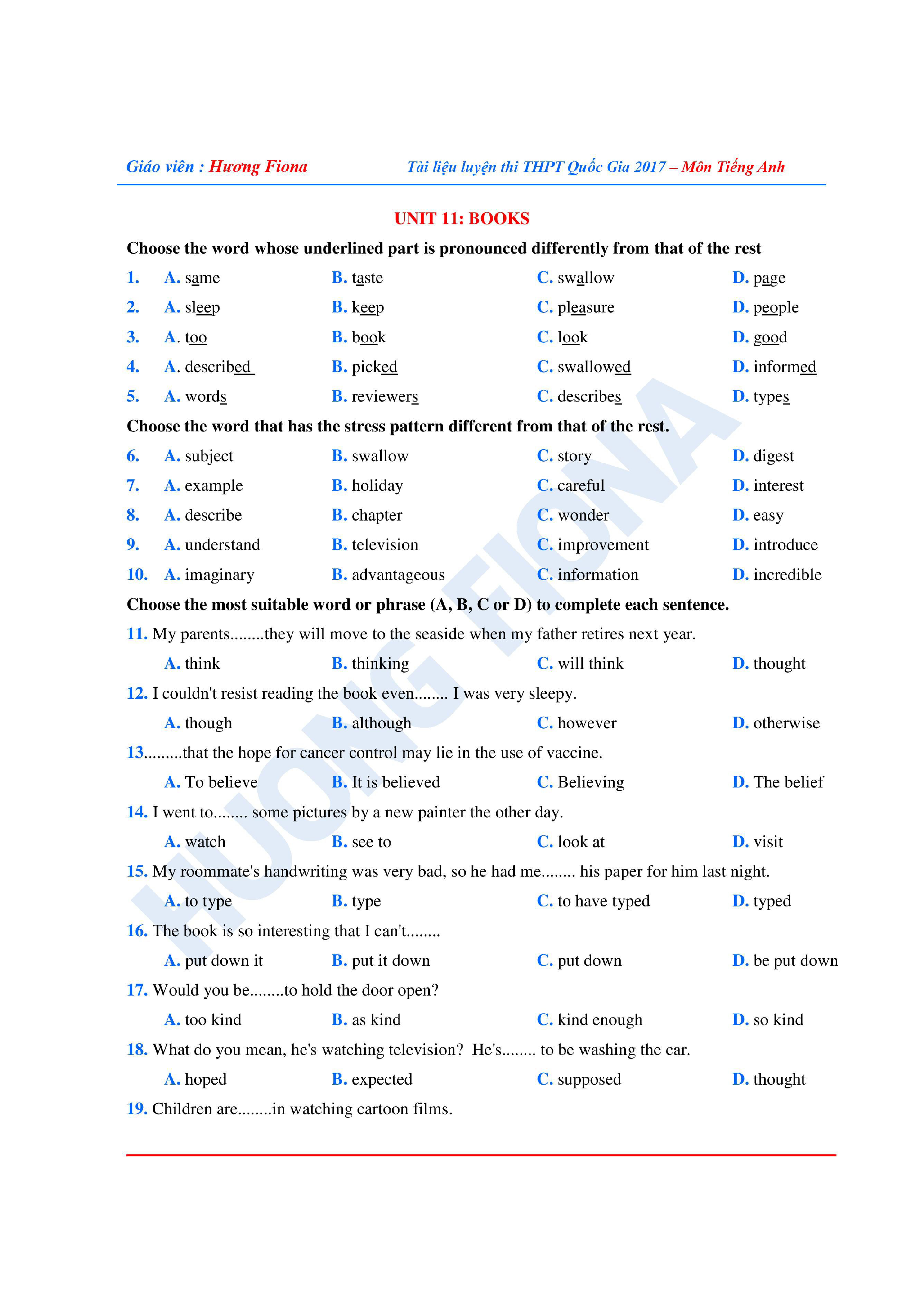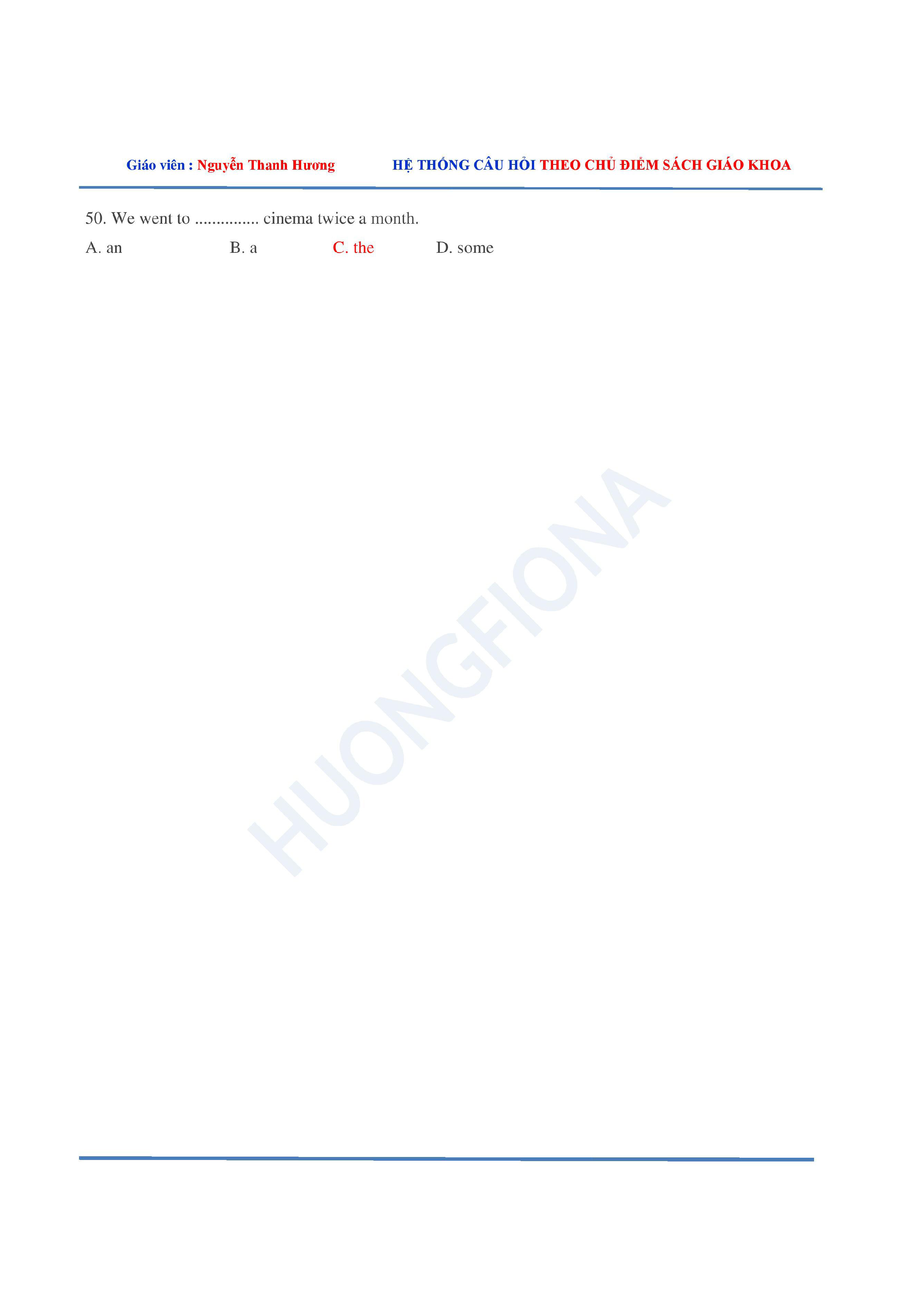 Câu hỏi trắc nghiệm Tiếng Anh theo từng chủ điểm (phần 2)