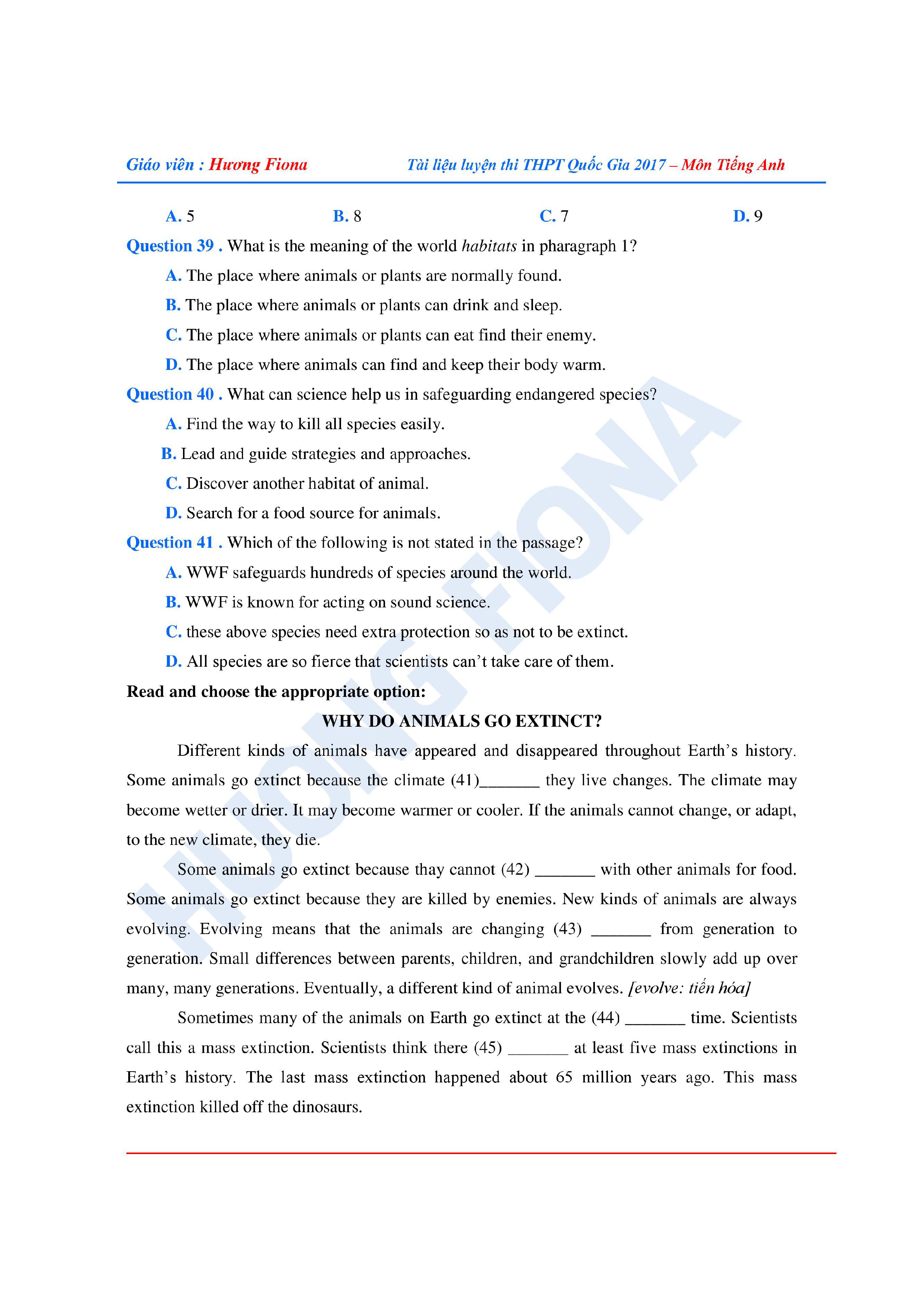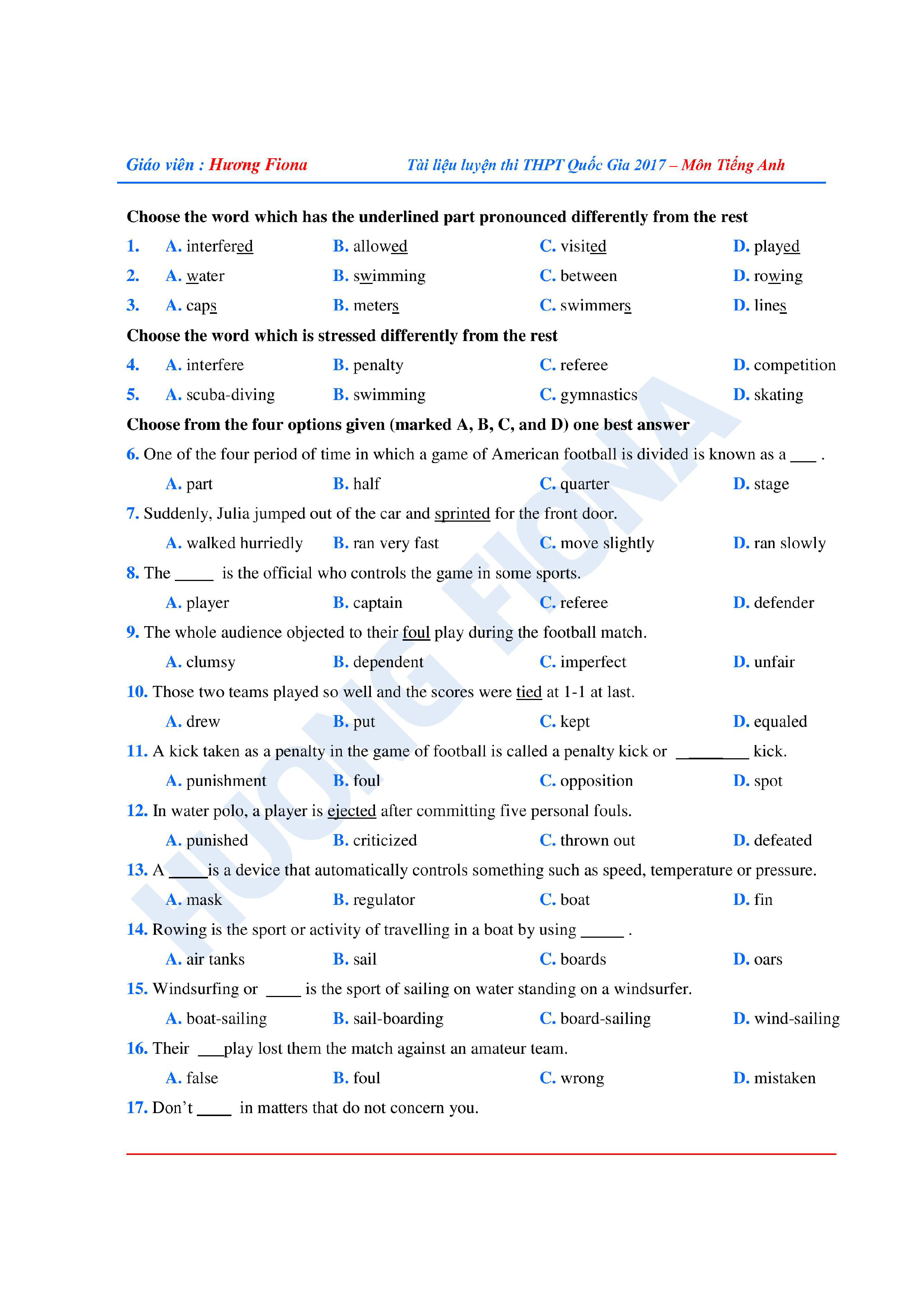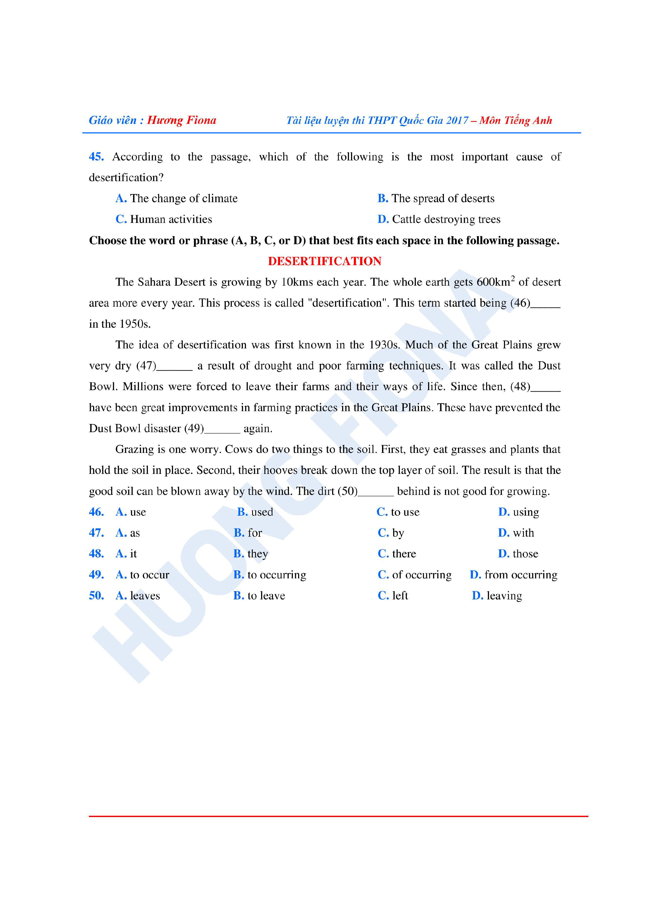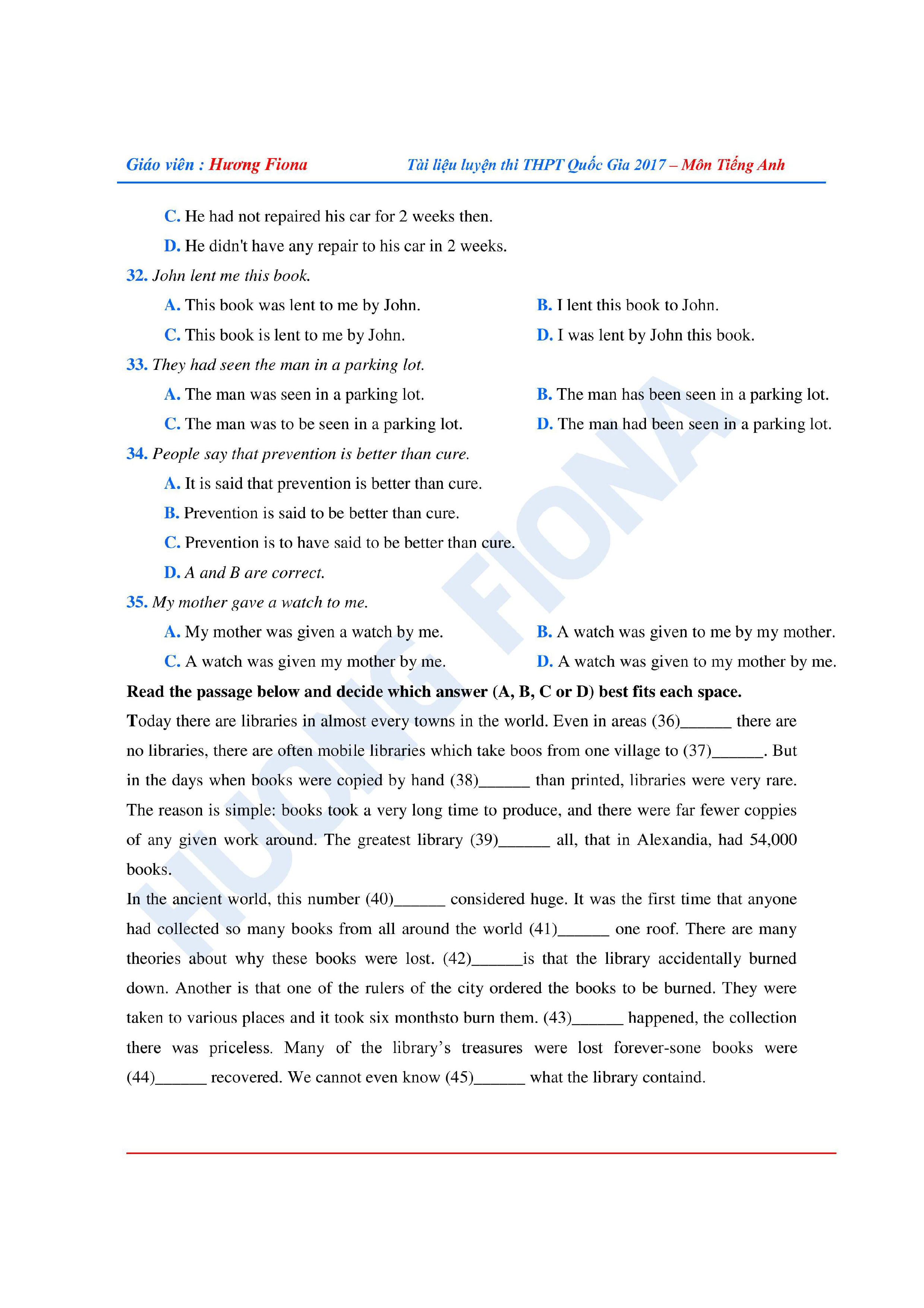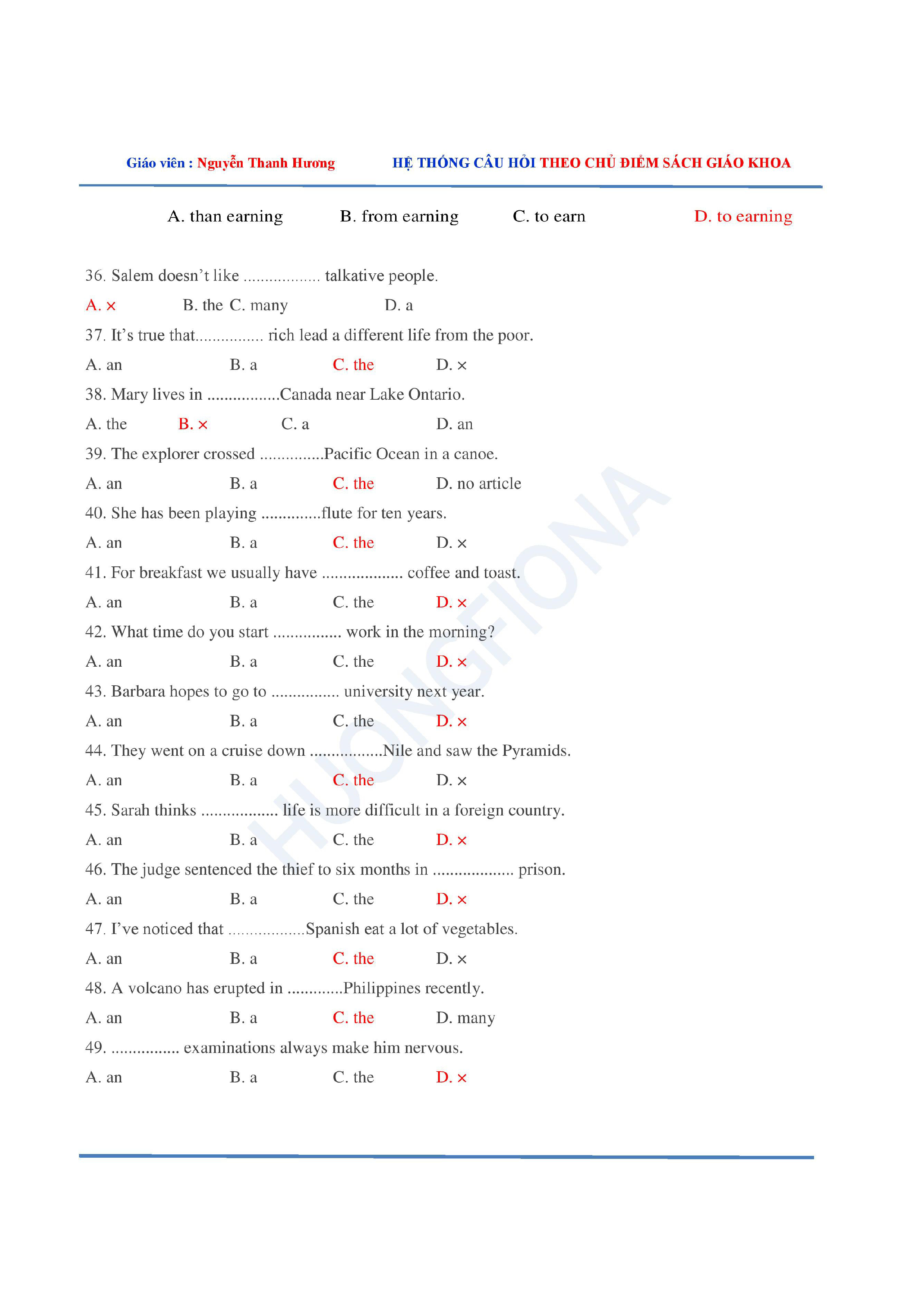 Câu hỏi trắc nghiệm Tiếng Anh theo từng chủ điểm (phần 2)