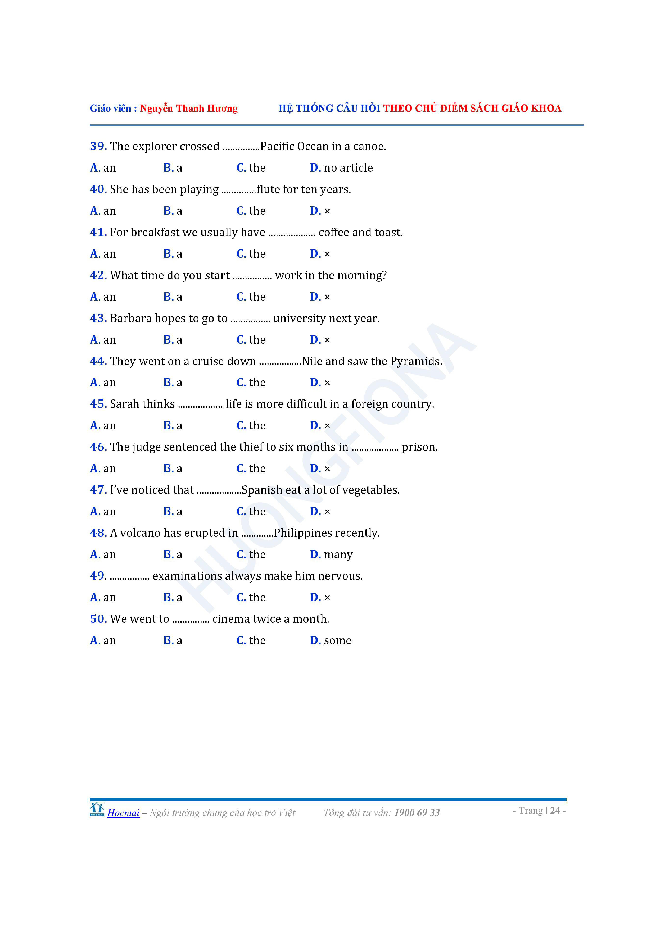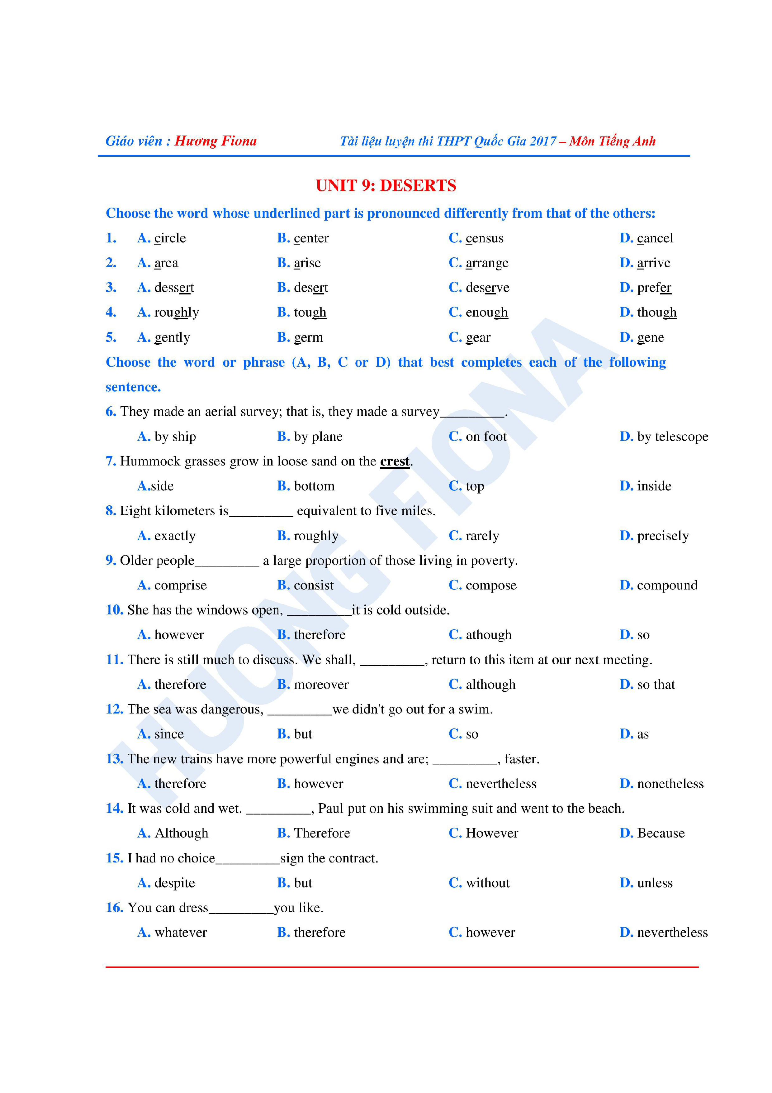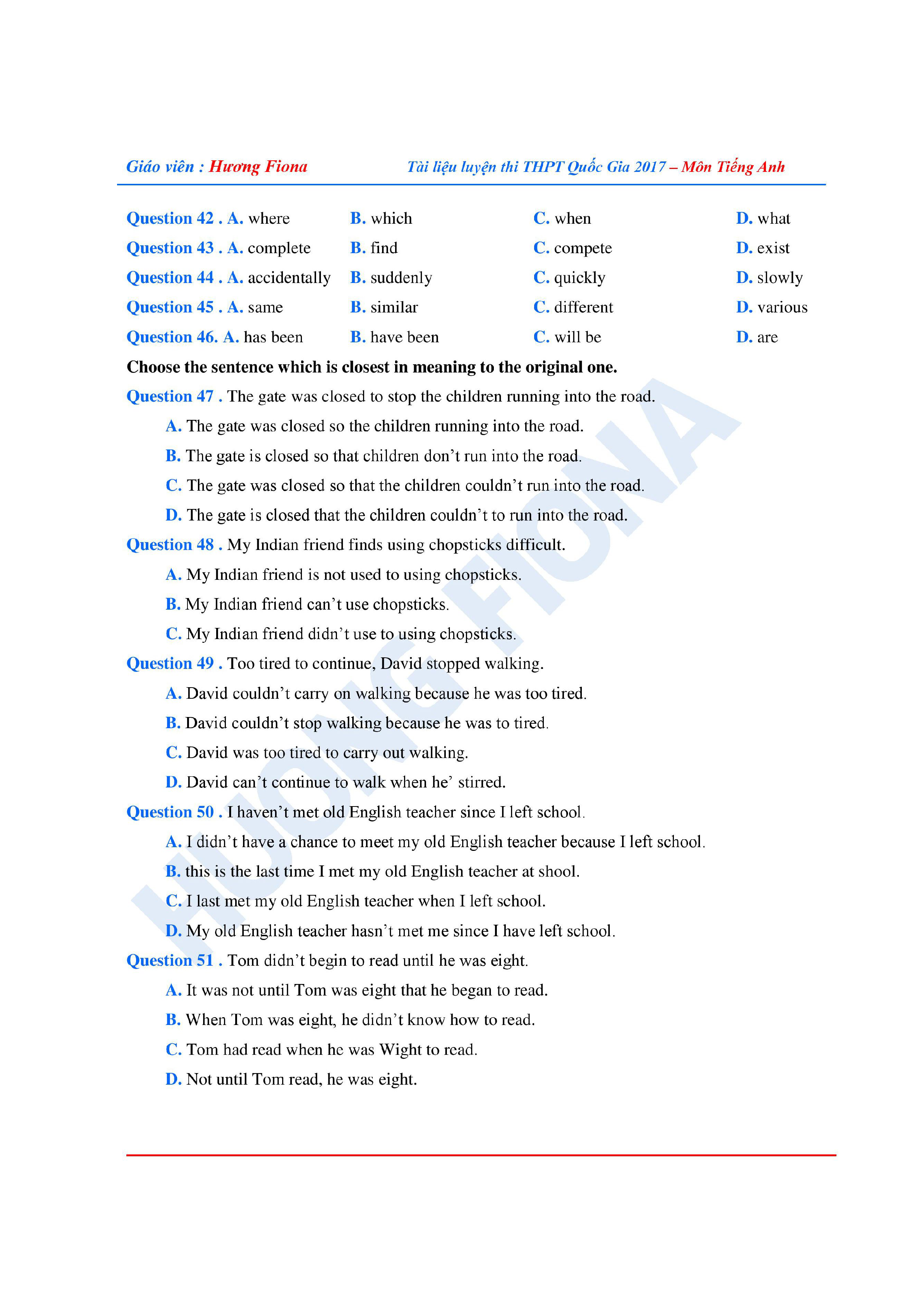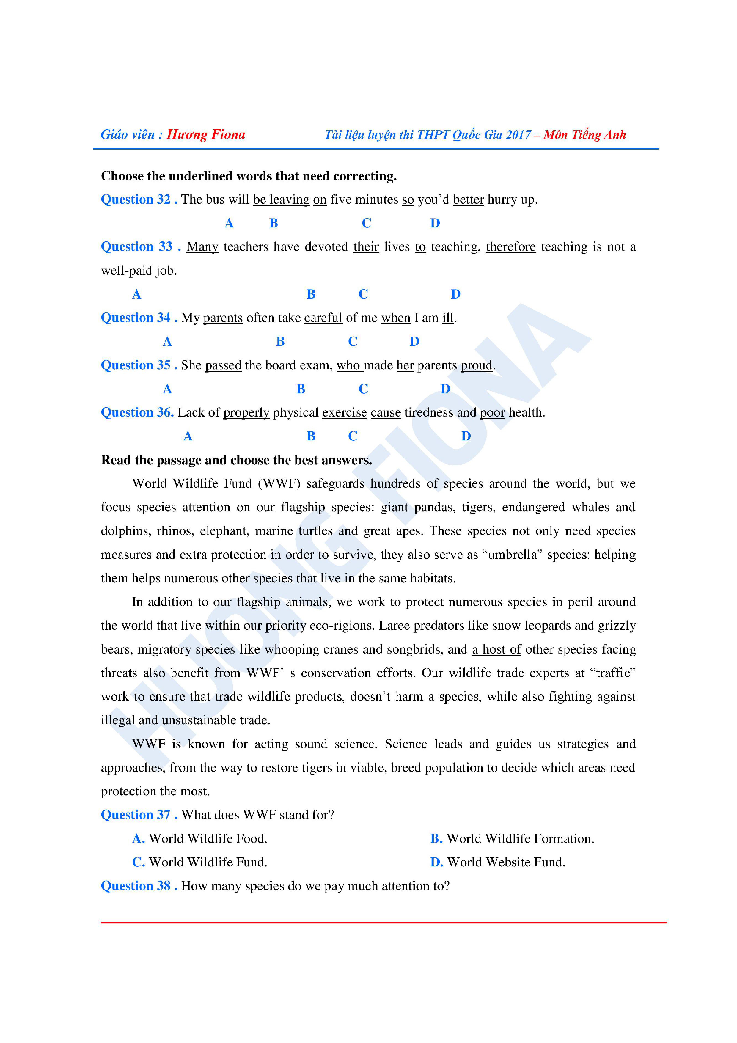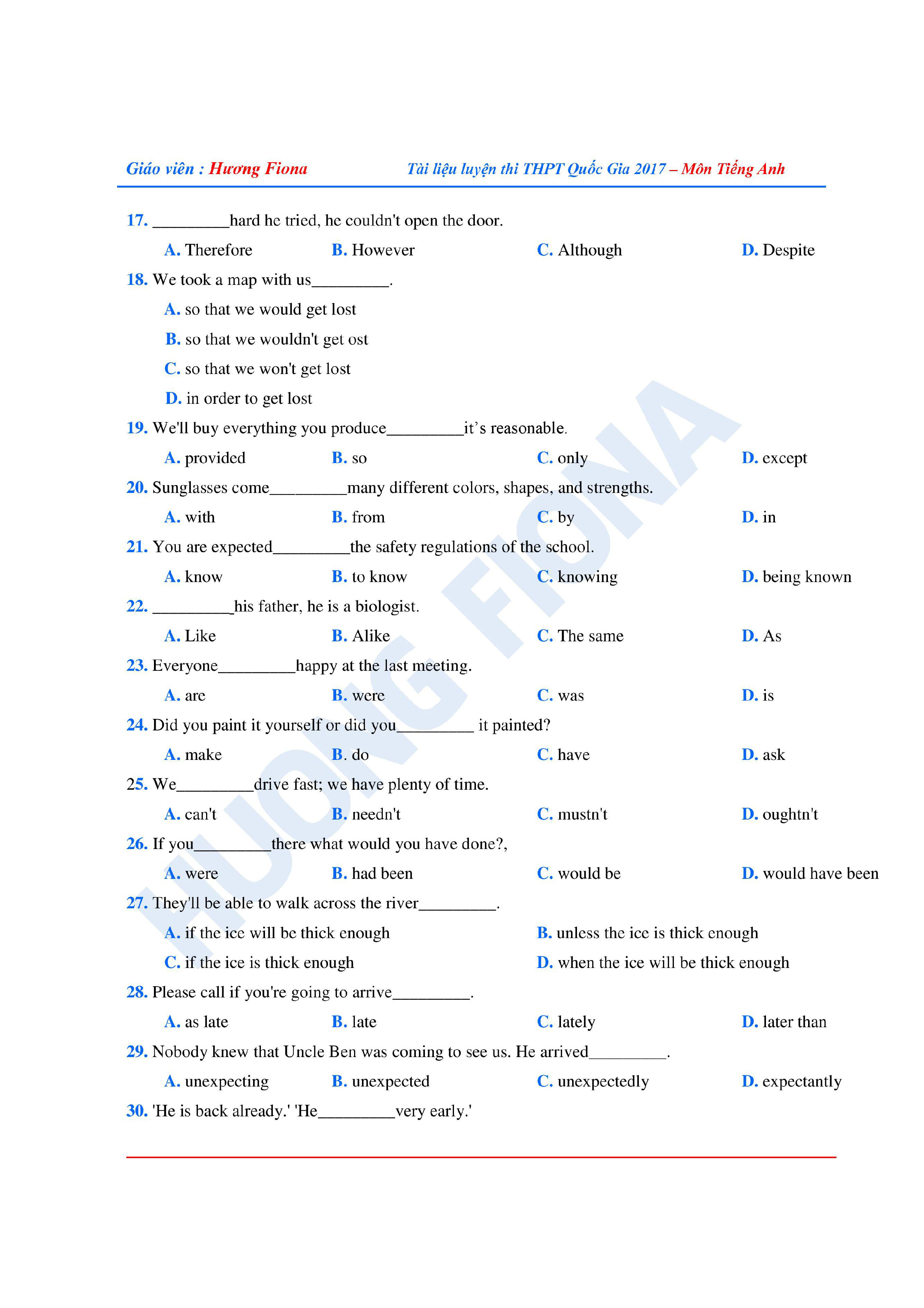 Câu hỏi trắc nghiệm Tiếng Anh theo từng chủ điểm (phần 2)