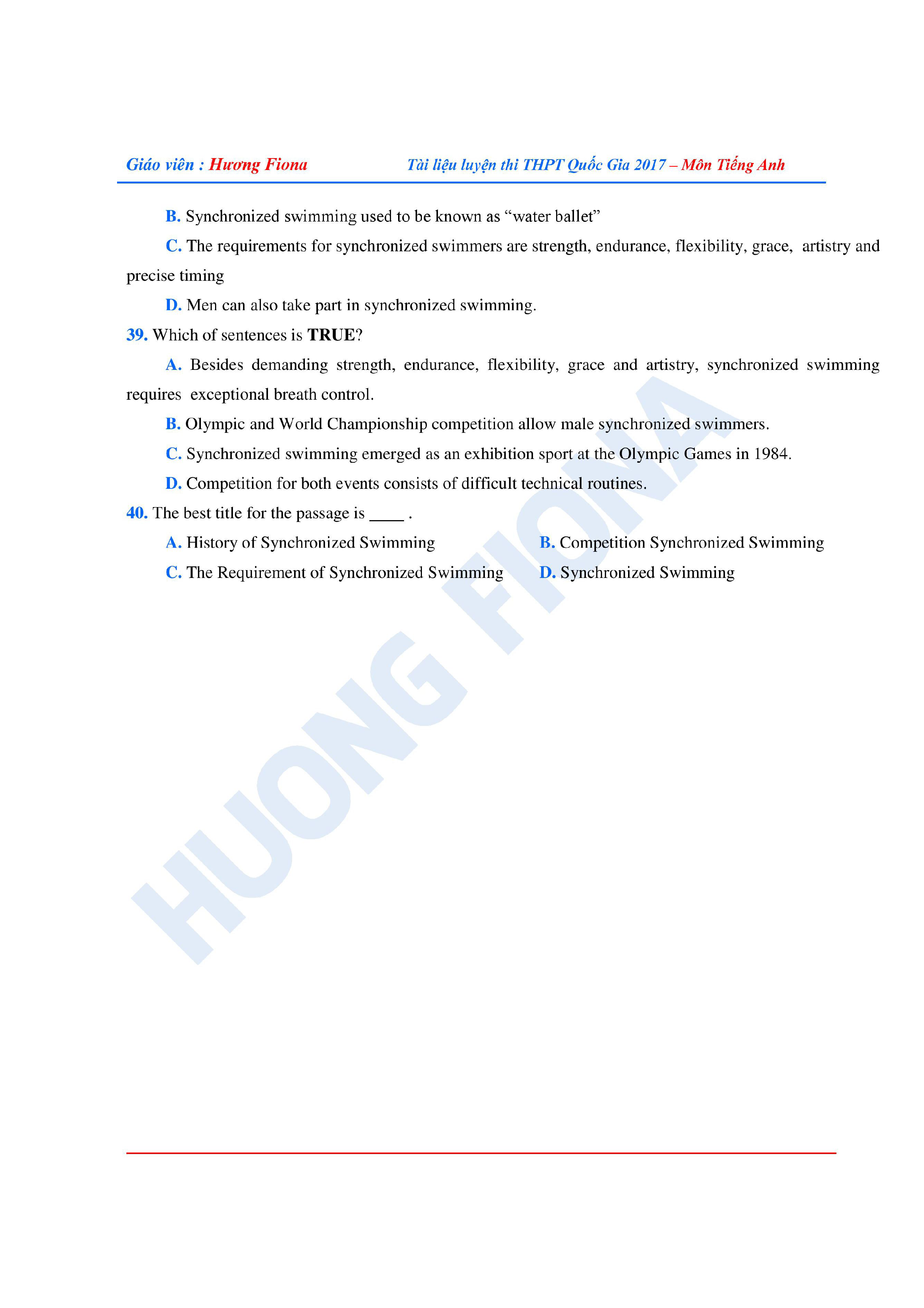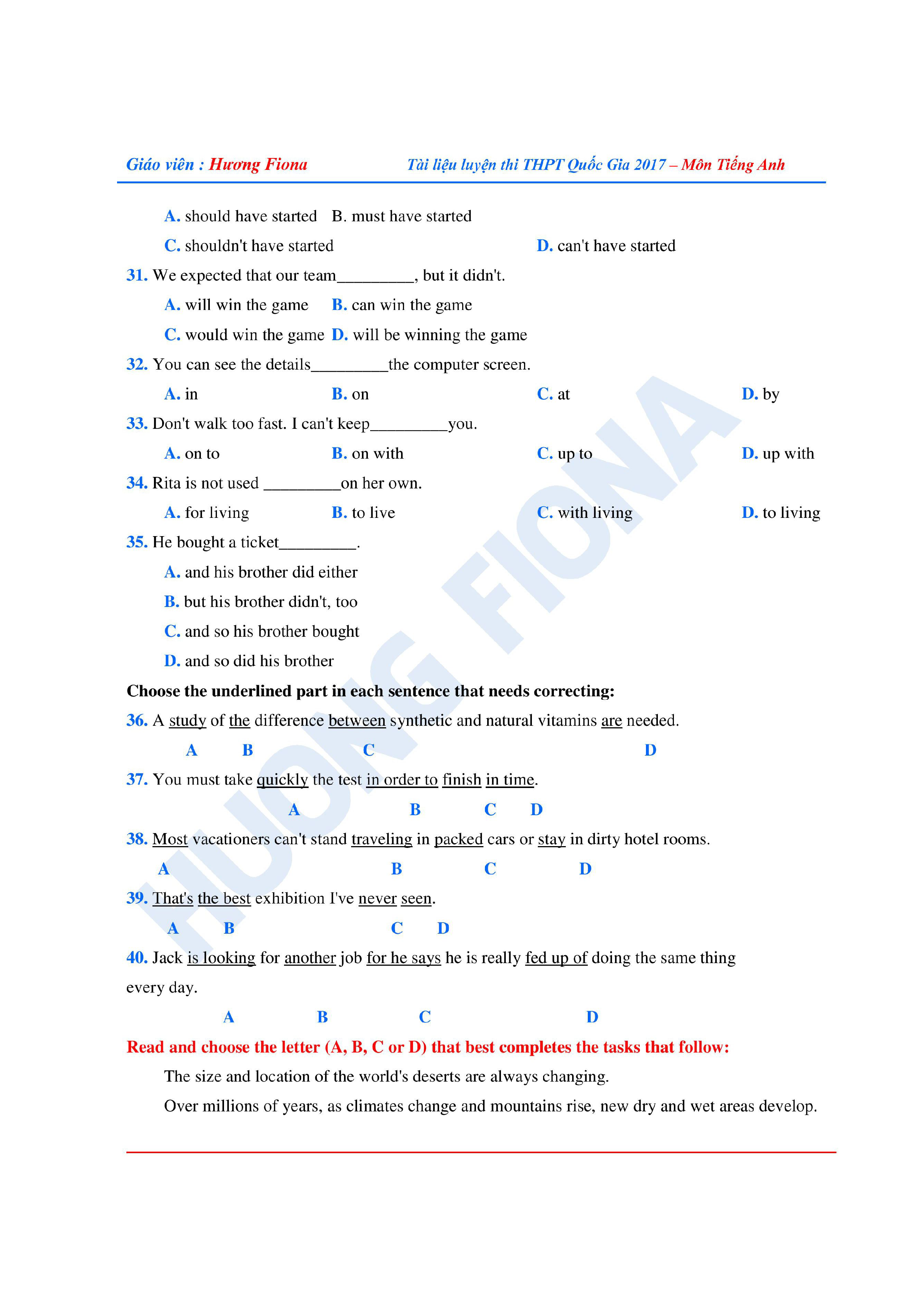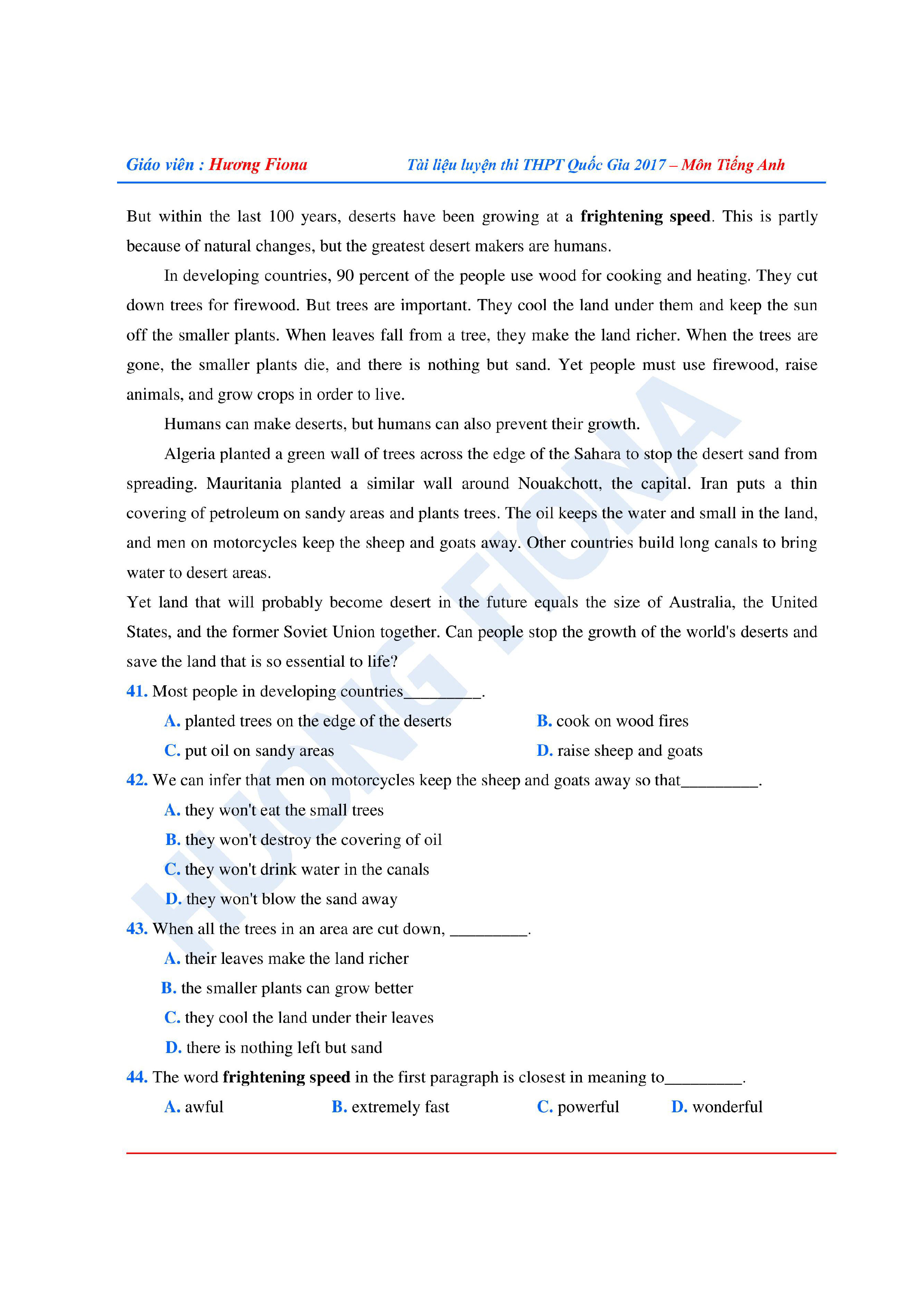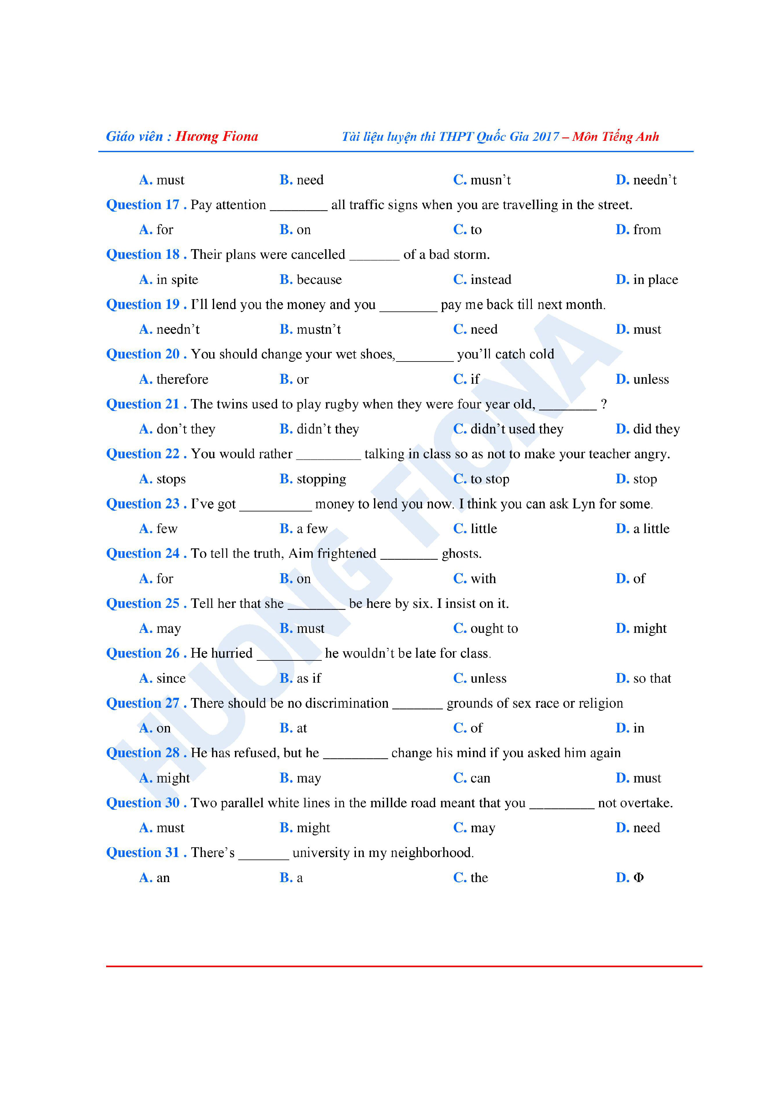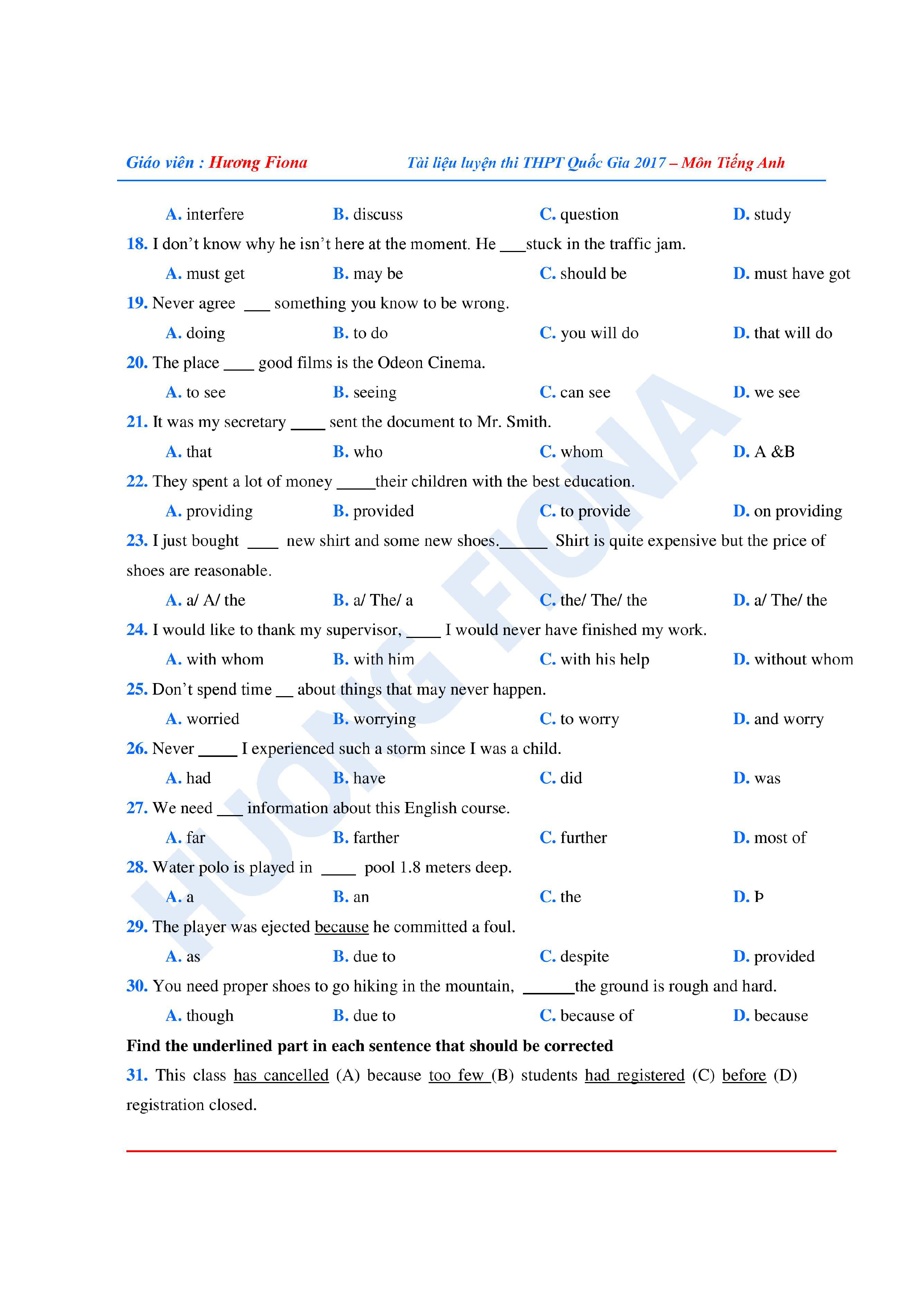 Câu hỏi trắc nghiệm Tiếng Anh theo từng chủ điểm (phần 2)
