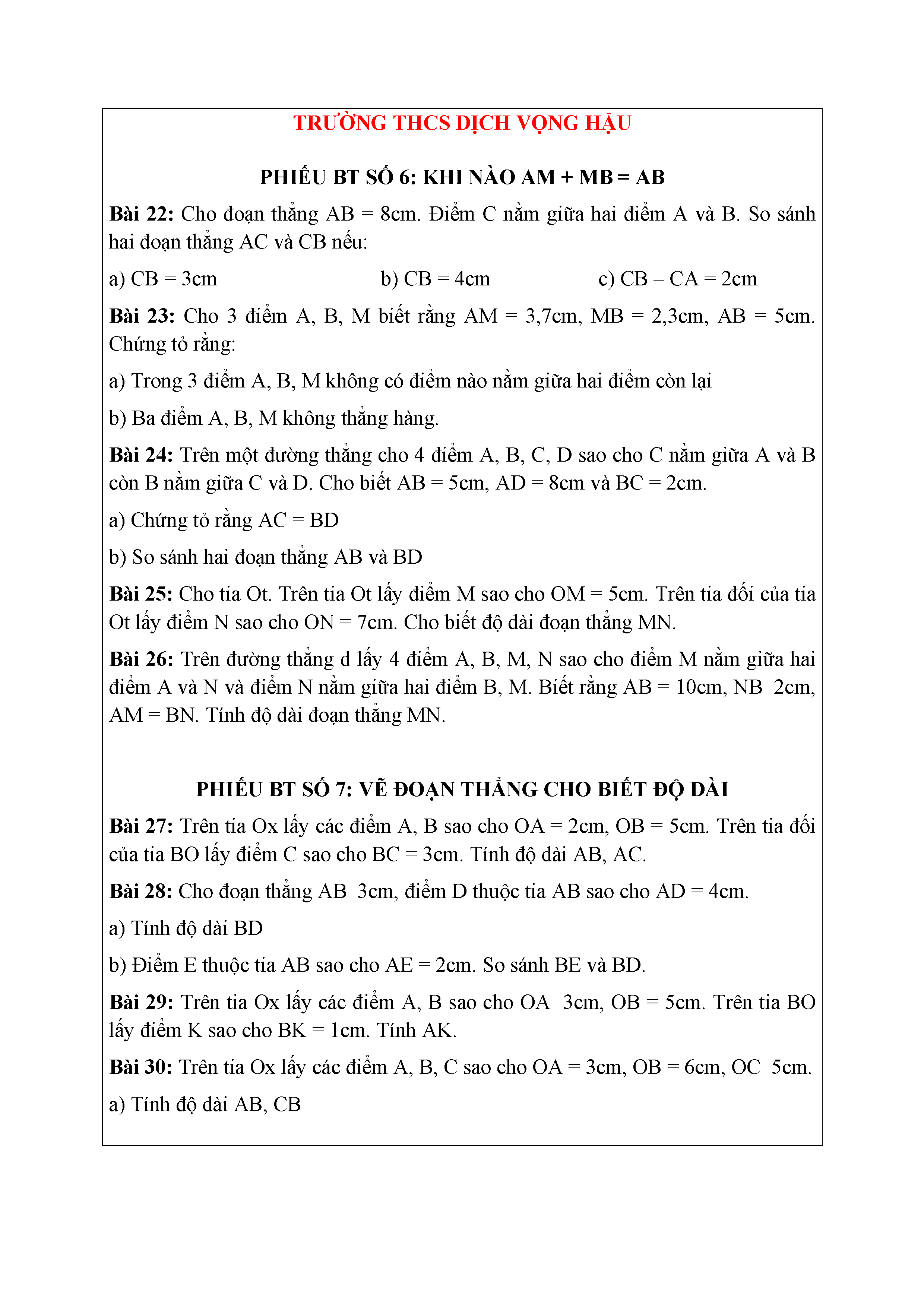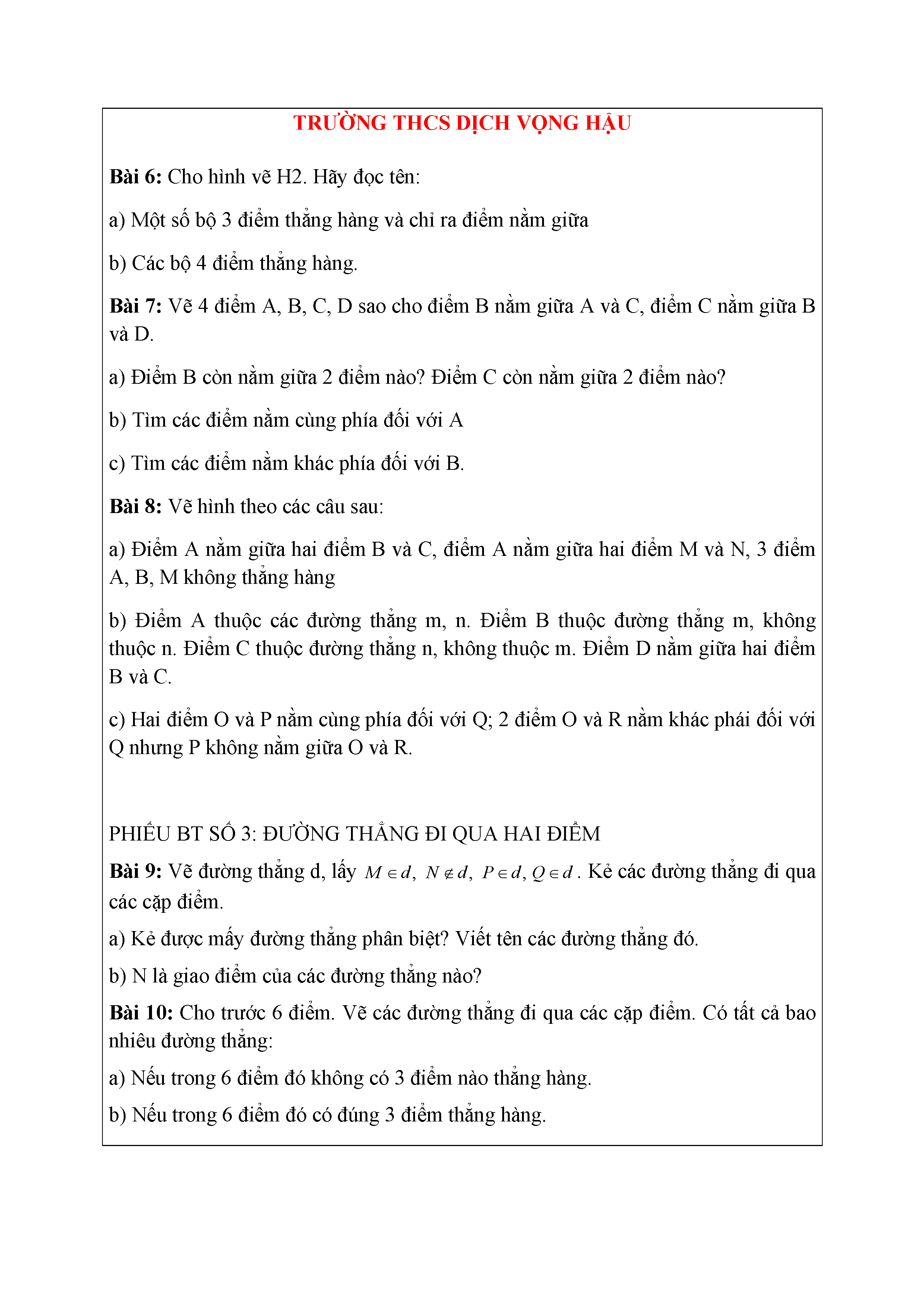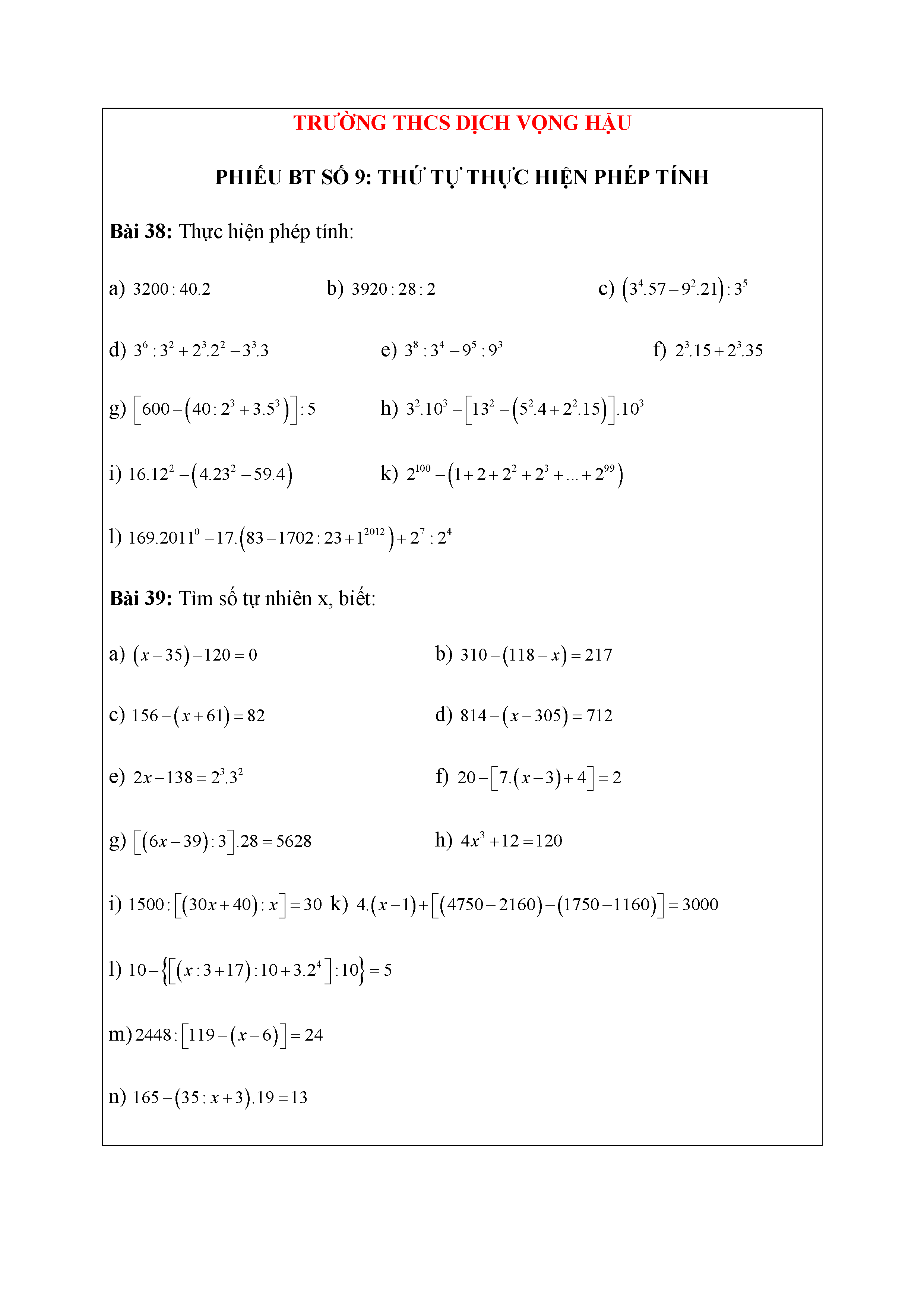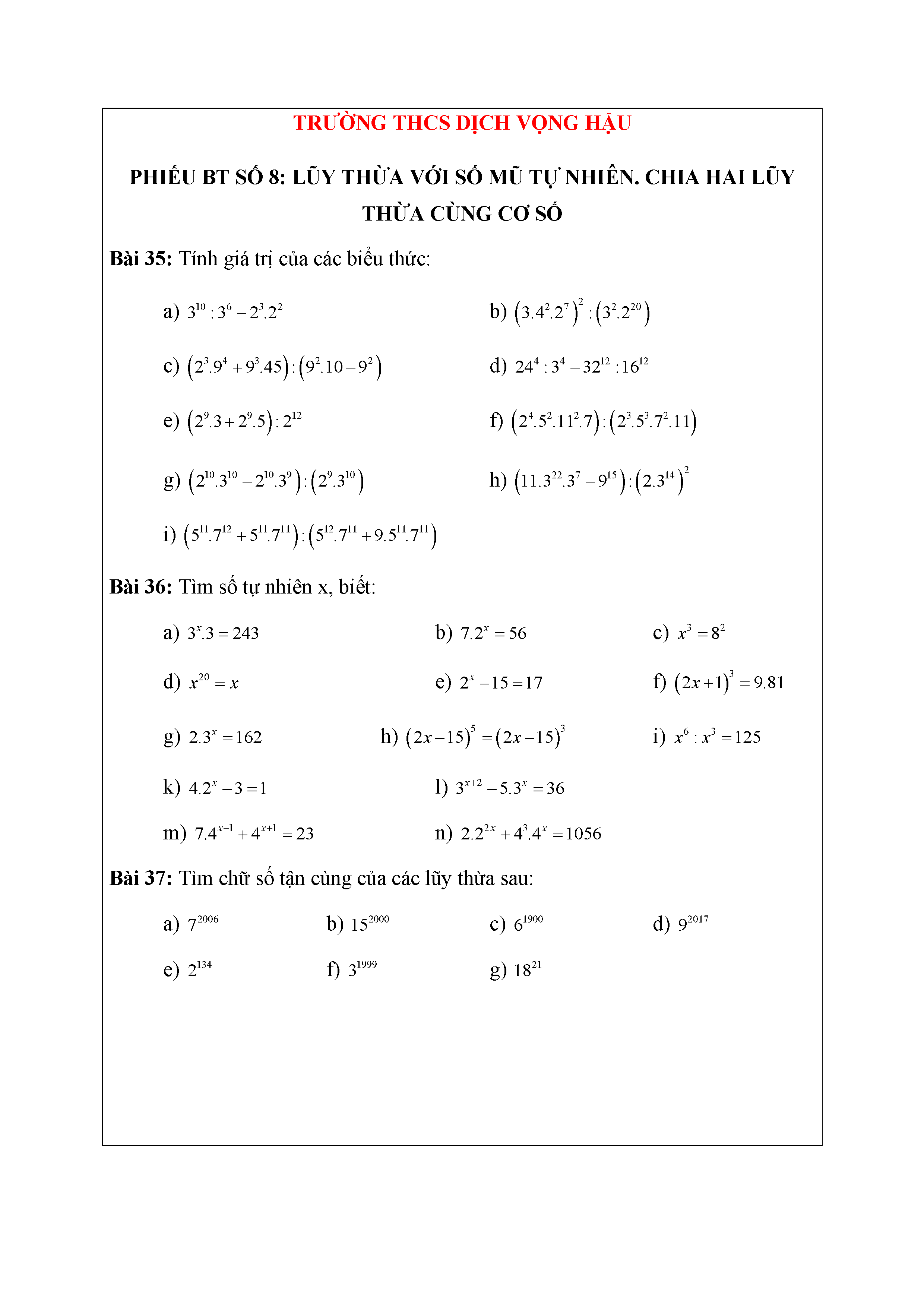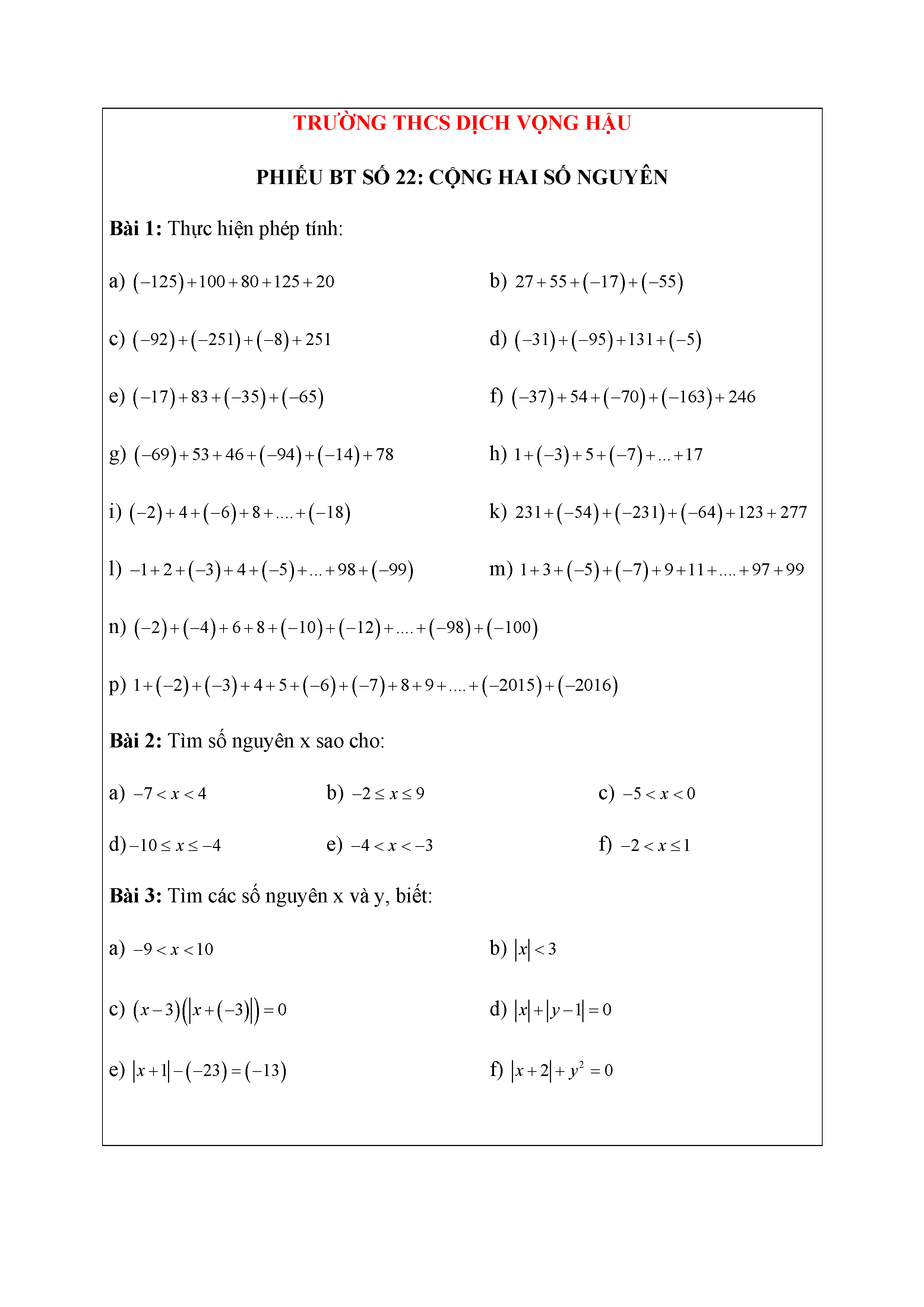 Phiếu bài tập tuần THCS Dịch Vọng Hậu Toán 6