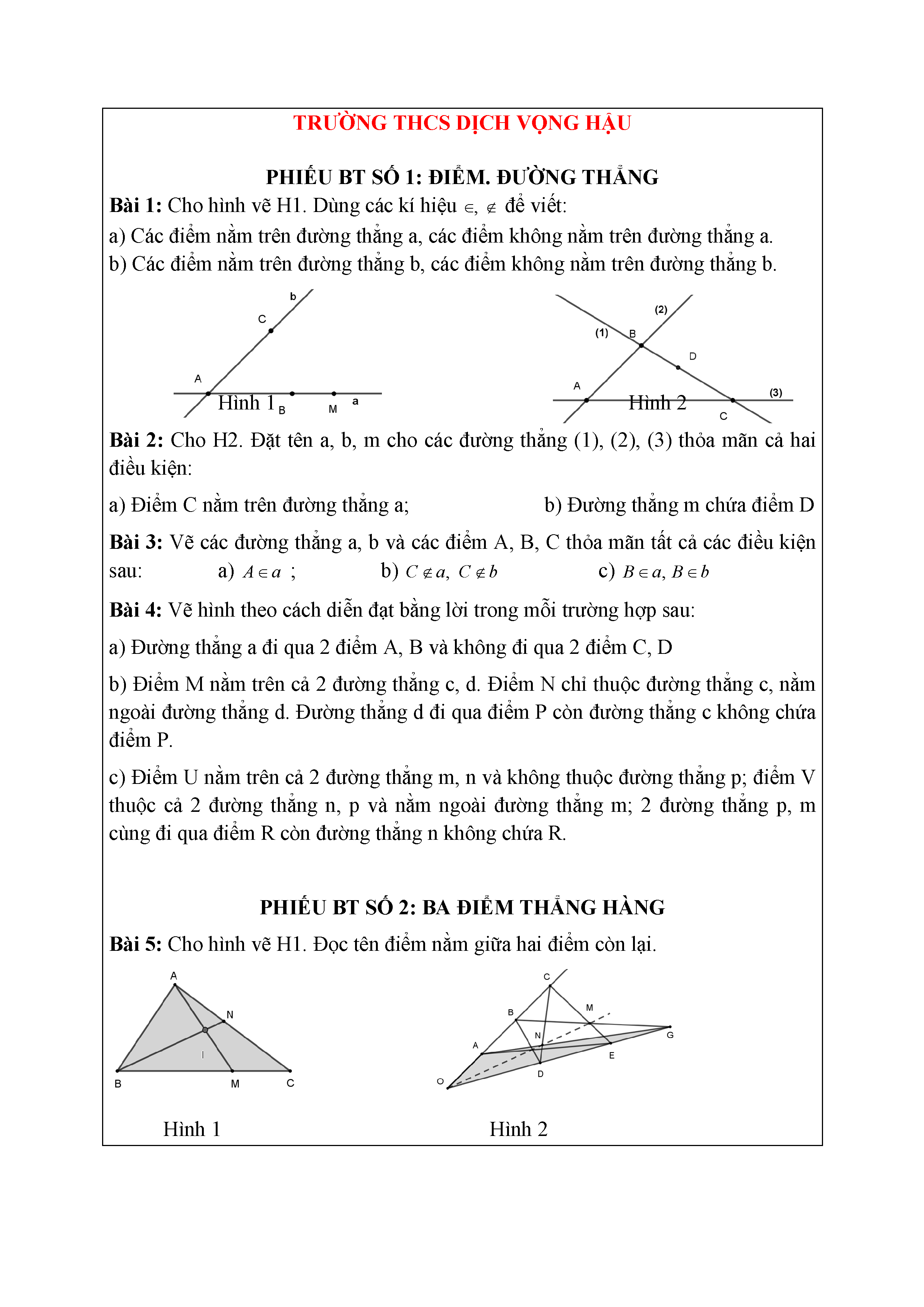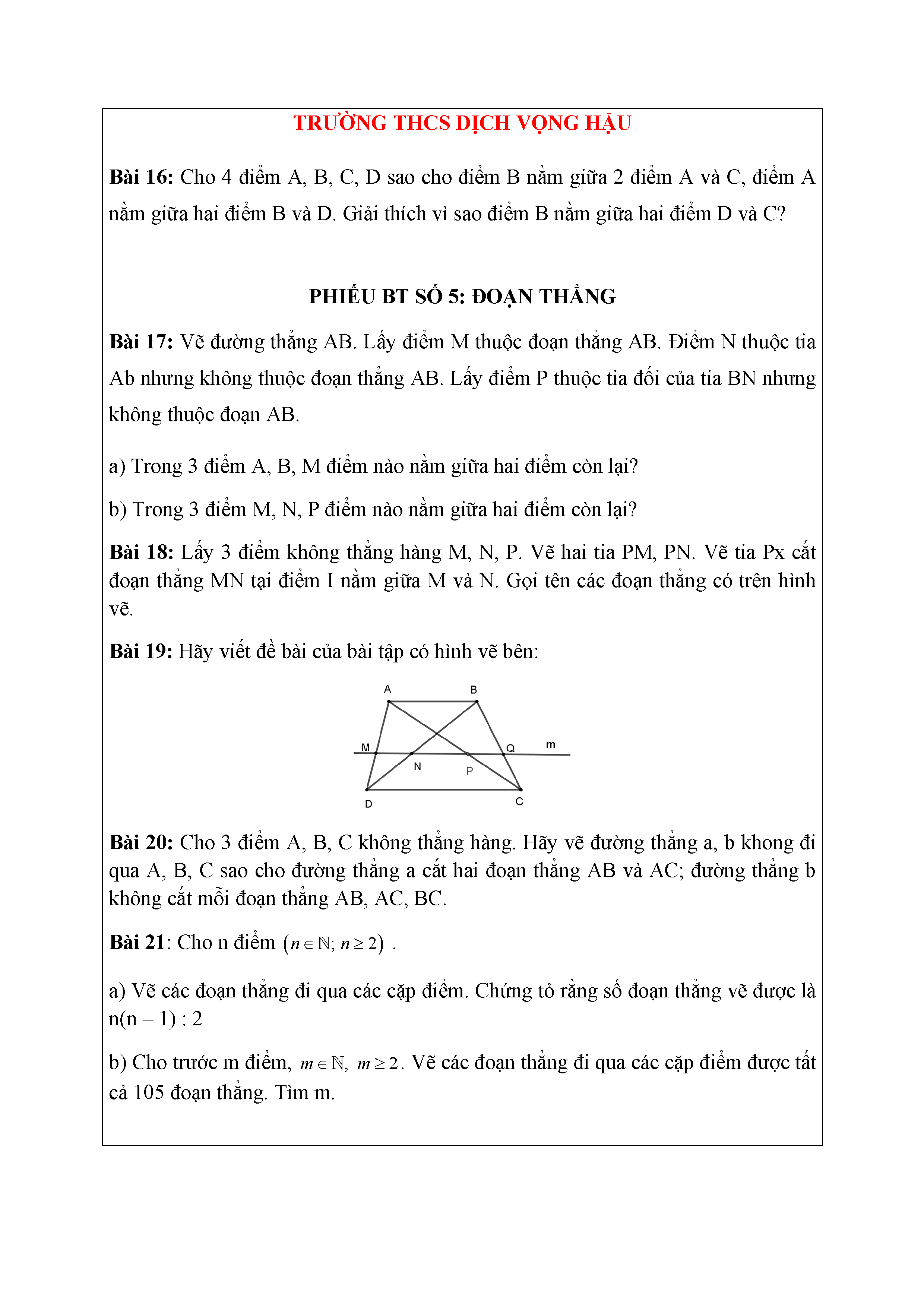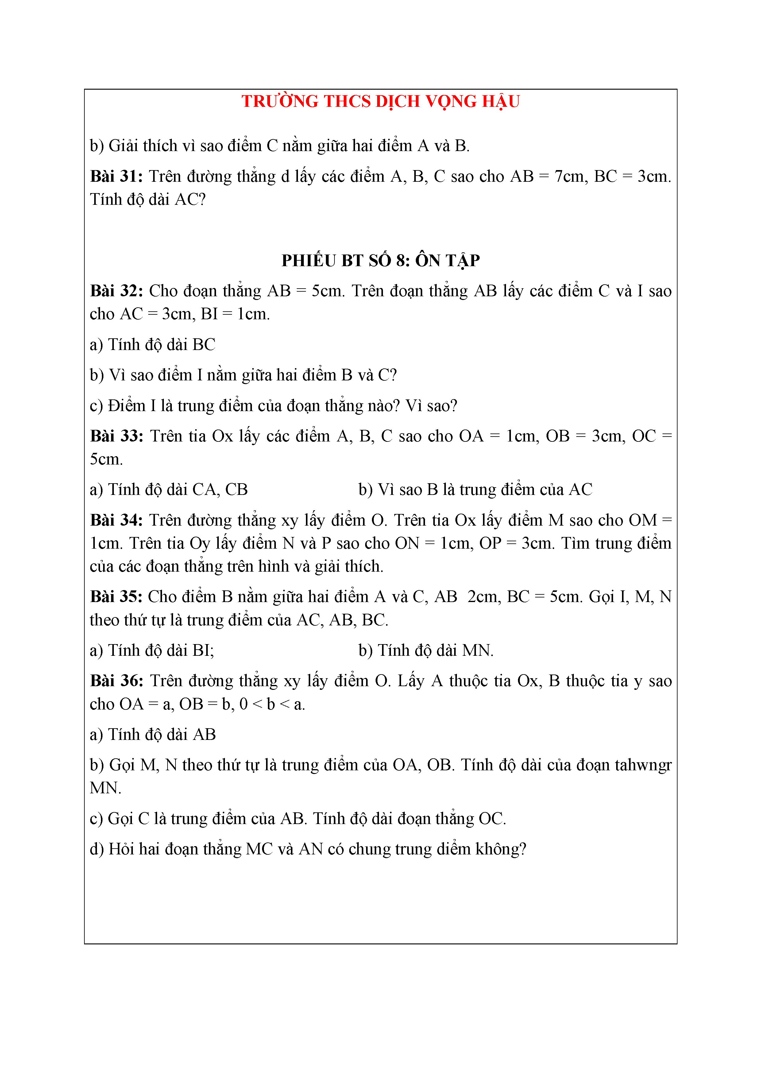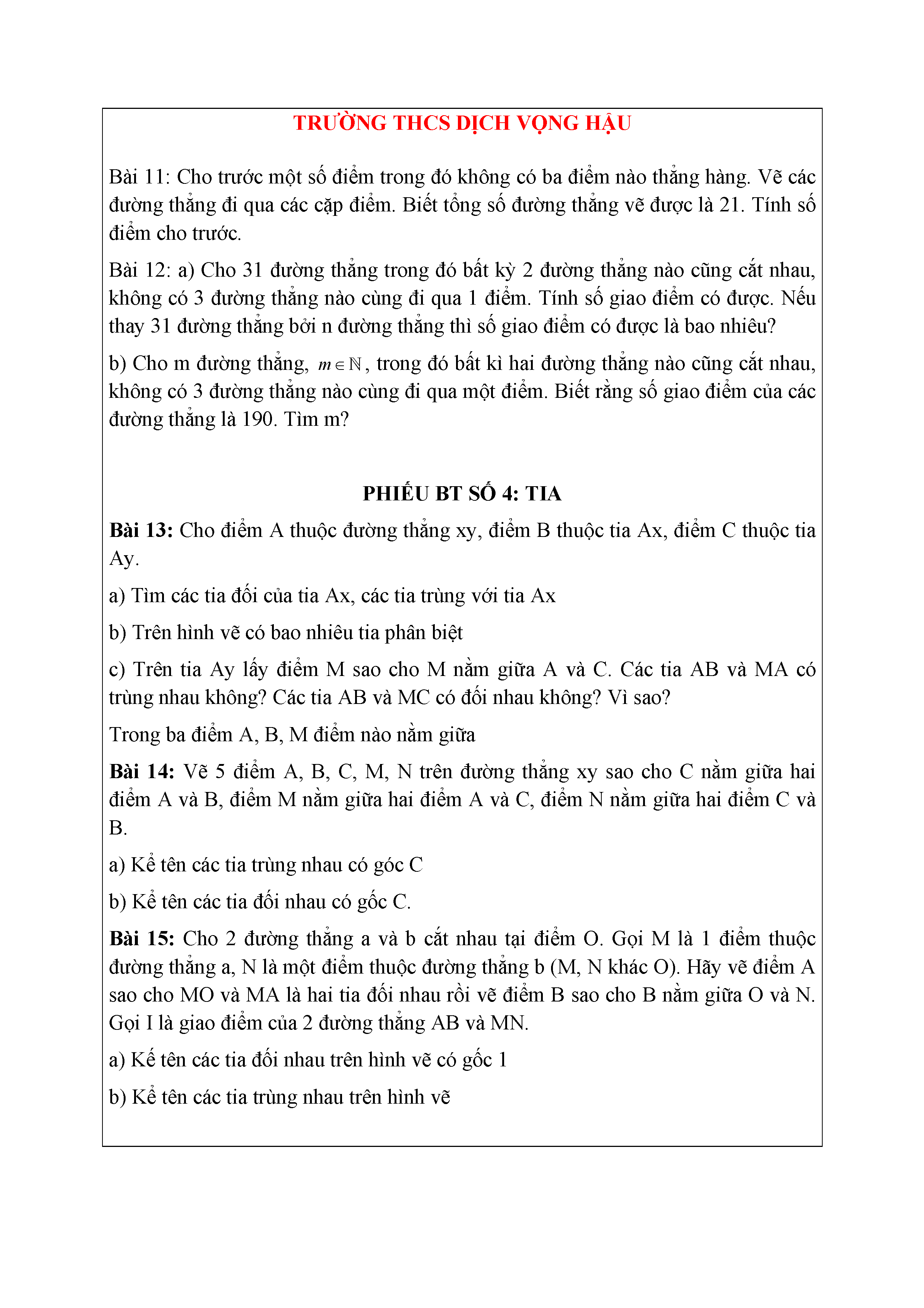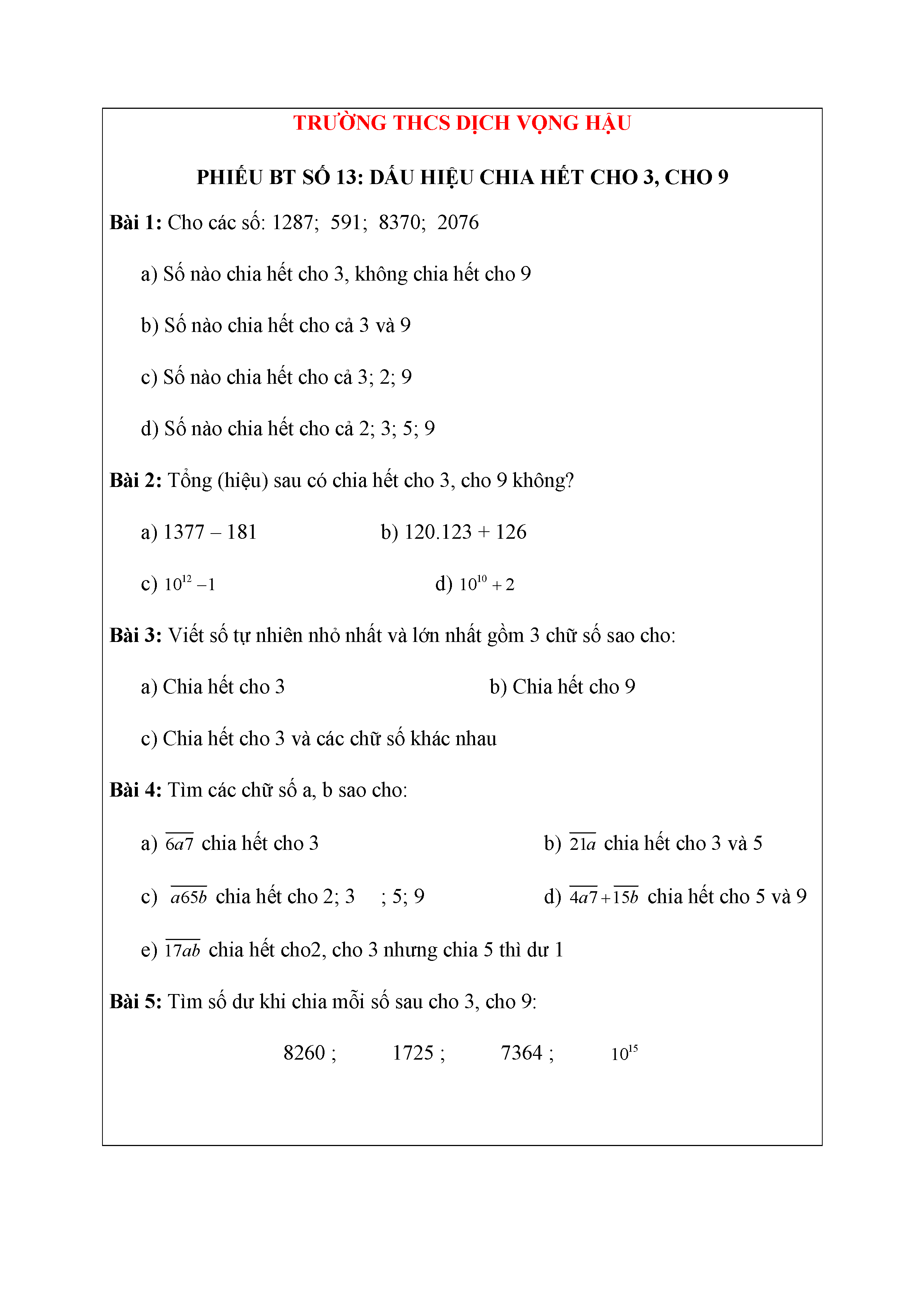 Phiếu bài tập tuần THCS Dịch Vọng Hậu Toán 6