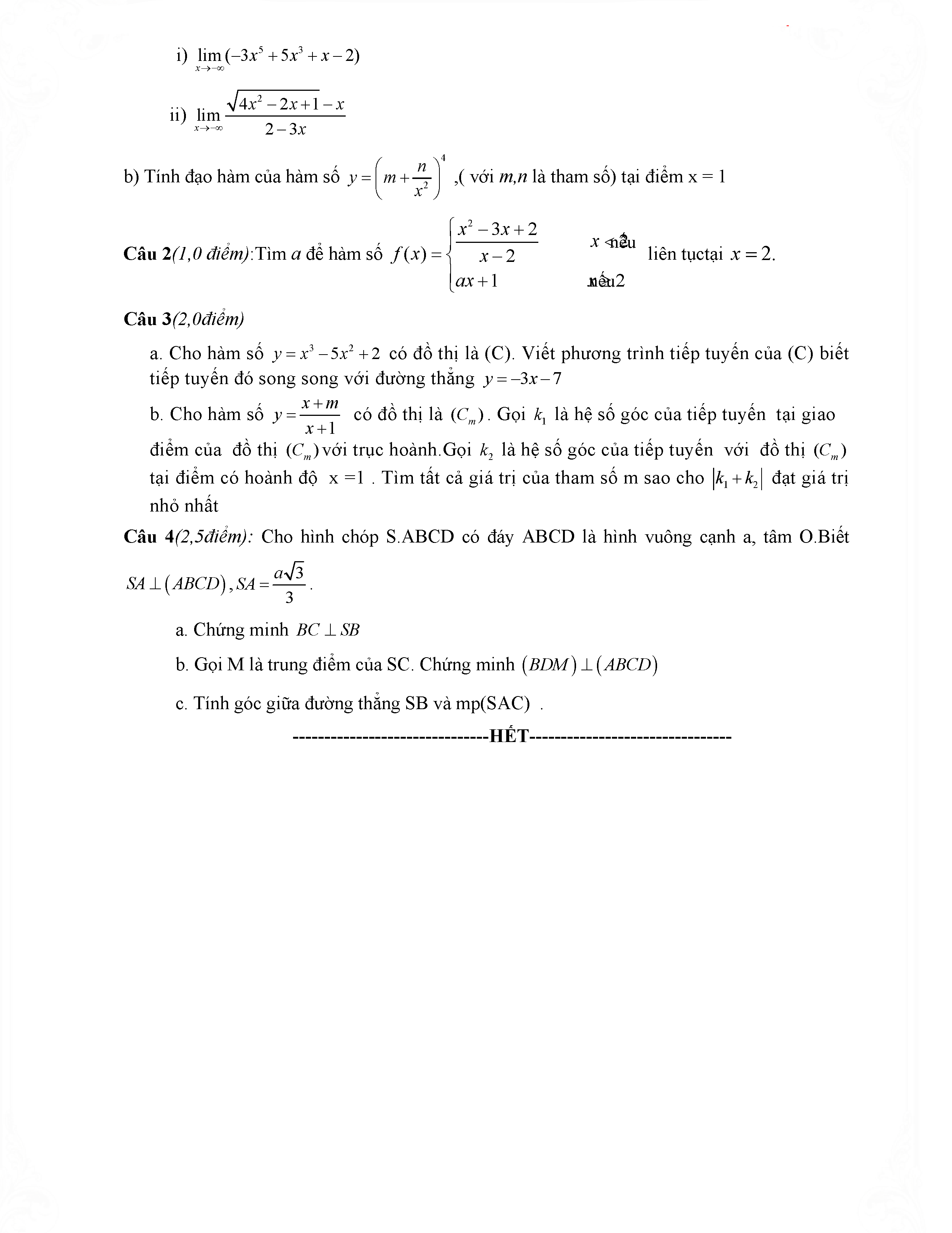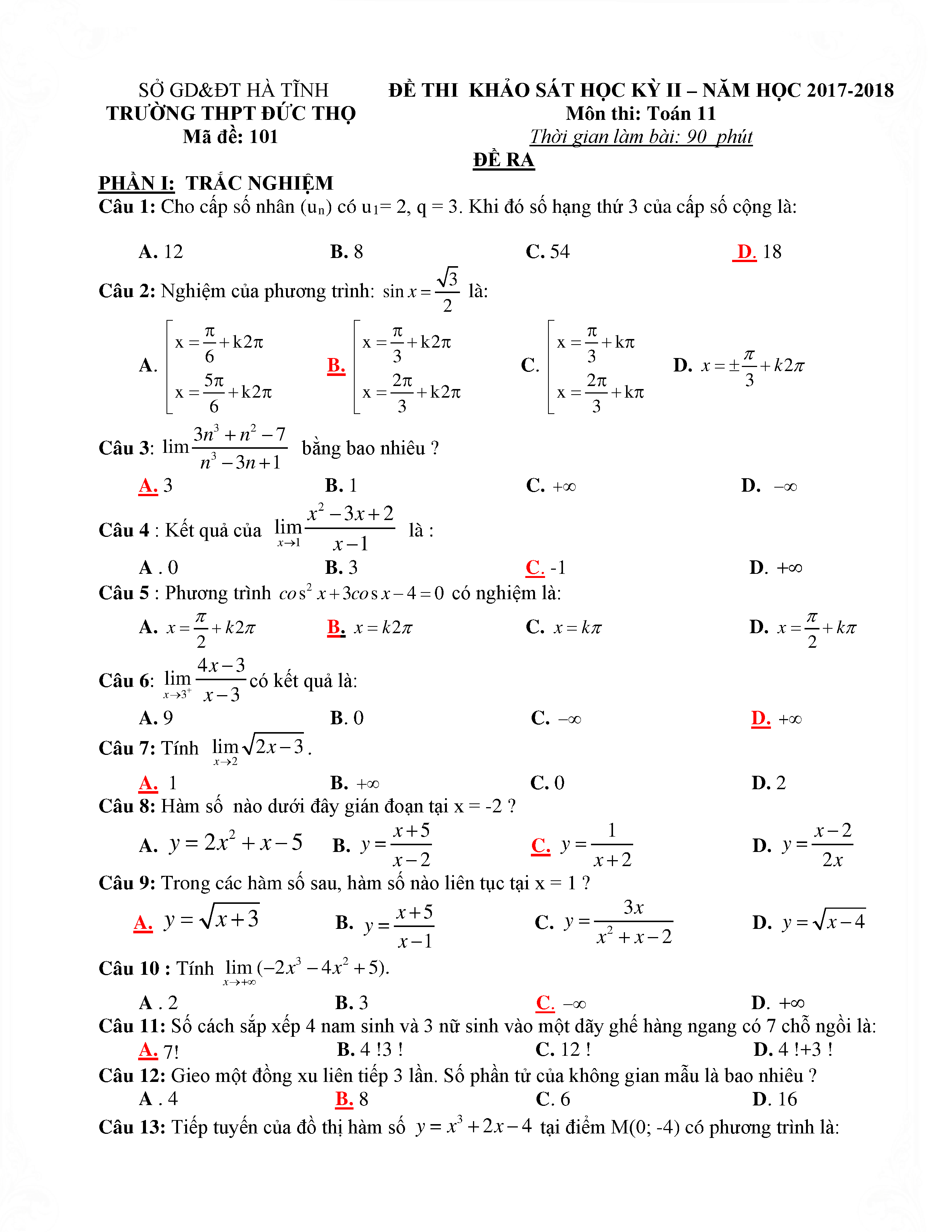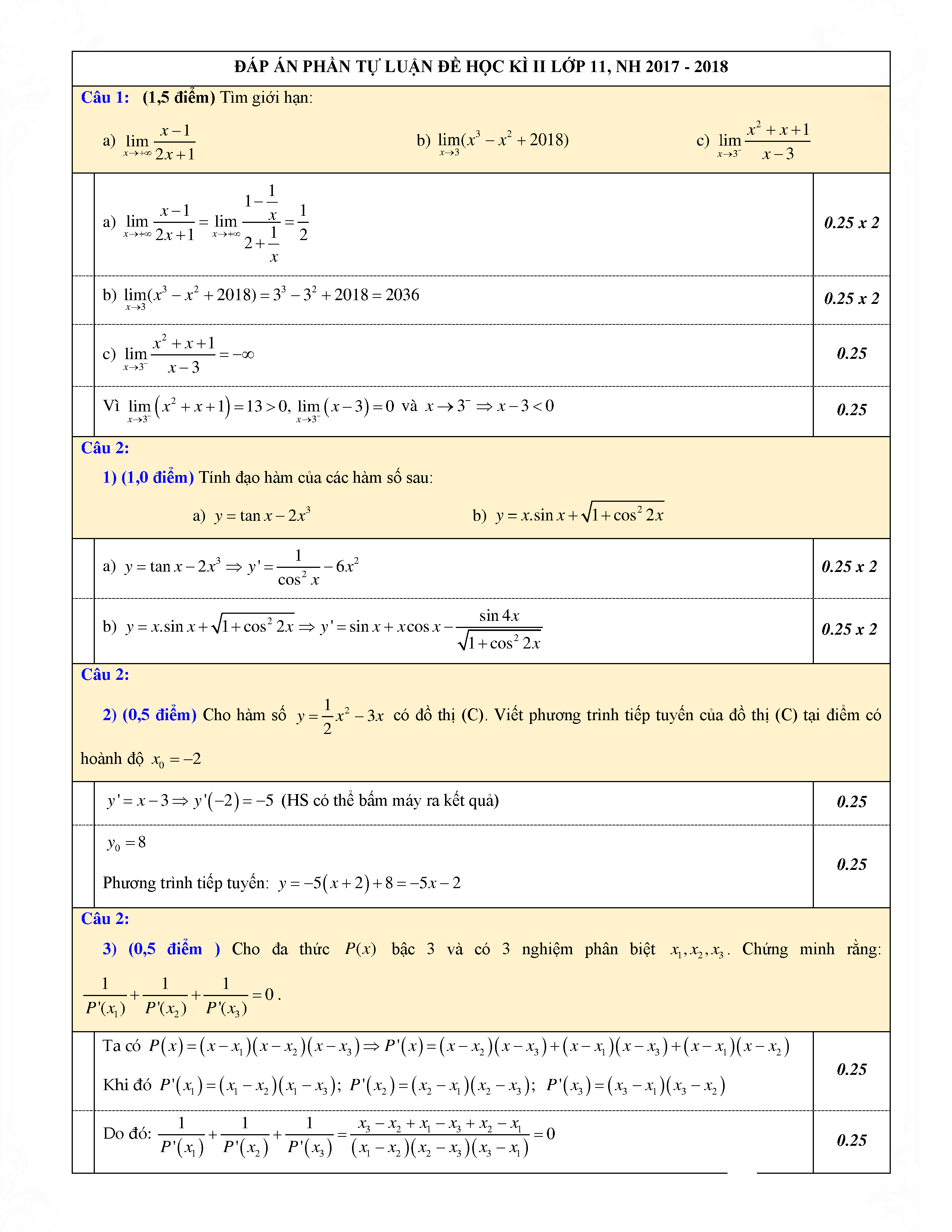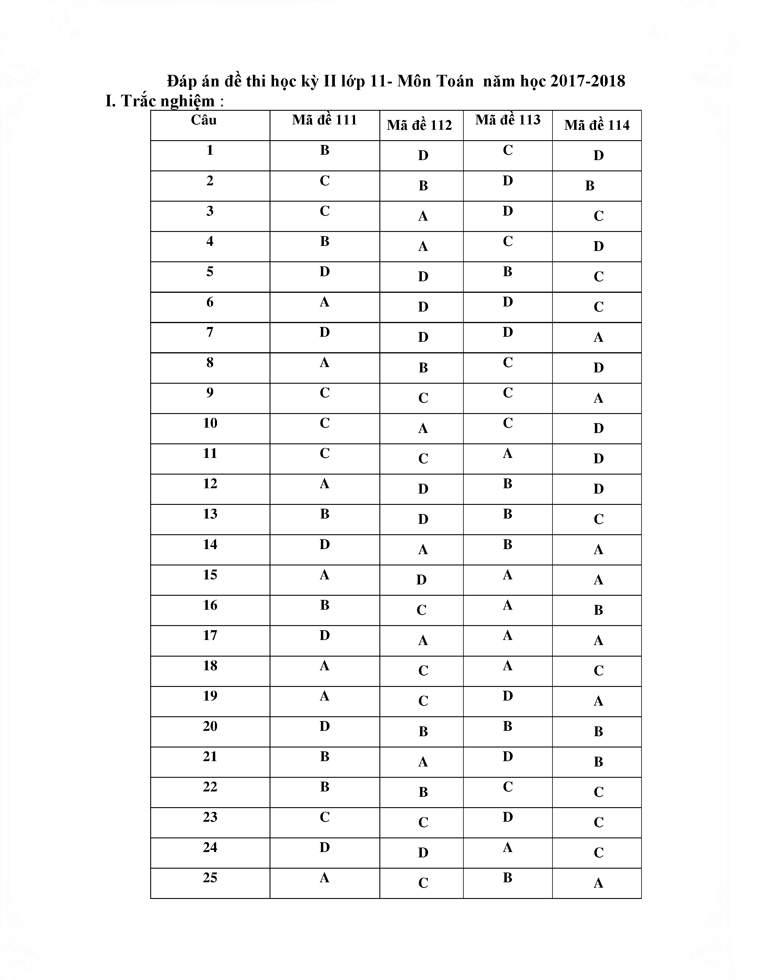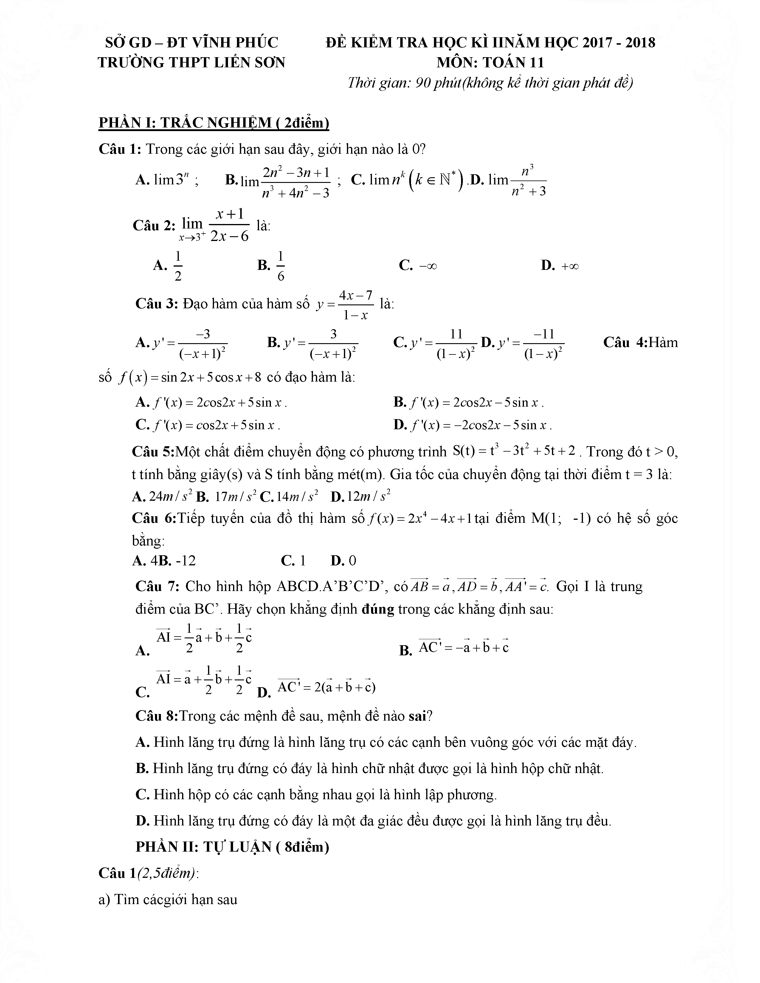 ĐỀ THI HỌC KÌ II TOÁN 11
