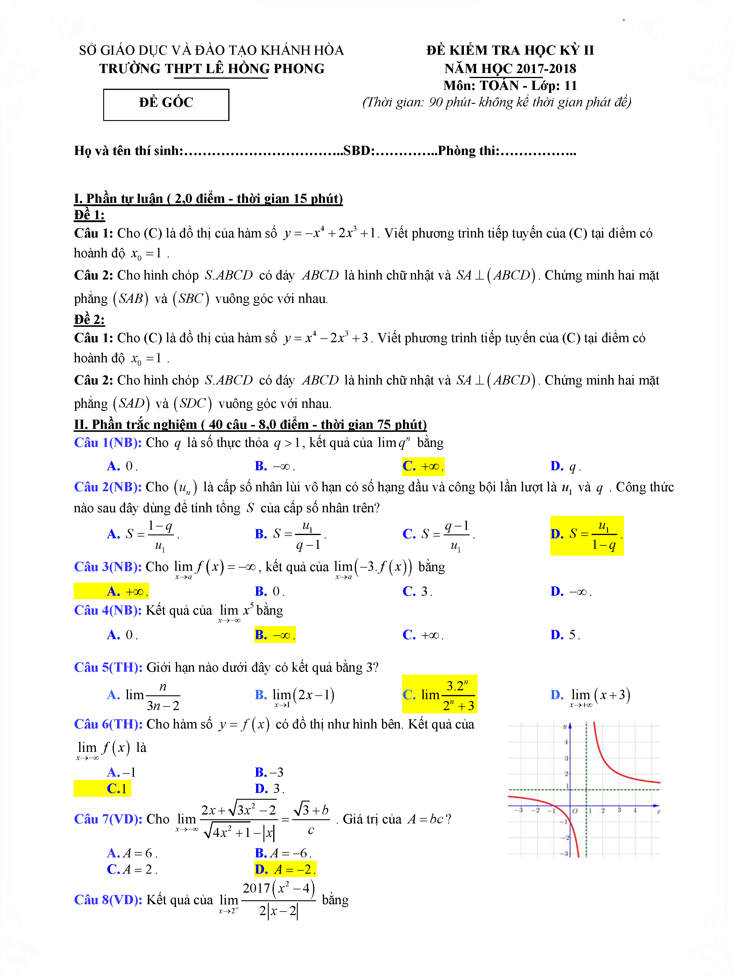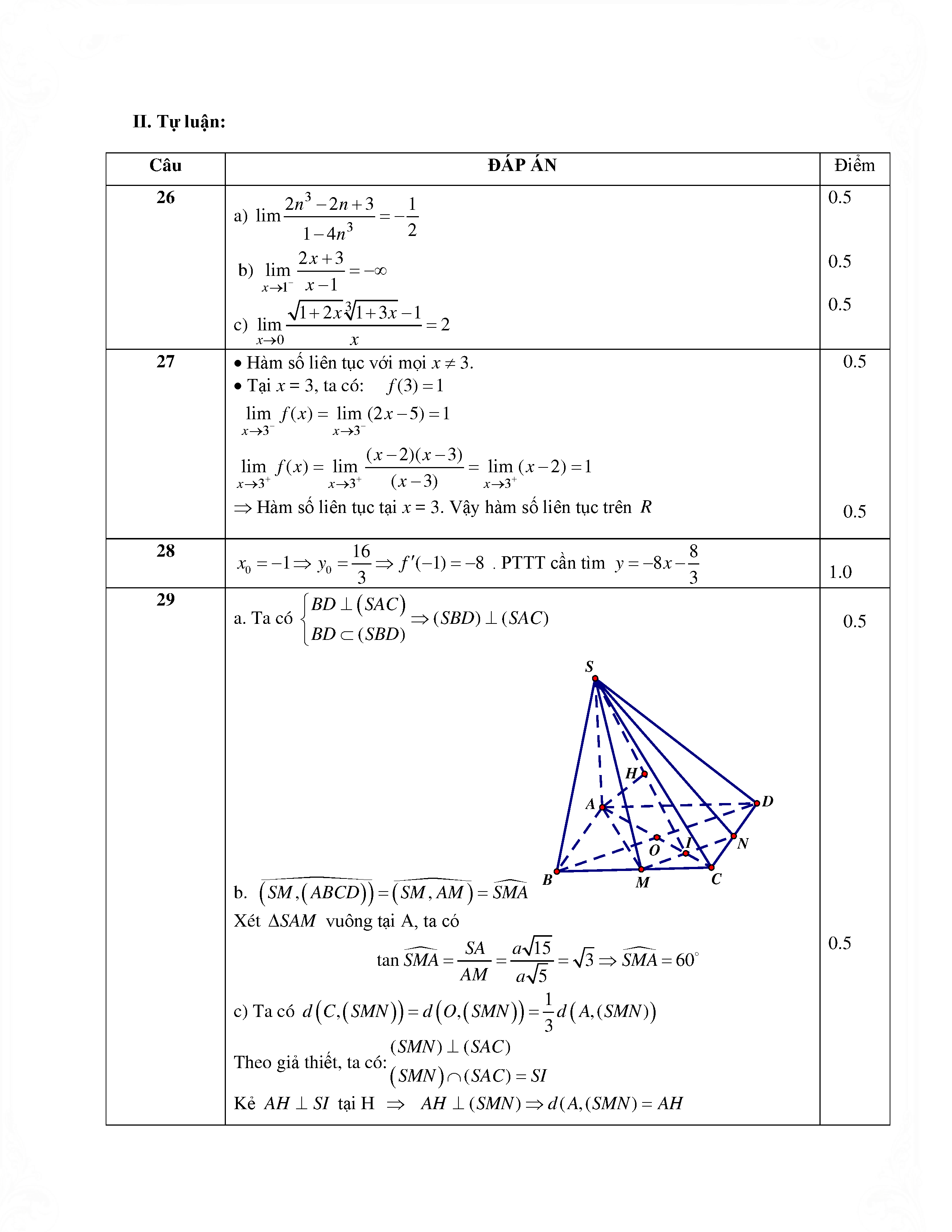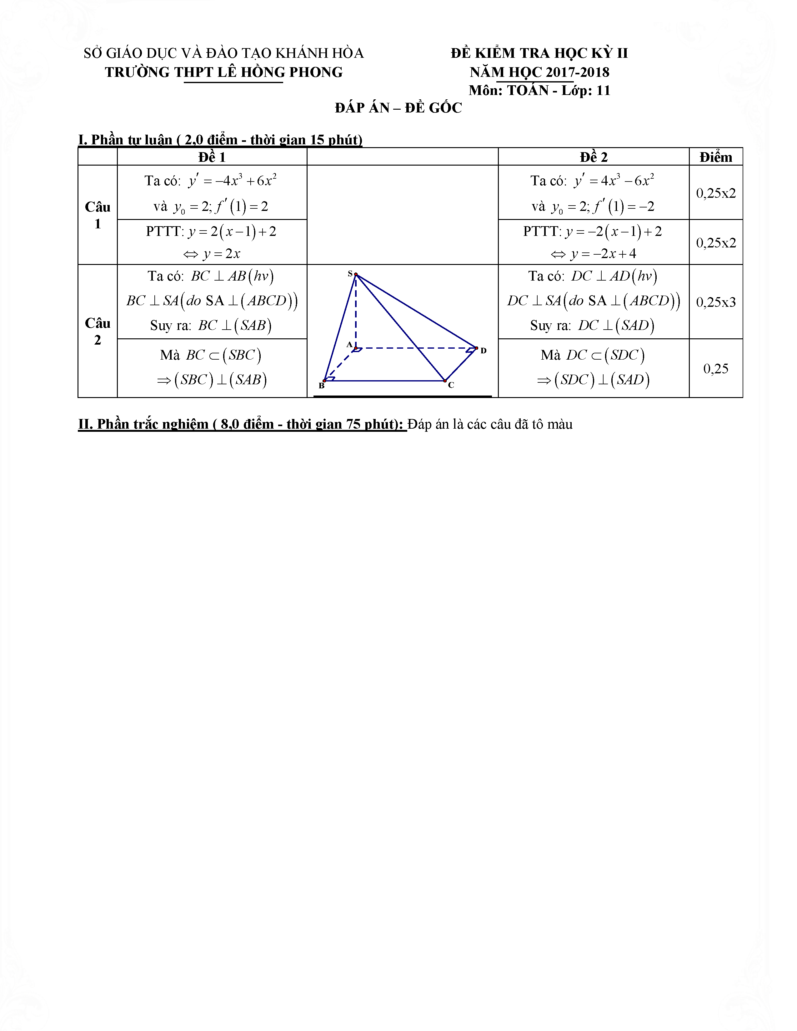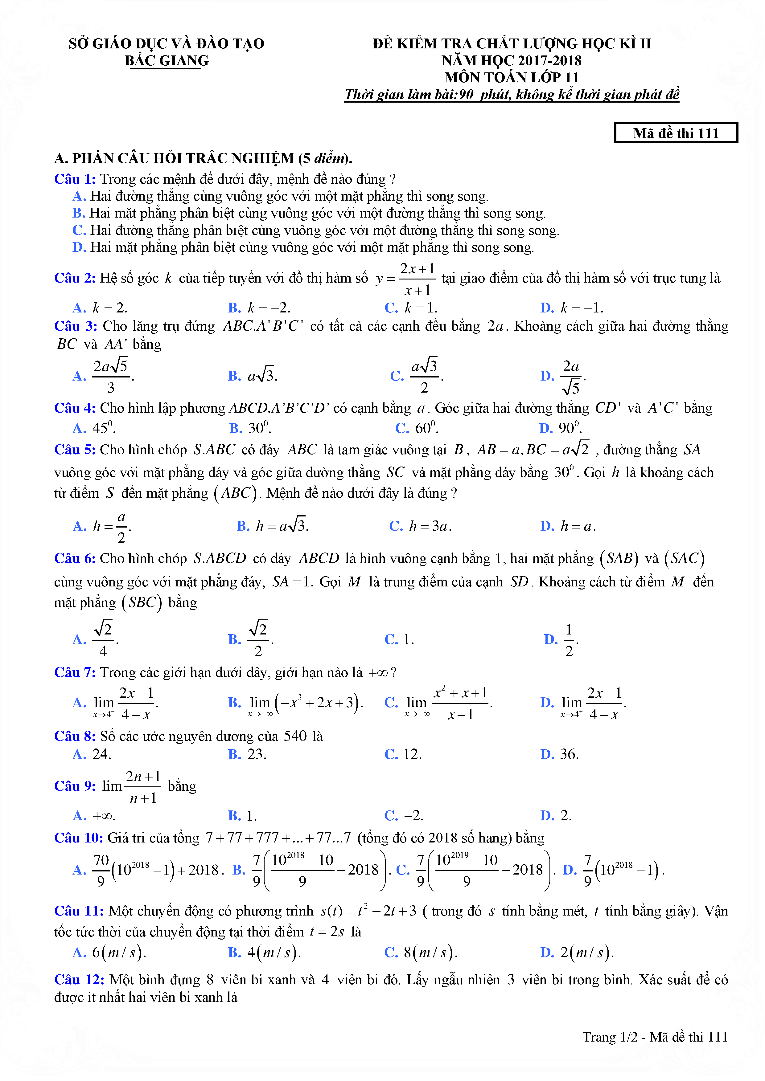 ĐỀ THI HỌC KÌ II TOÁN 11