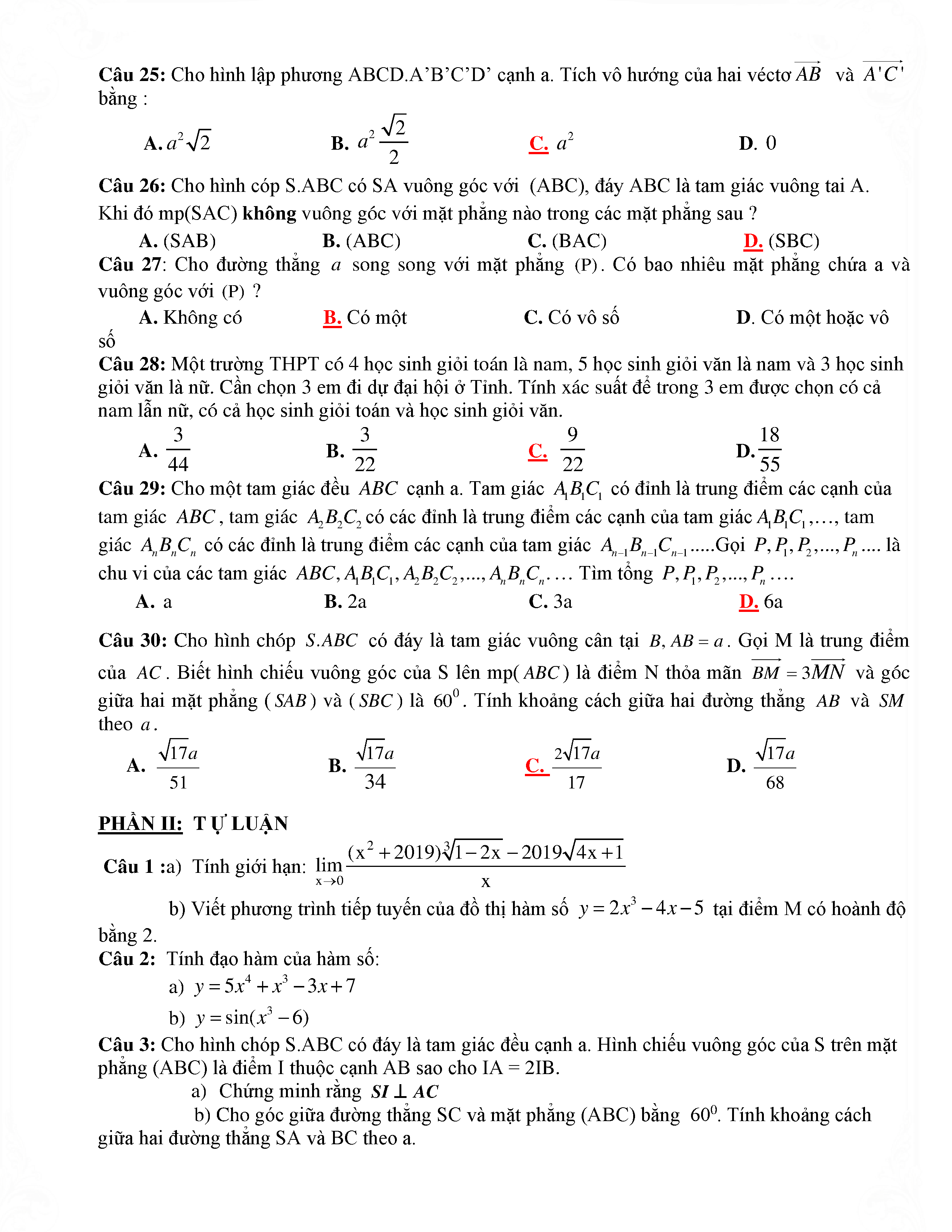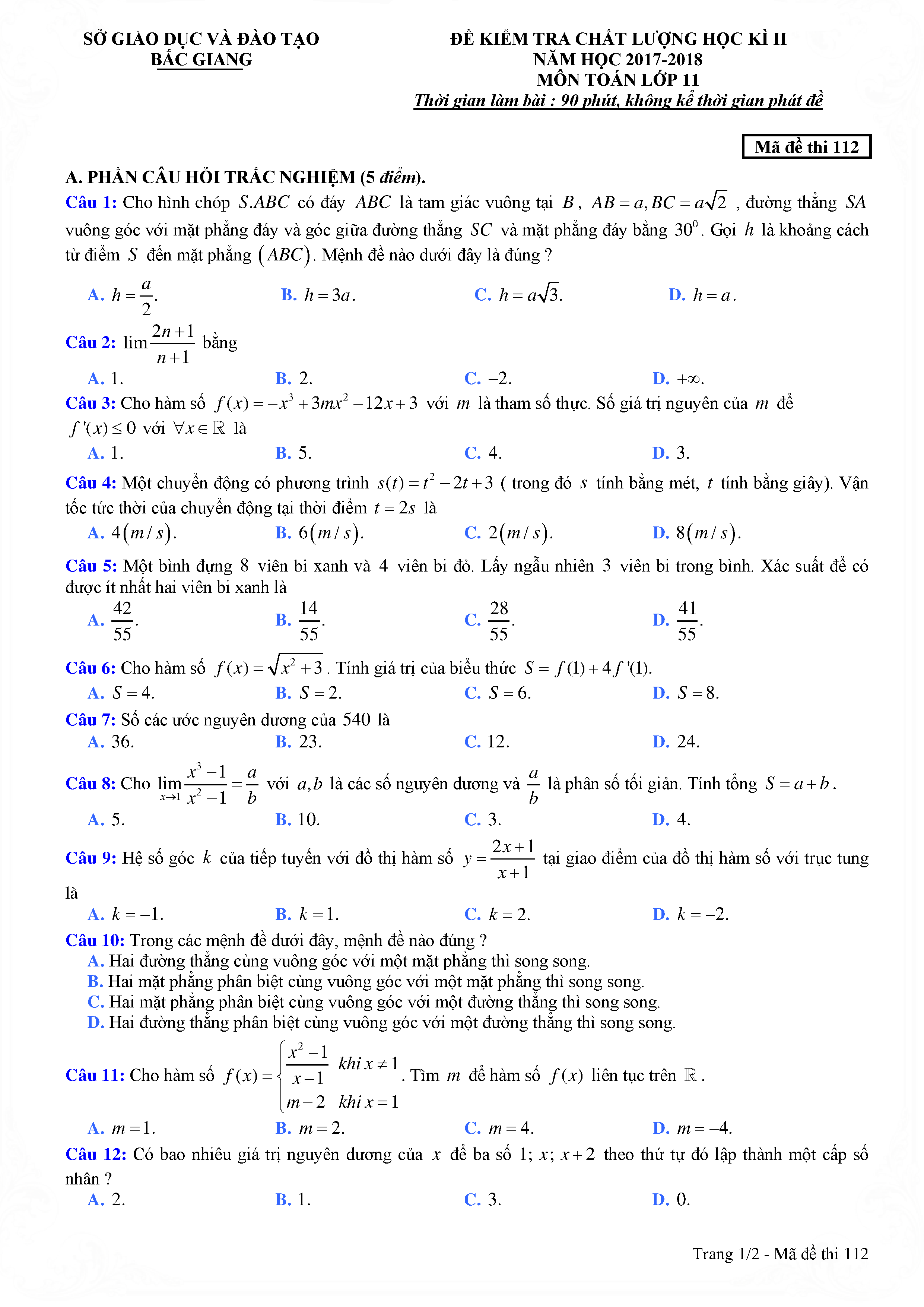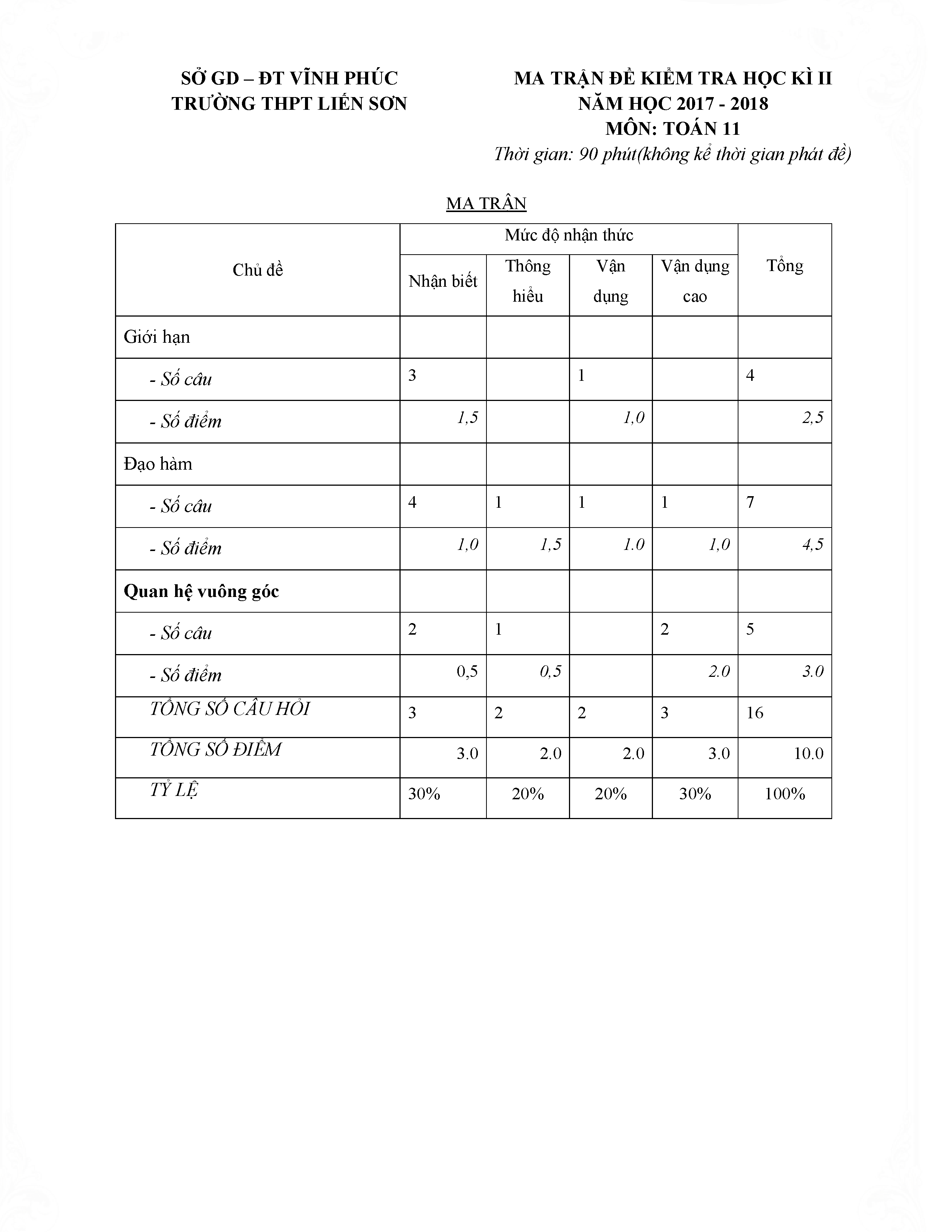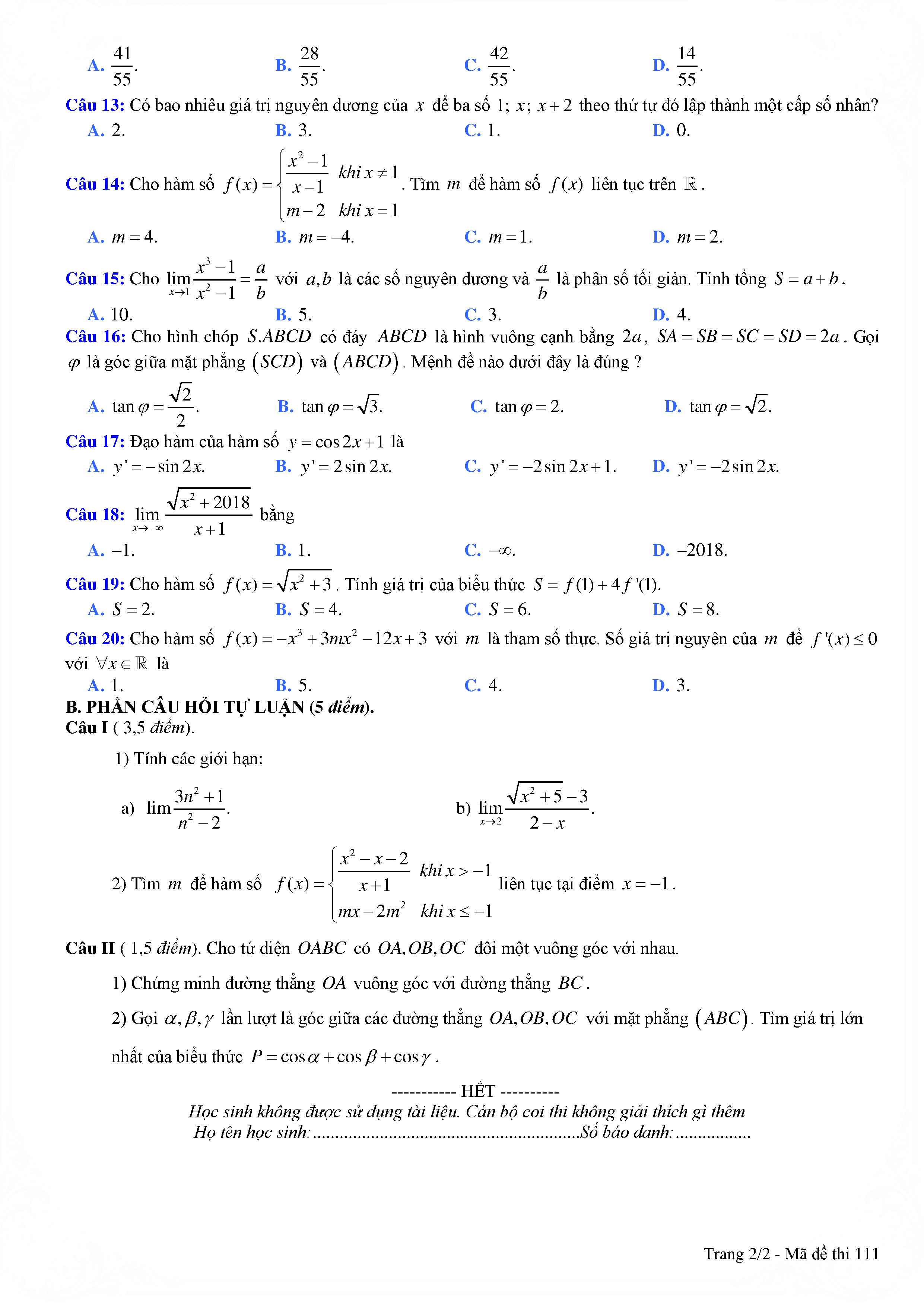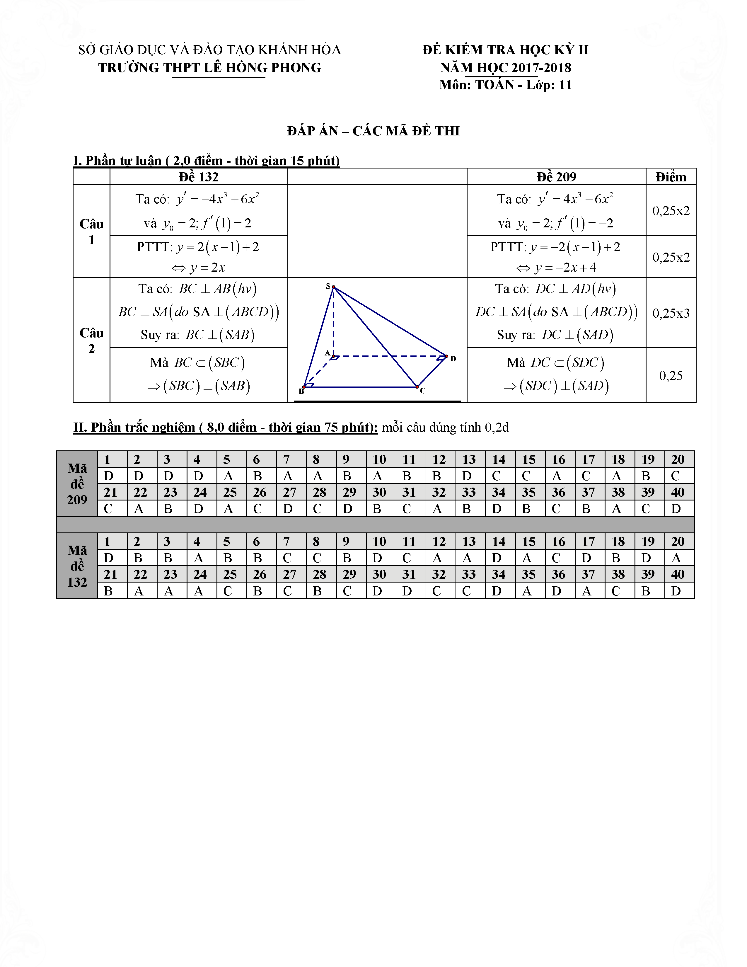 ĐỀ THI HỌC KÌ II TOÁN 11