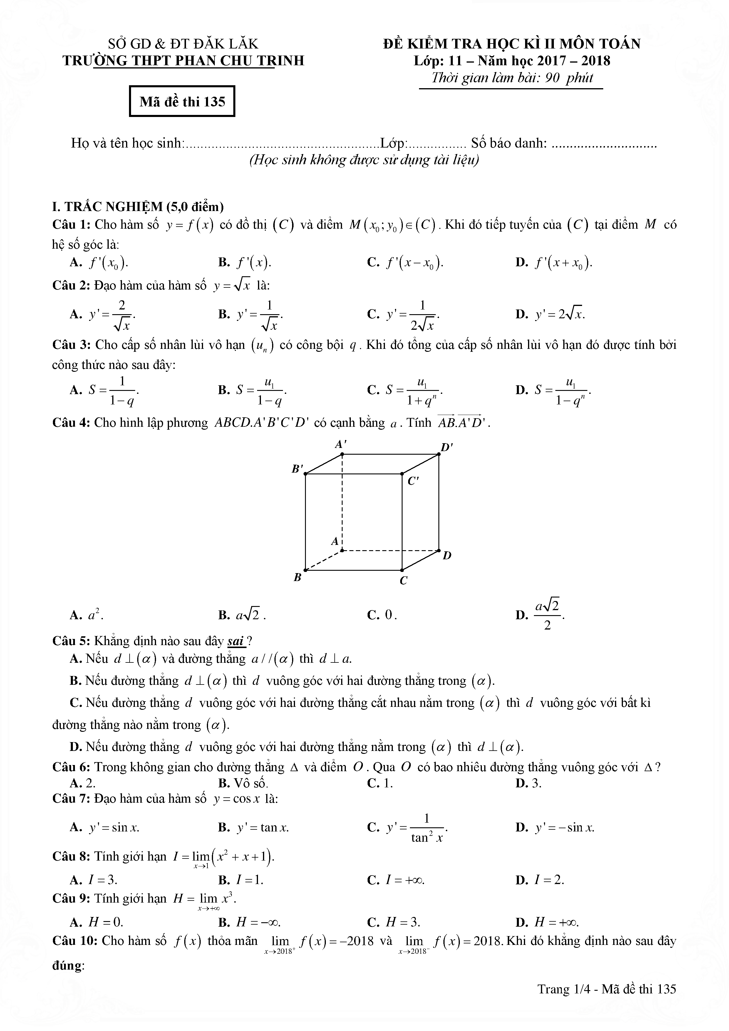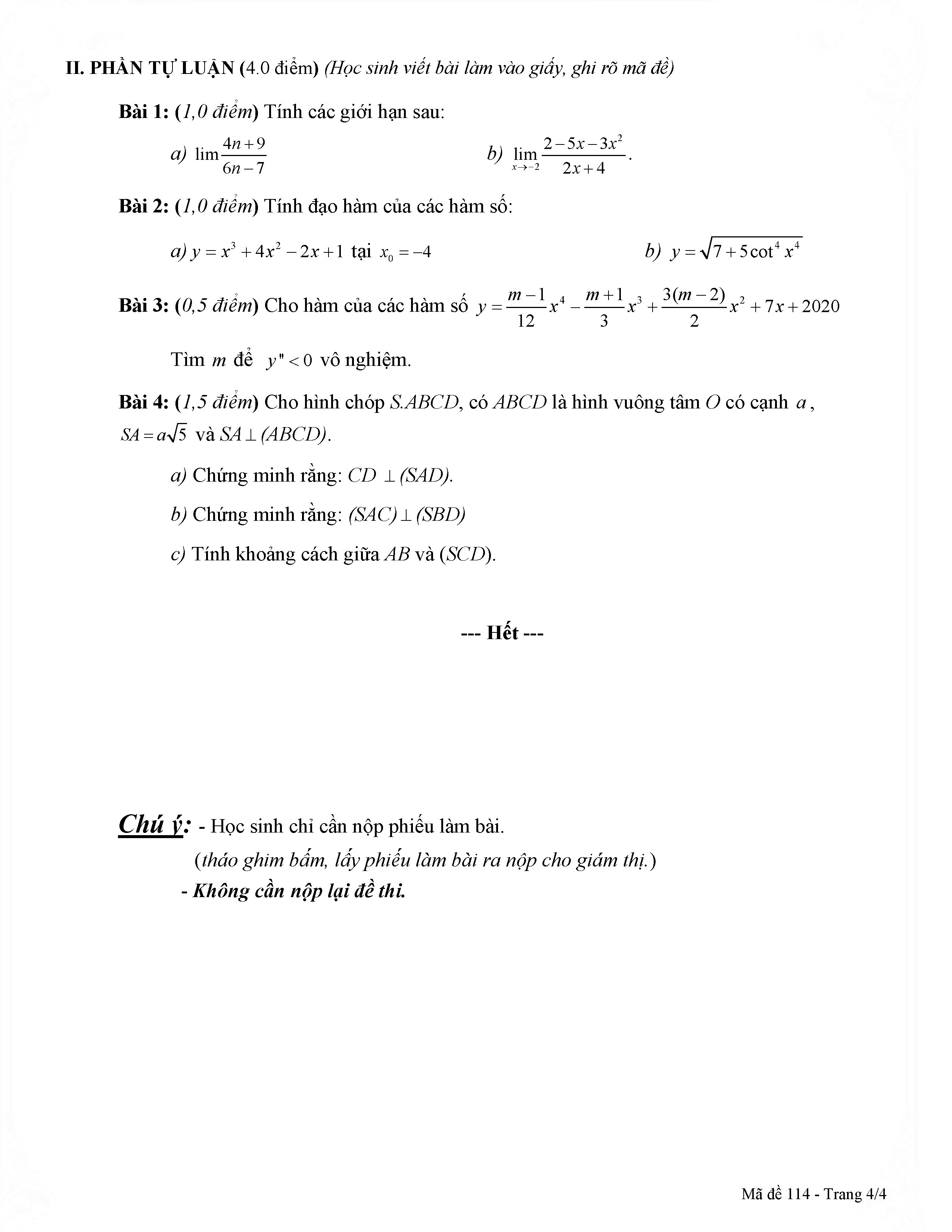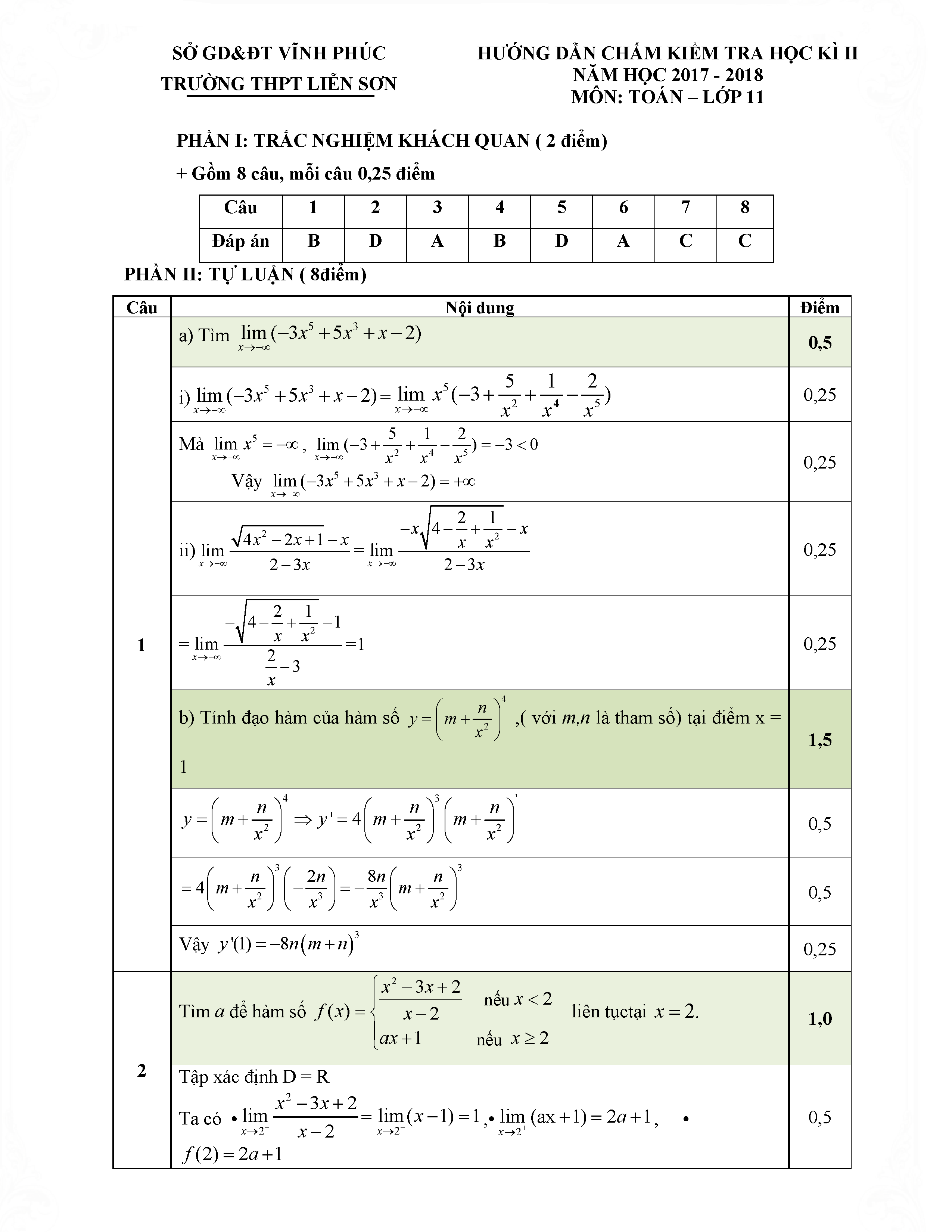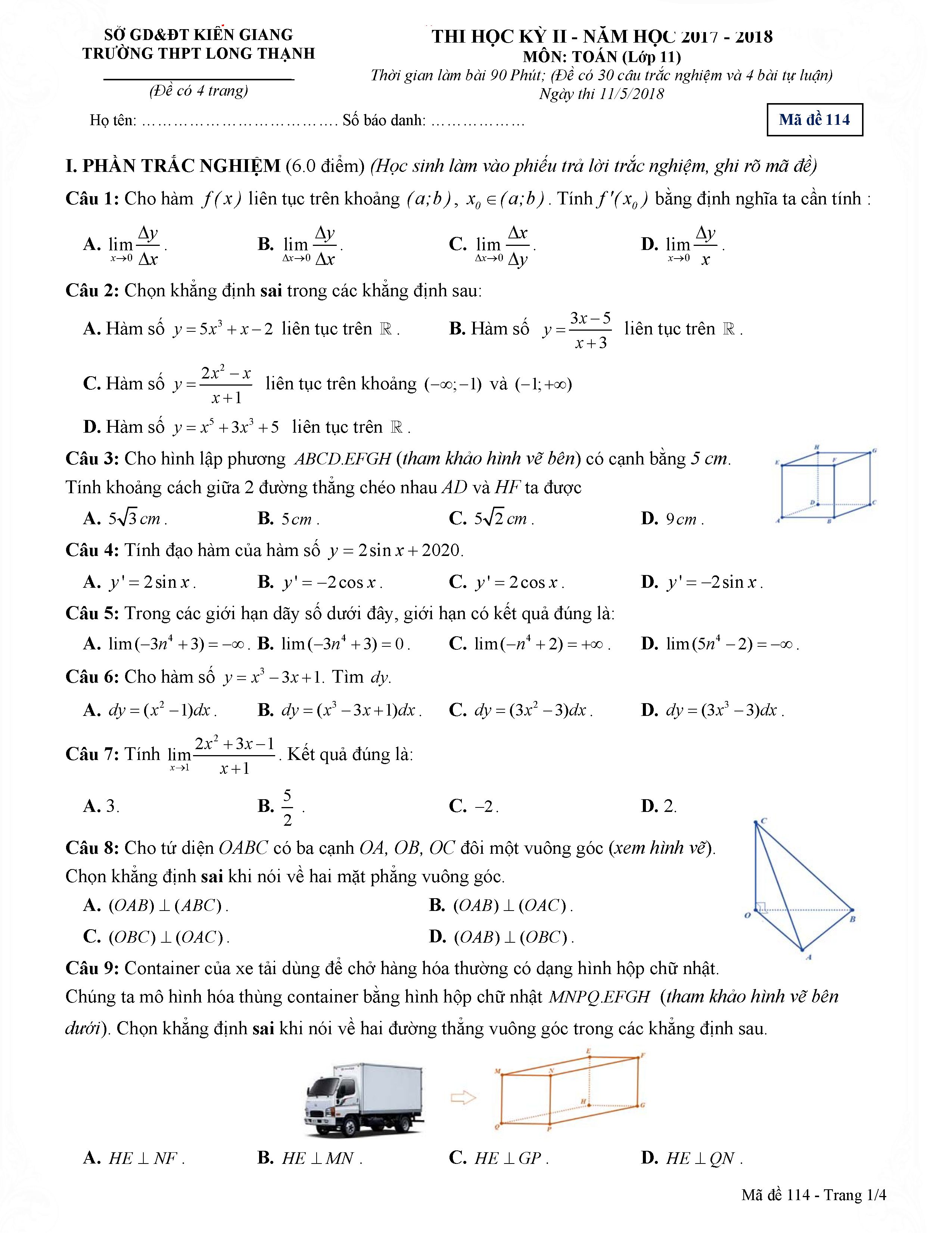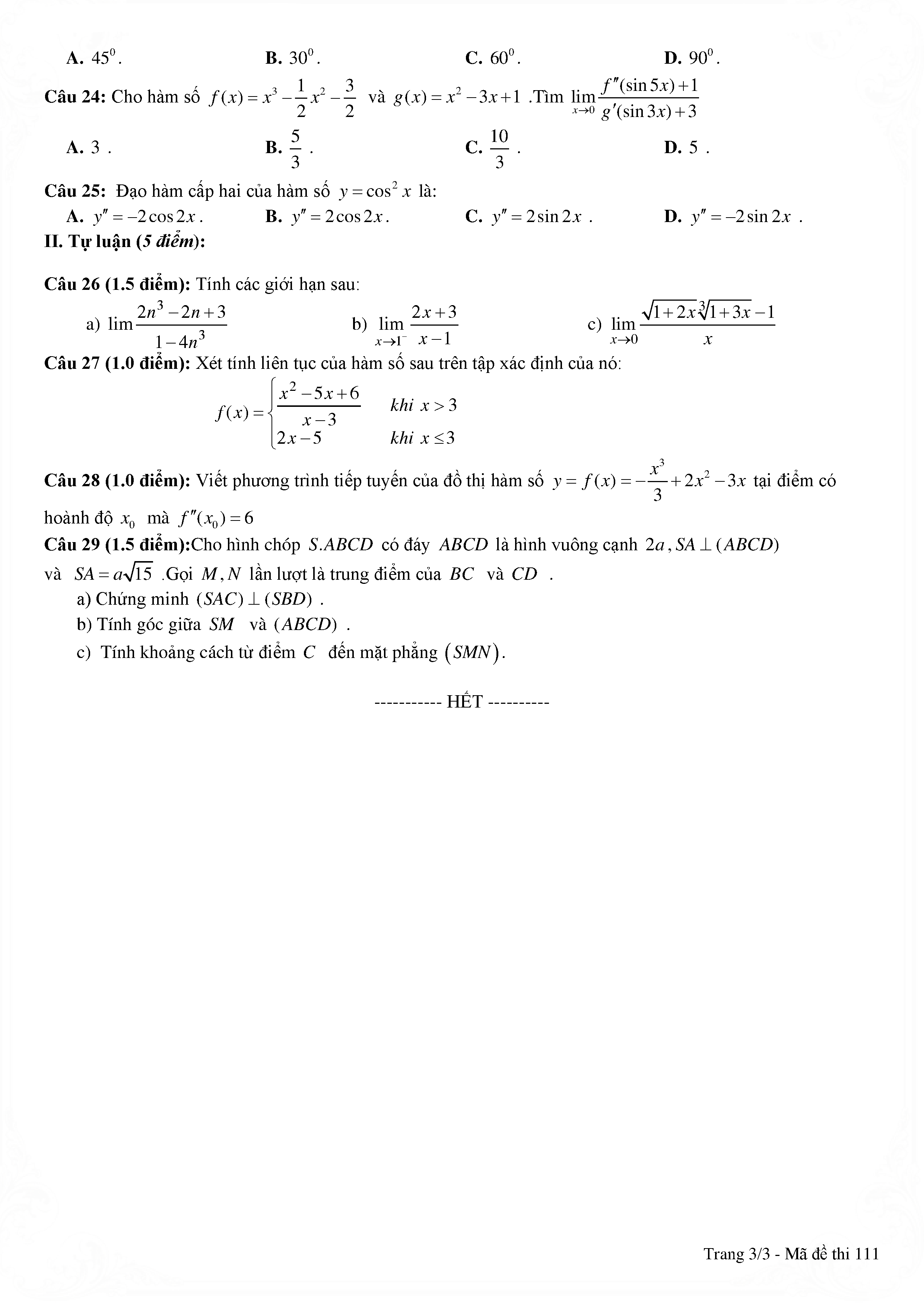 ĐỀ THI HỌC KÌ II TOÁN 11