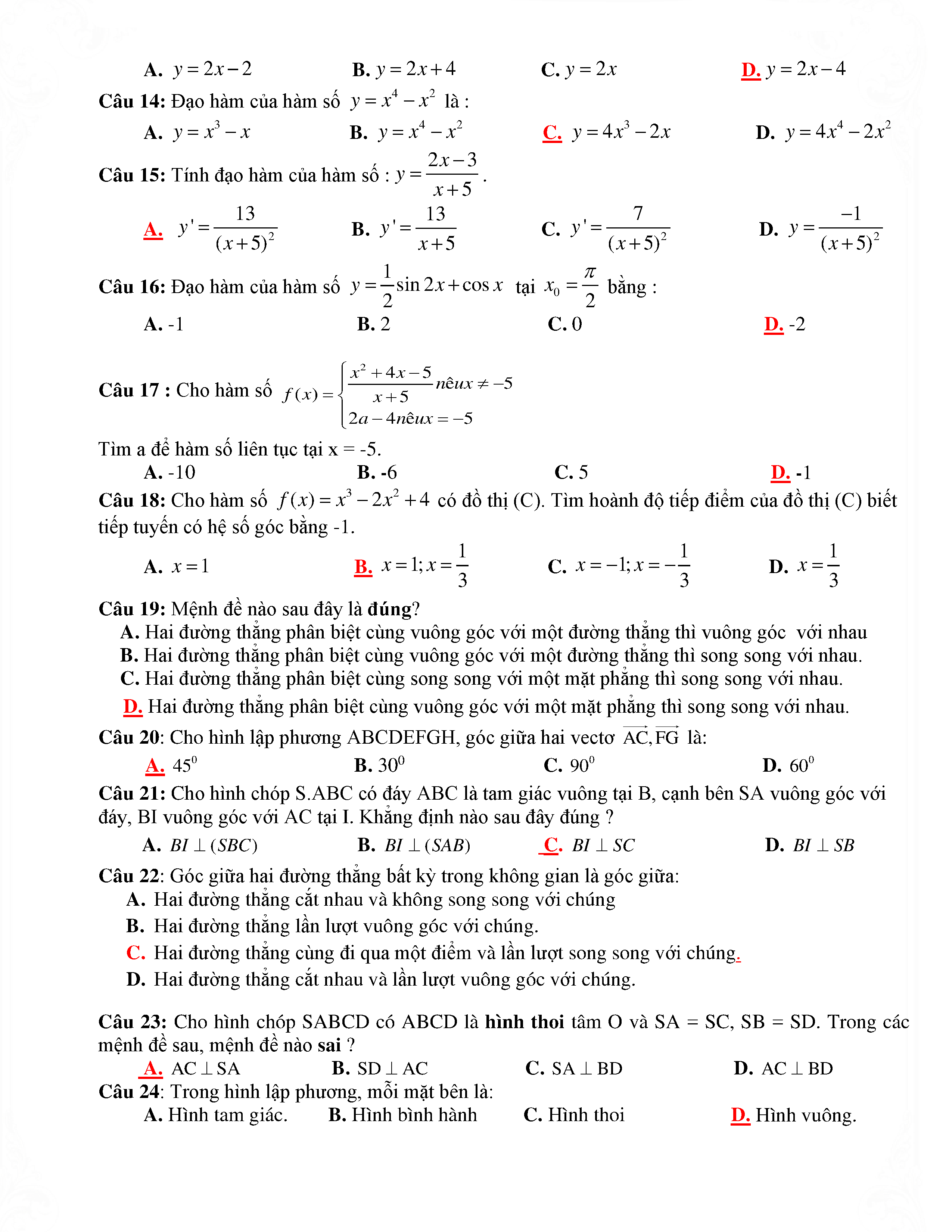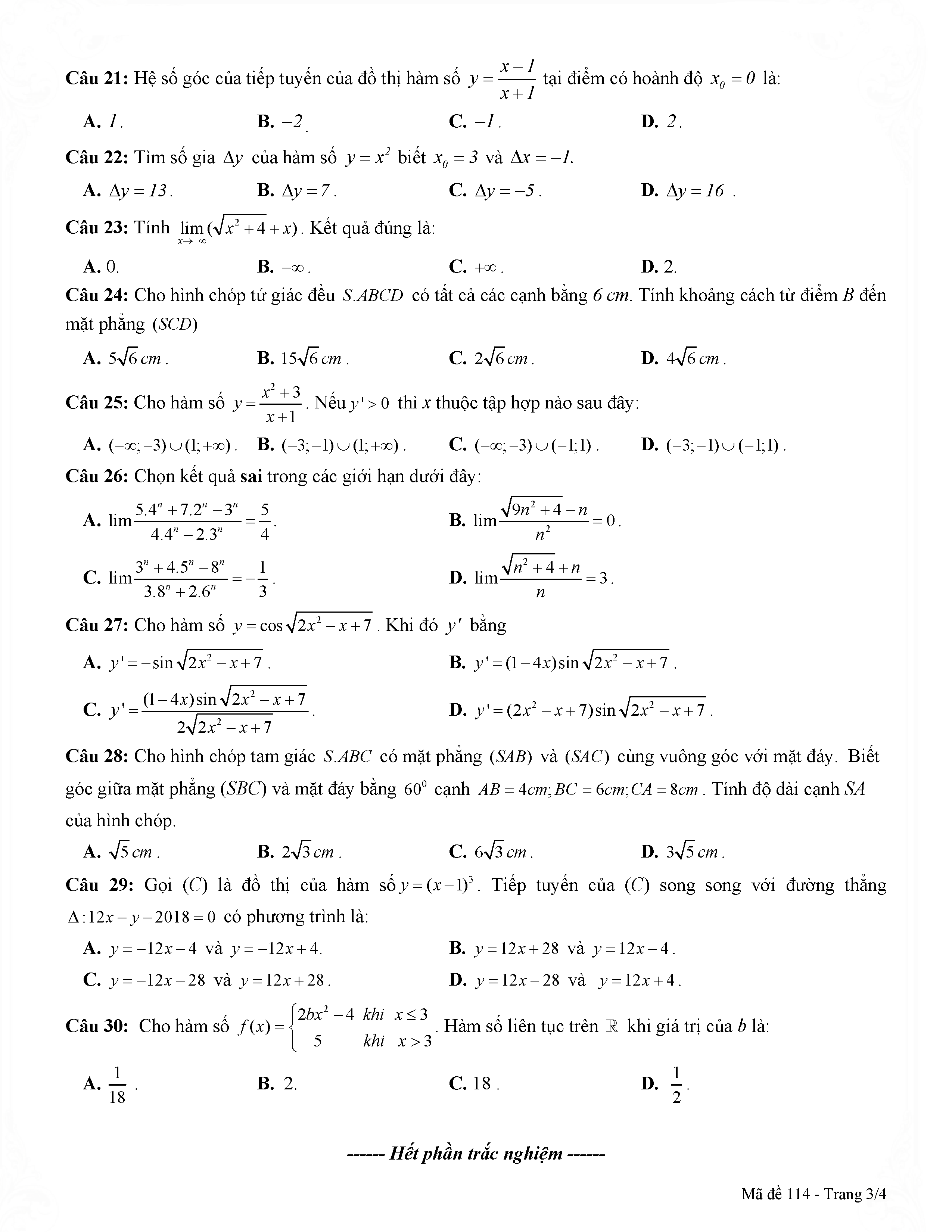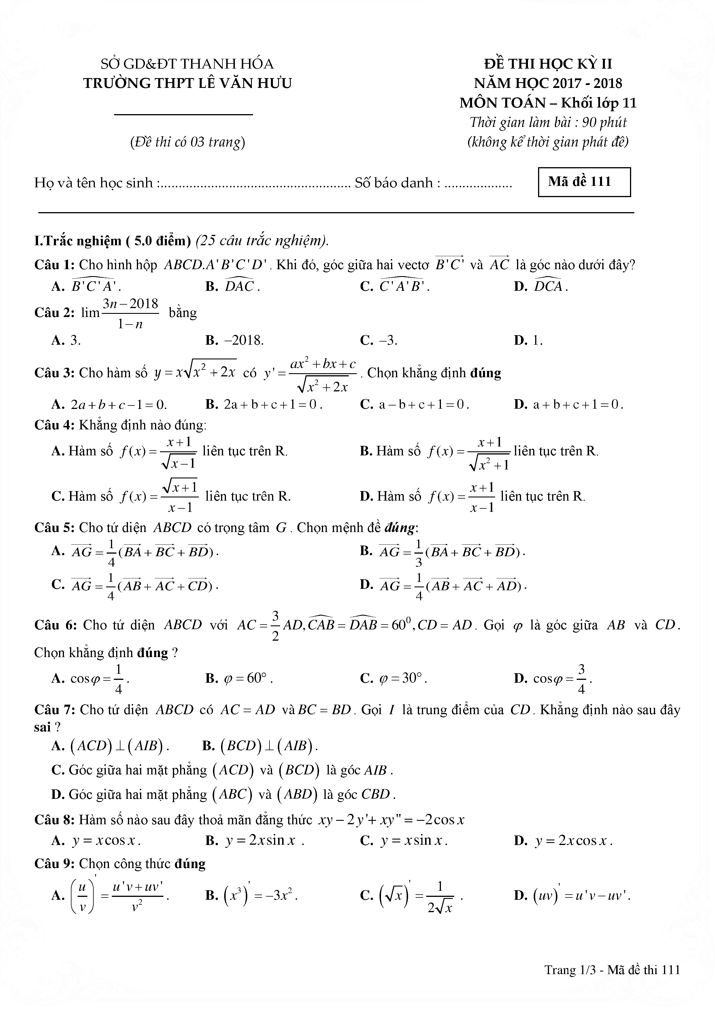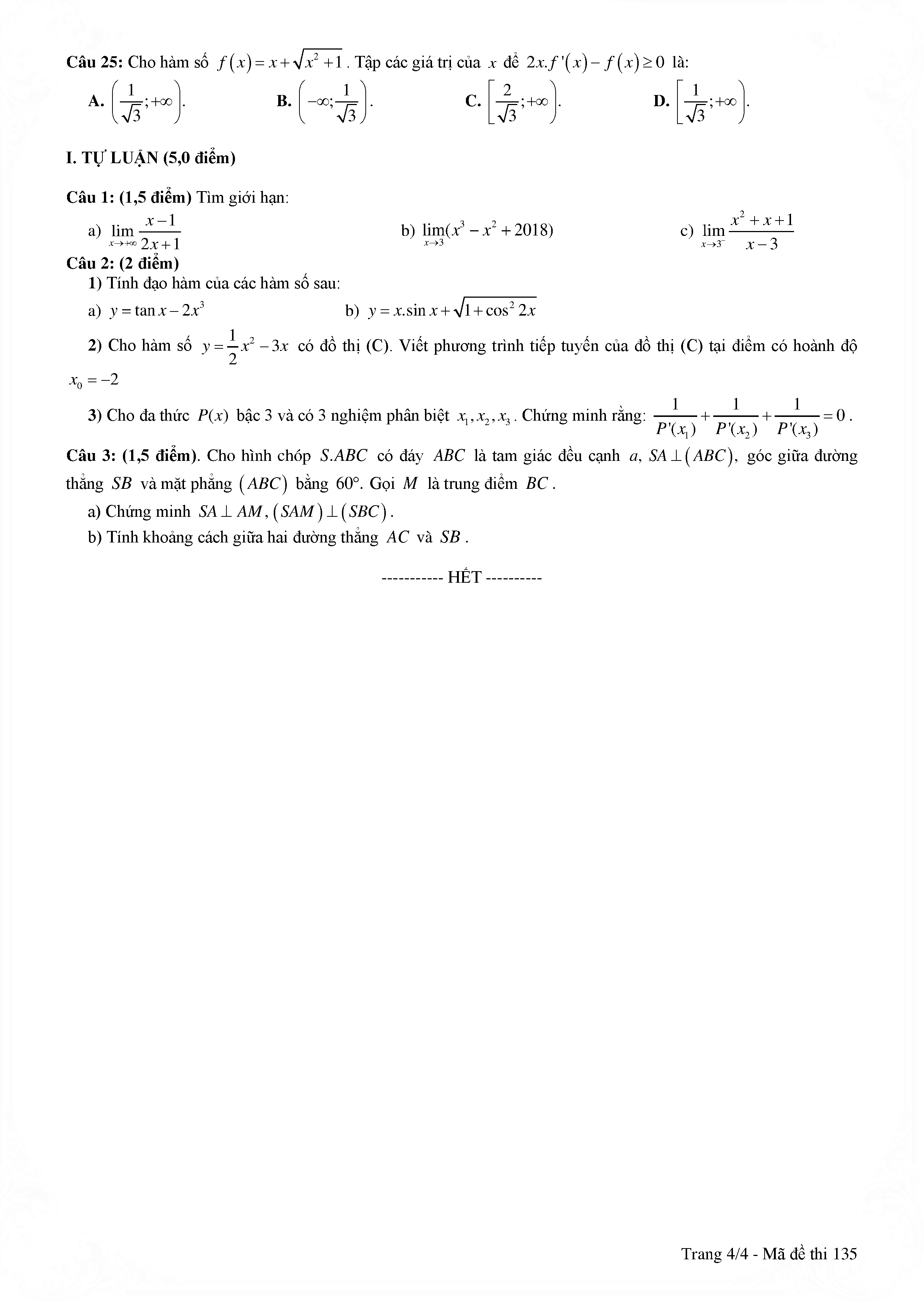 ĐỀ THI HỌC KÌ II TOÁN 11