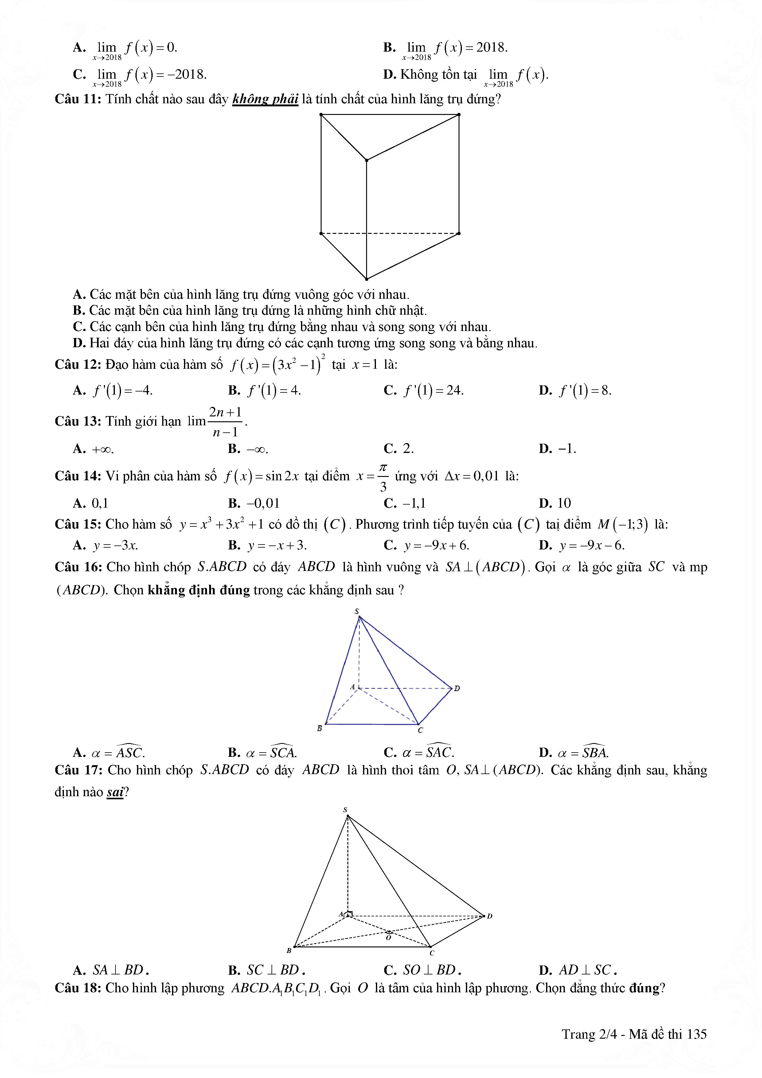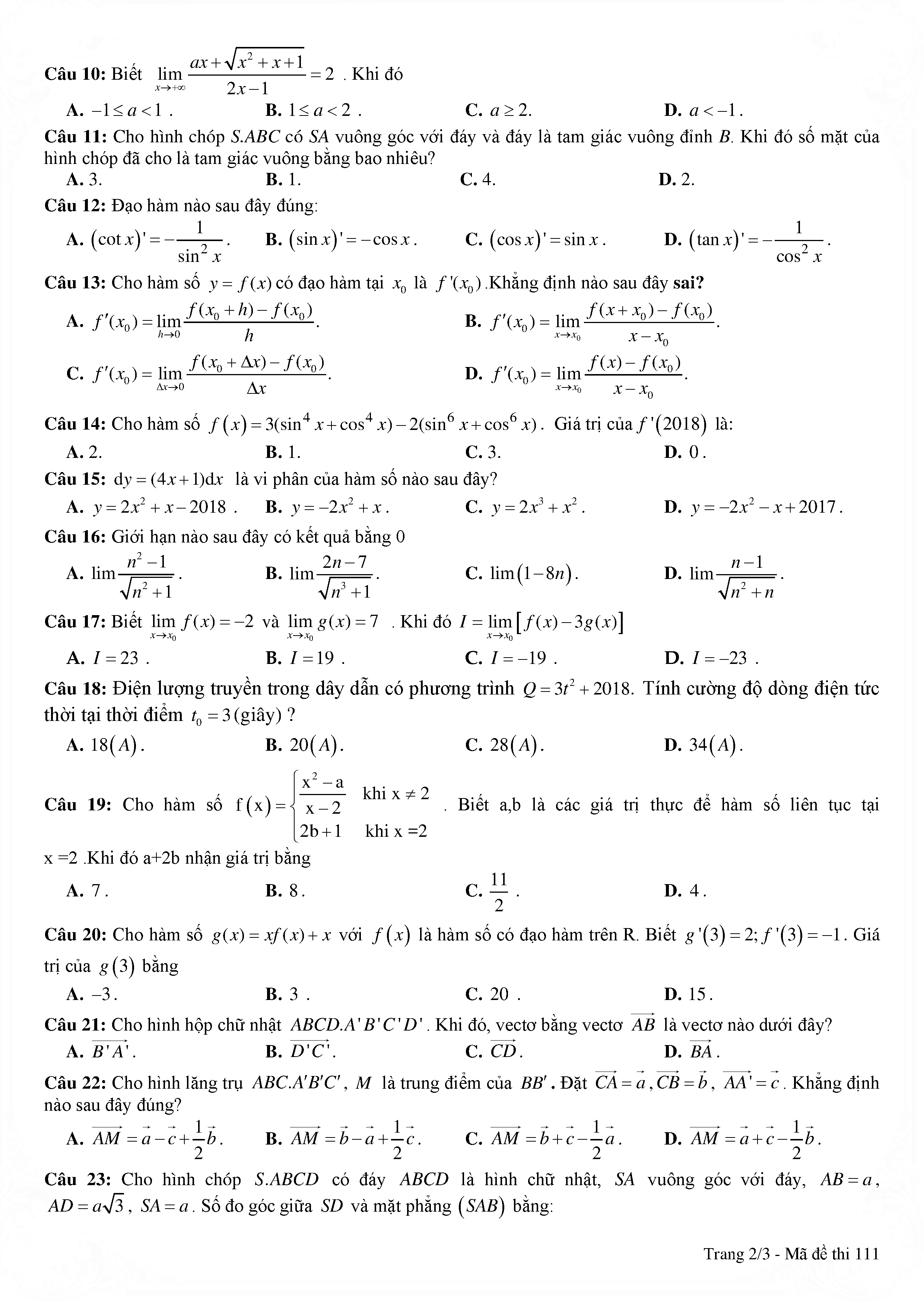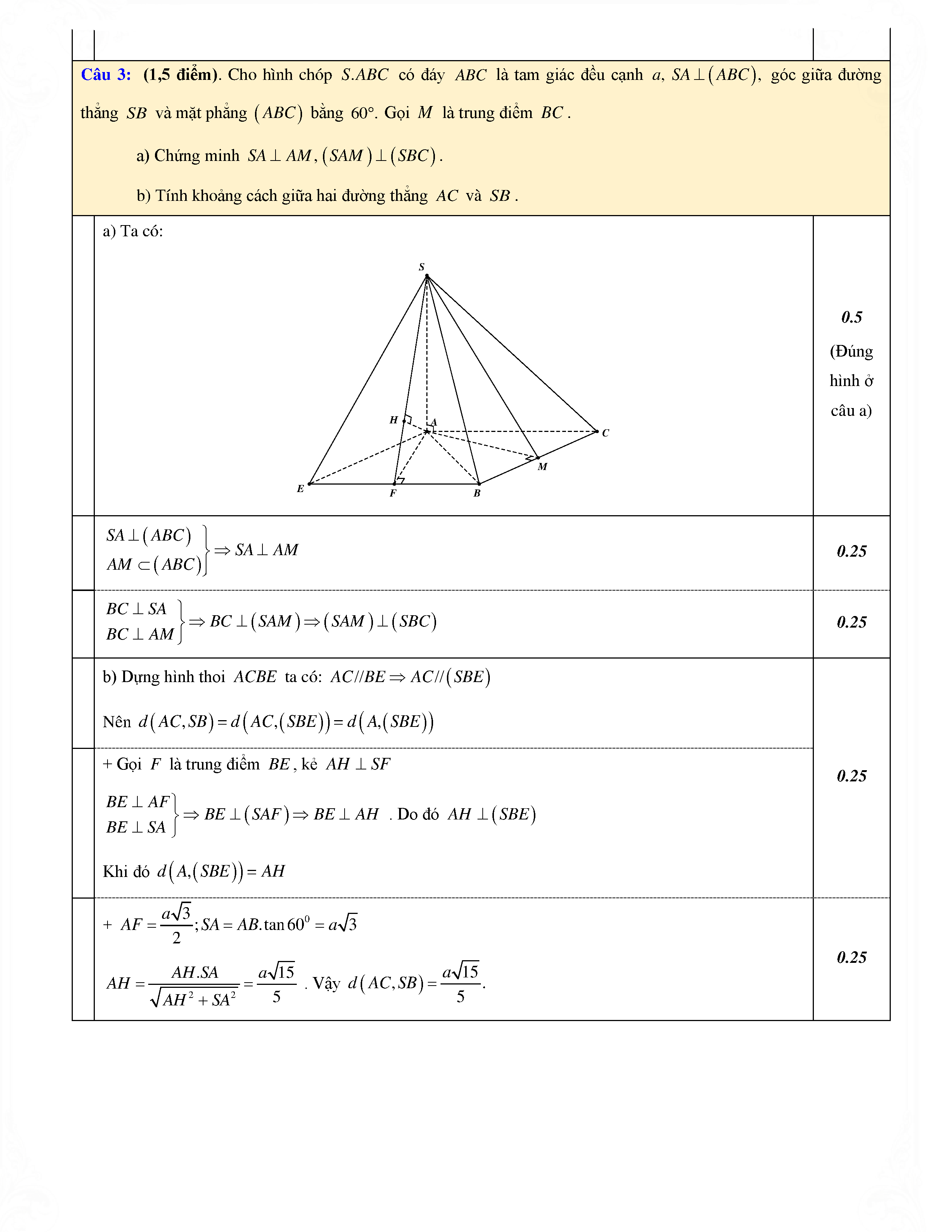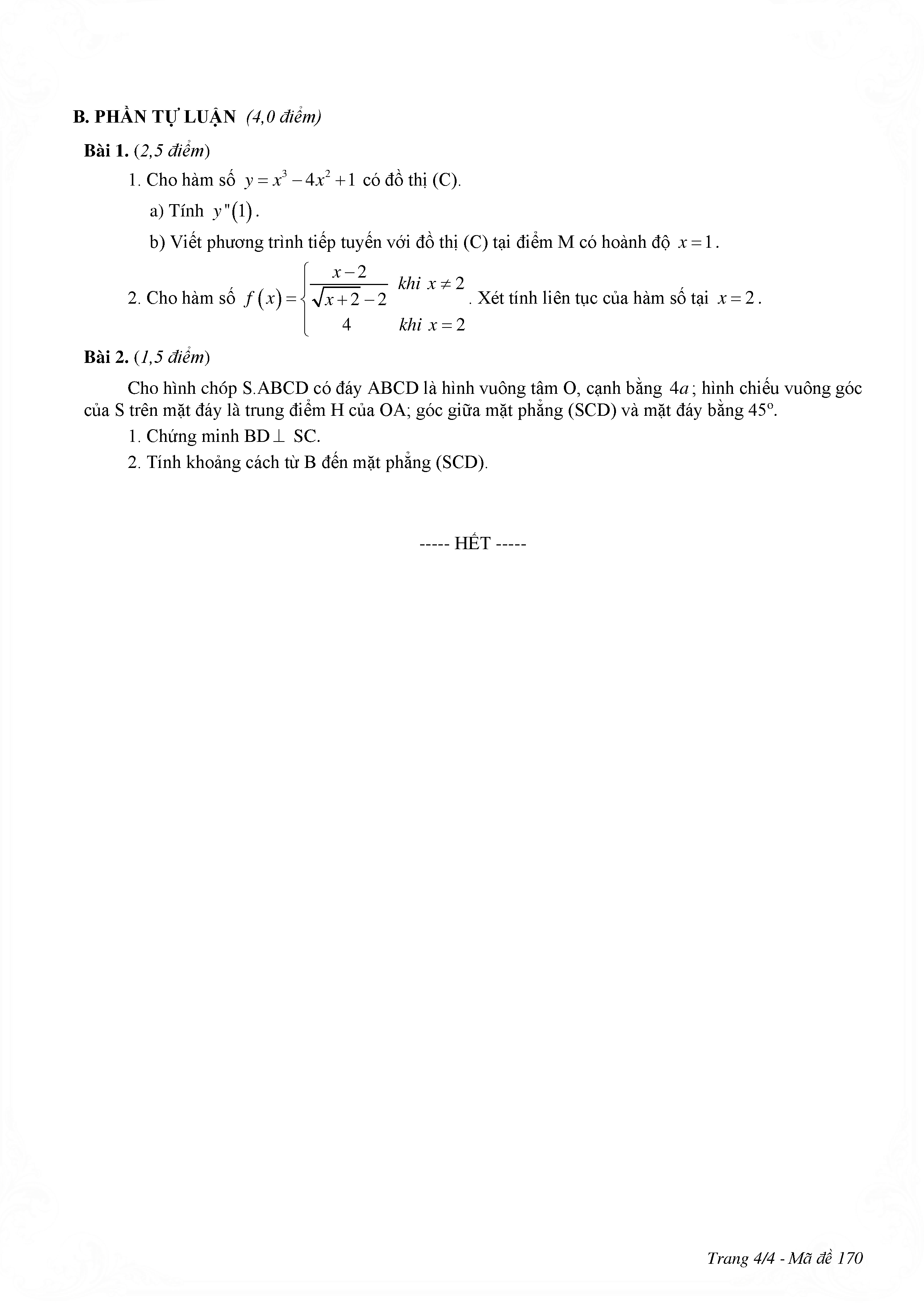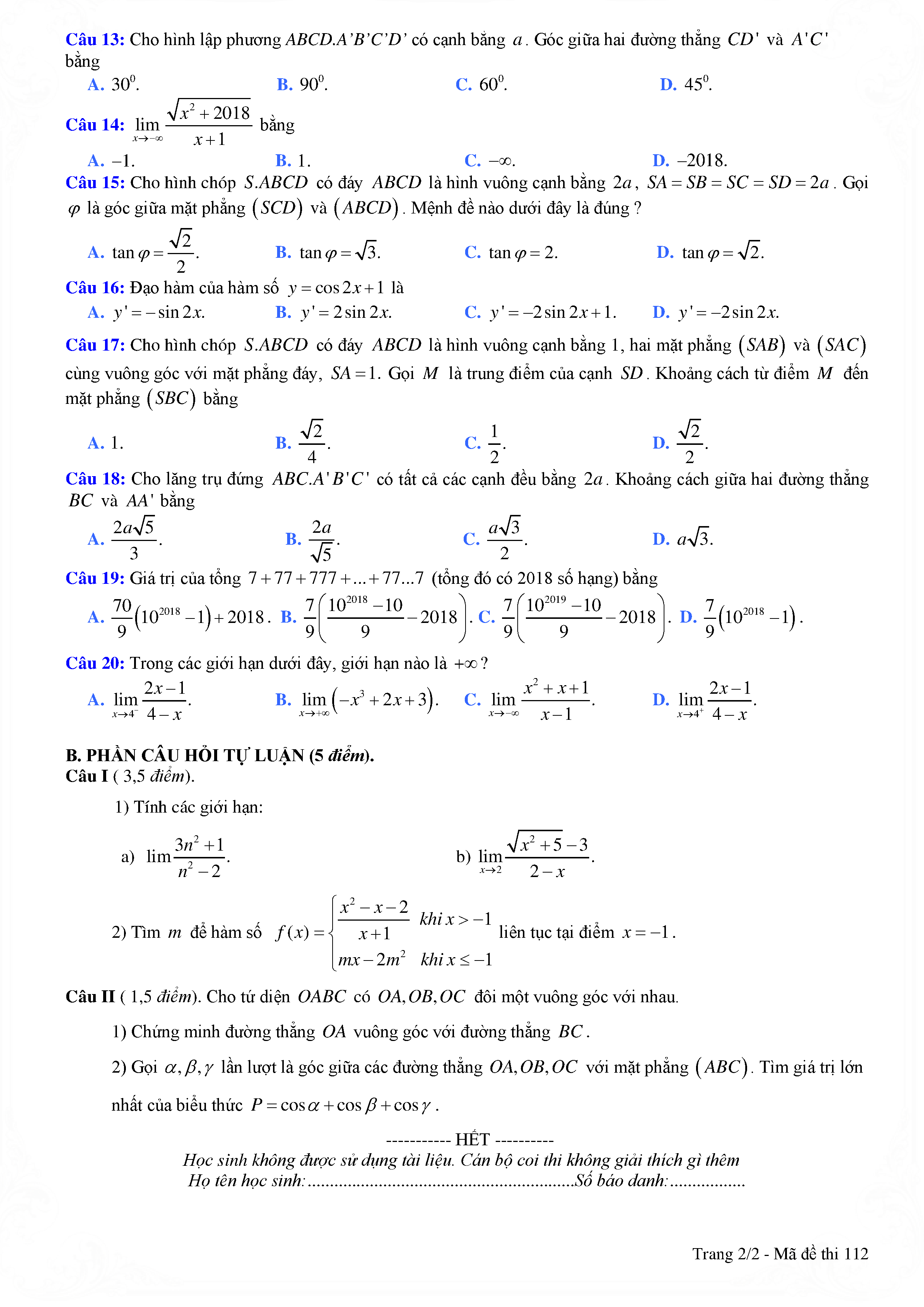 ĐỀ THI HỌC KÌ II TOÁN 11