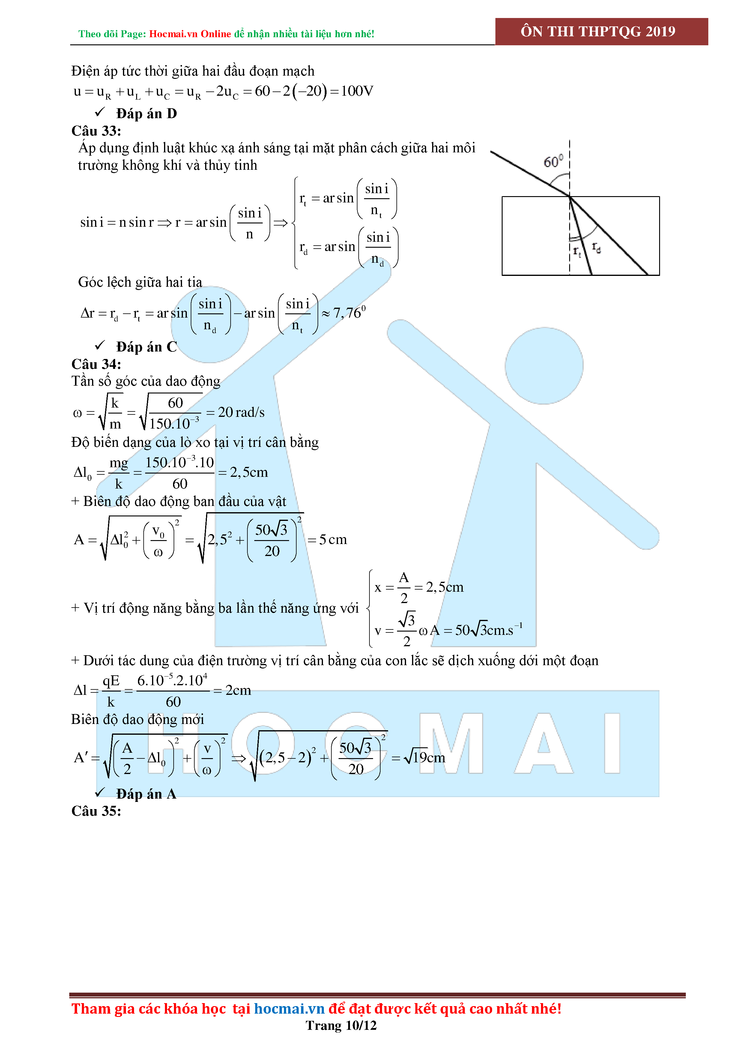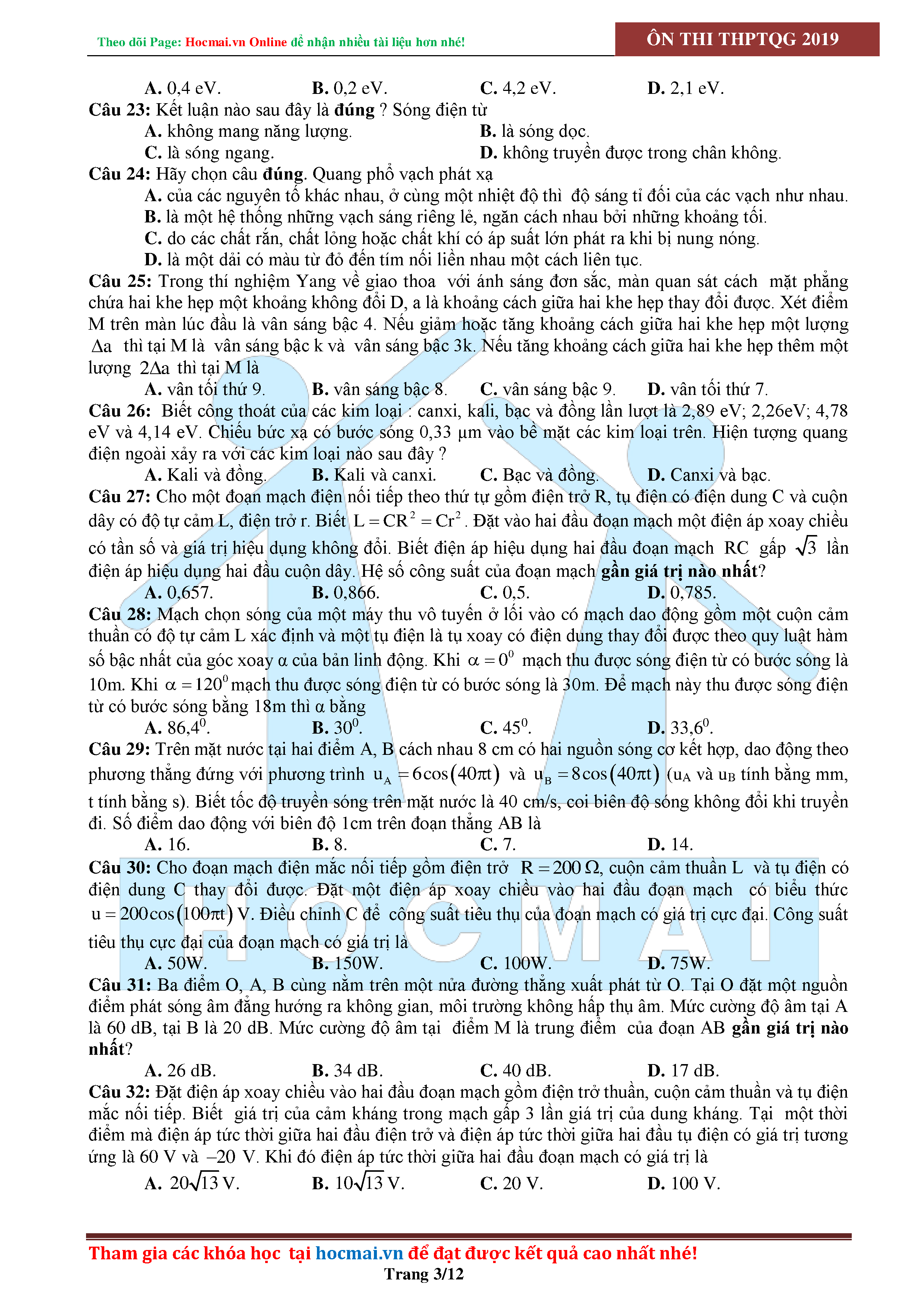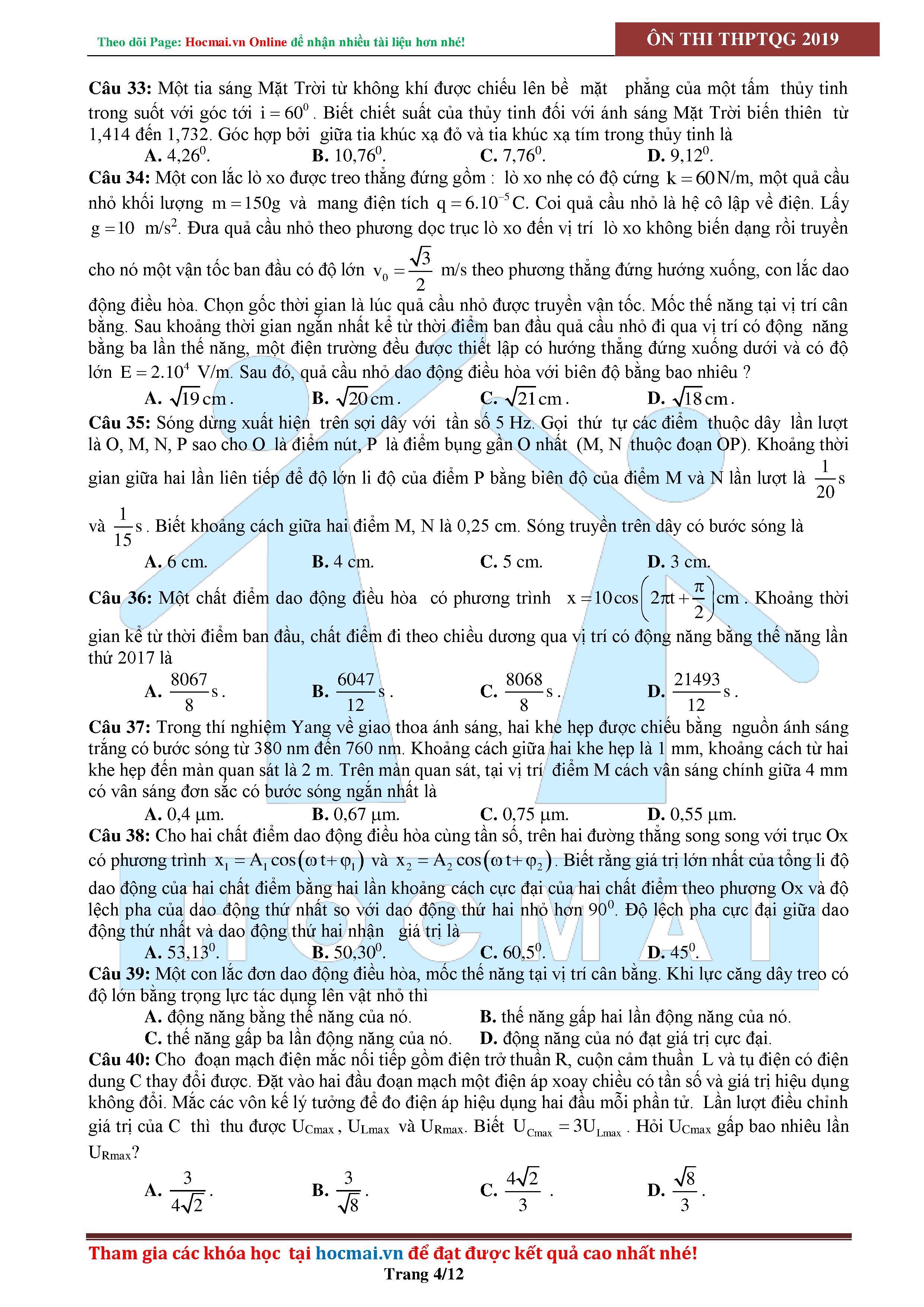 Đề thi thử thpt qg 2019 môn Vật Lí đề số 04 - có lời giải chi tiết giúp các em học sinh có thể vừa tự luyện tập lý thuyết, bài tập, vừa cọ sát với dạng đề thi tốt nghiệp THPT môn Vật Lí