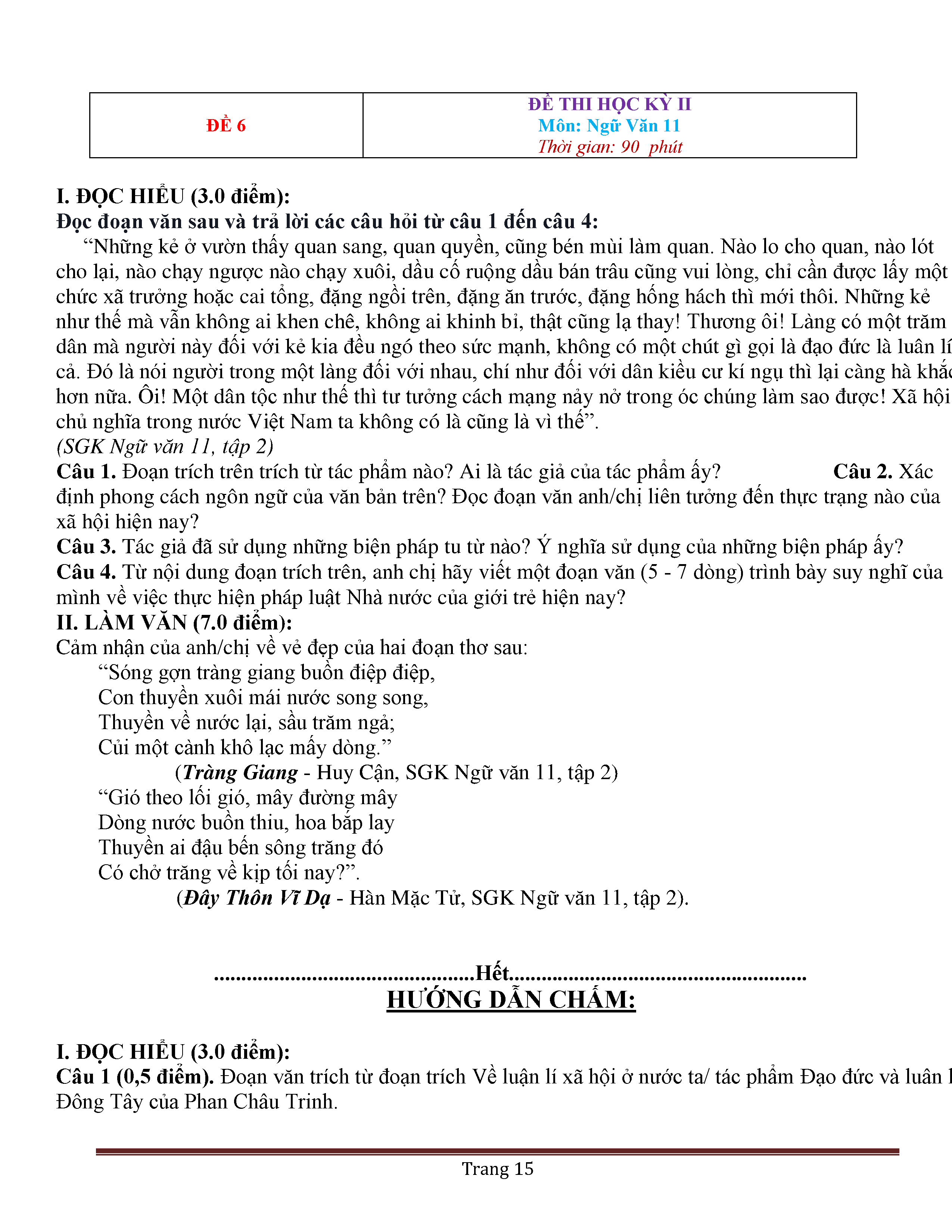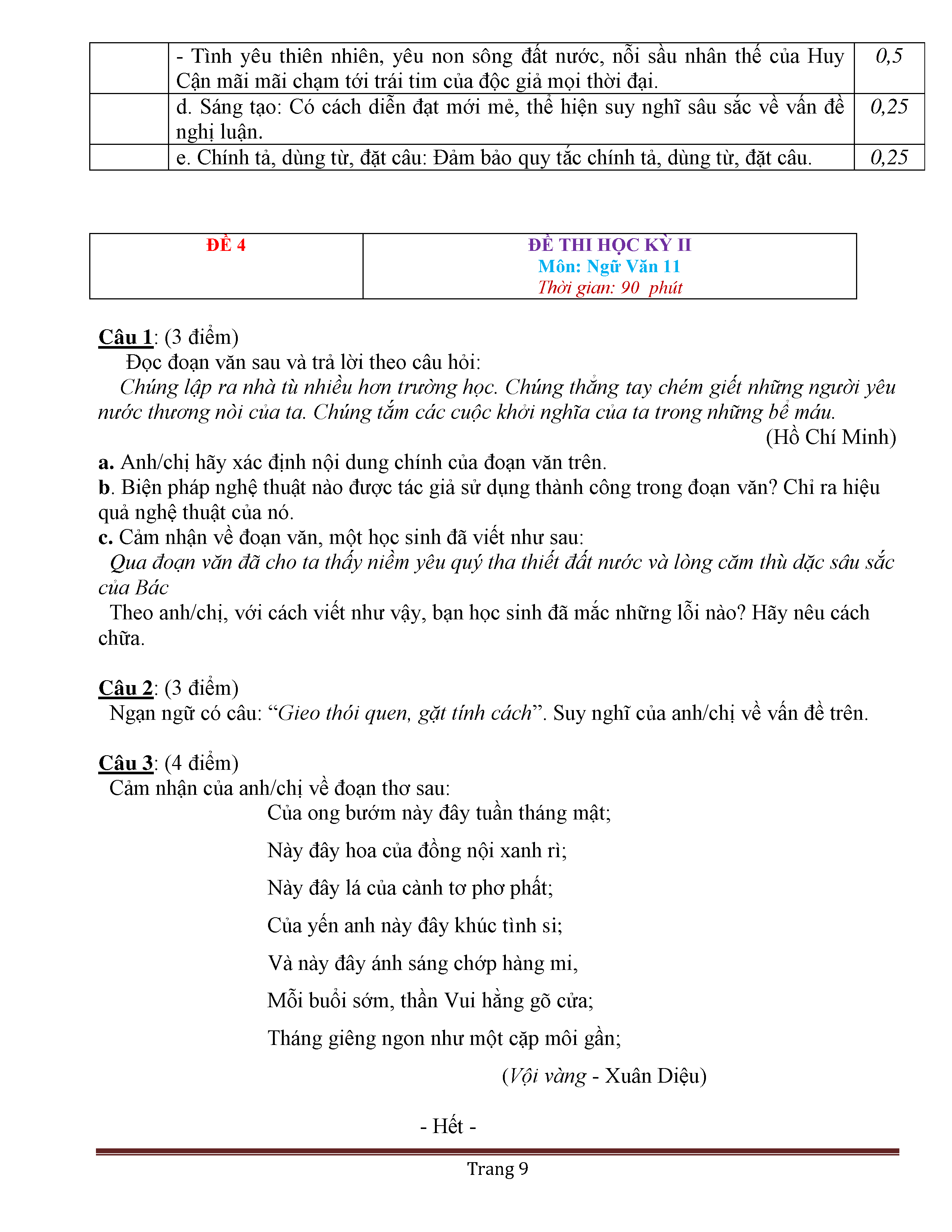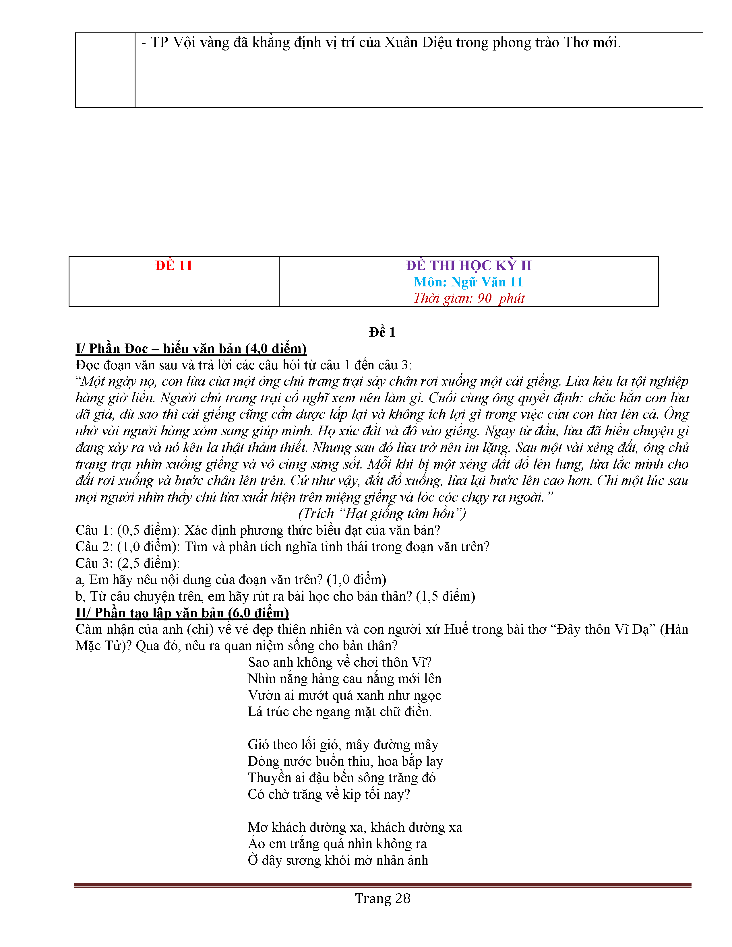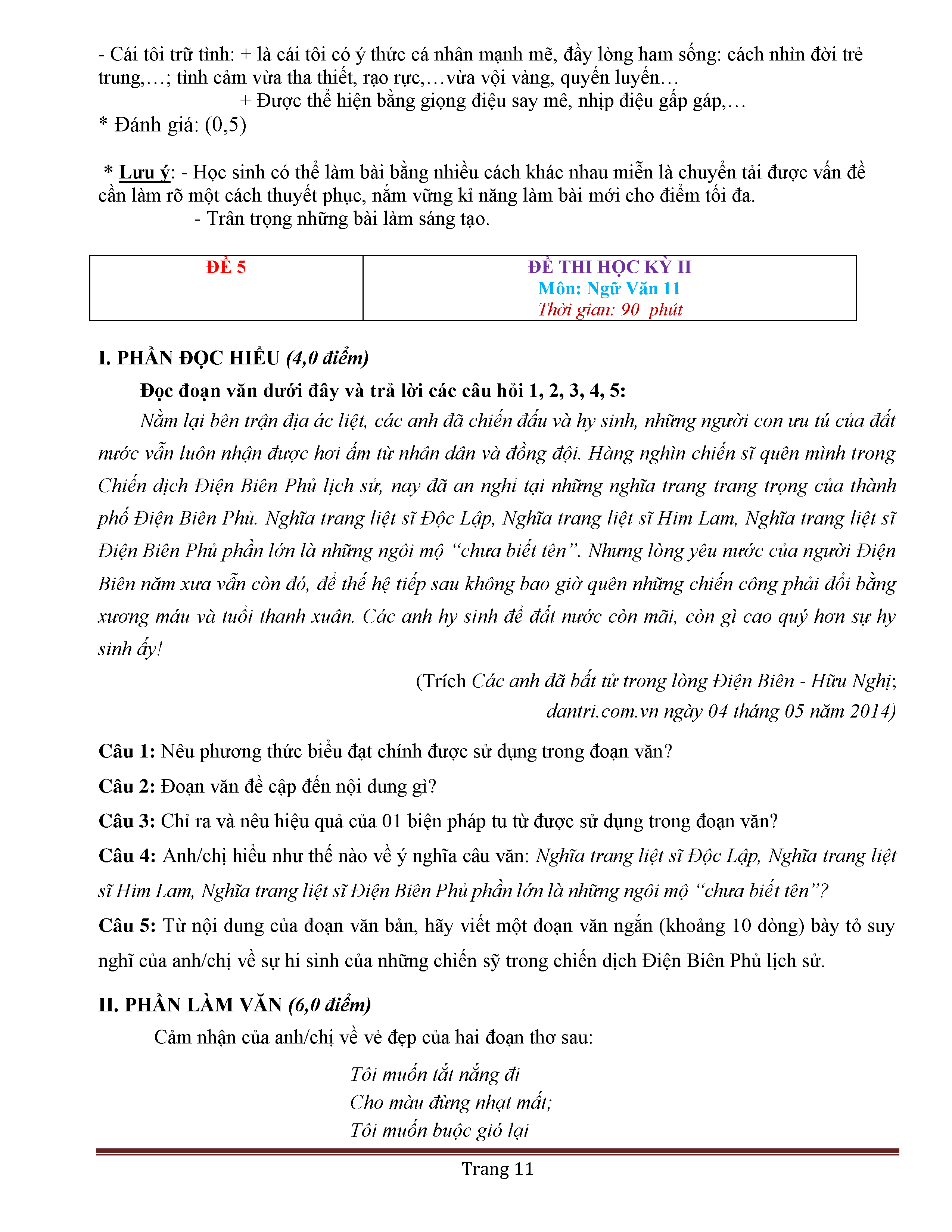 ĐỀ THI HỌC KÌ II NGỮ VĂN 11