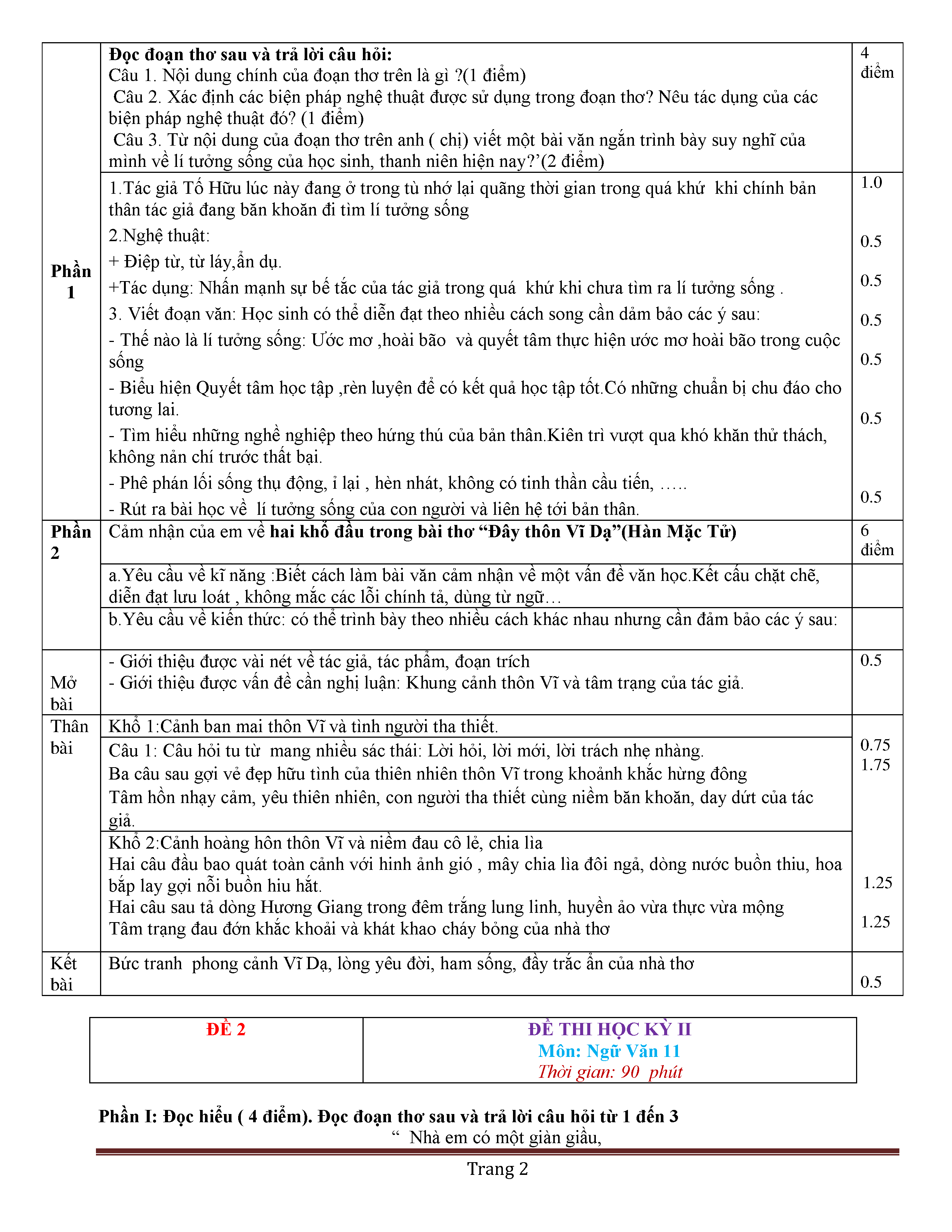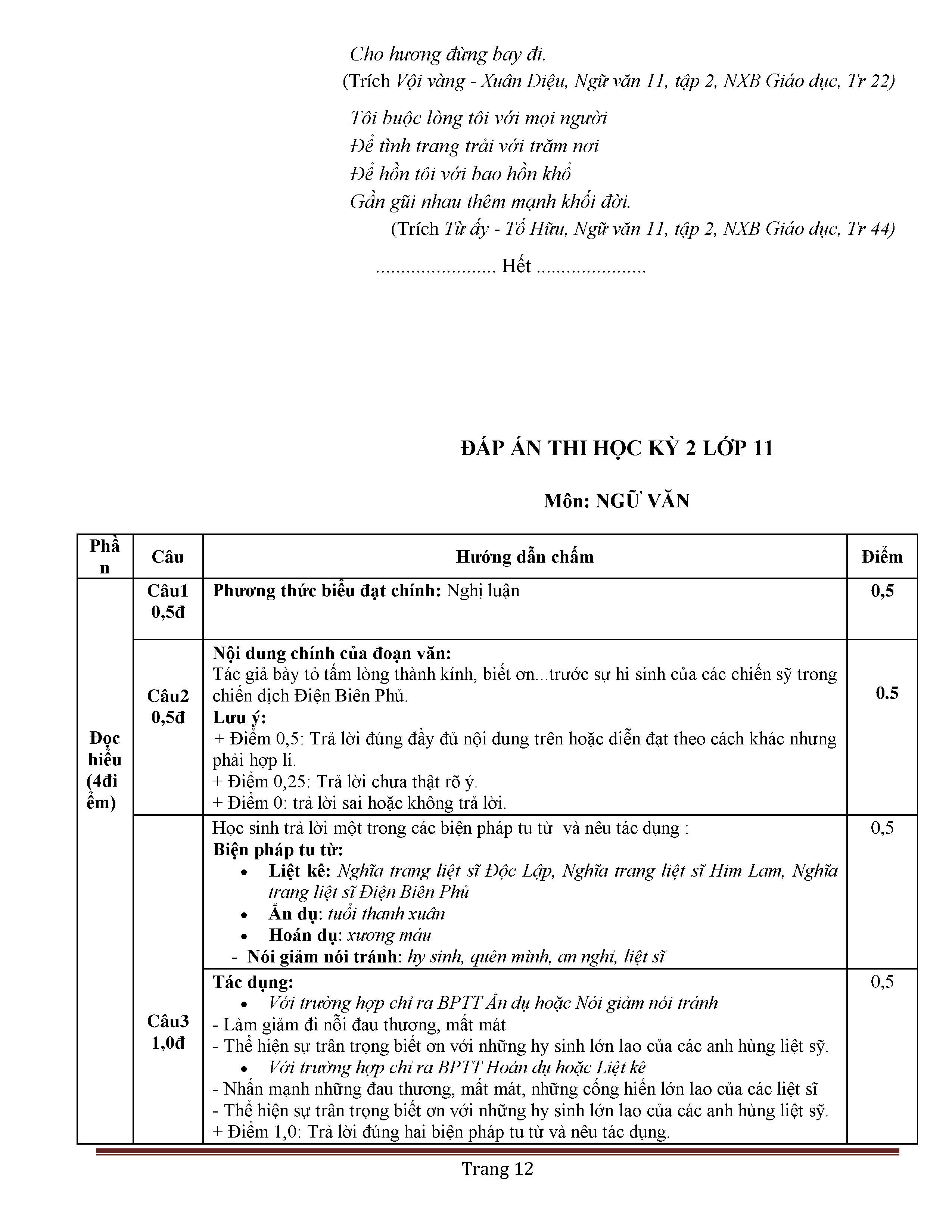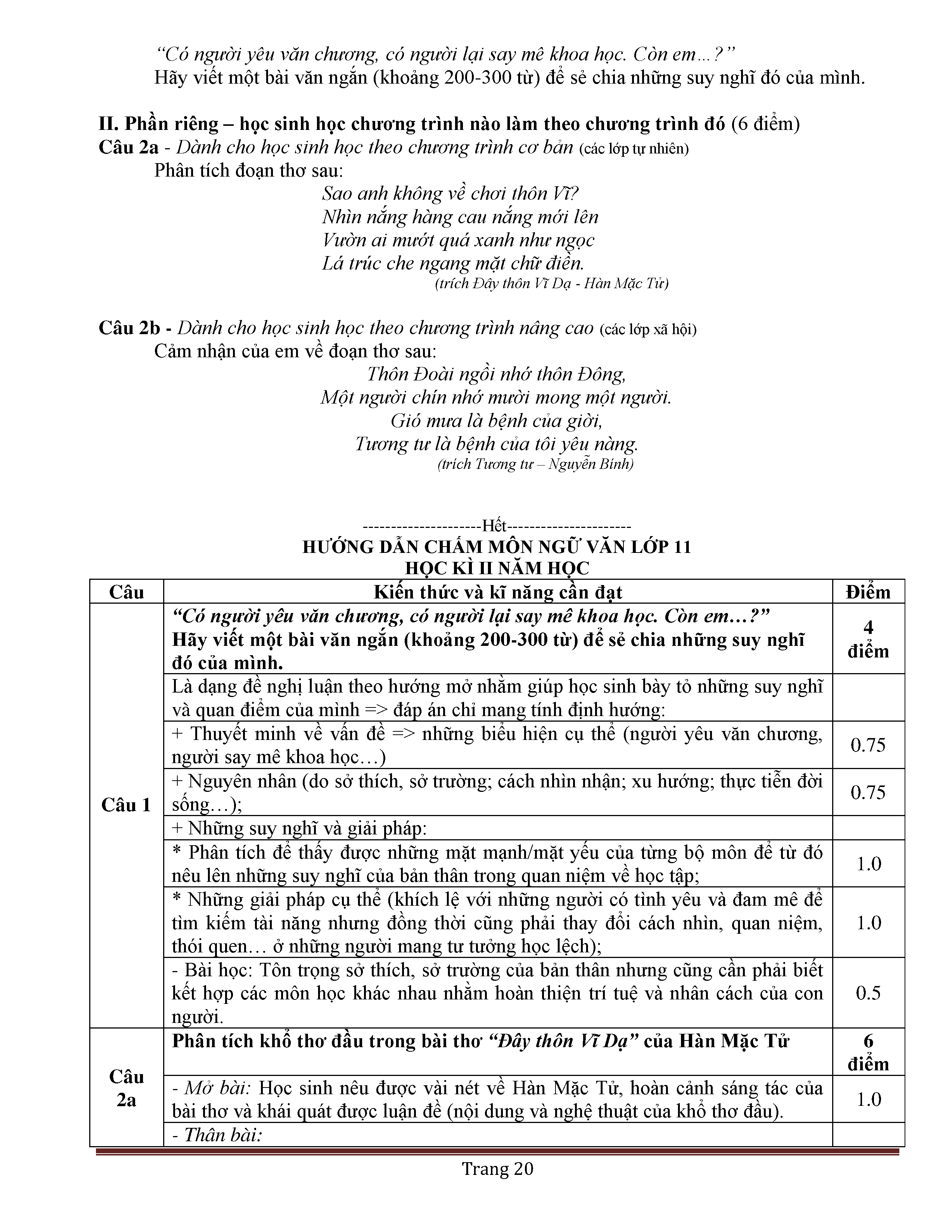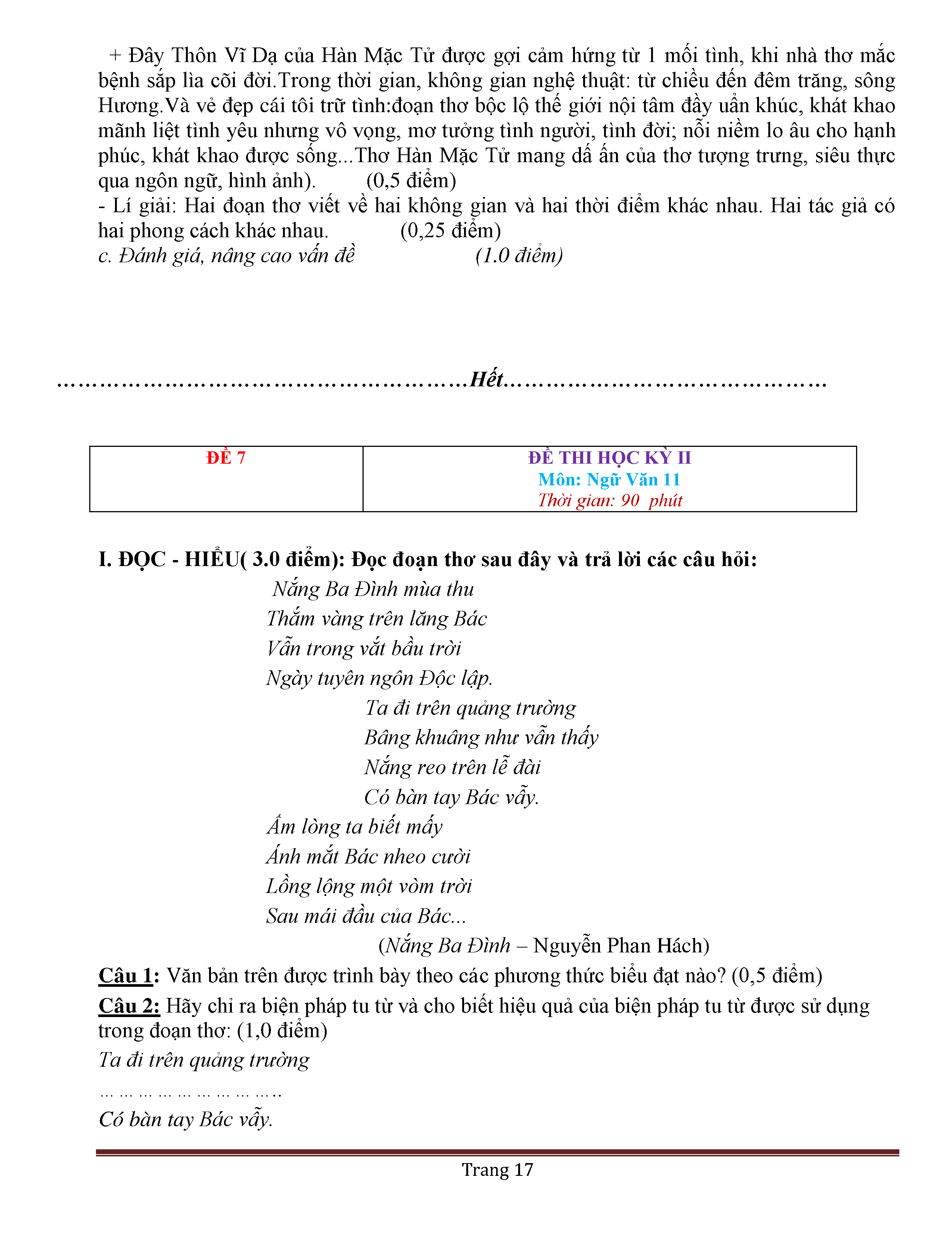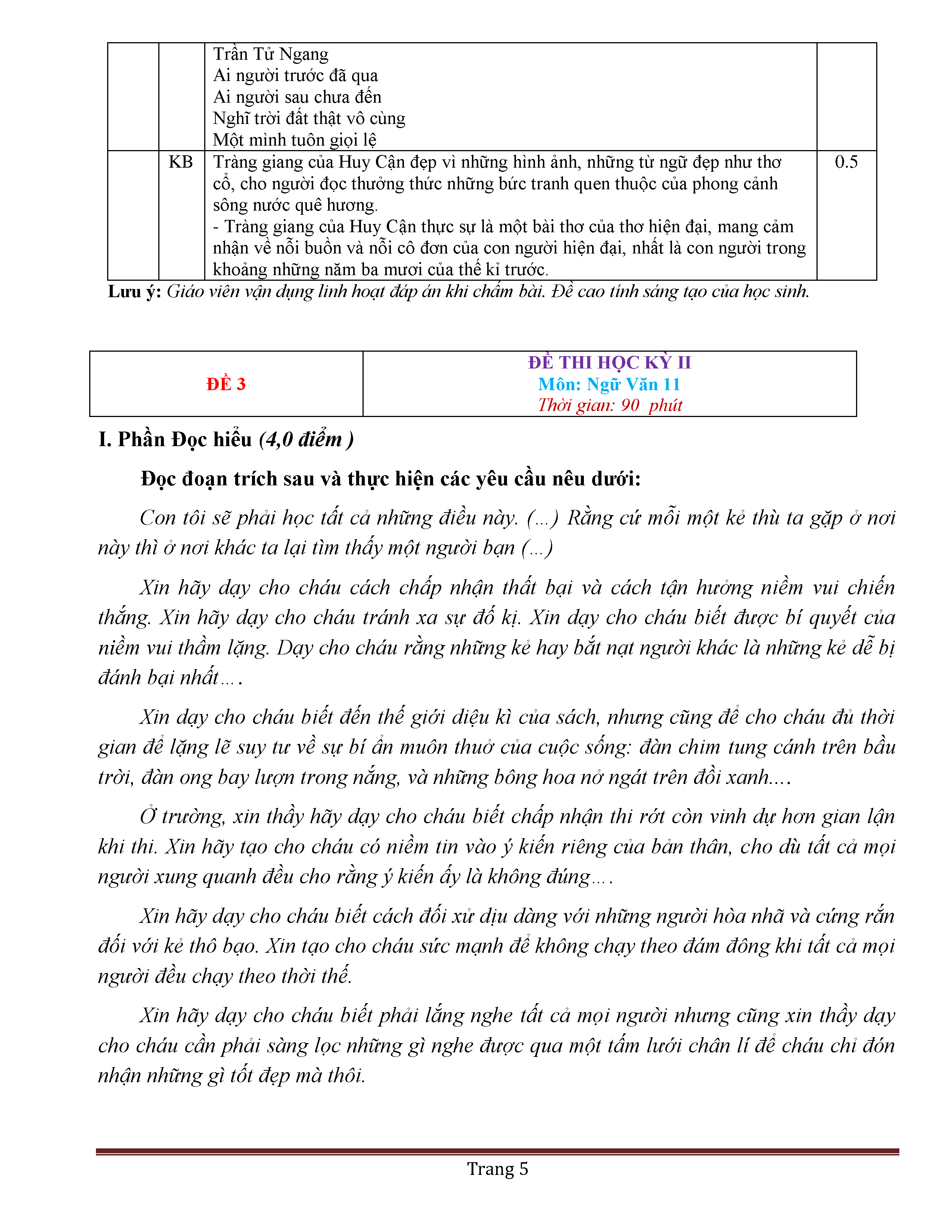 ĐỀ THI HỌC KÌ II NGỮ VĂN 11