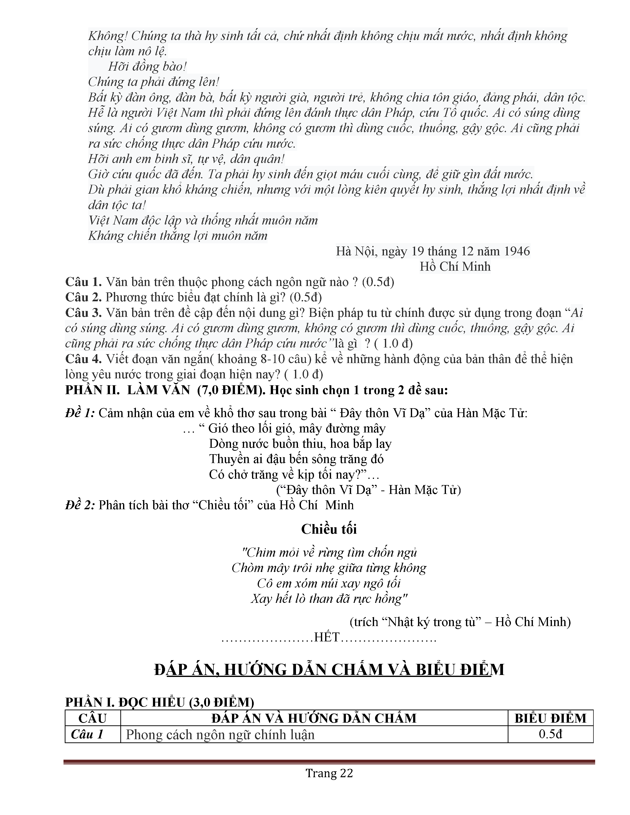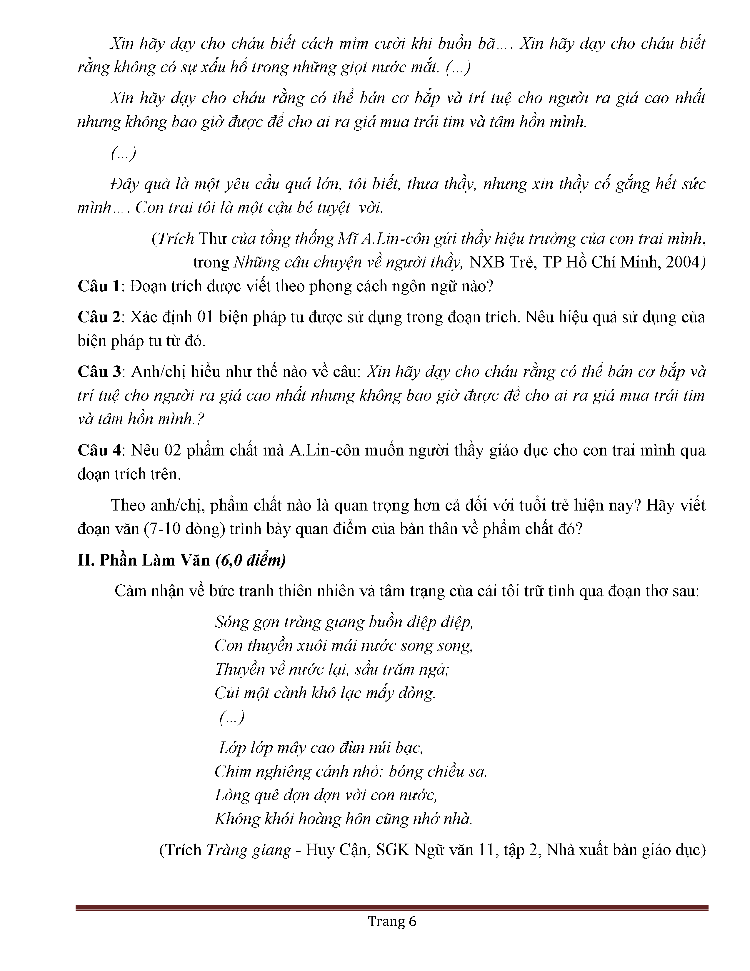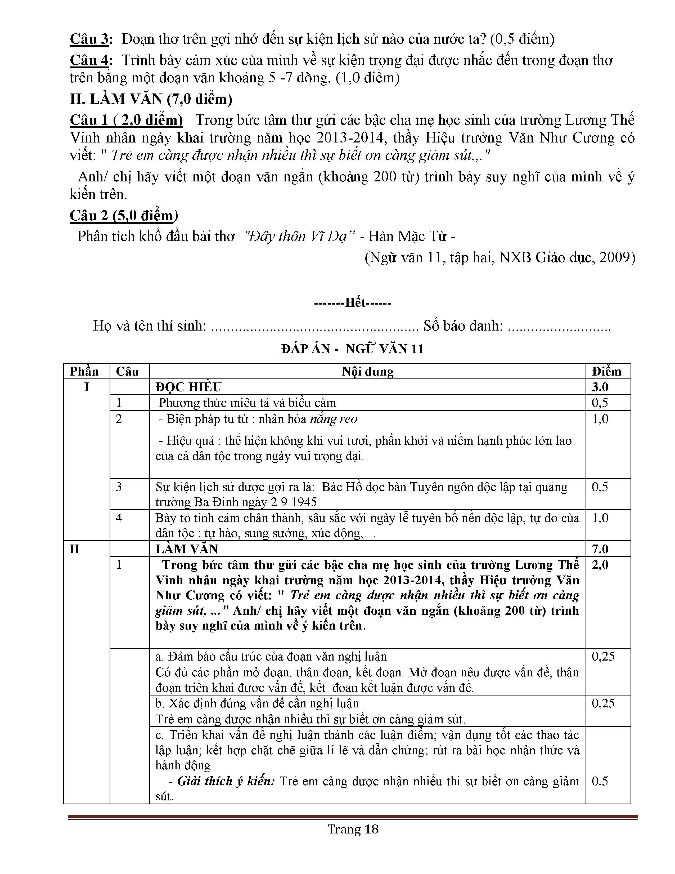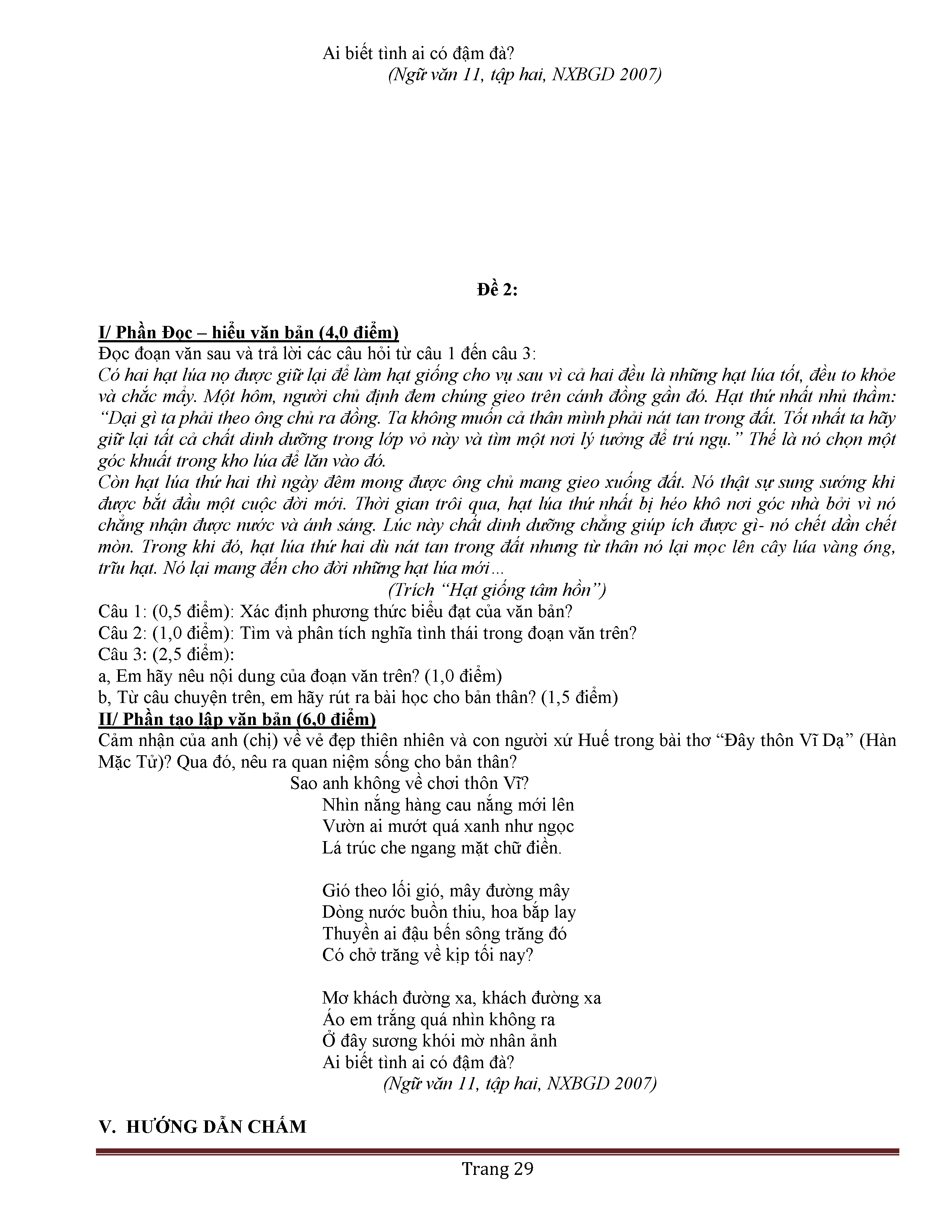 ĐỀ THI HỌC KÌ II NGỮ VĂN 11