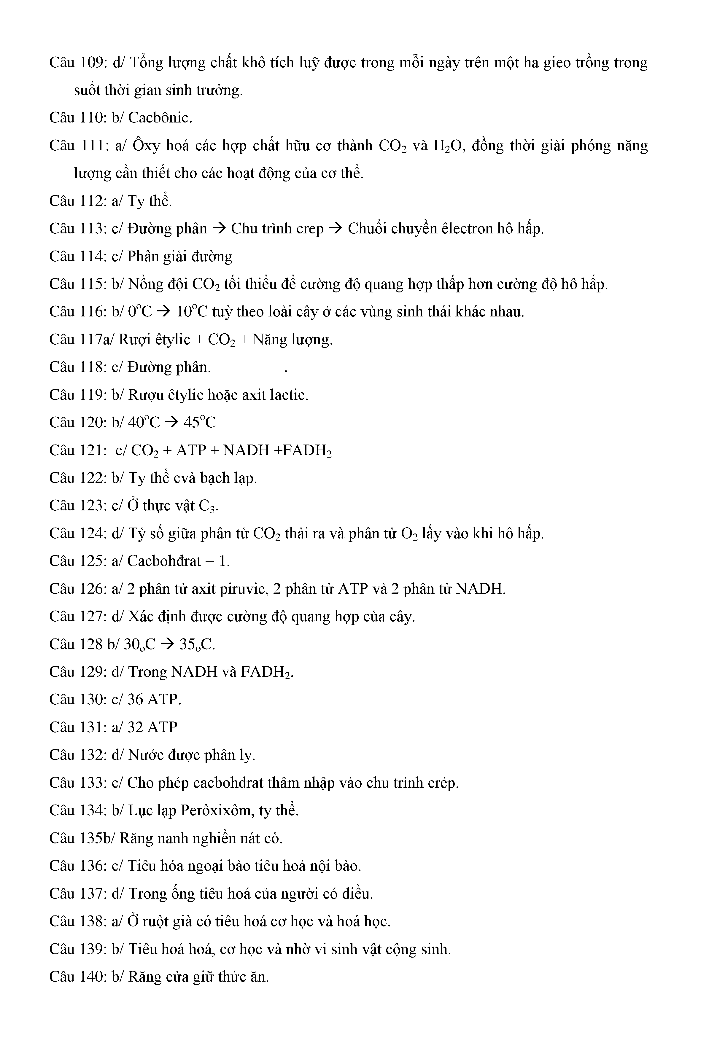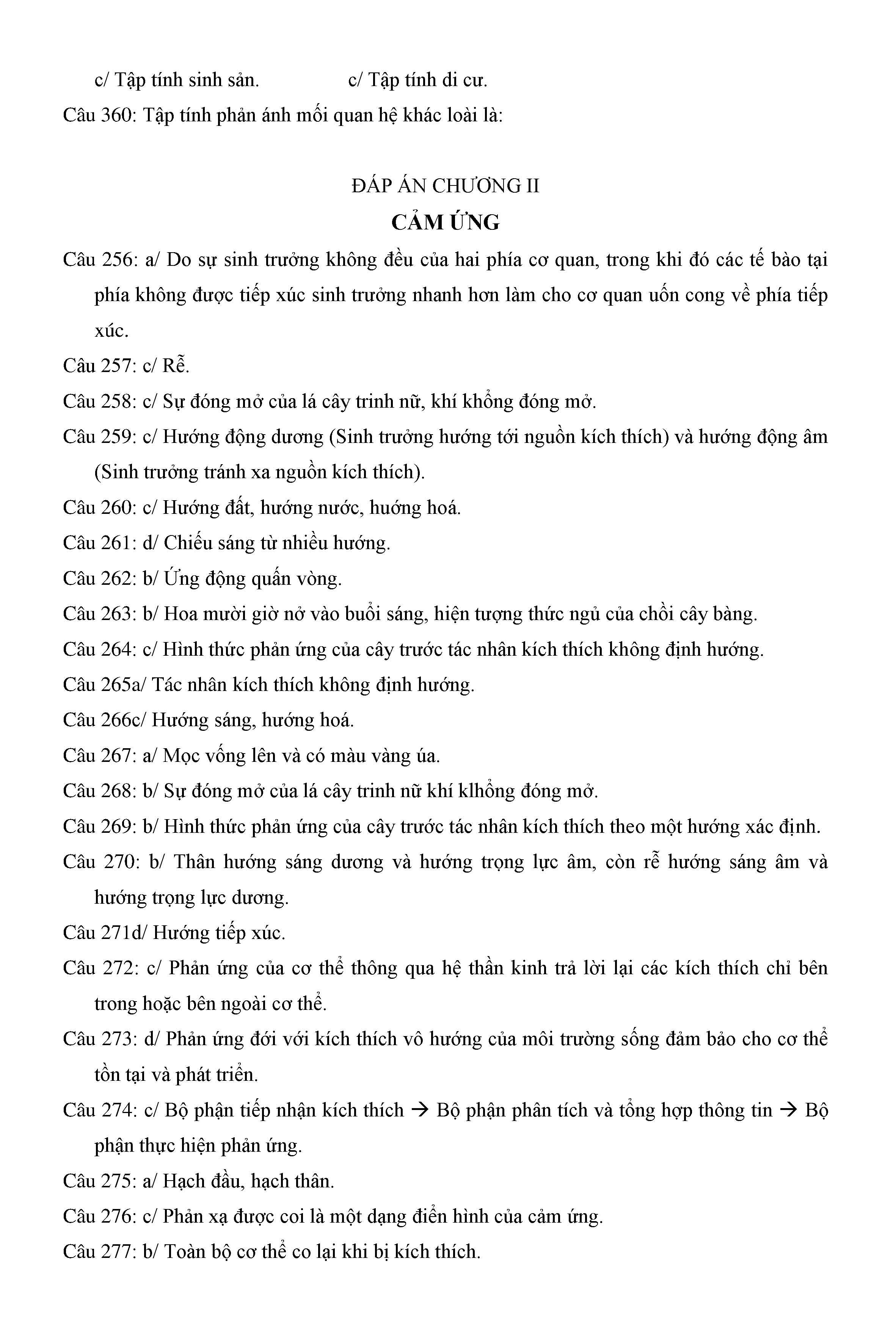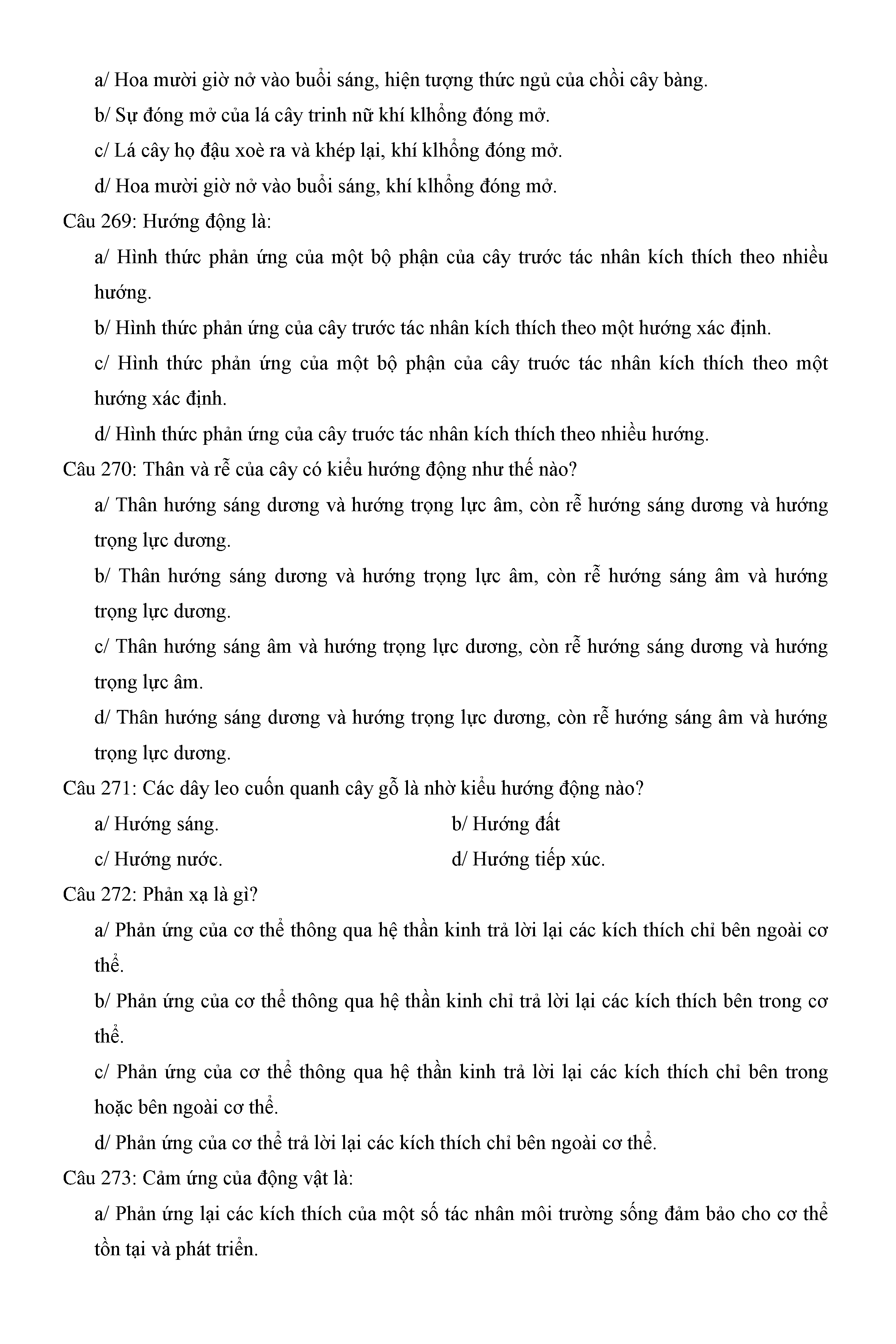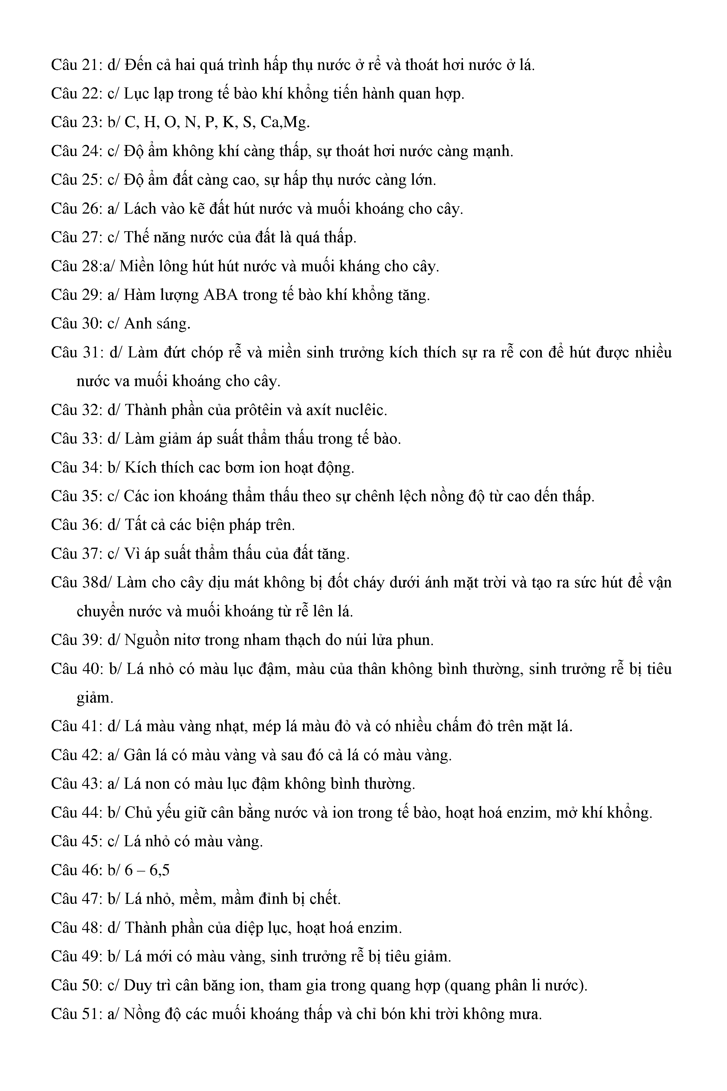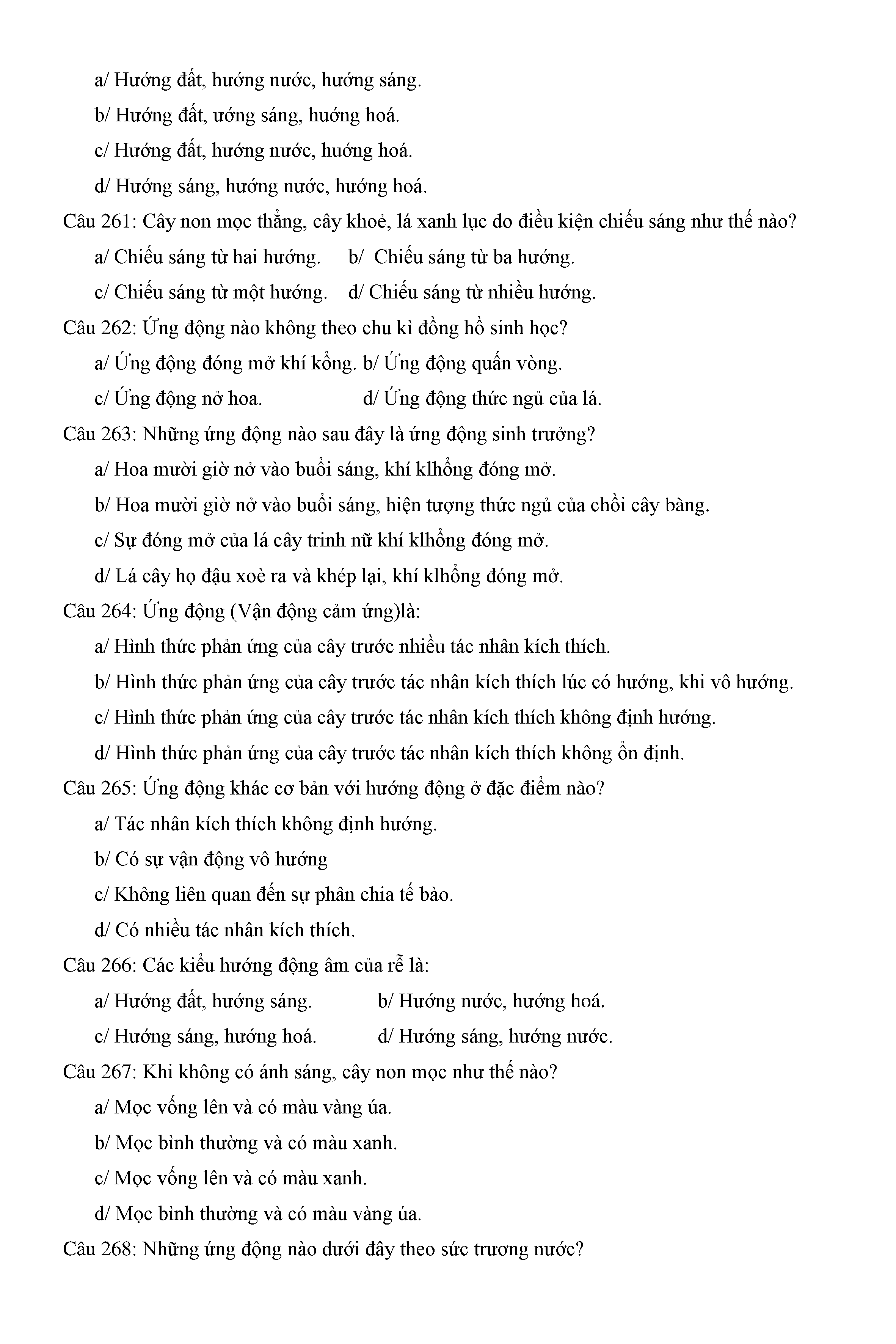 Trắc nghiệm Sinh học 11 (có đáp án)