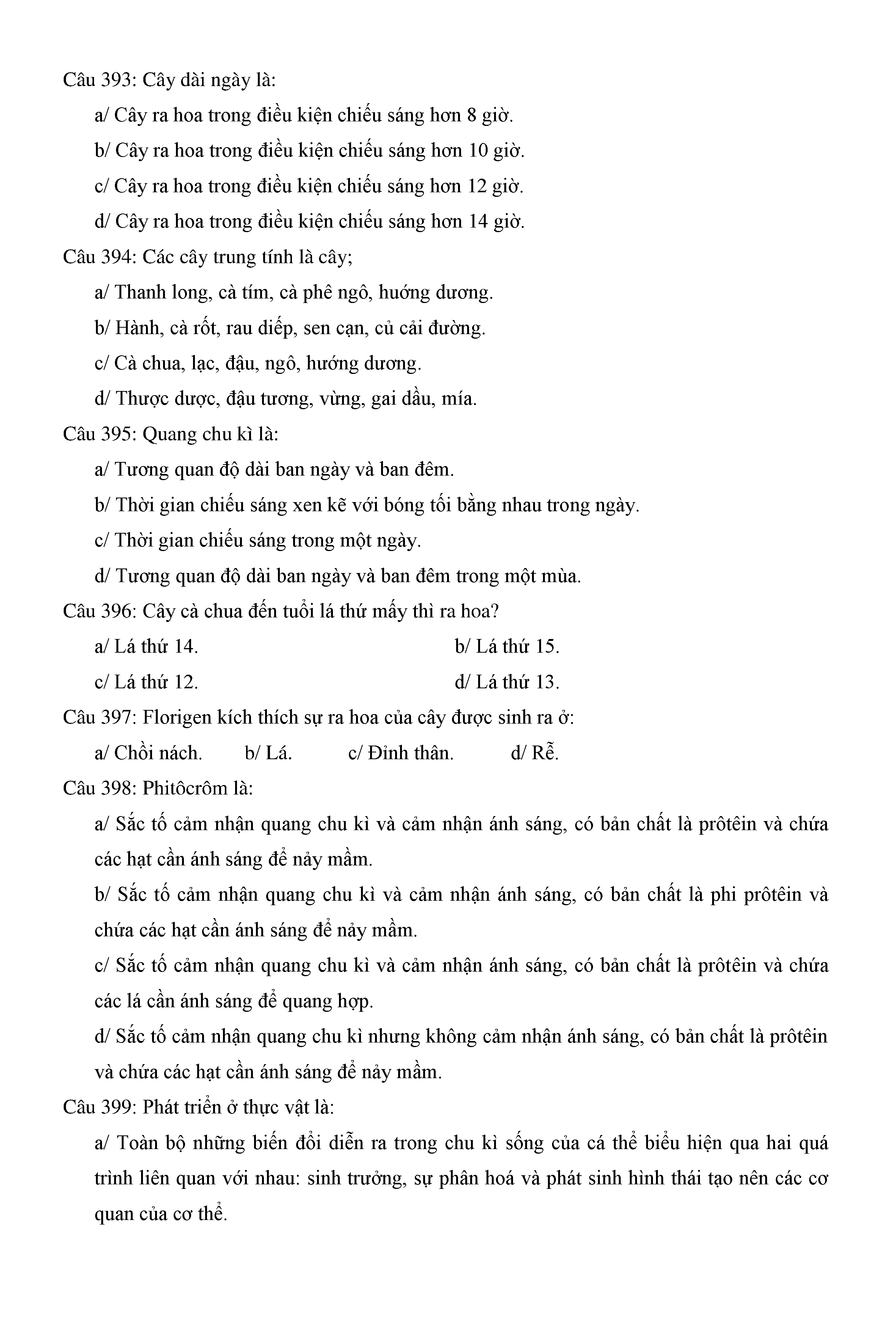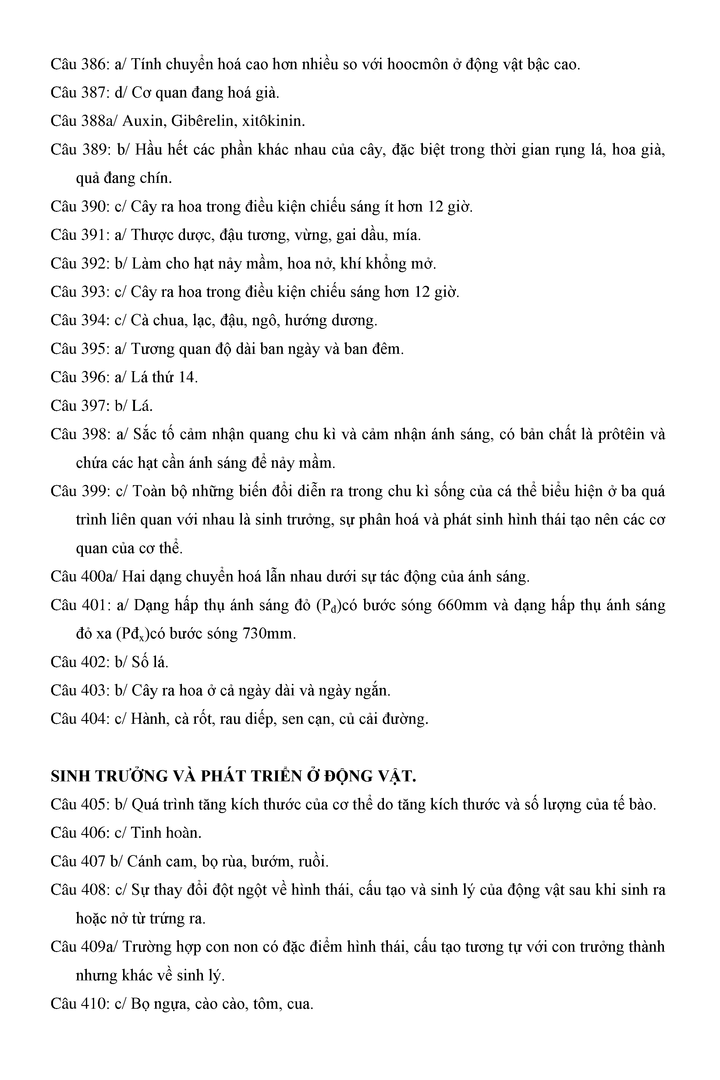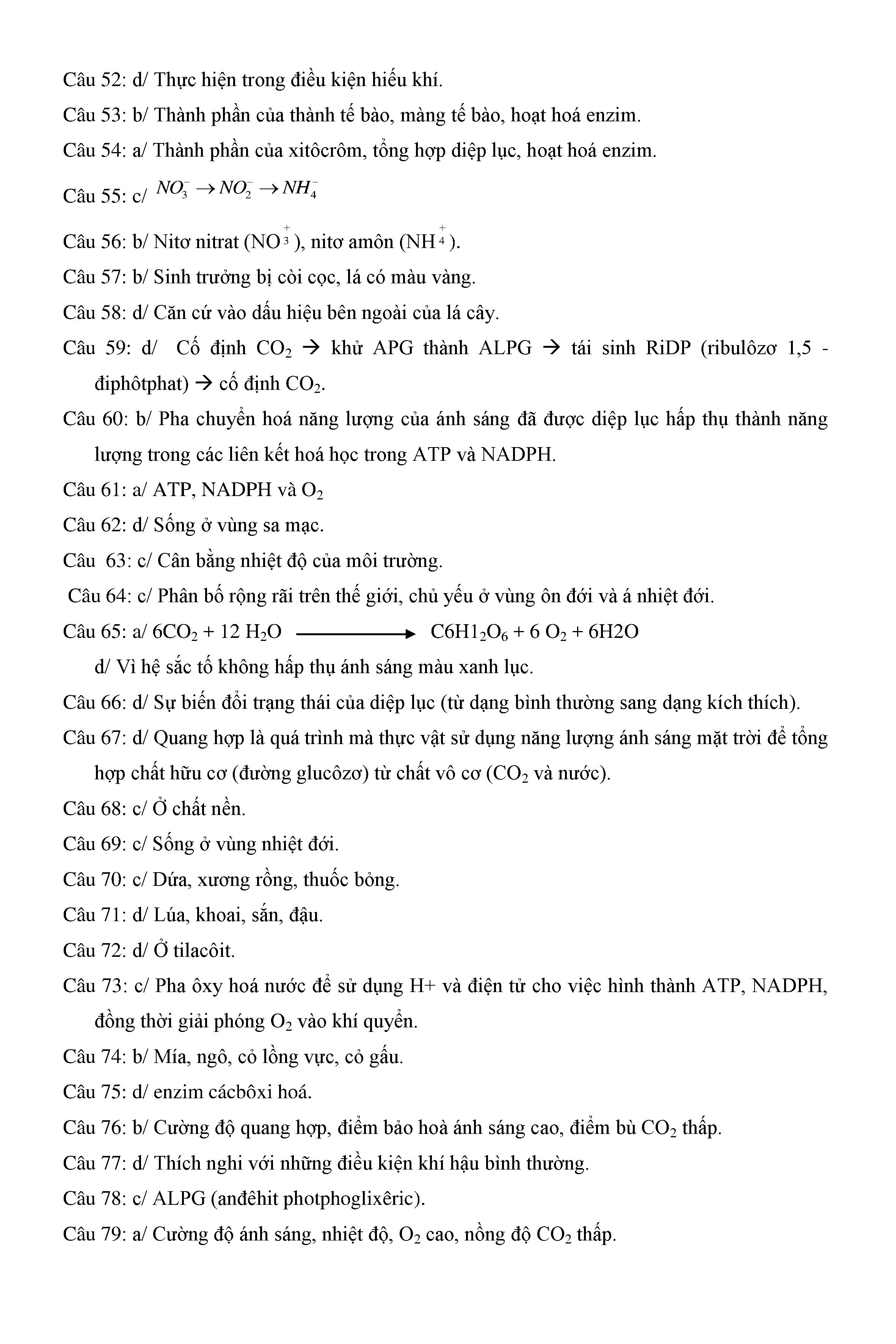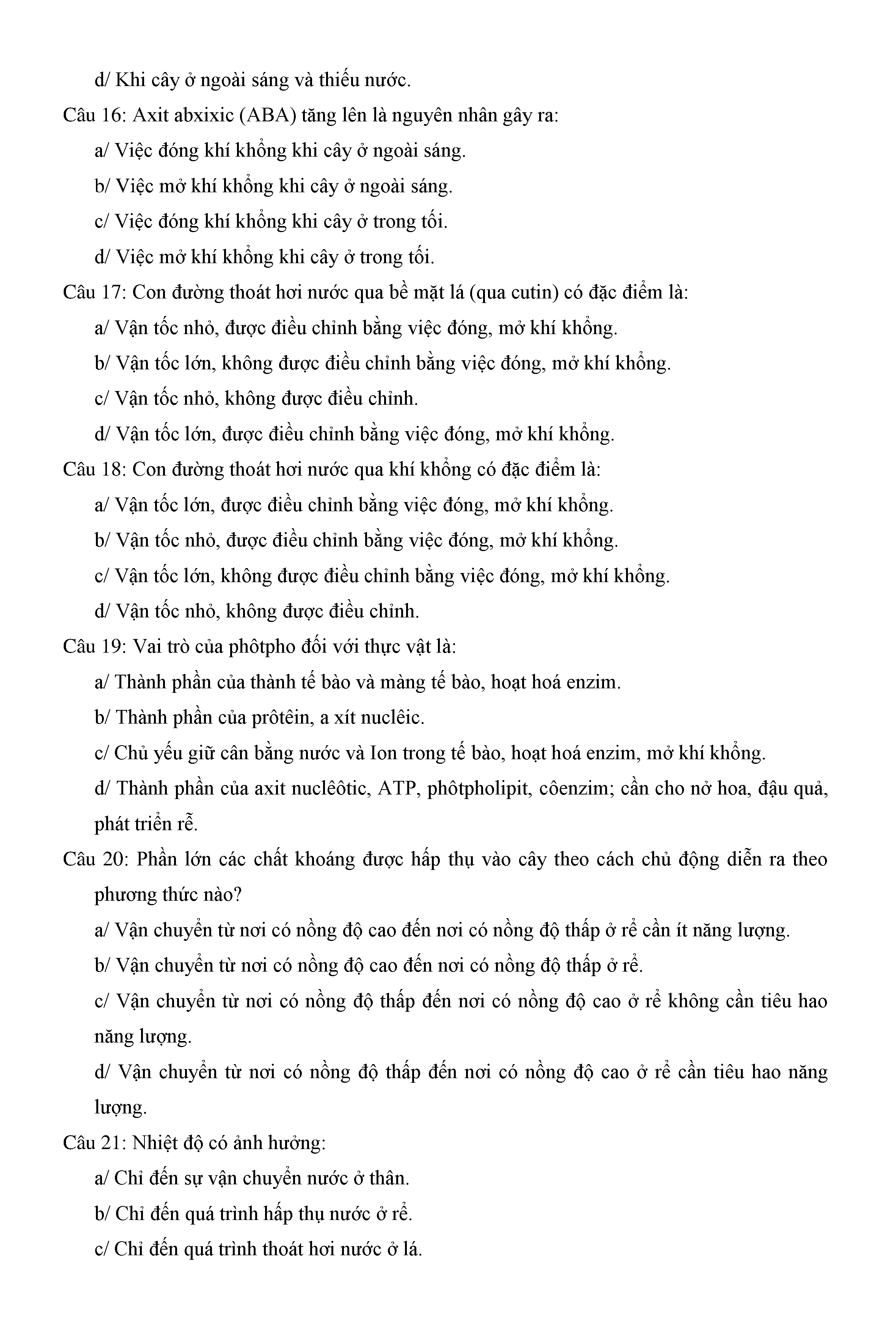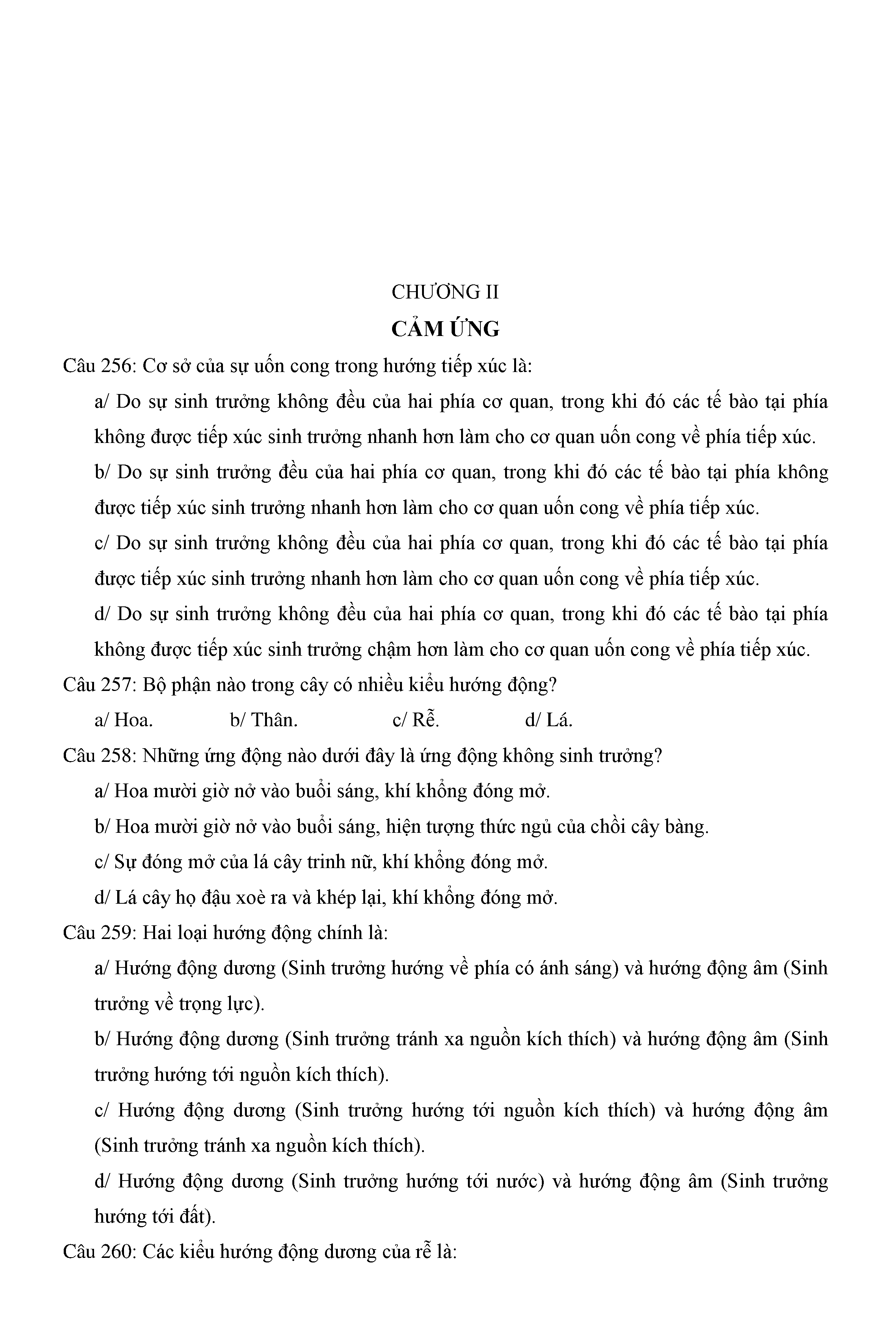 Trắc nghiệm Sinh học 11 (có đáp án)