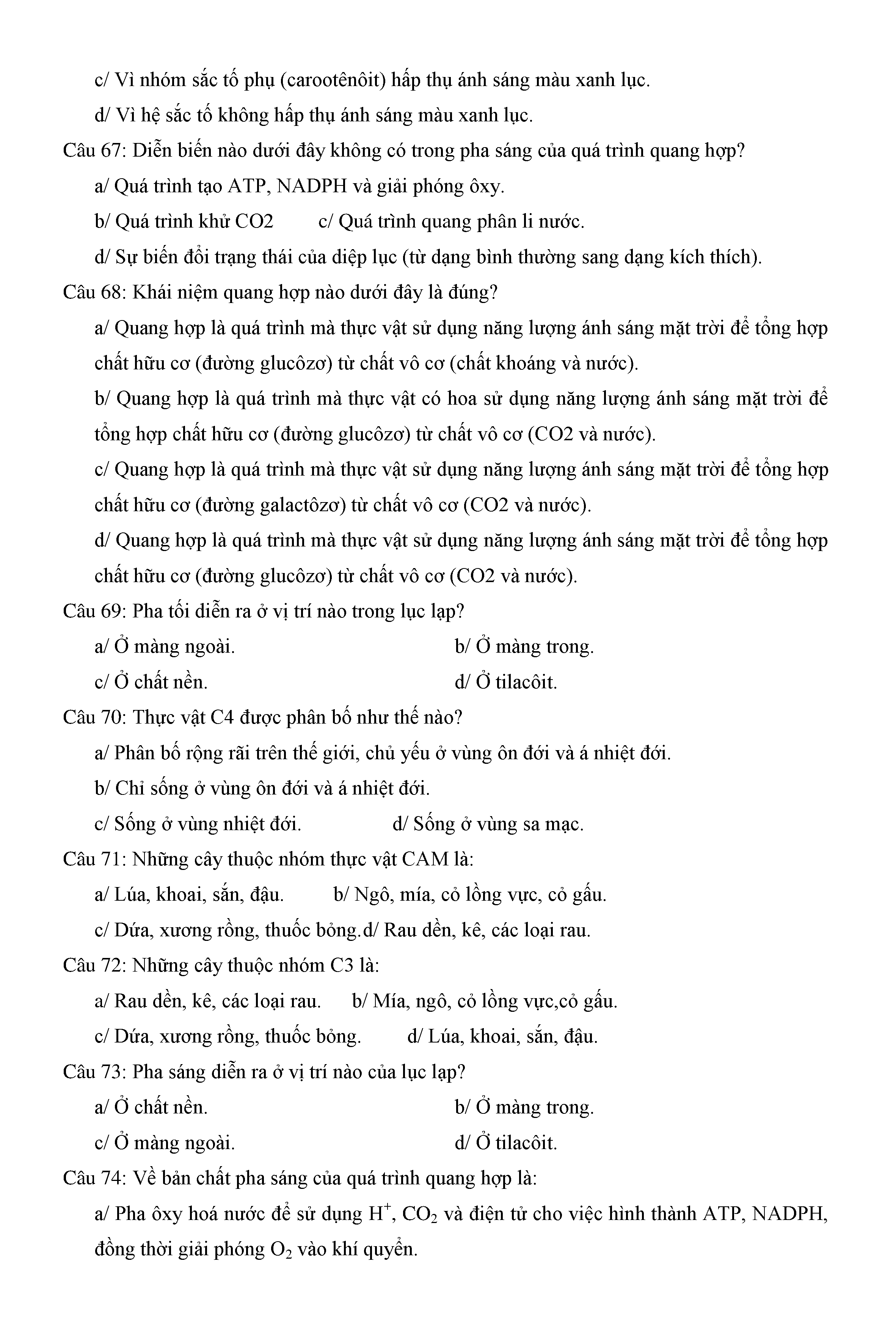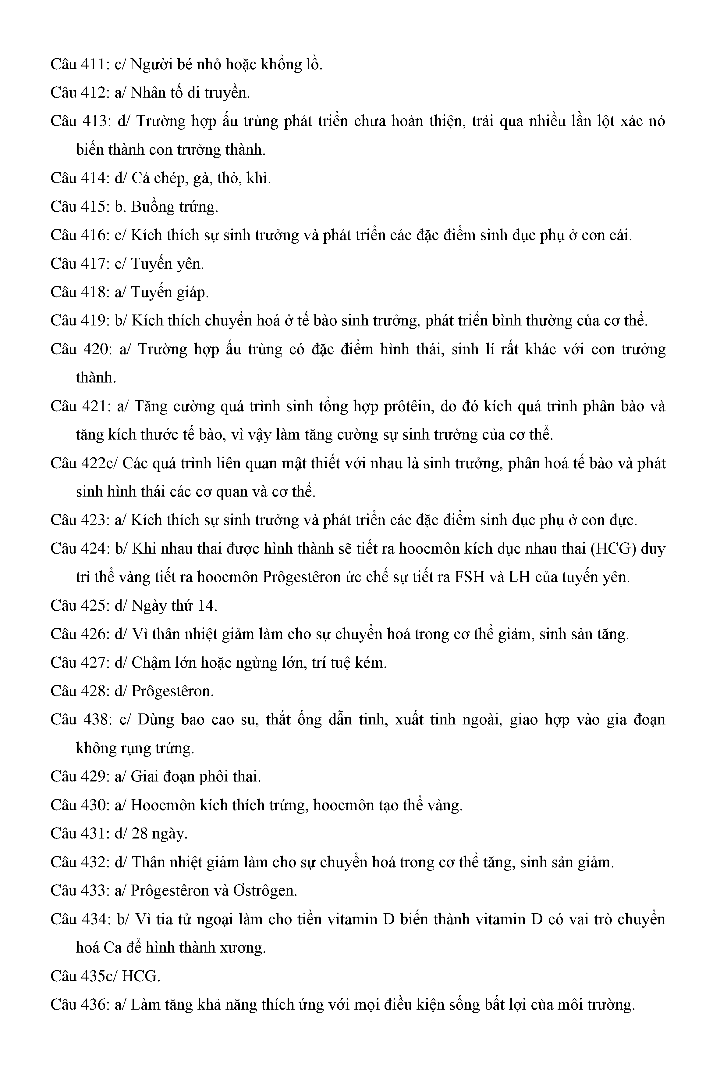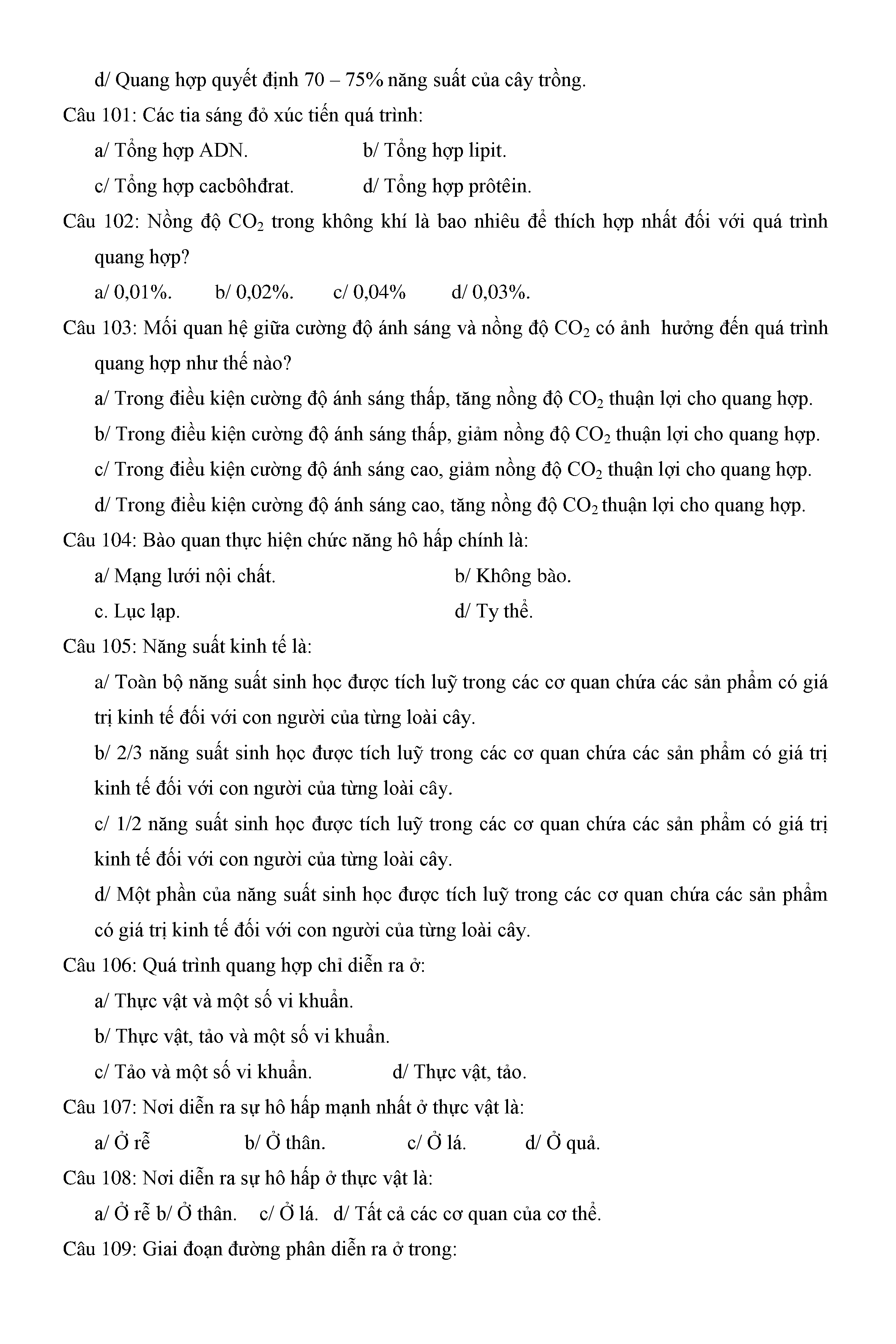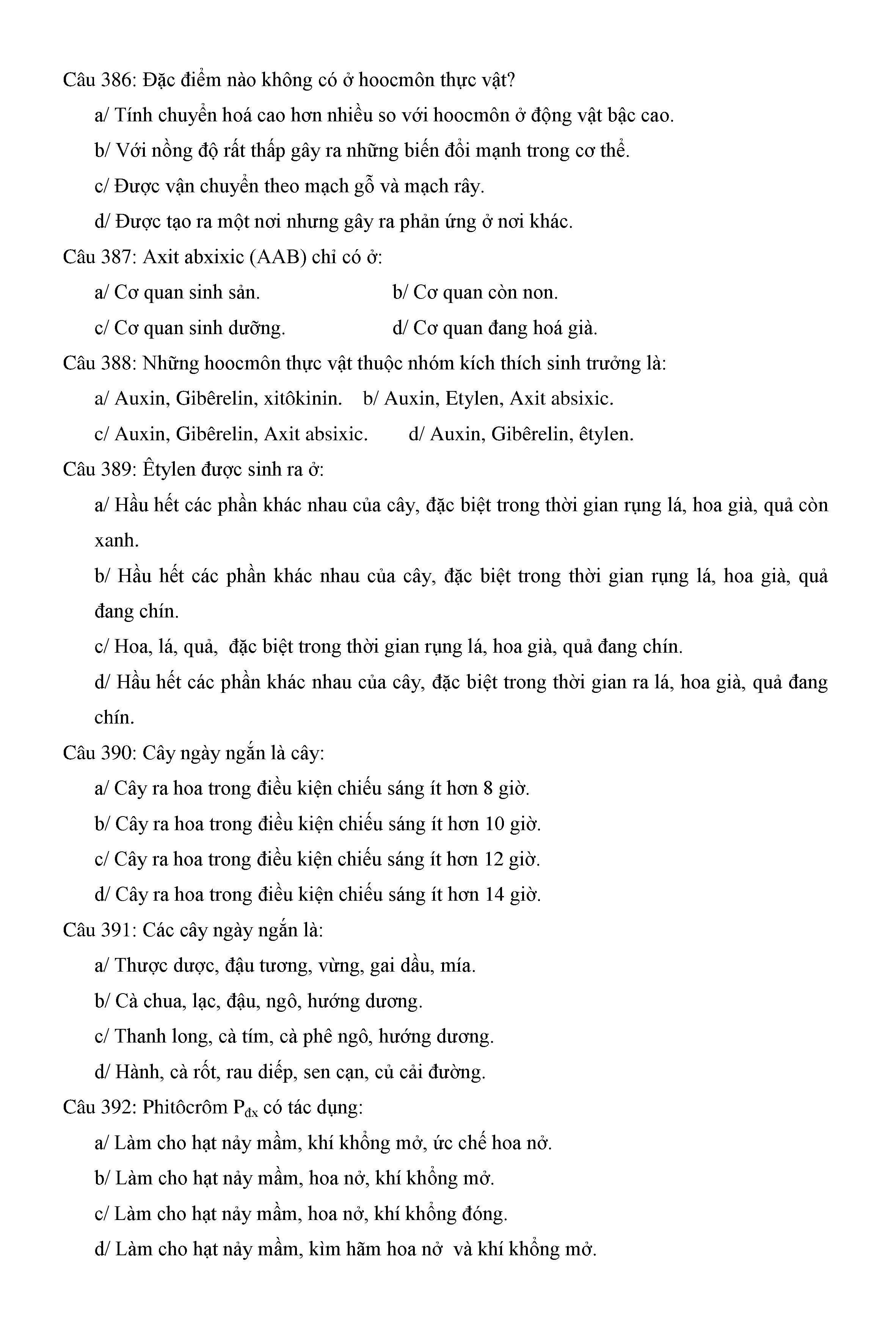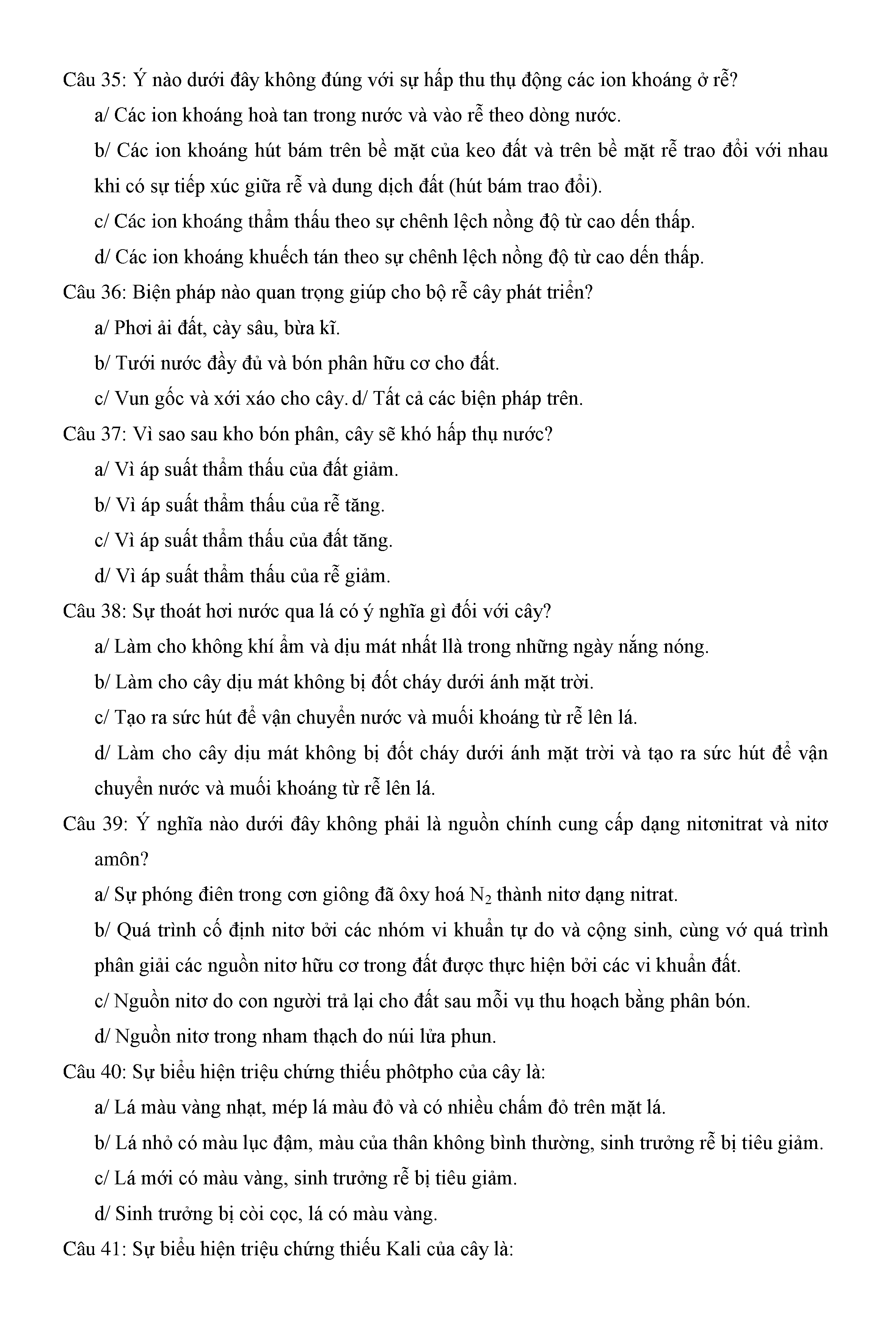 Trắc nghiệm Sinh học 11 (có đáp án)