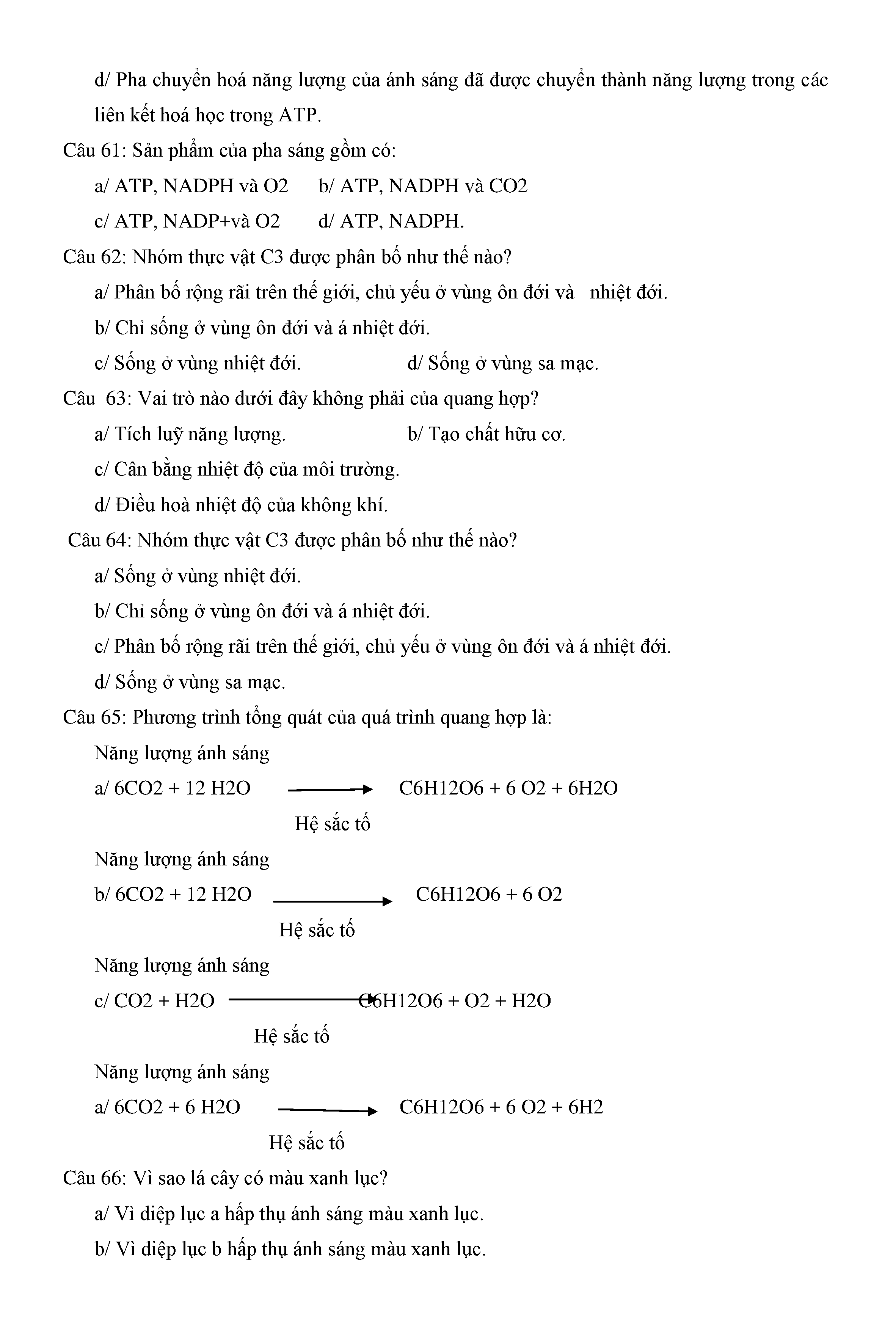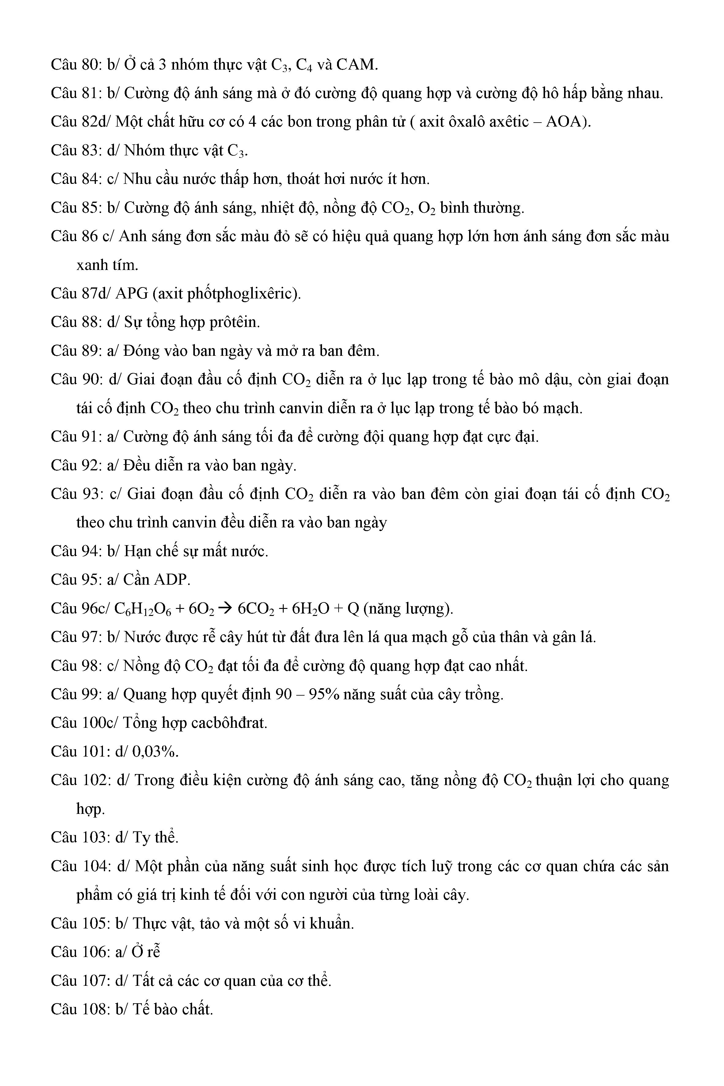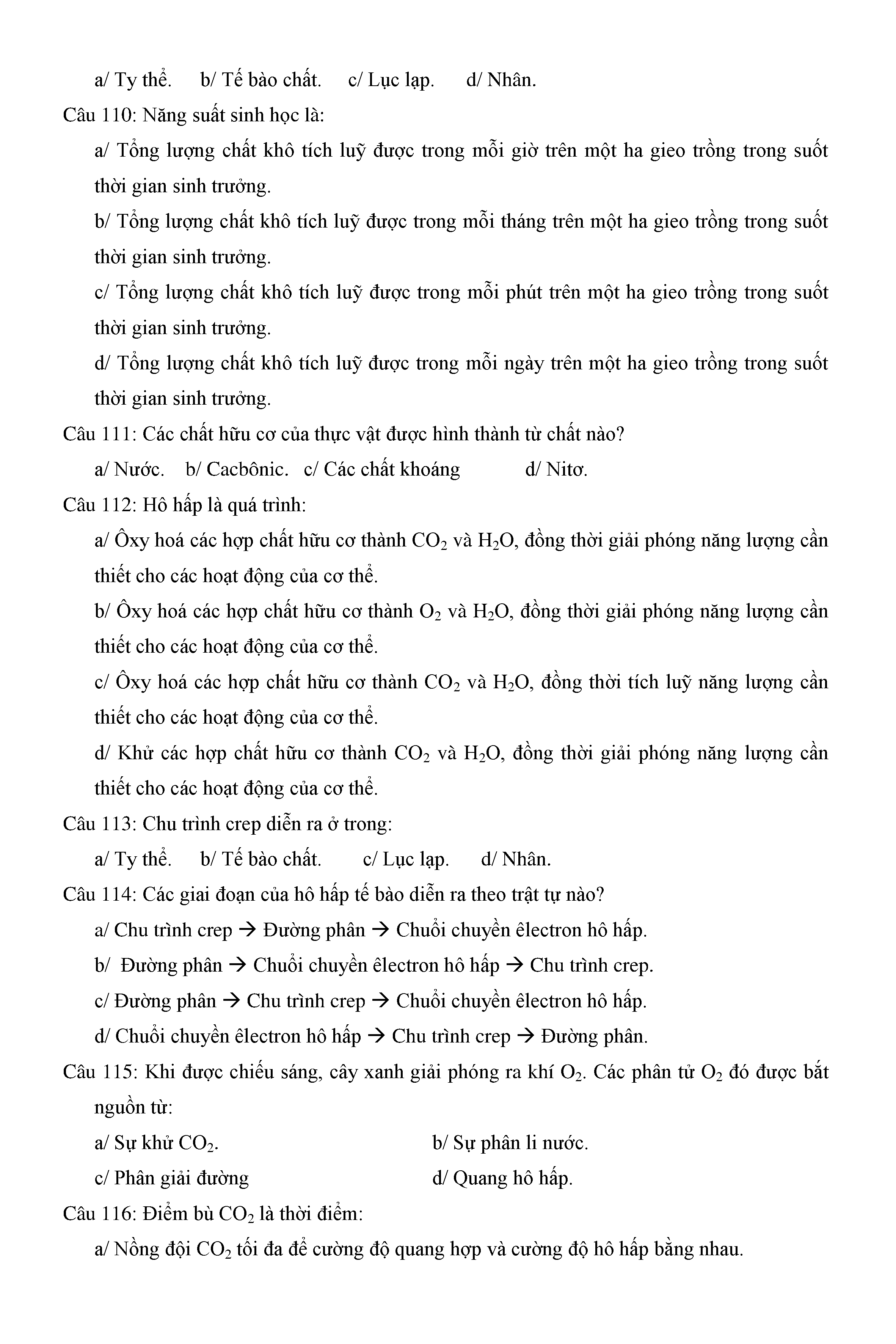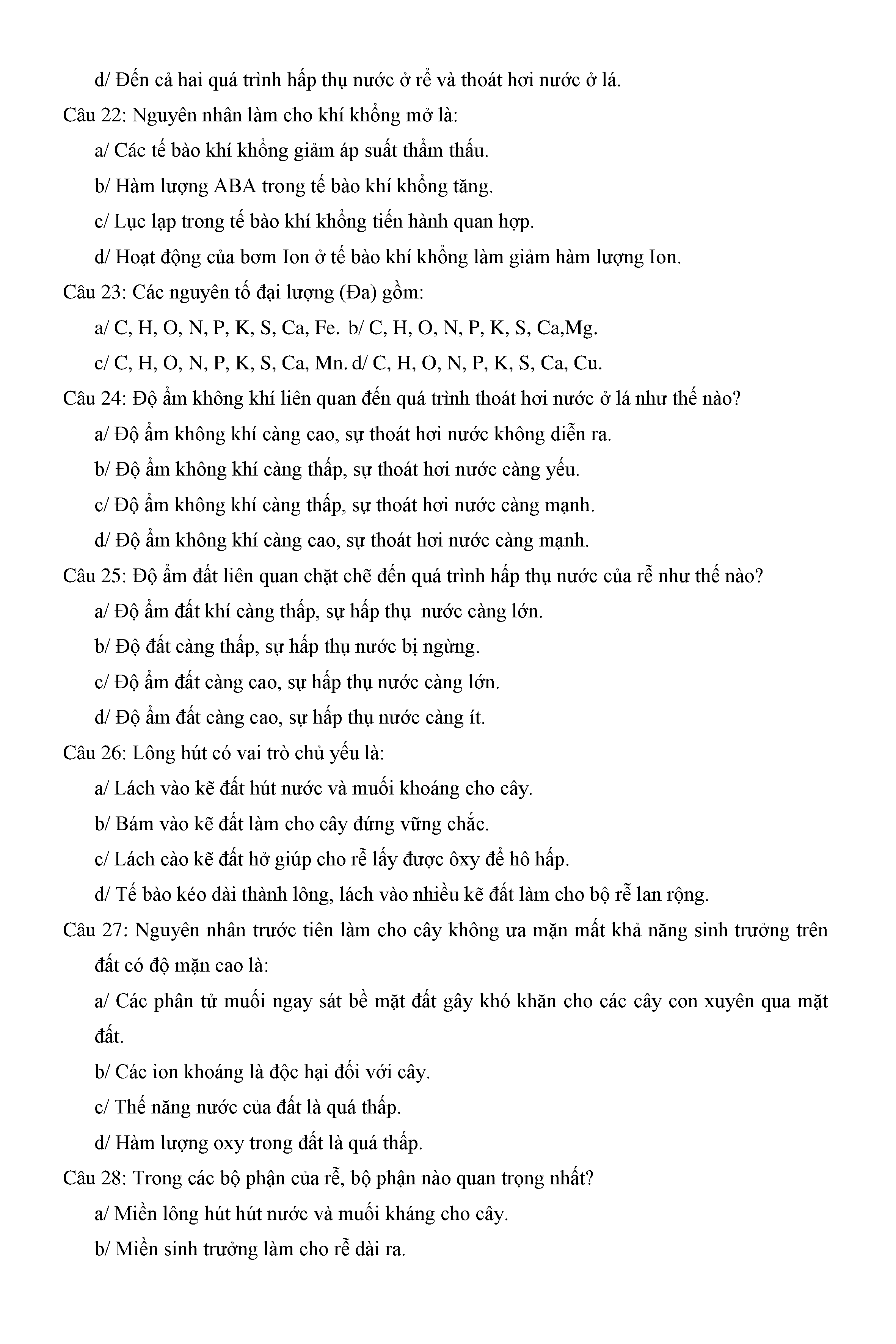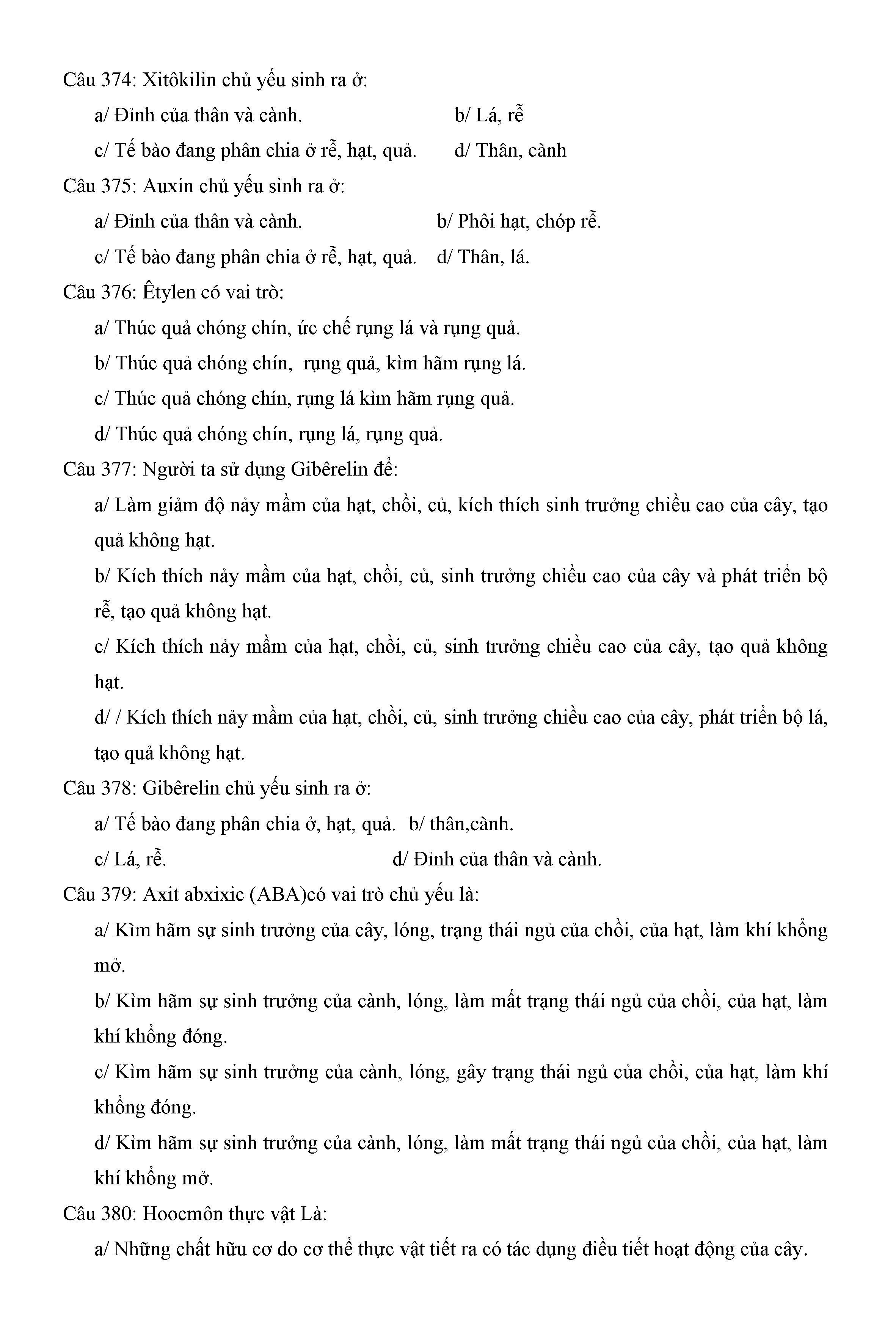 Trắc nghiệm Sinh học 11 (có đáp án)