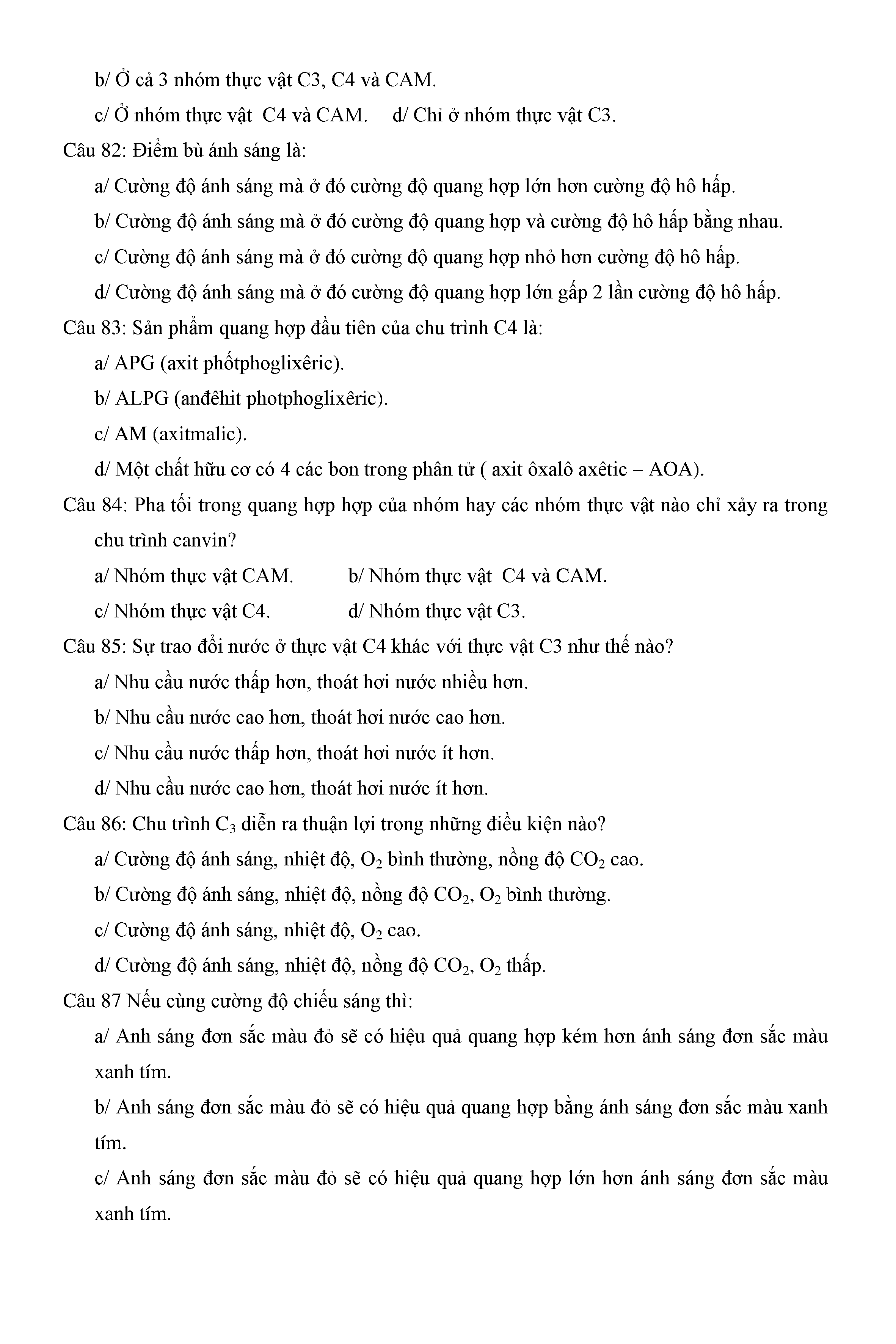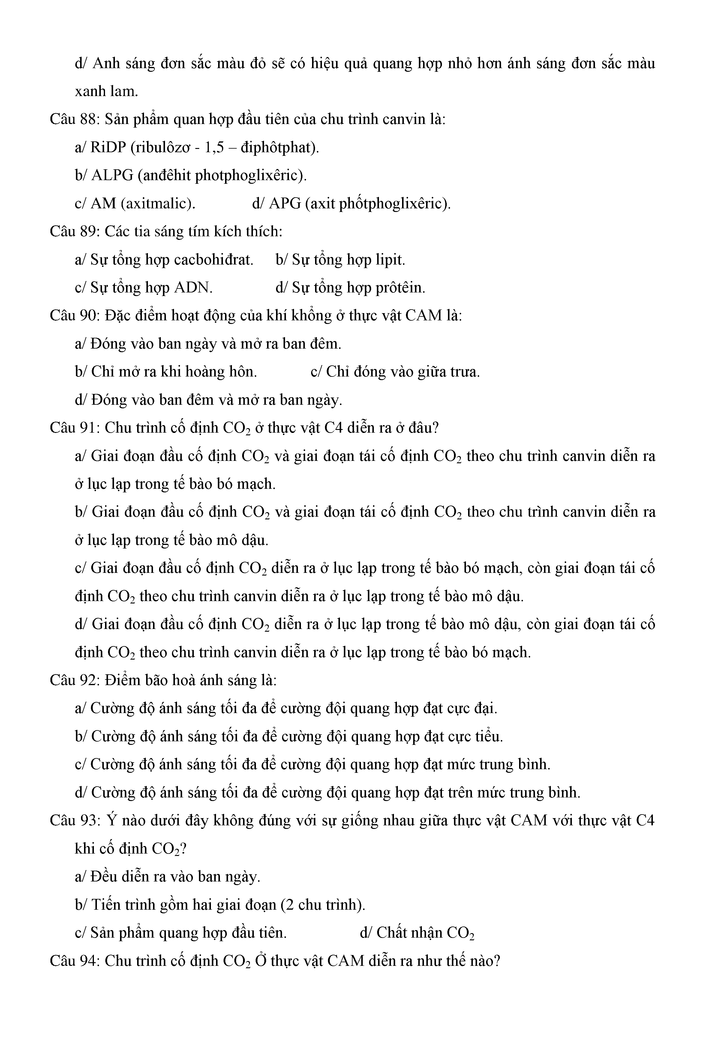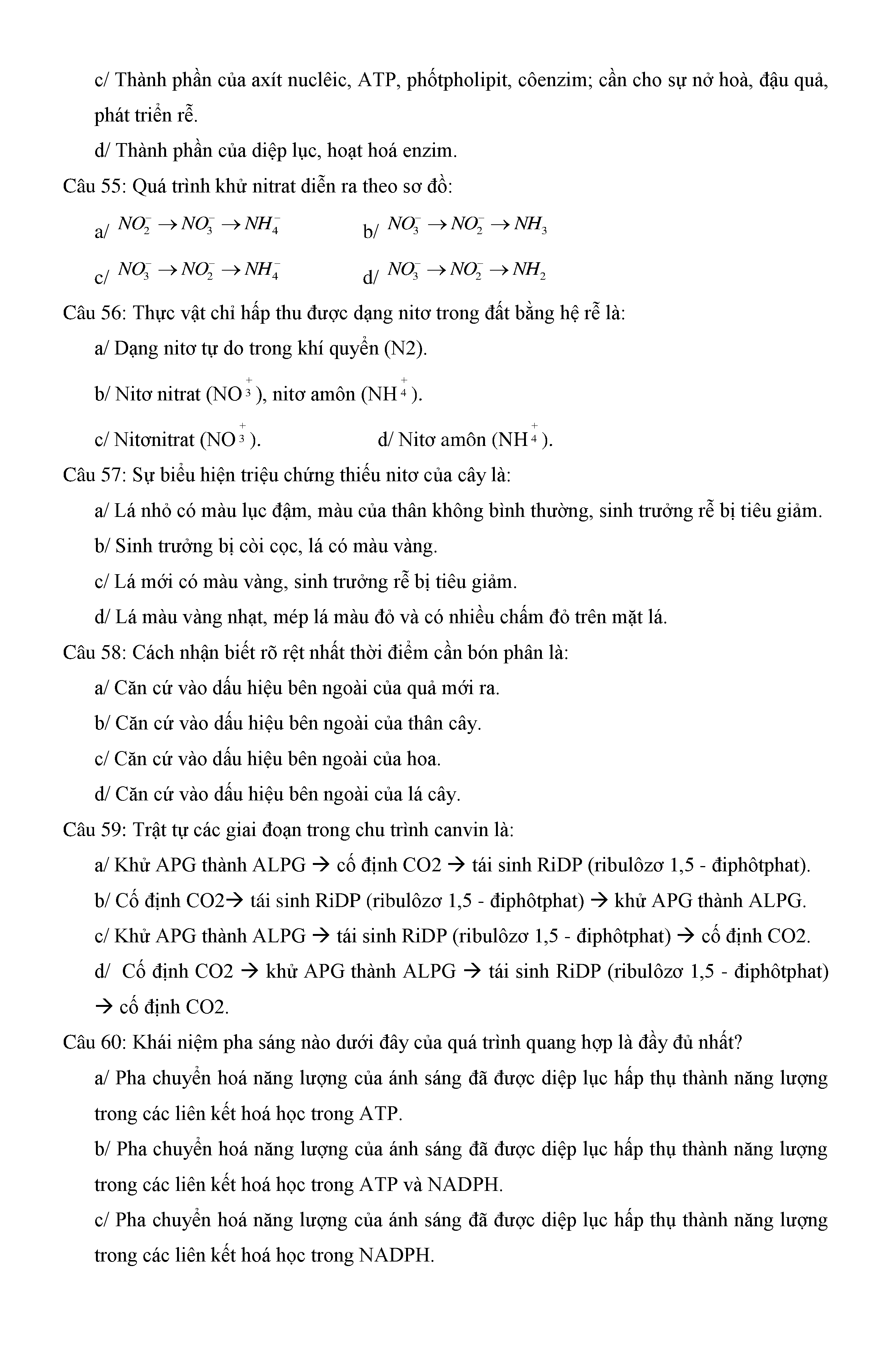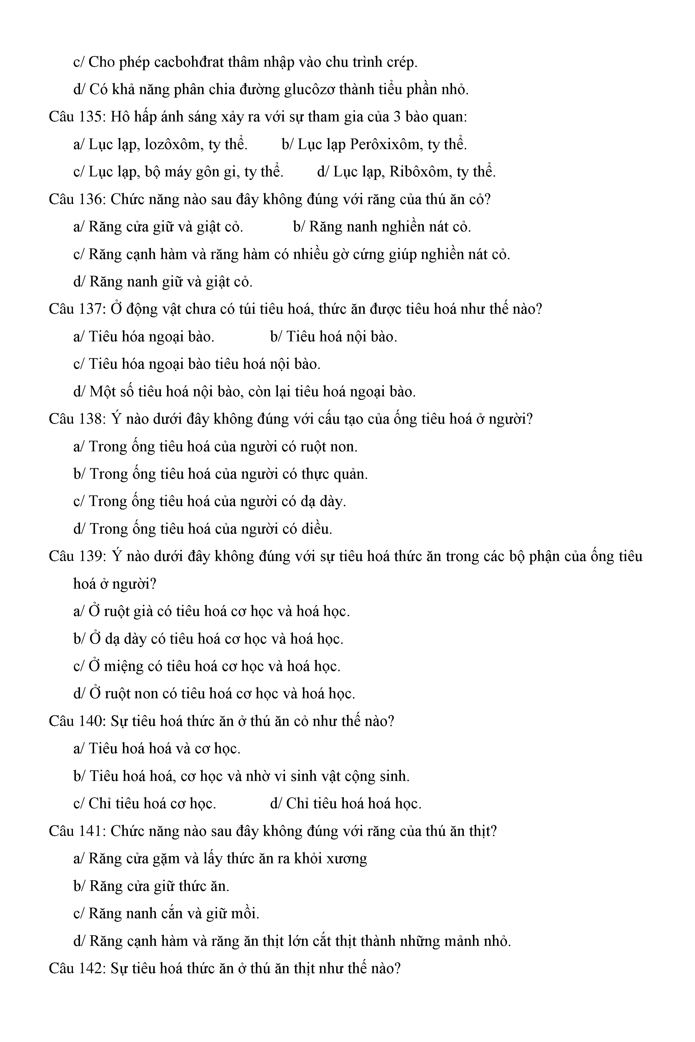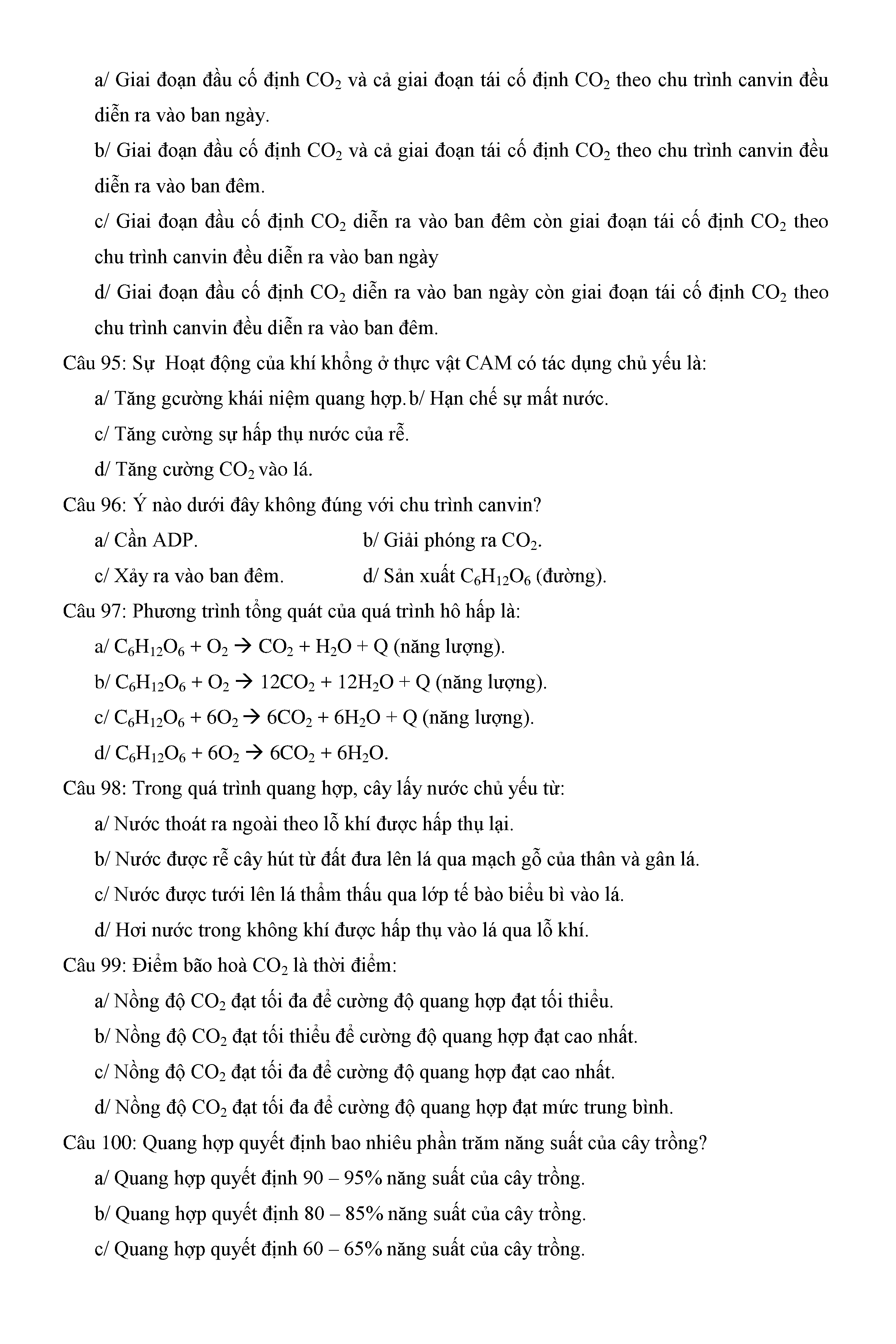 Trắc nghiệm Sinh học 11 (có đáp án)