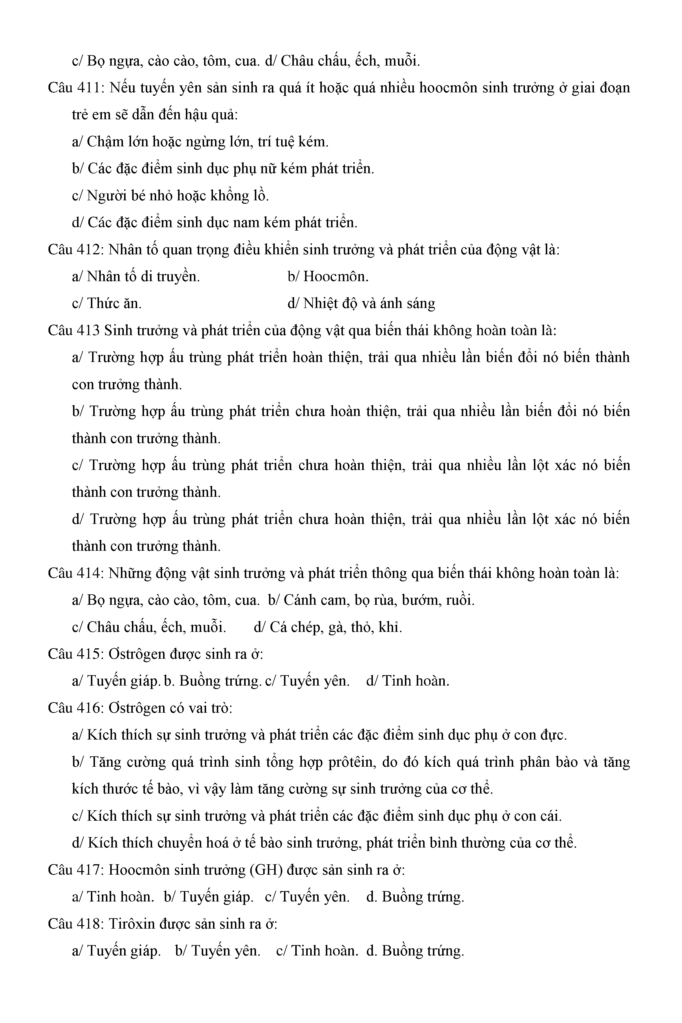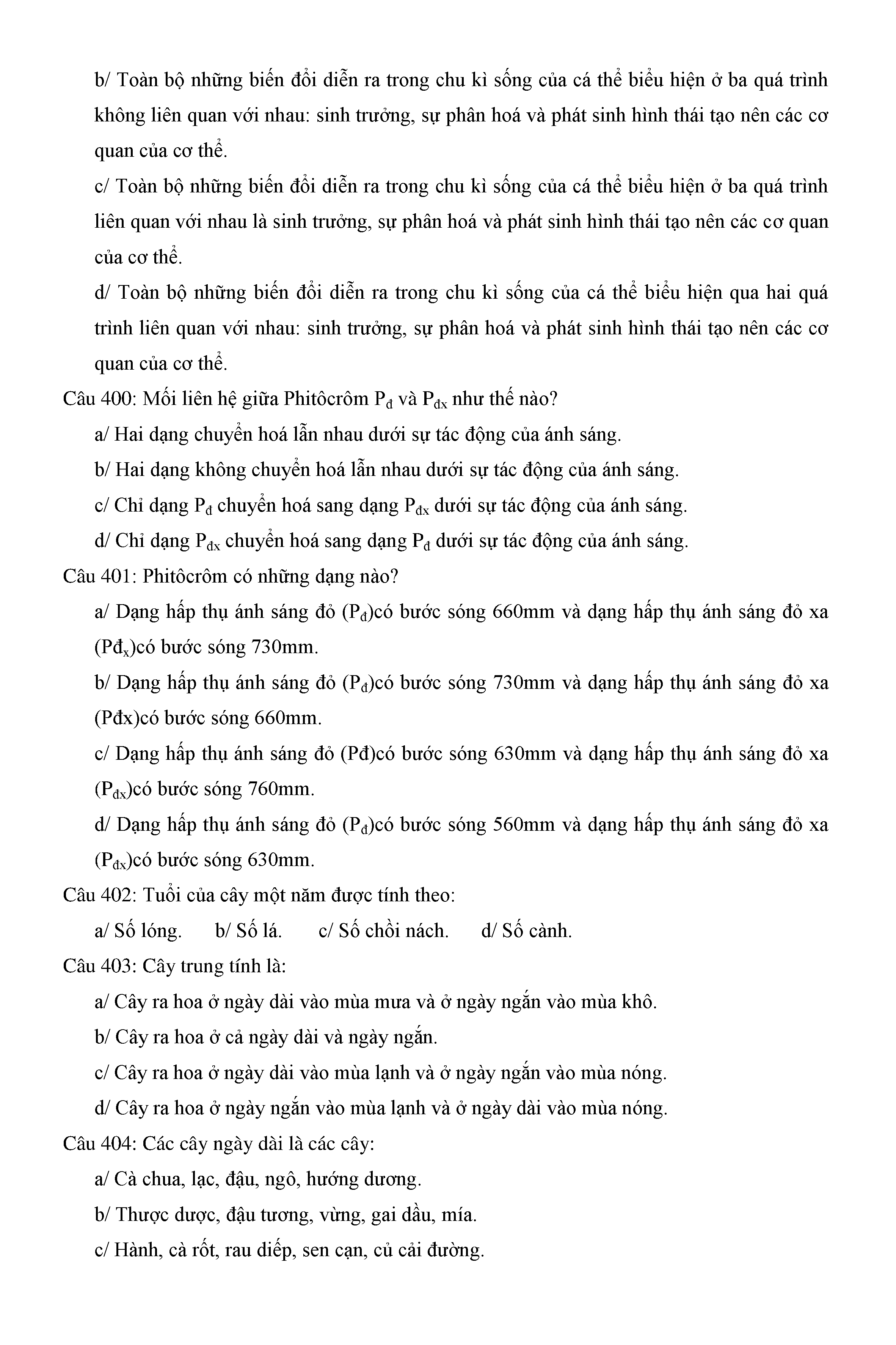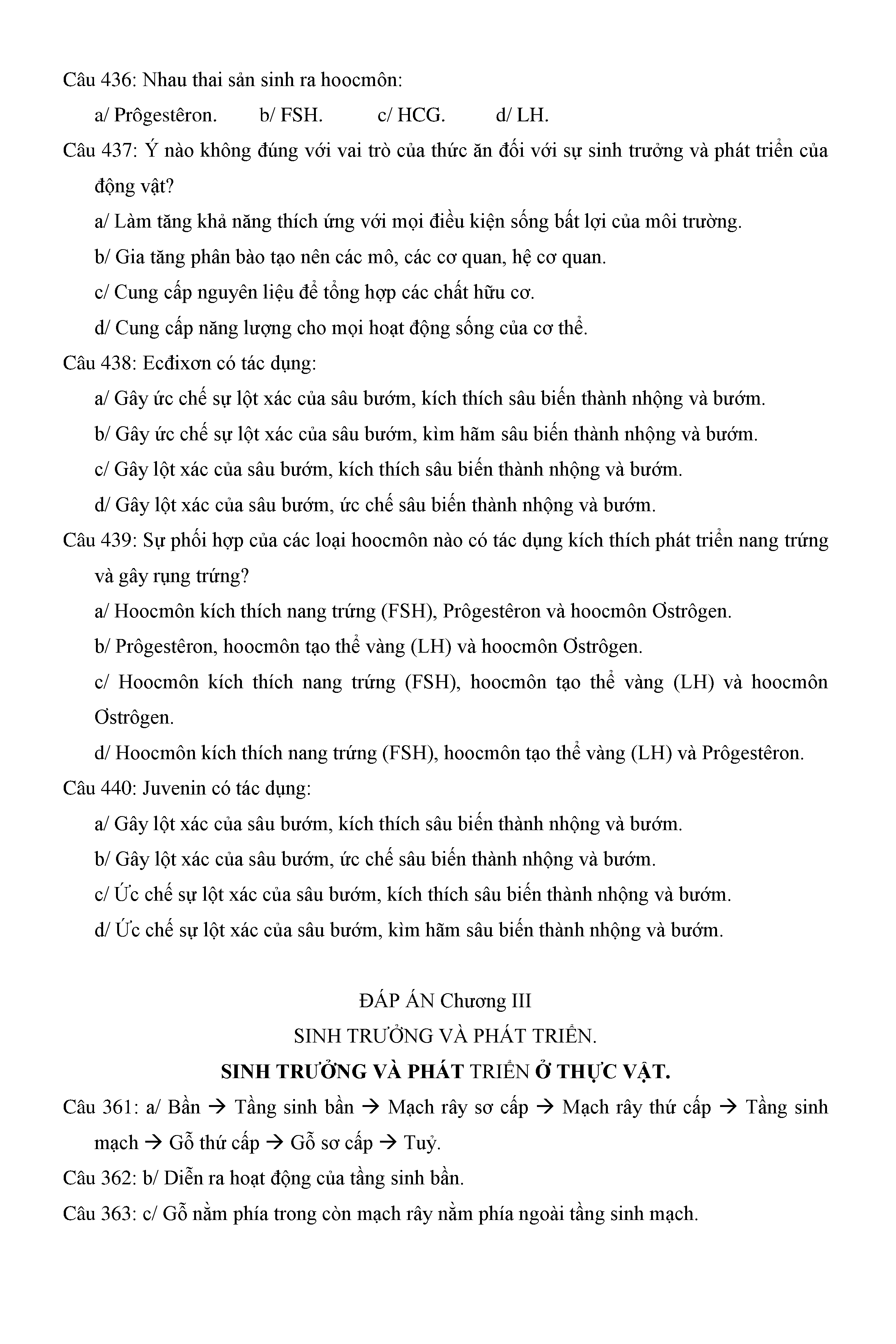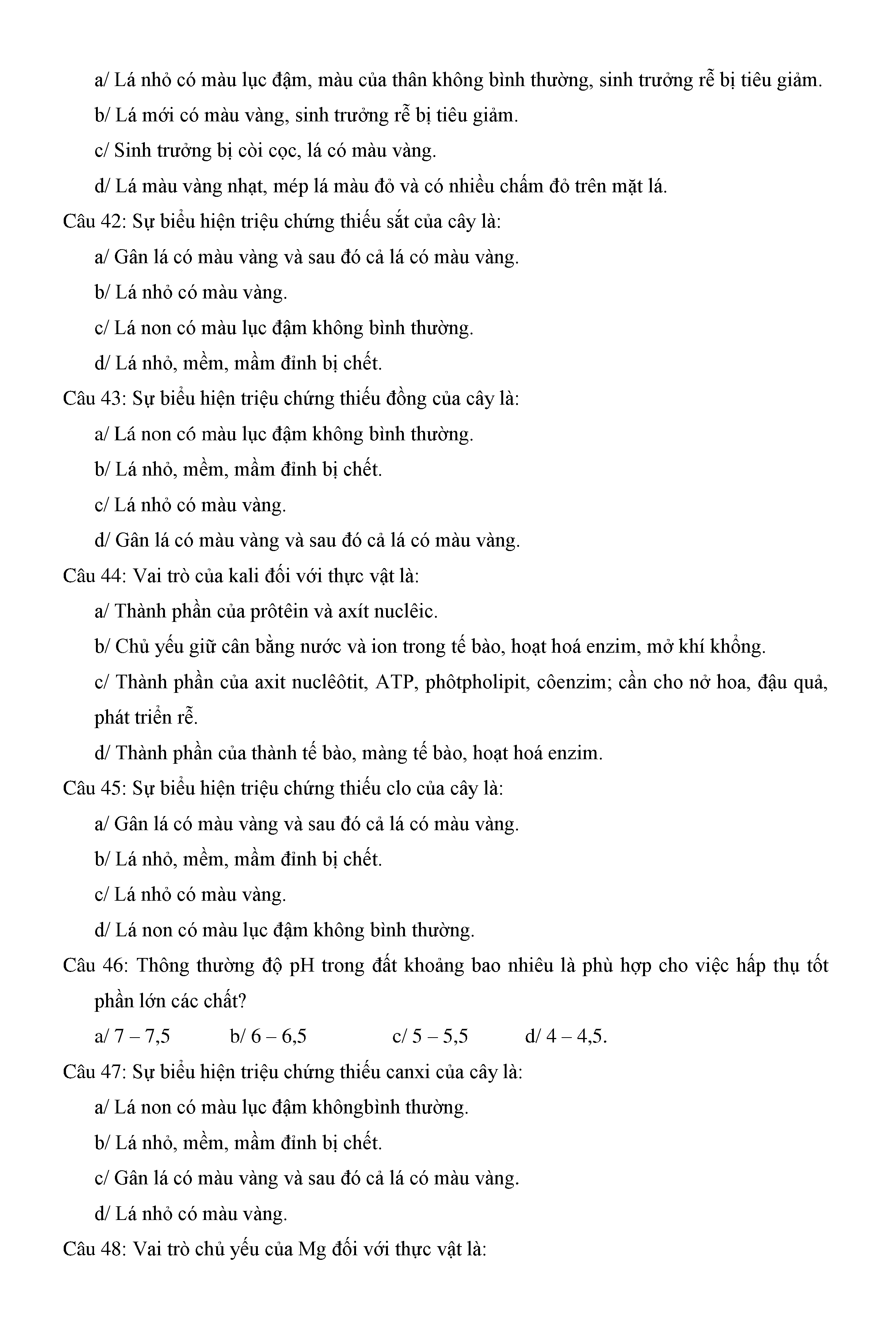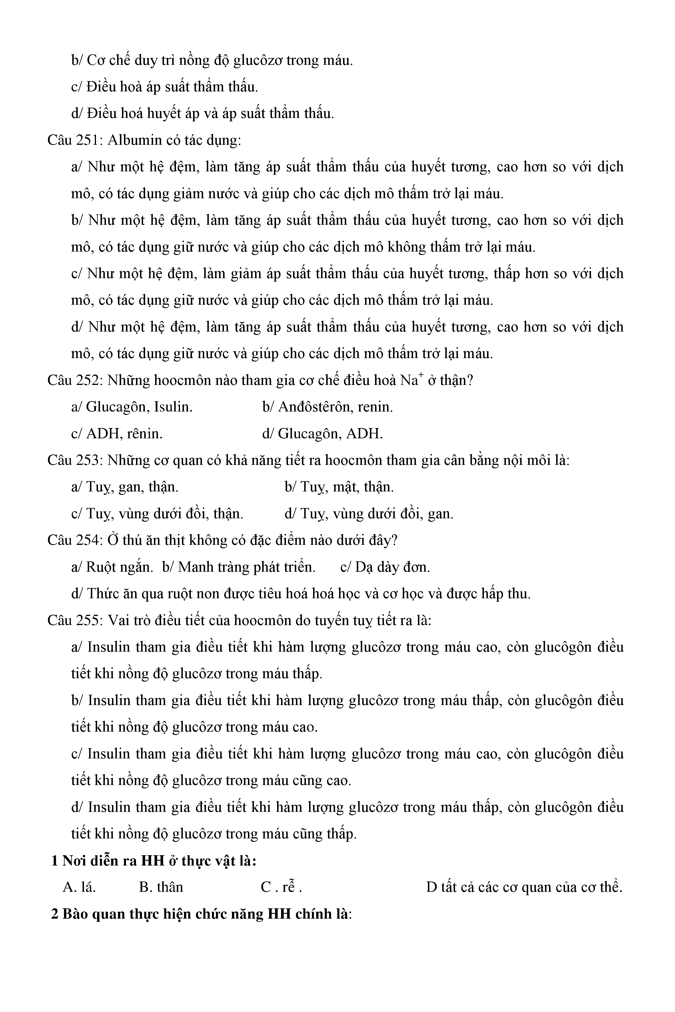Trắc nghiệm Sinh học 11 (có đáp án)