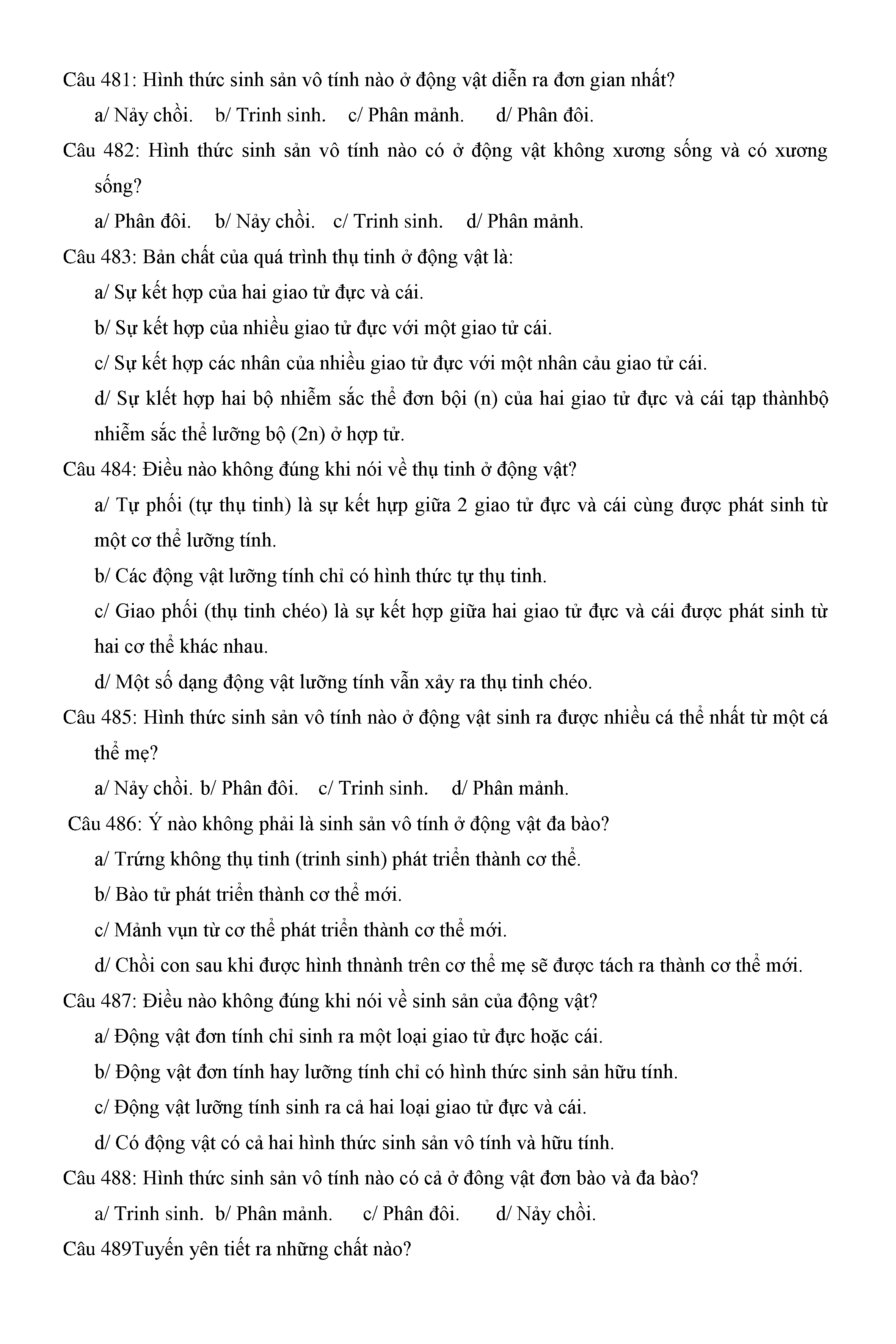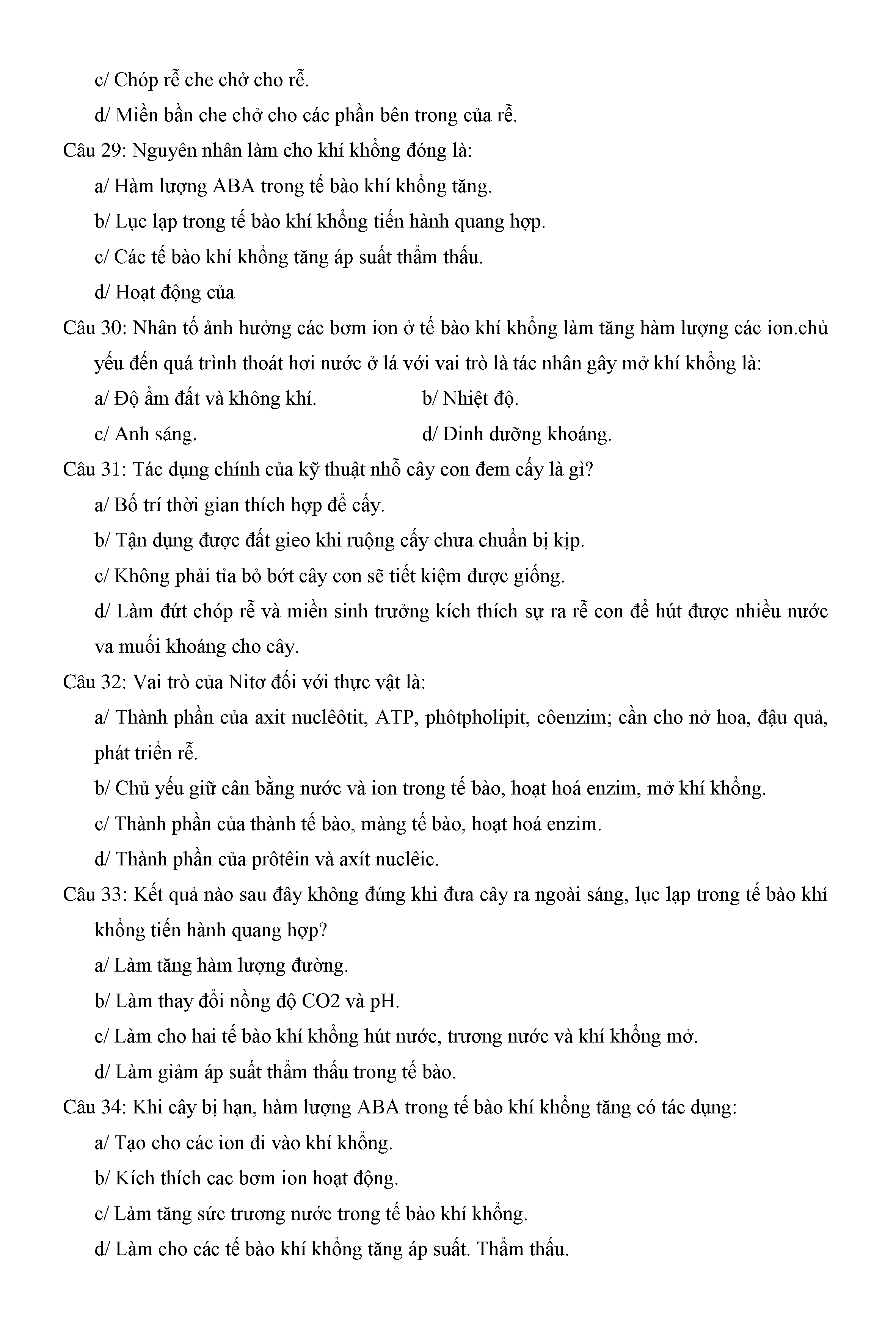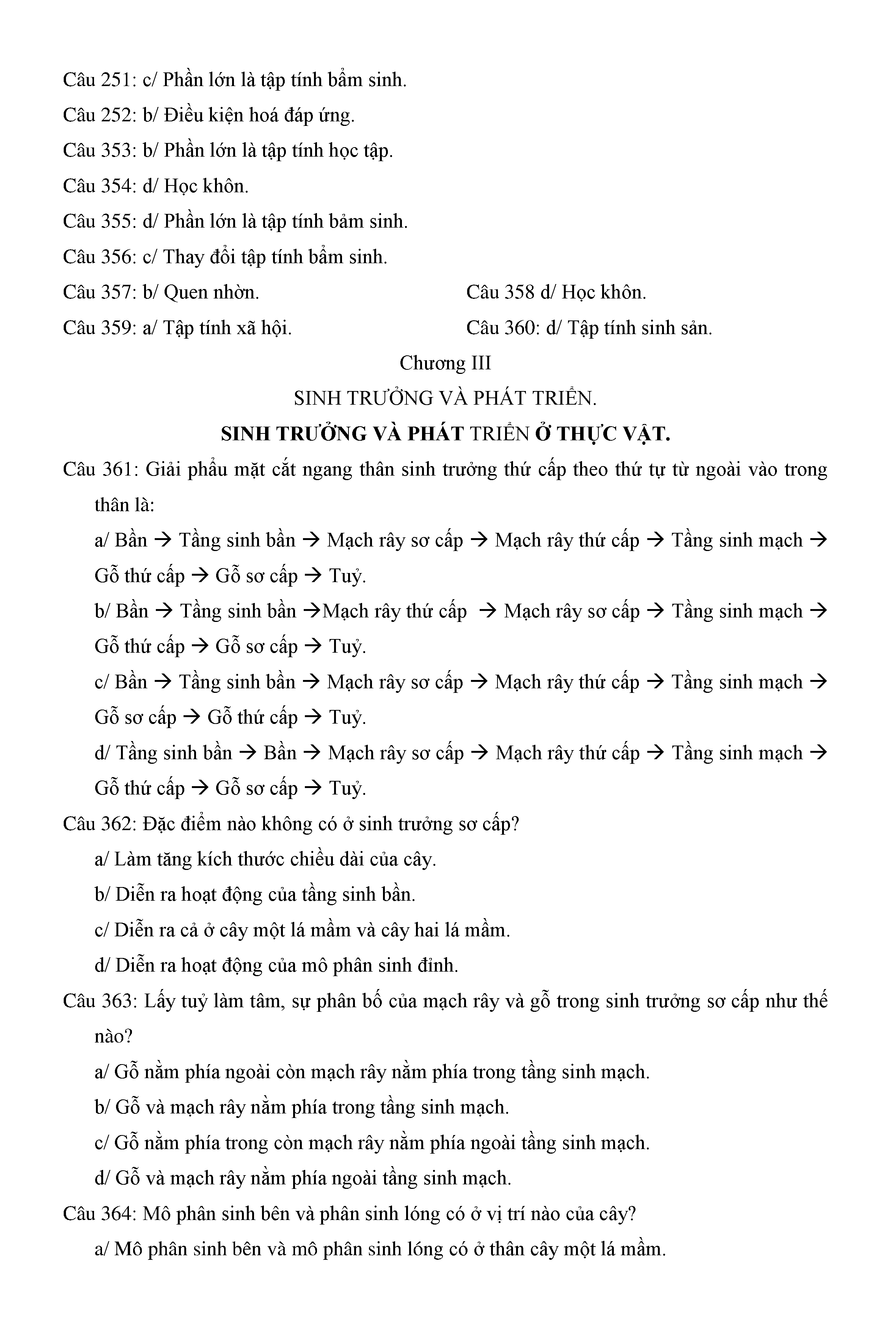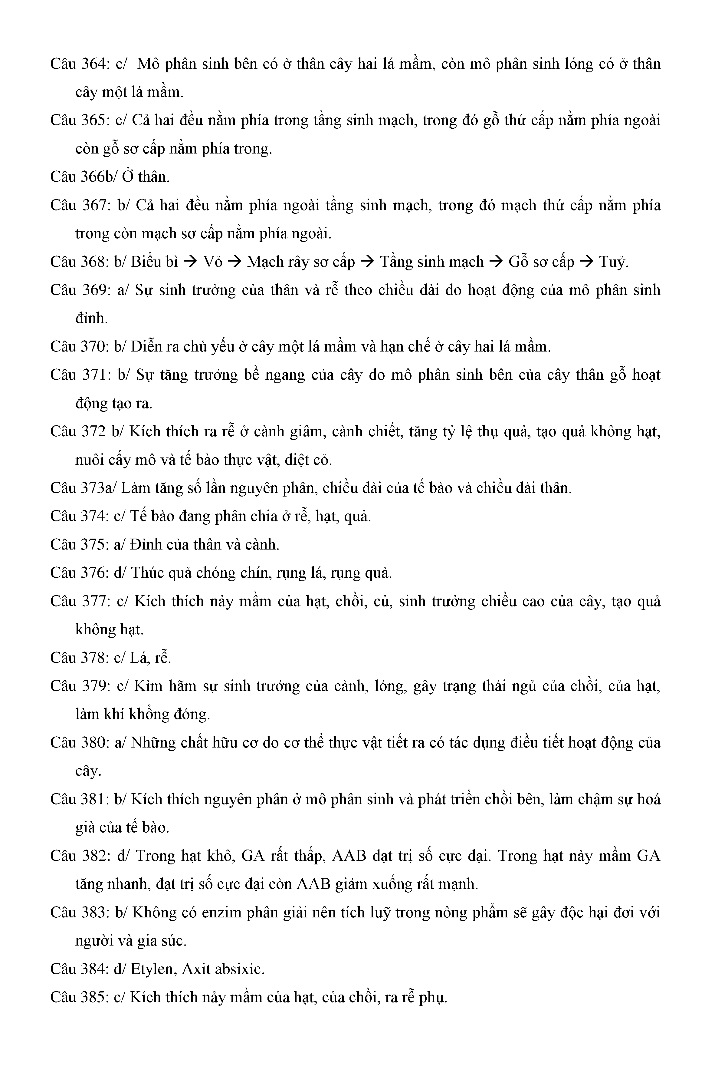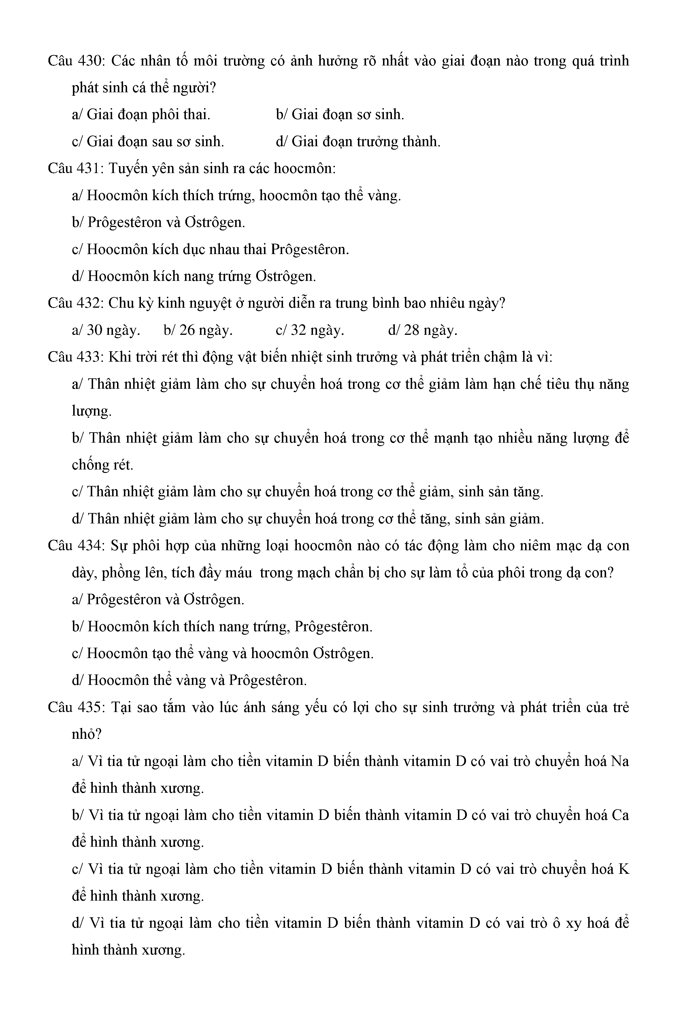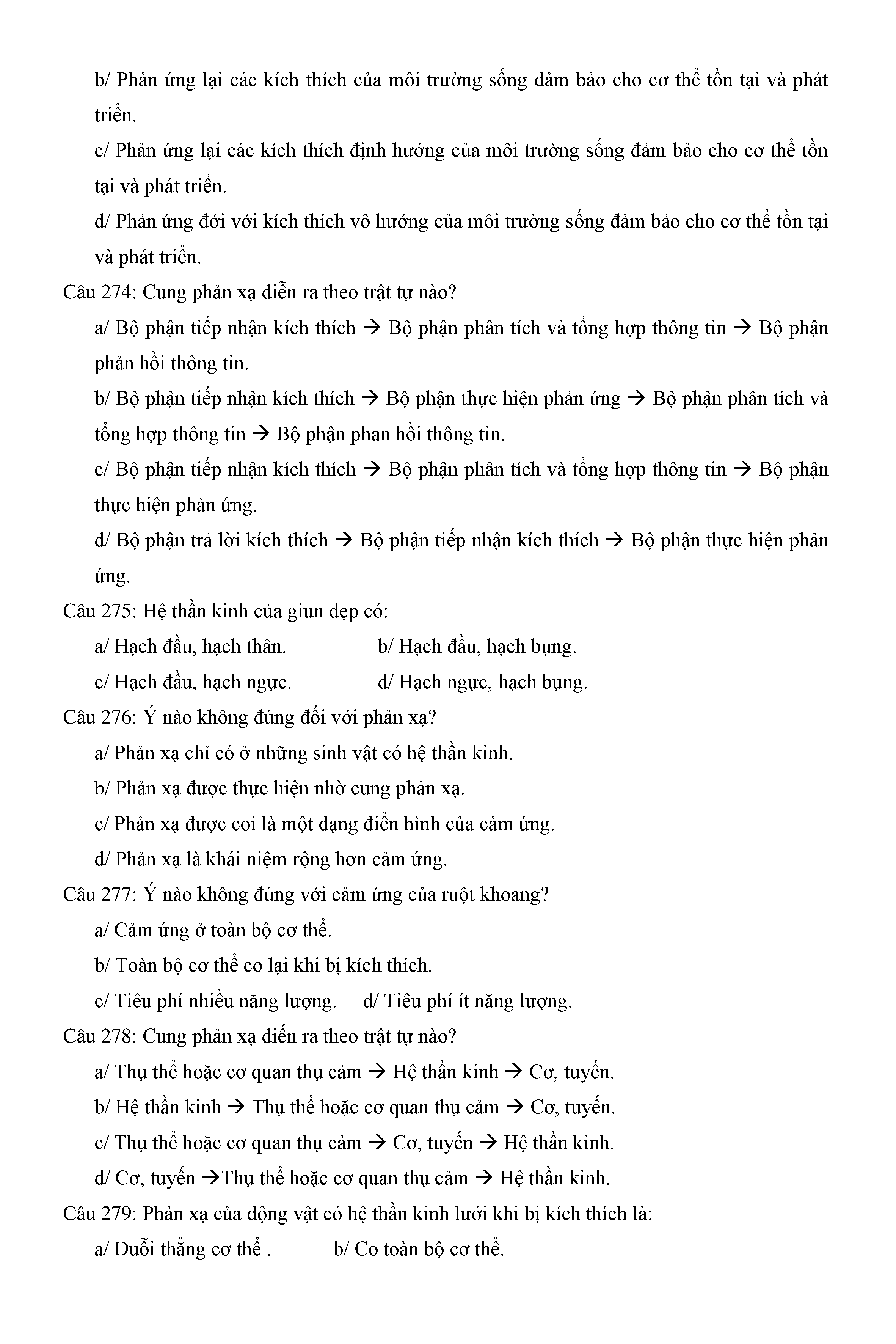 Trắc nghiệm Sinh học 11 (có đáp án)