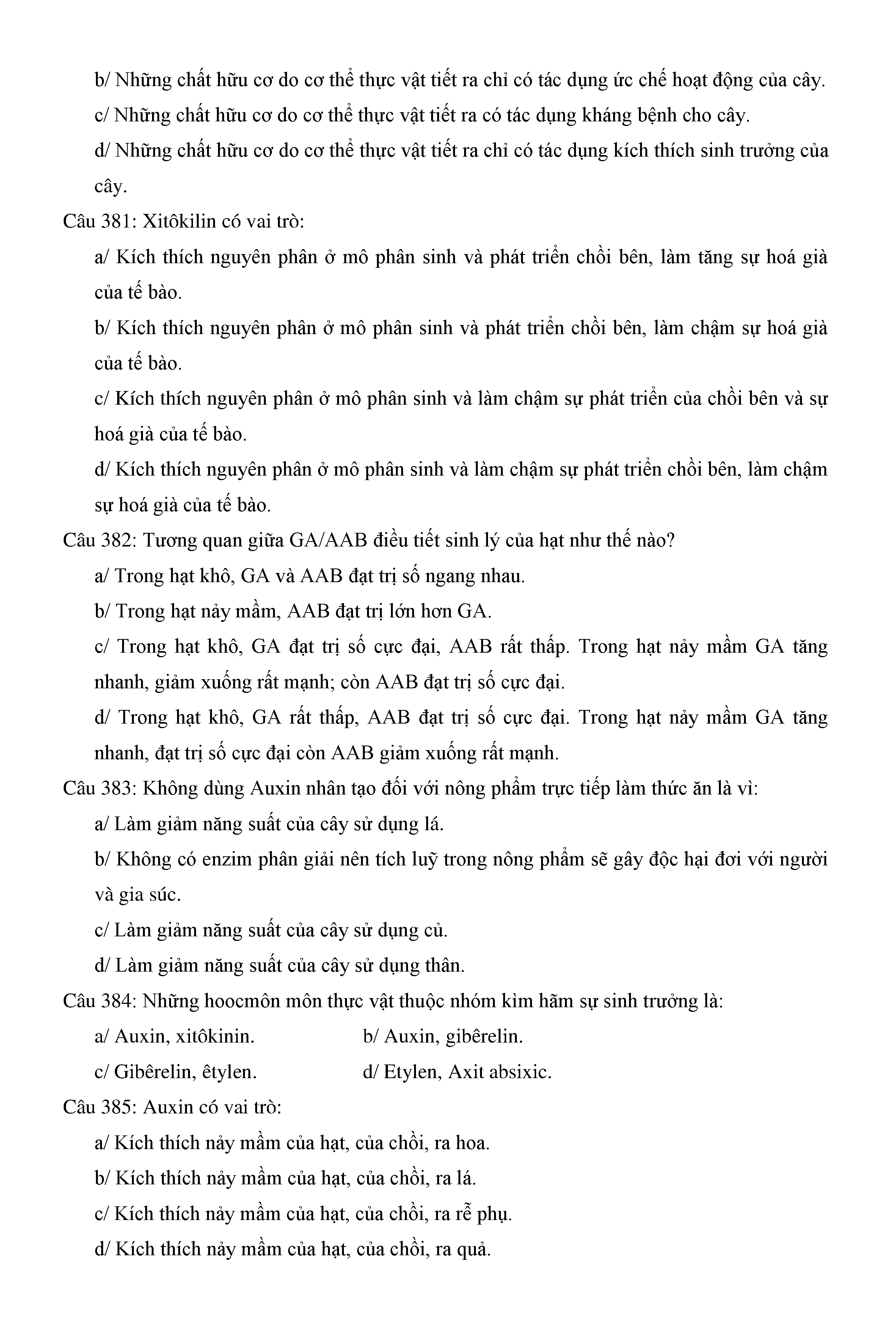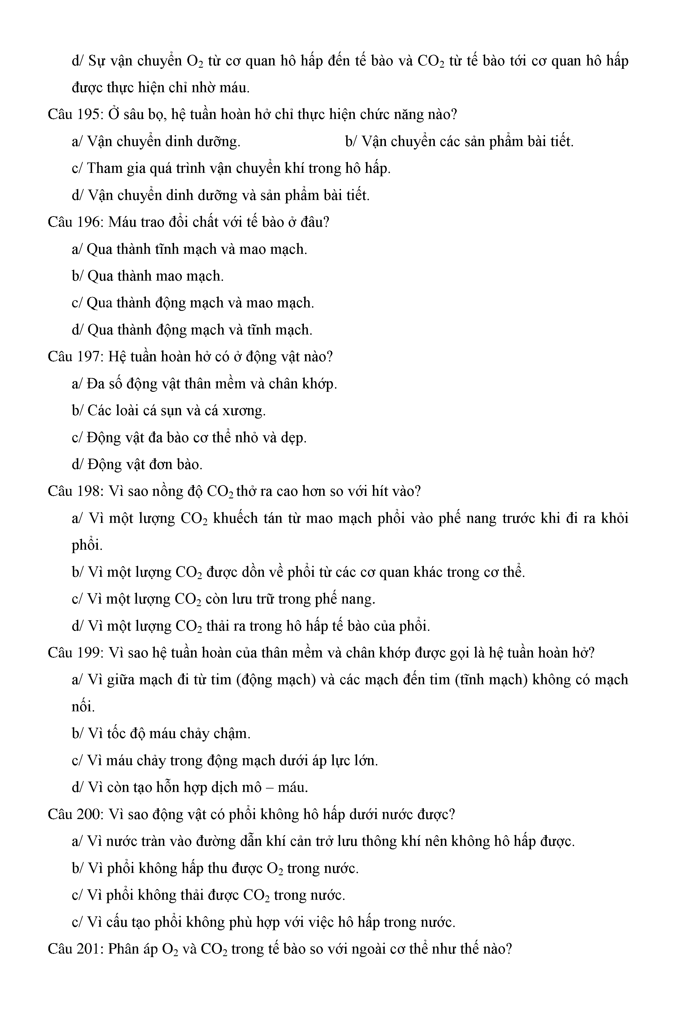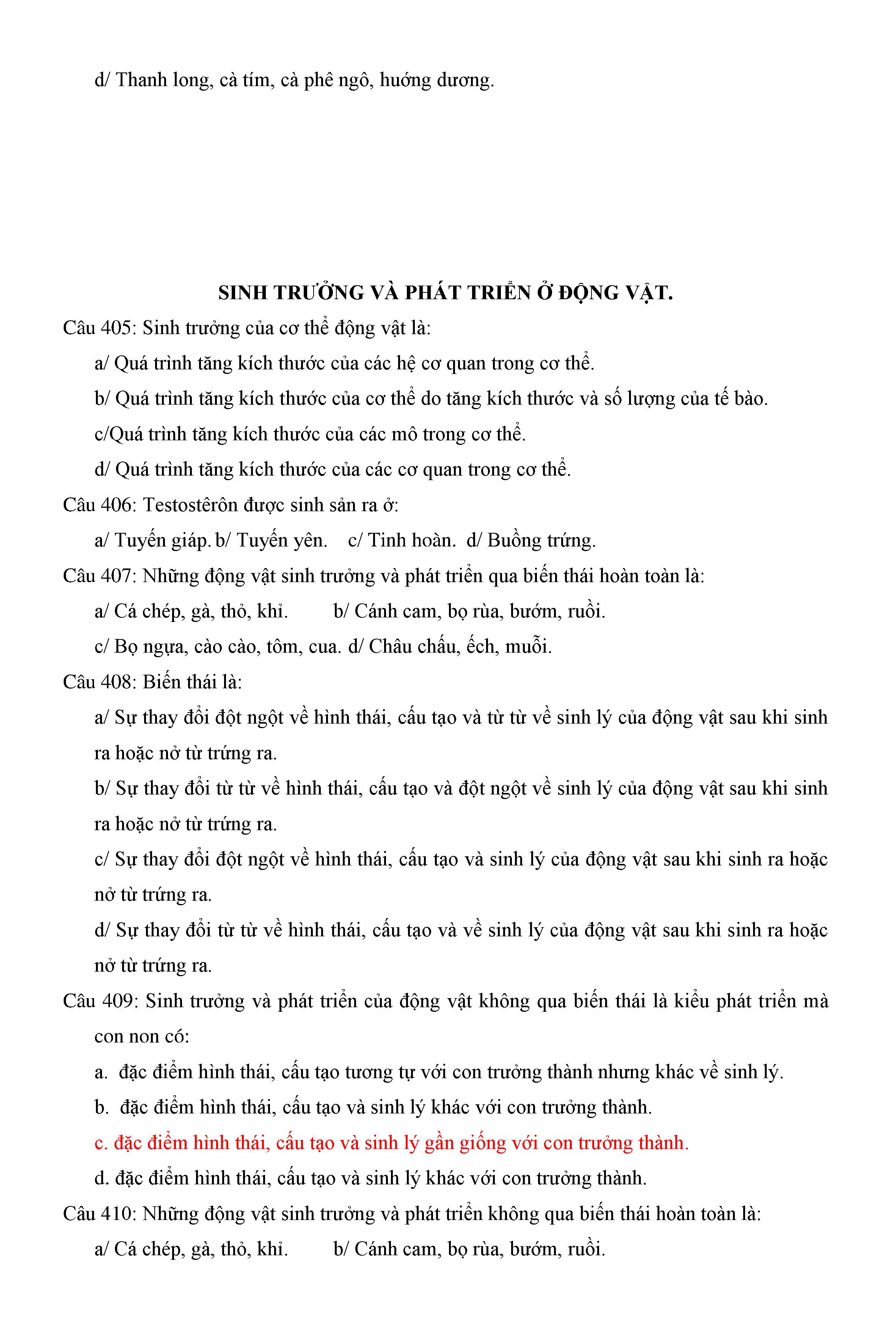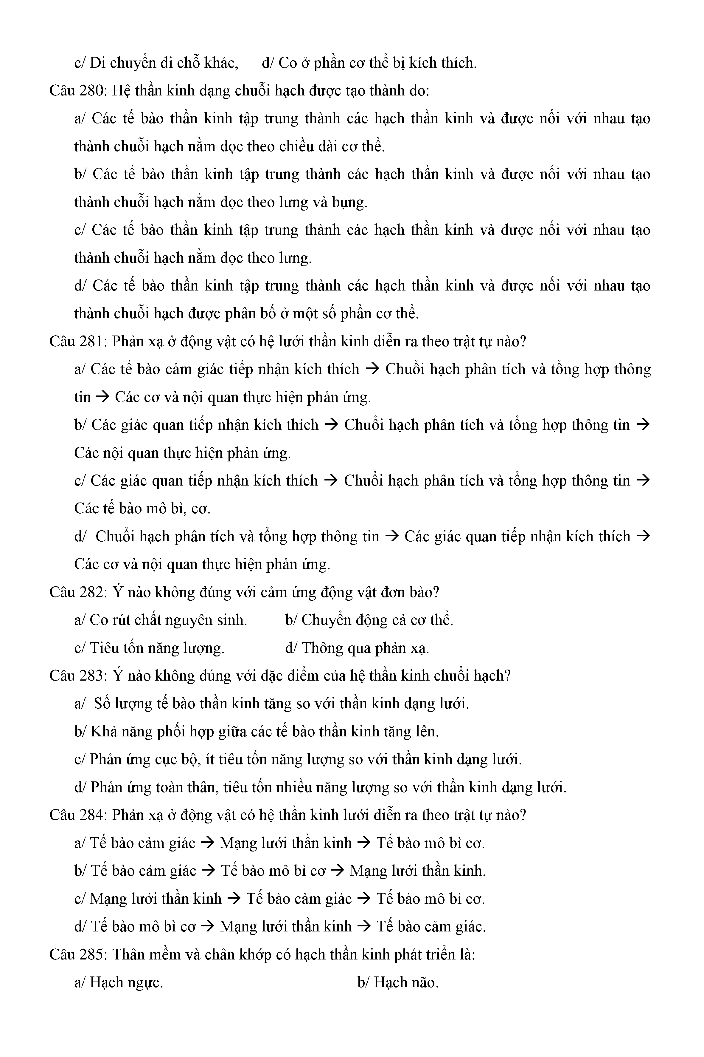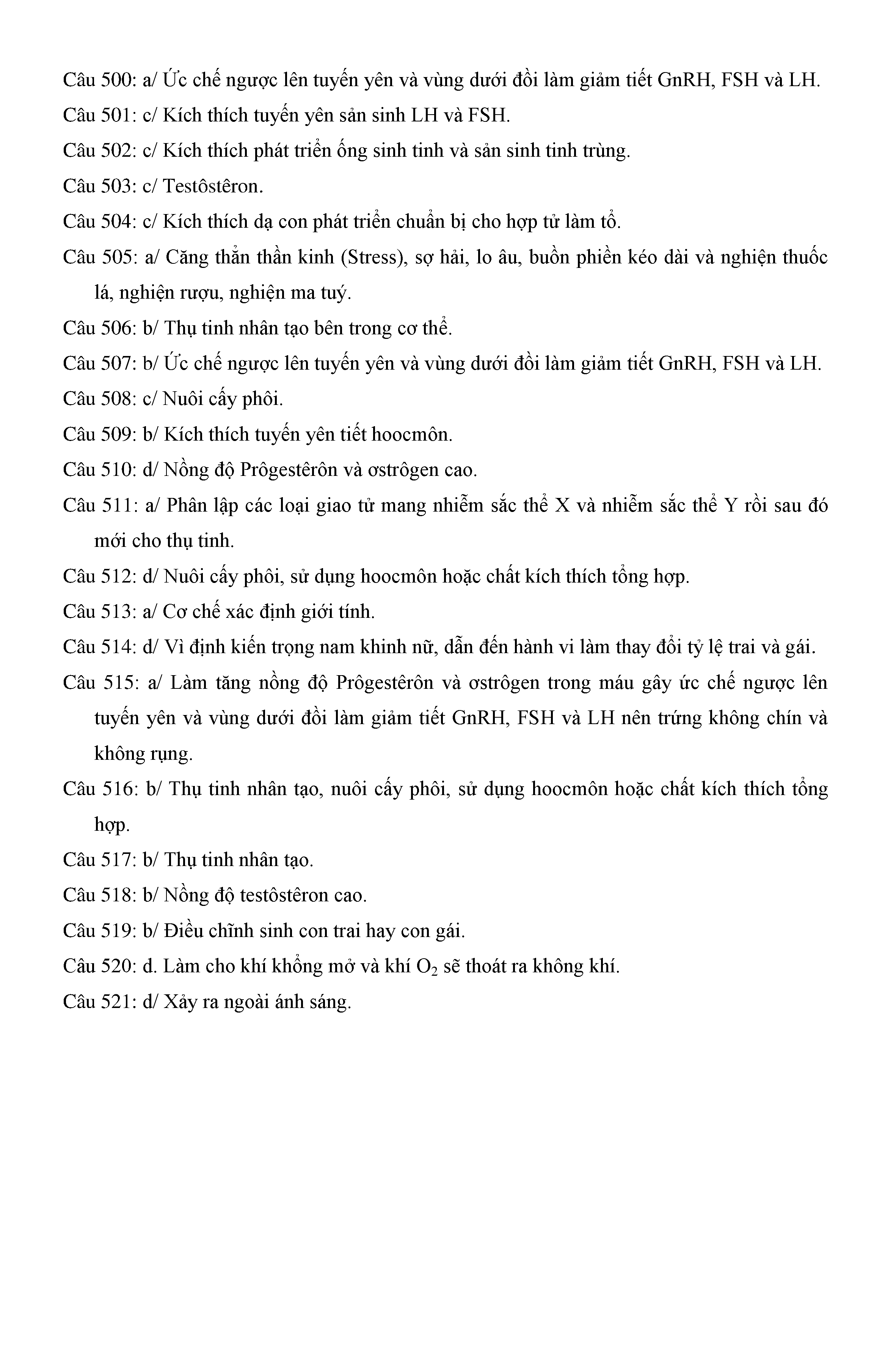 Trắc nghiệm Sinh học 11 (có đáp án)