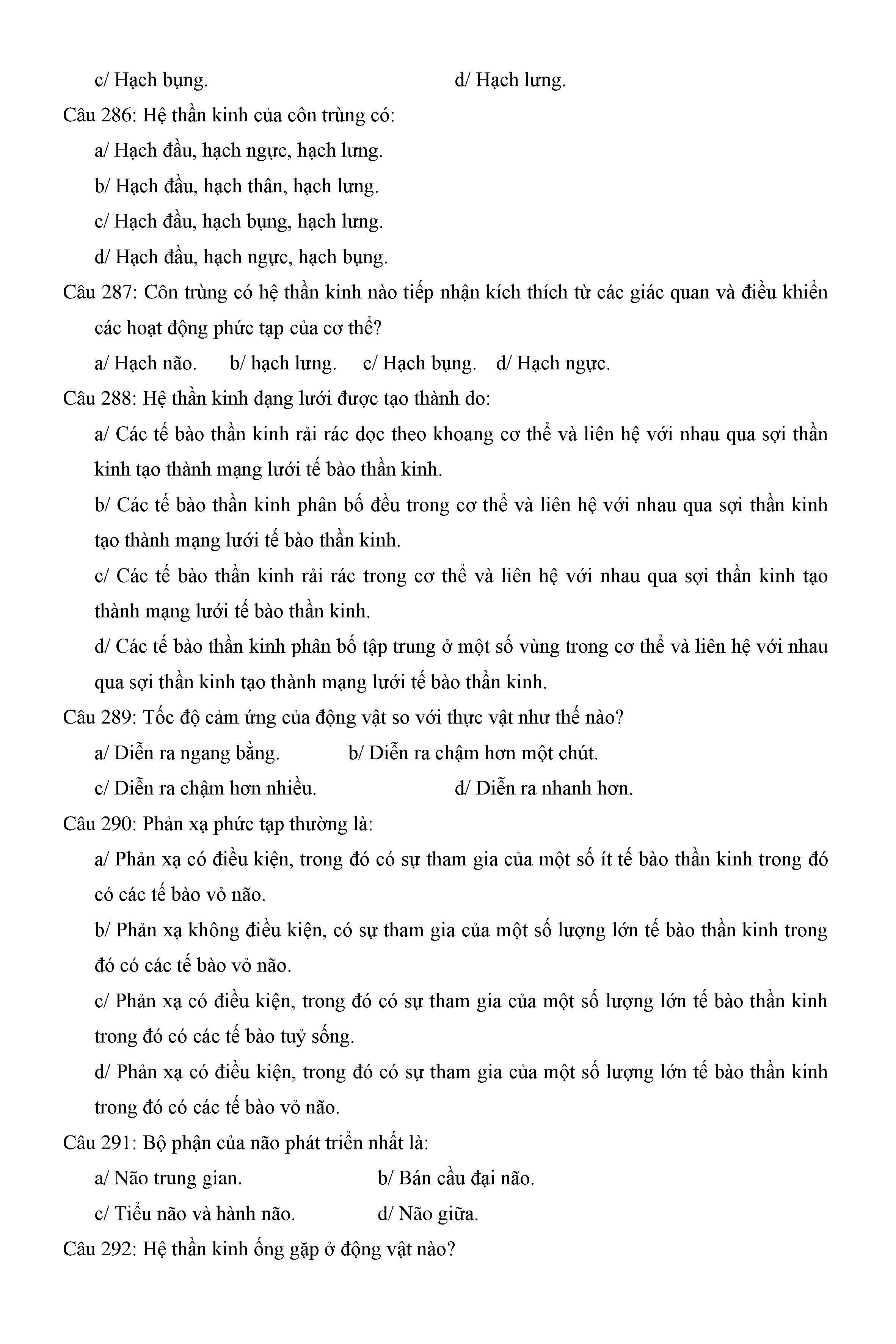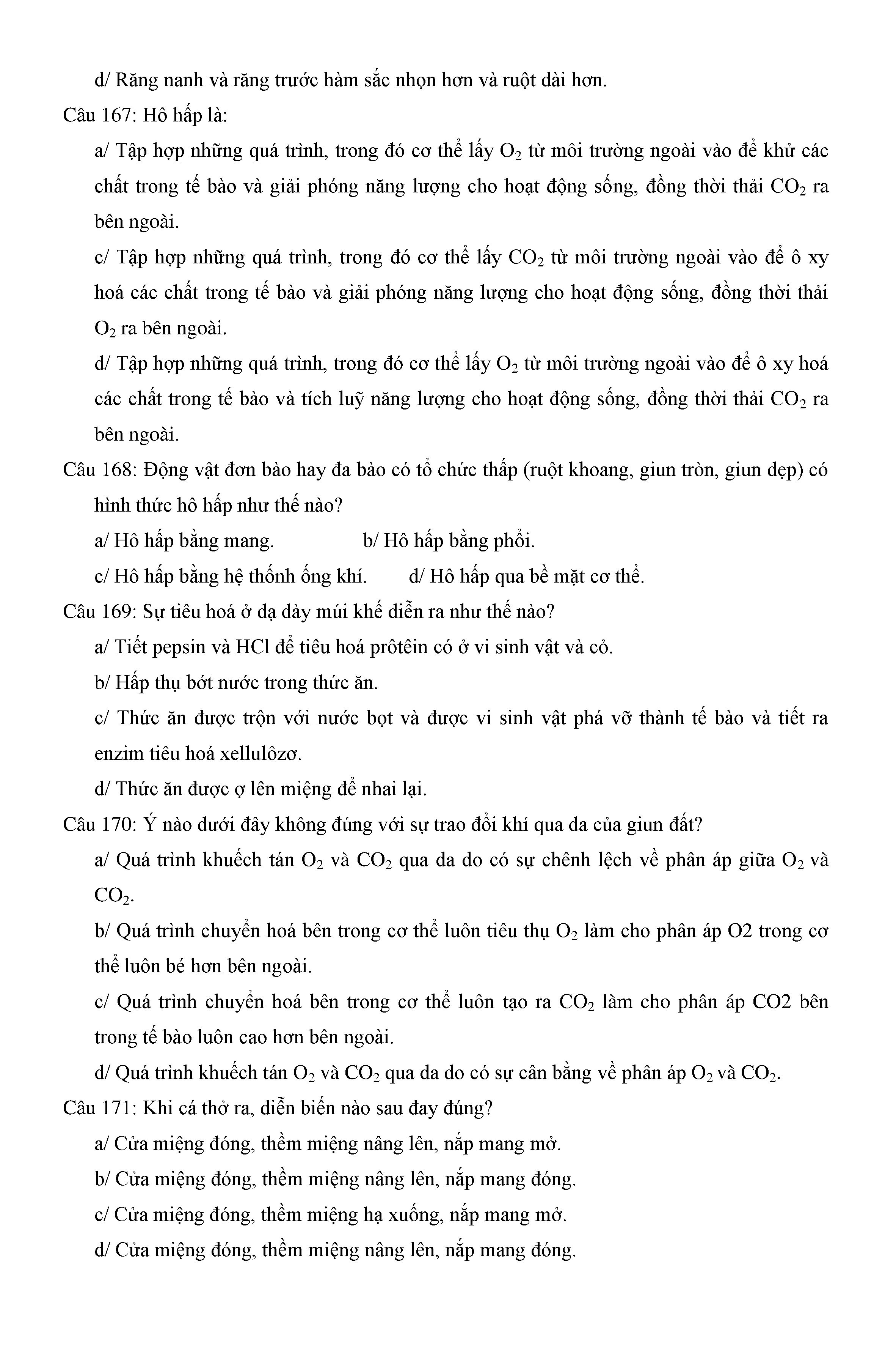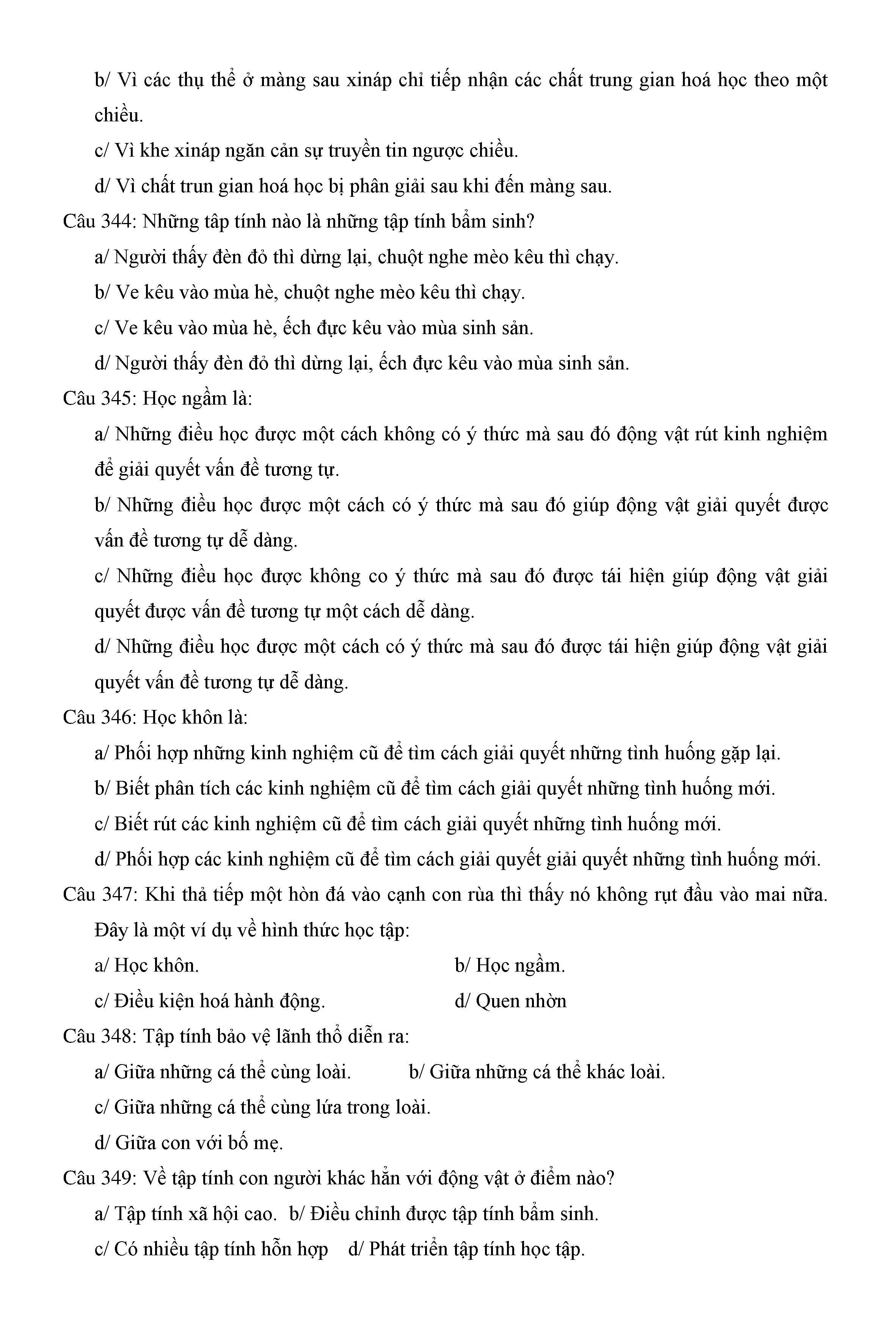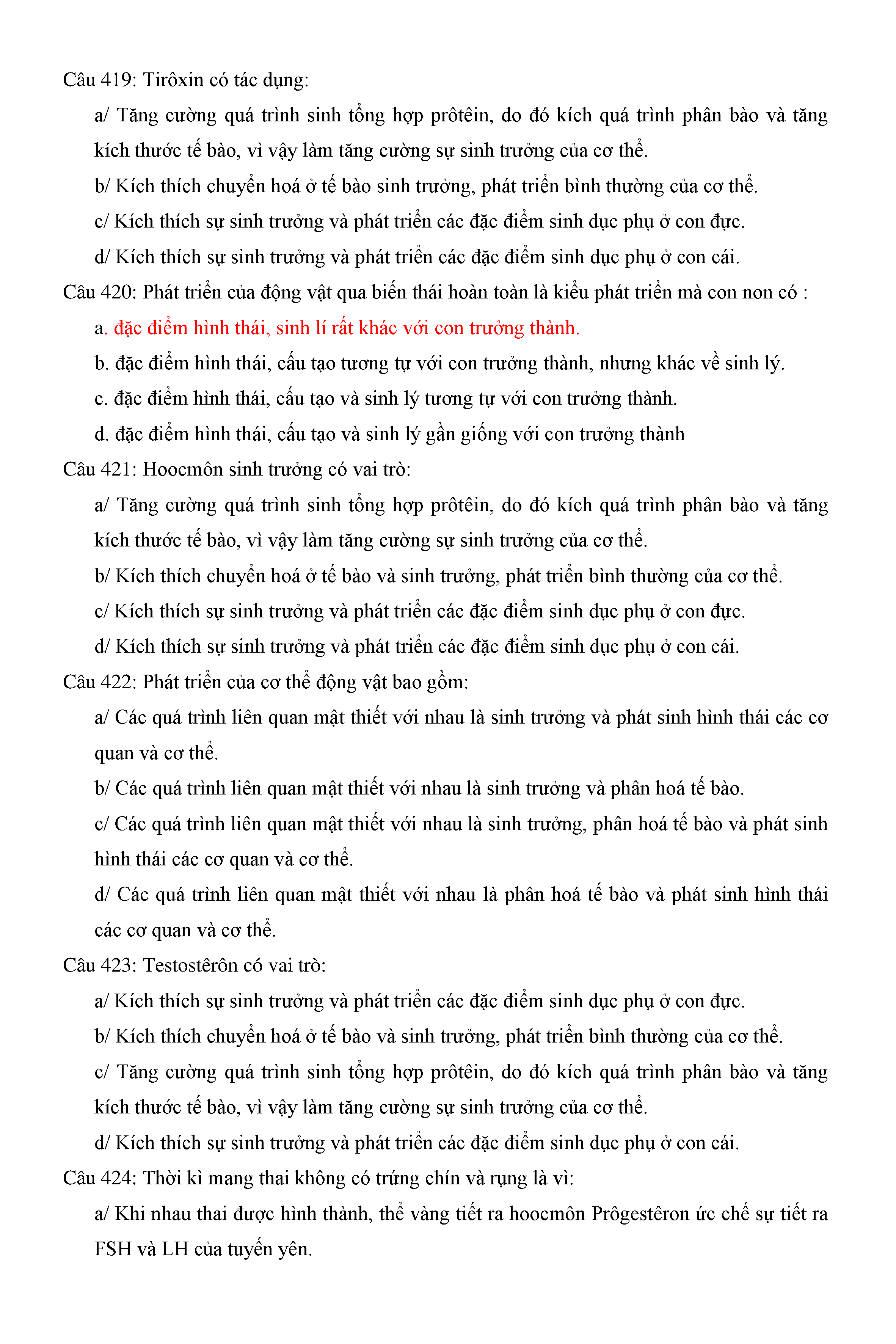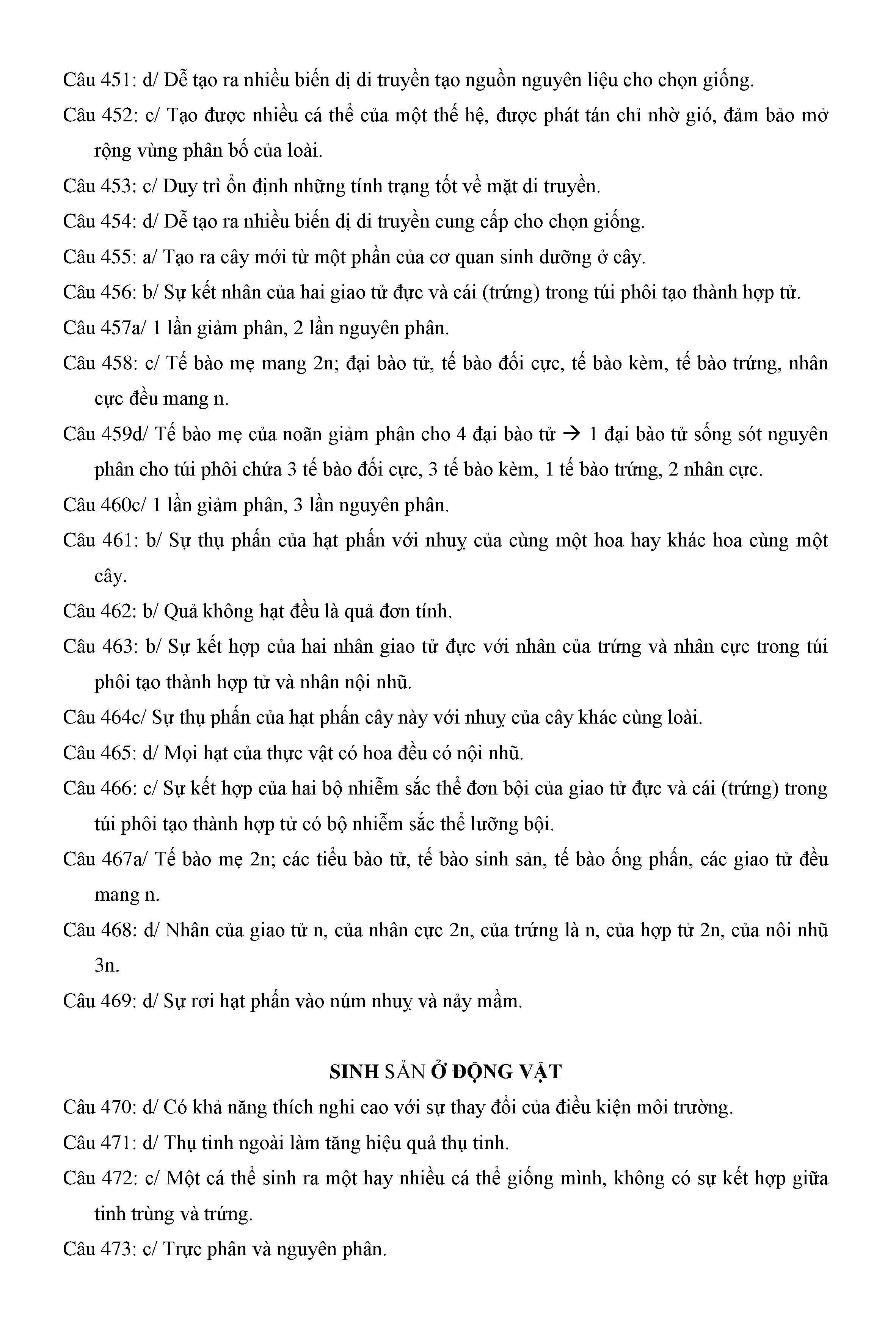 Trắc nghiệm Sinh học 11 (có đáp án)