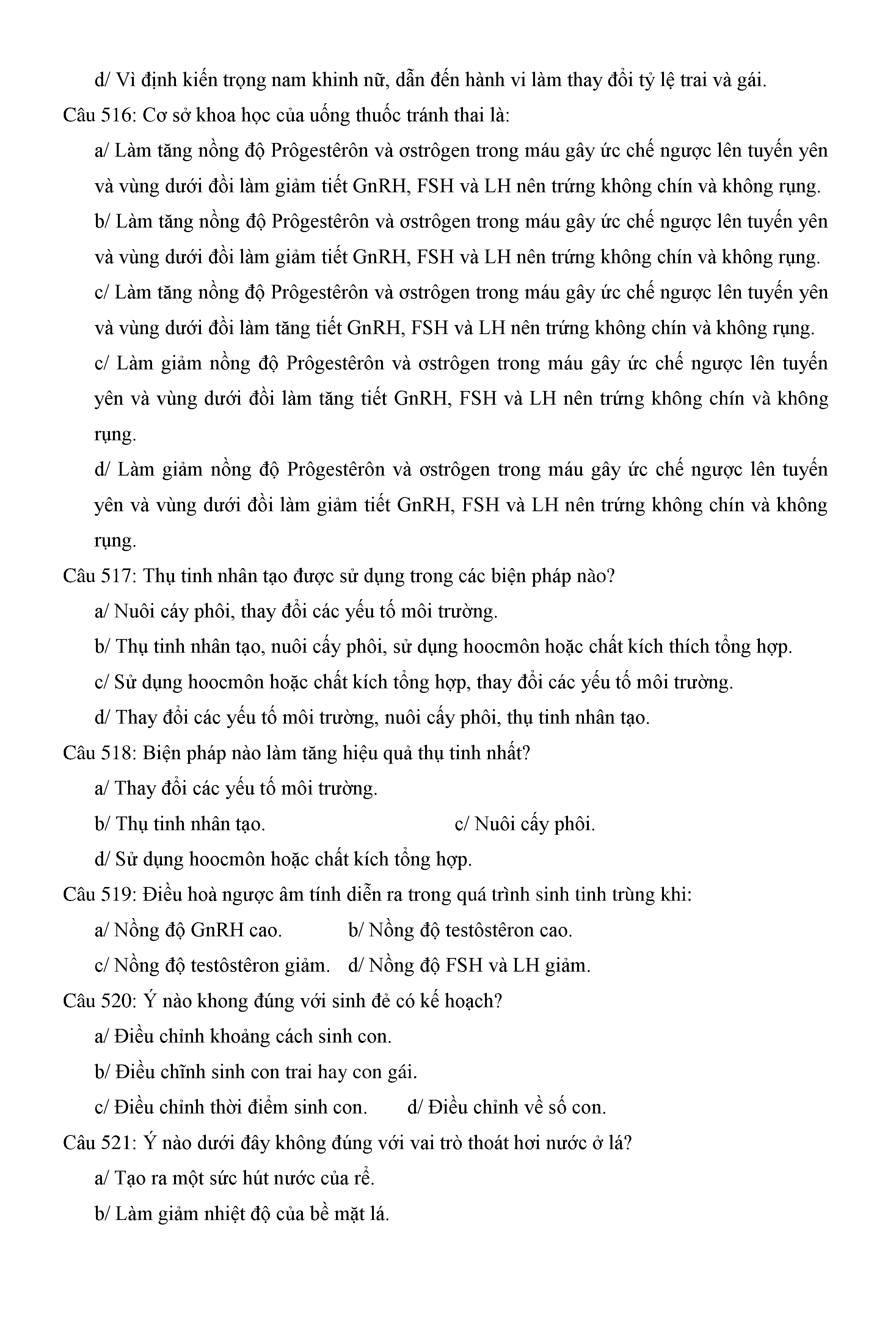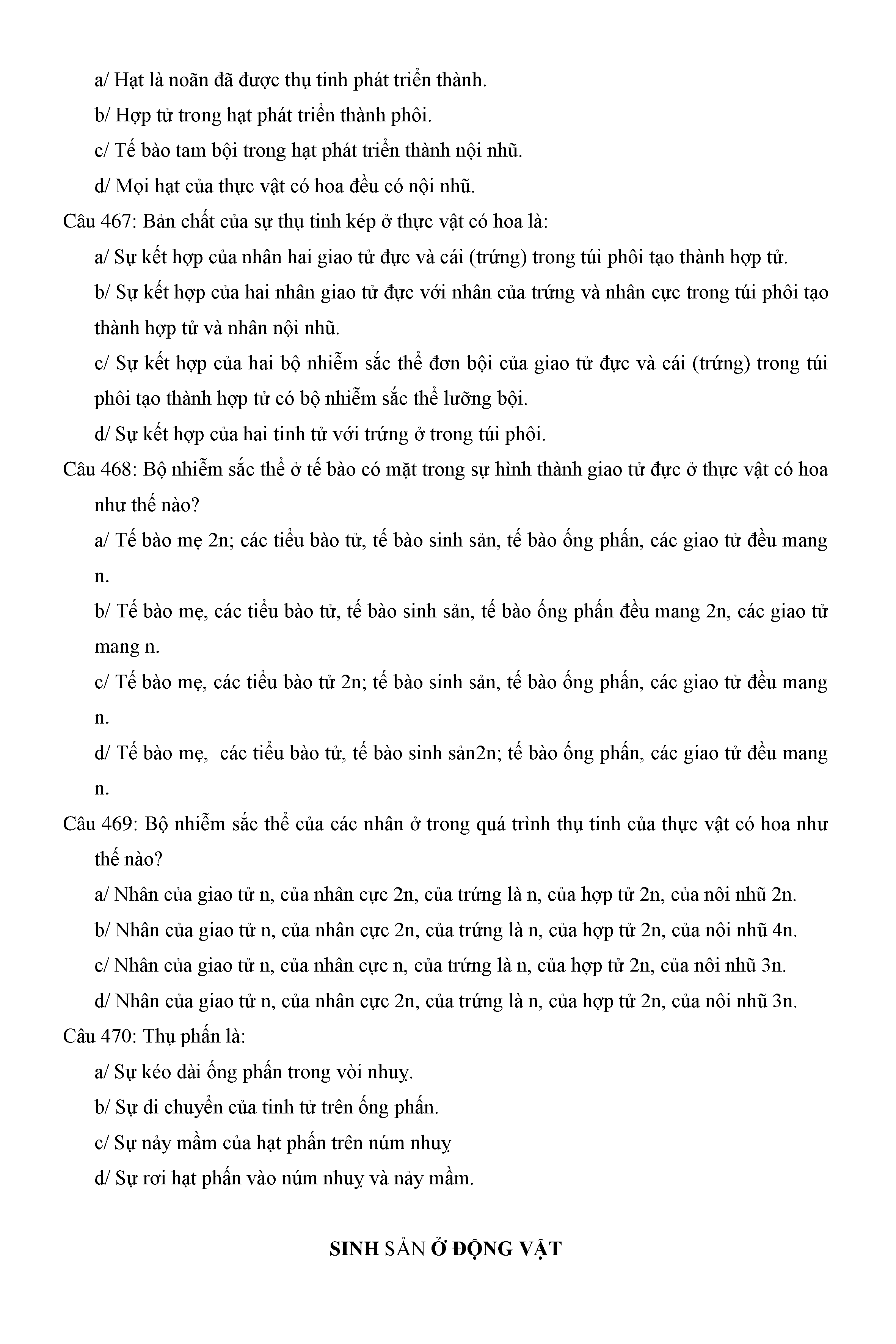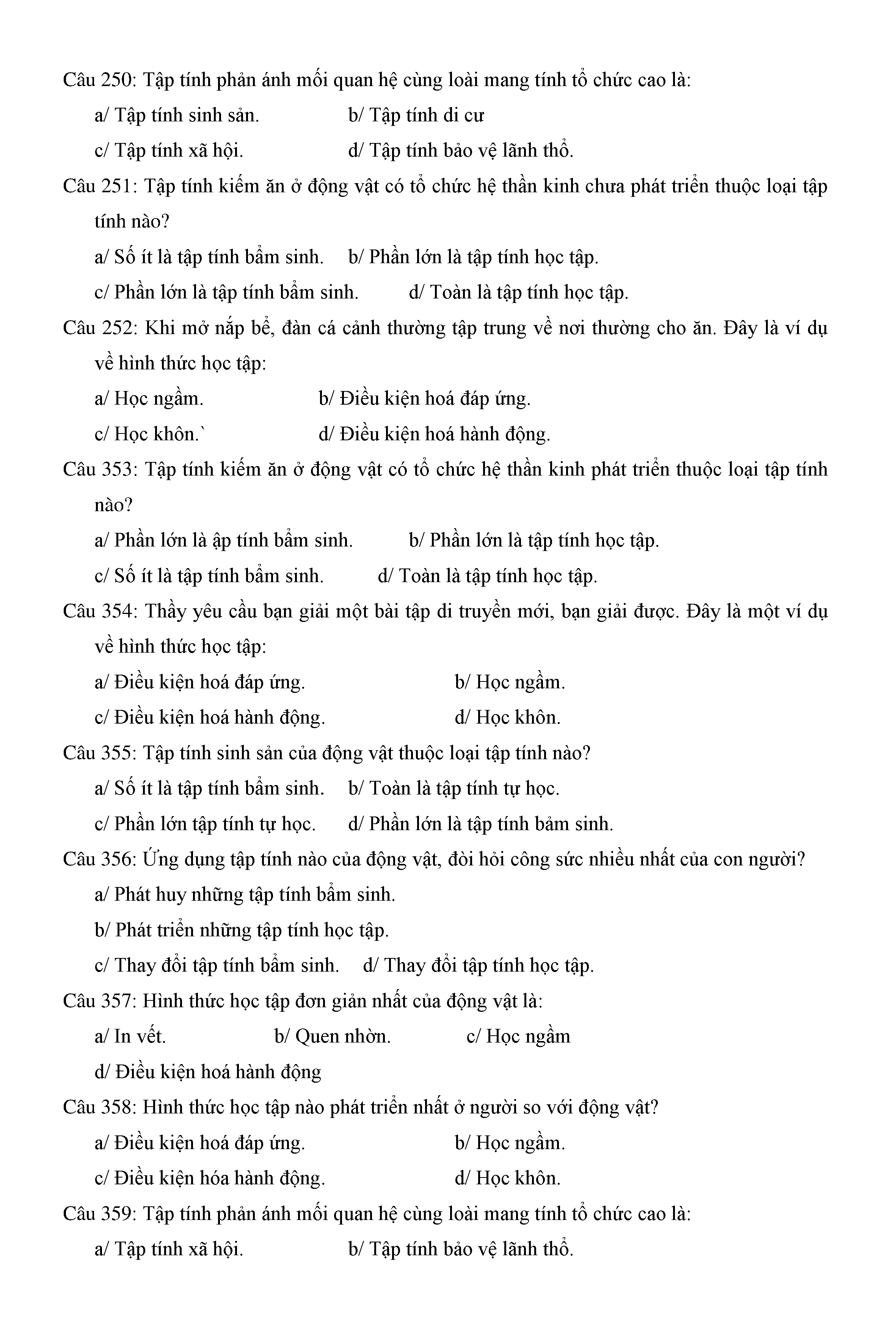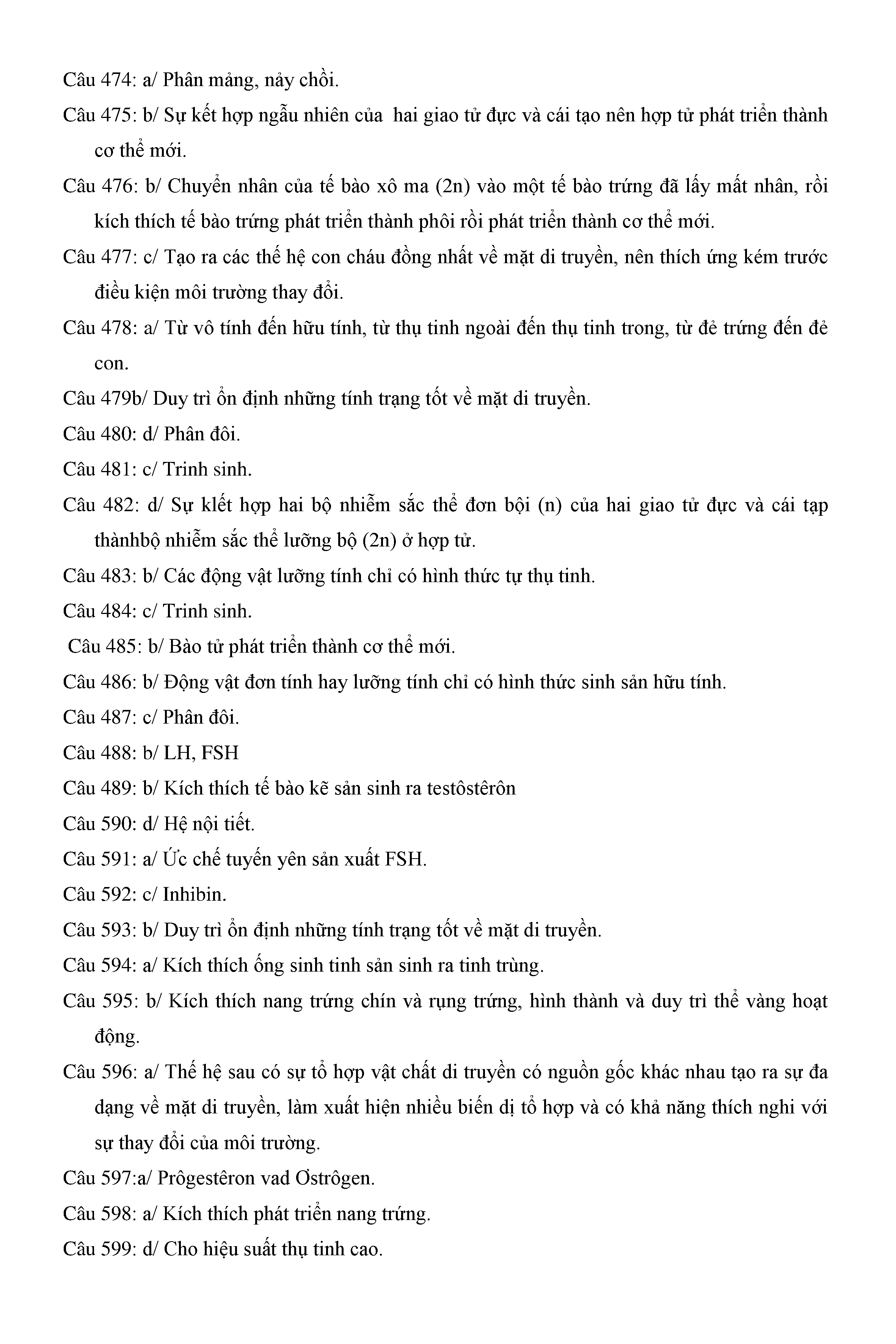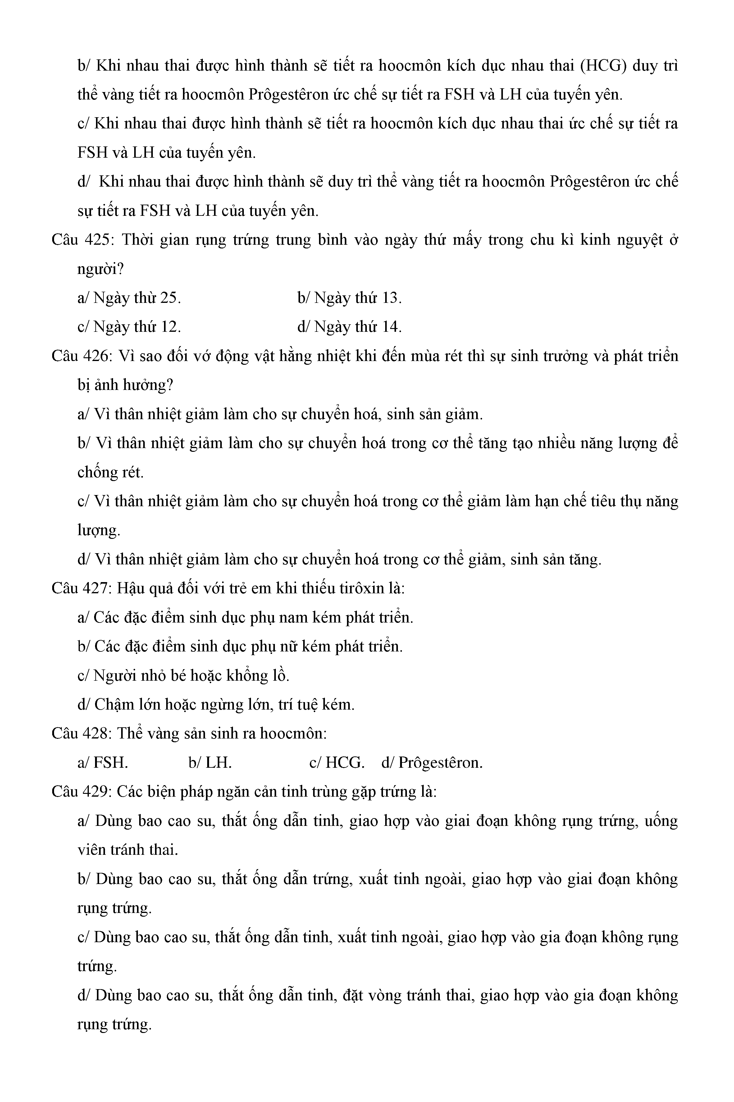 Trắc nghiệm Sinh học 11 (có đáp án)