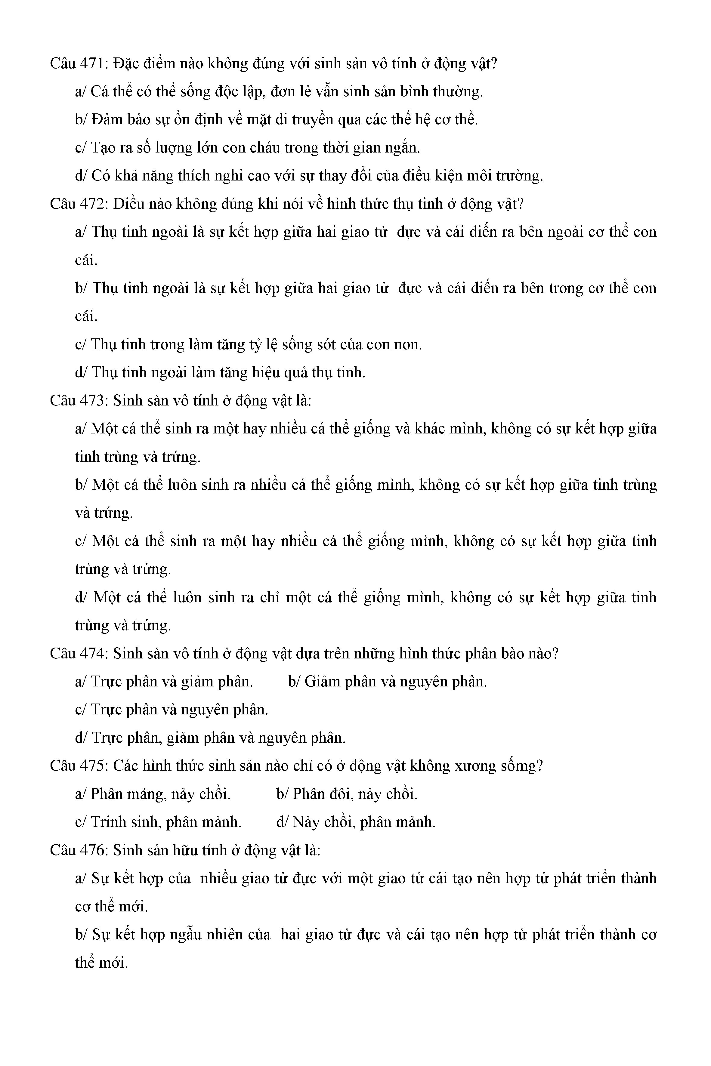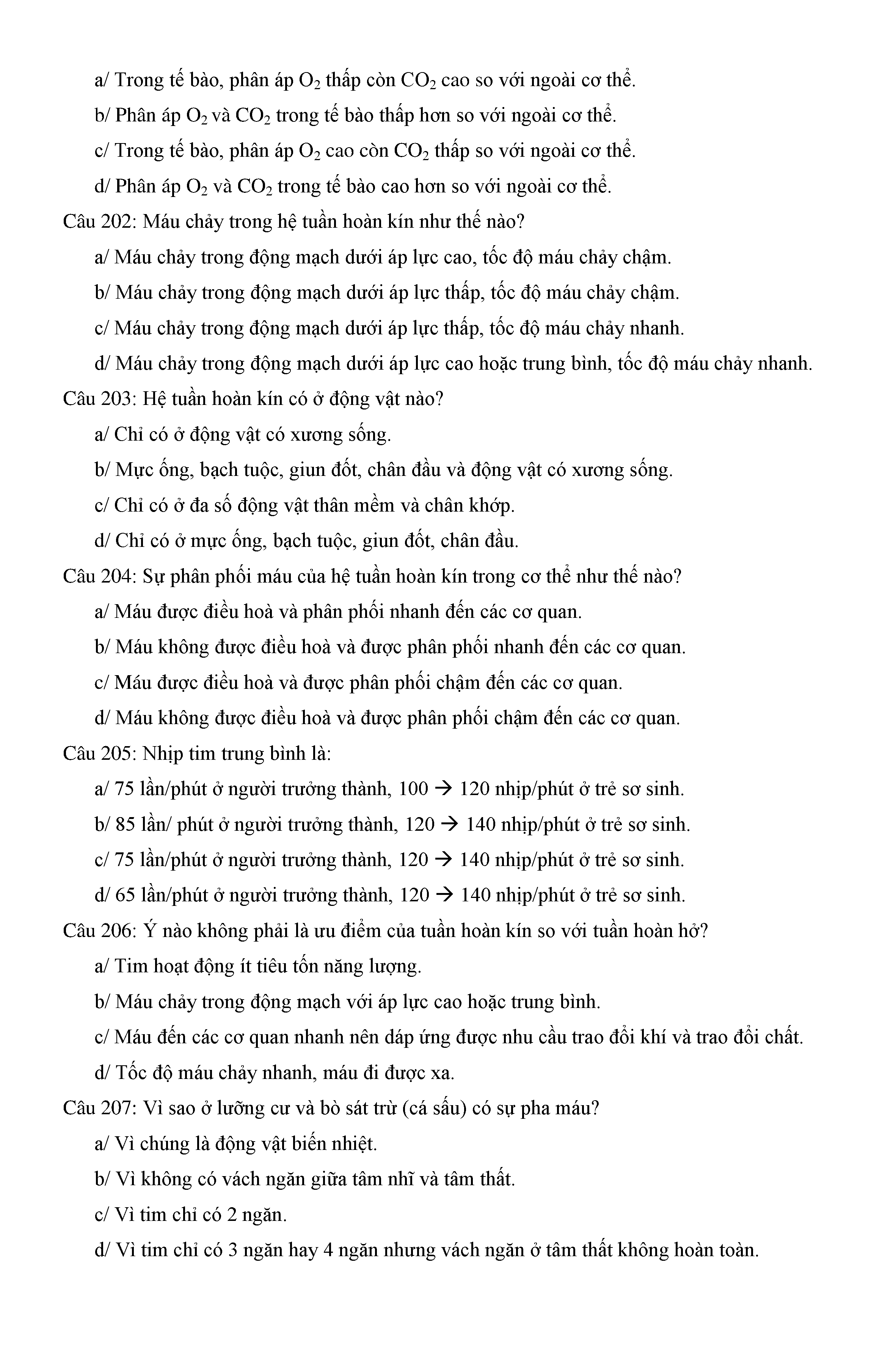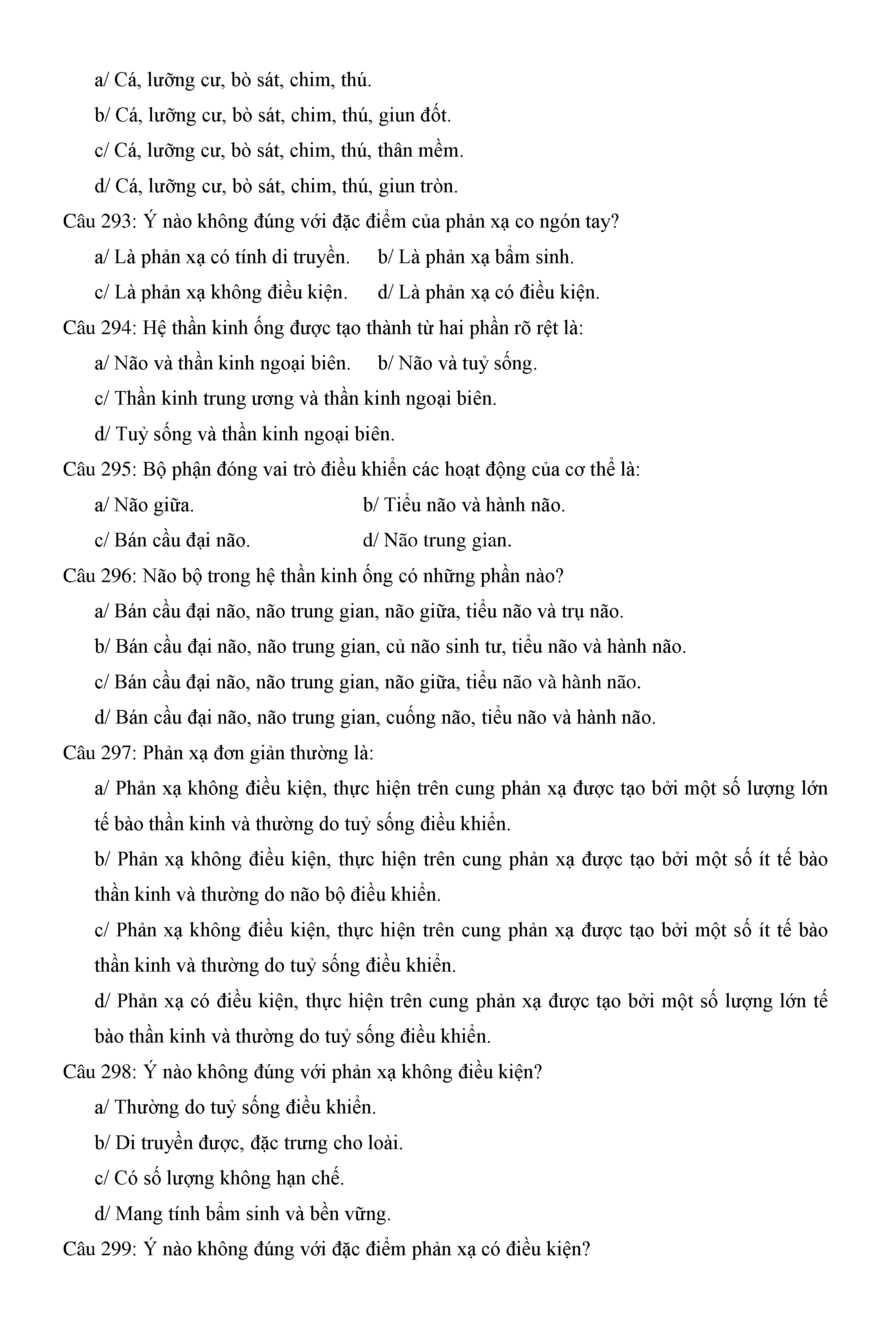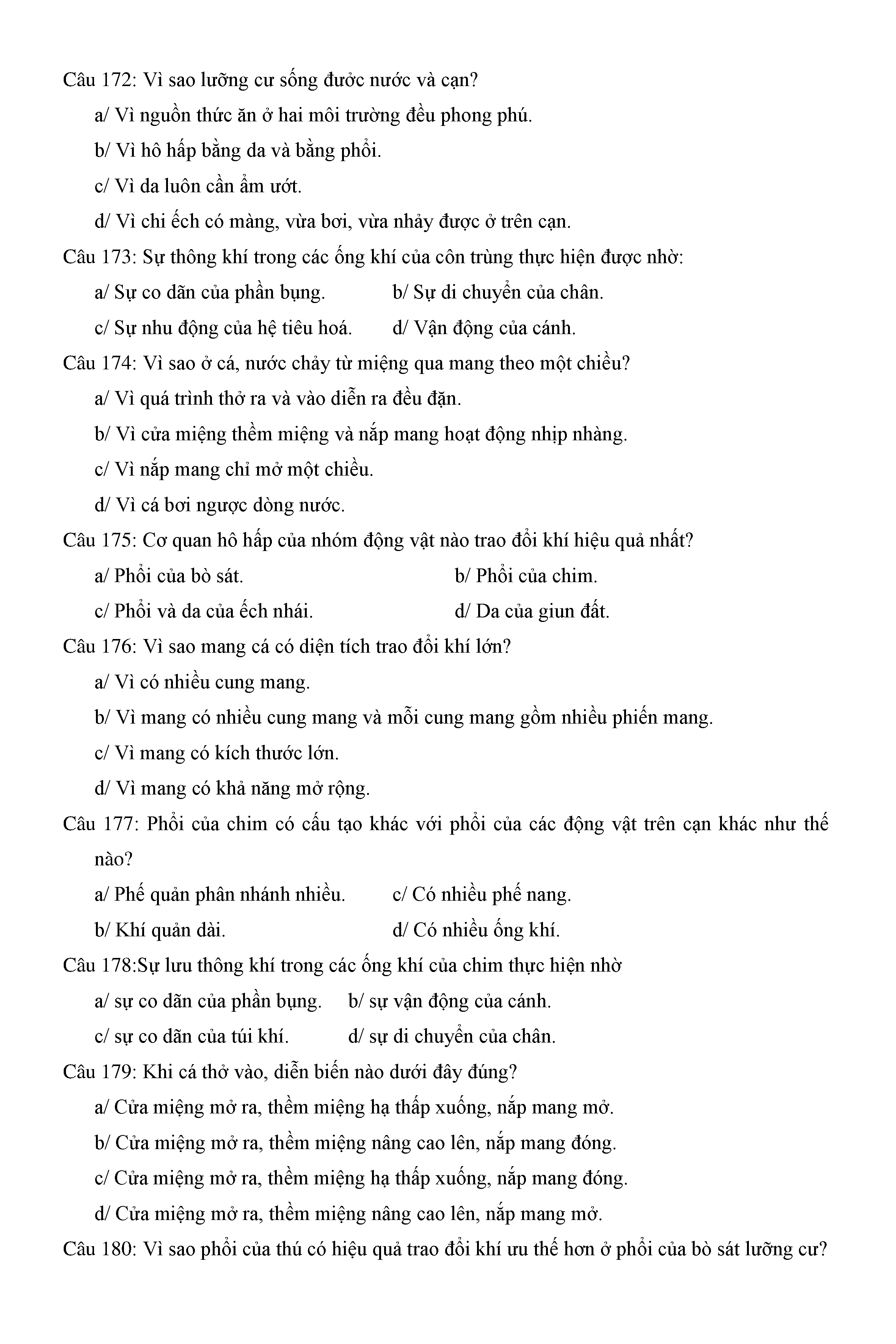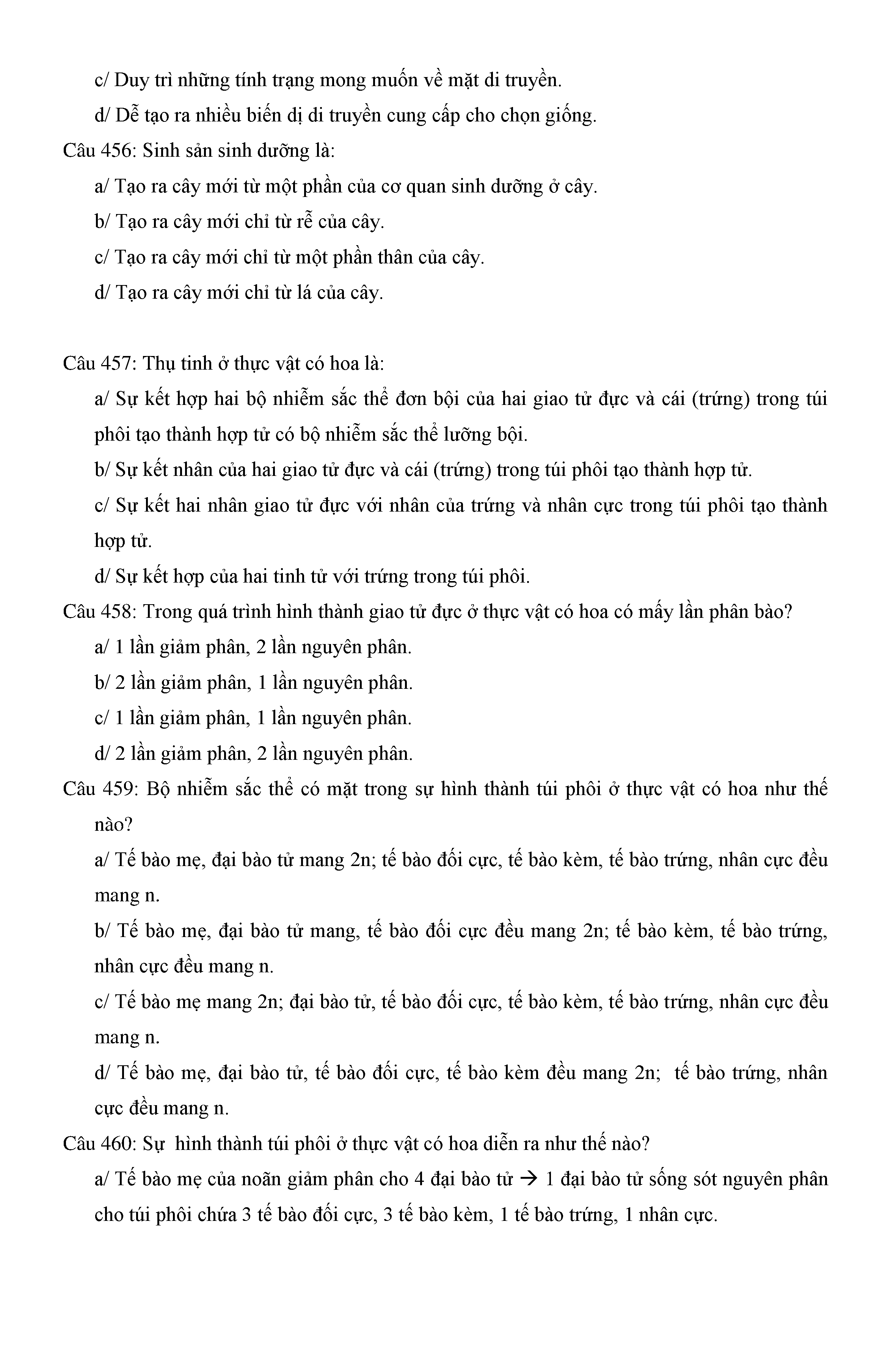 Trắc nghiệm Sinh học 11 (có đáp án)