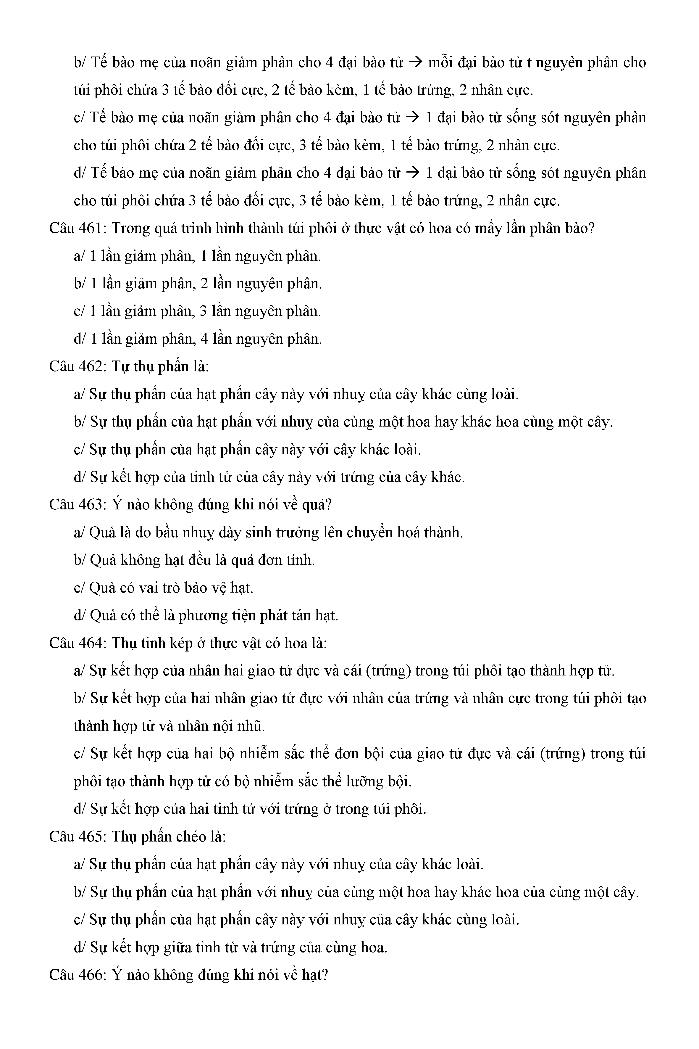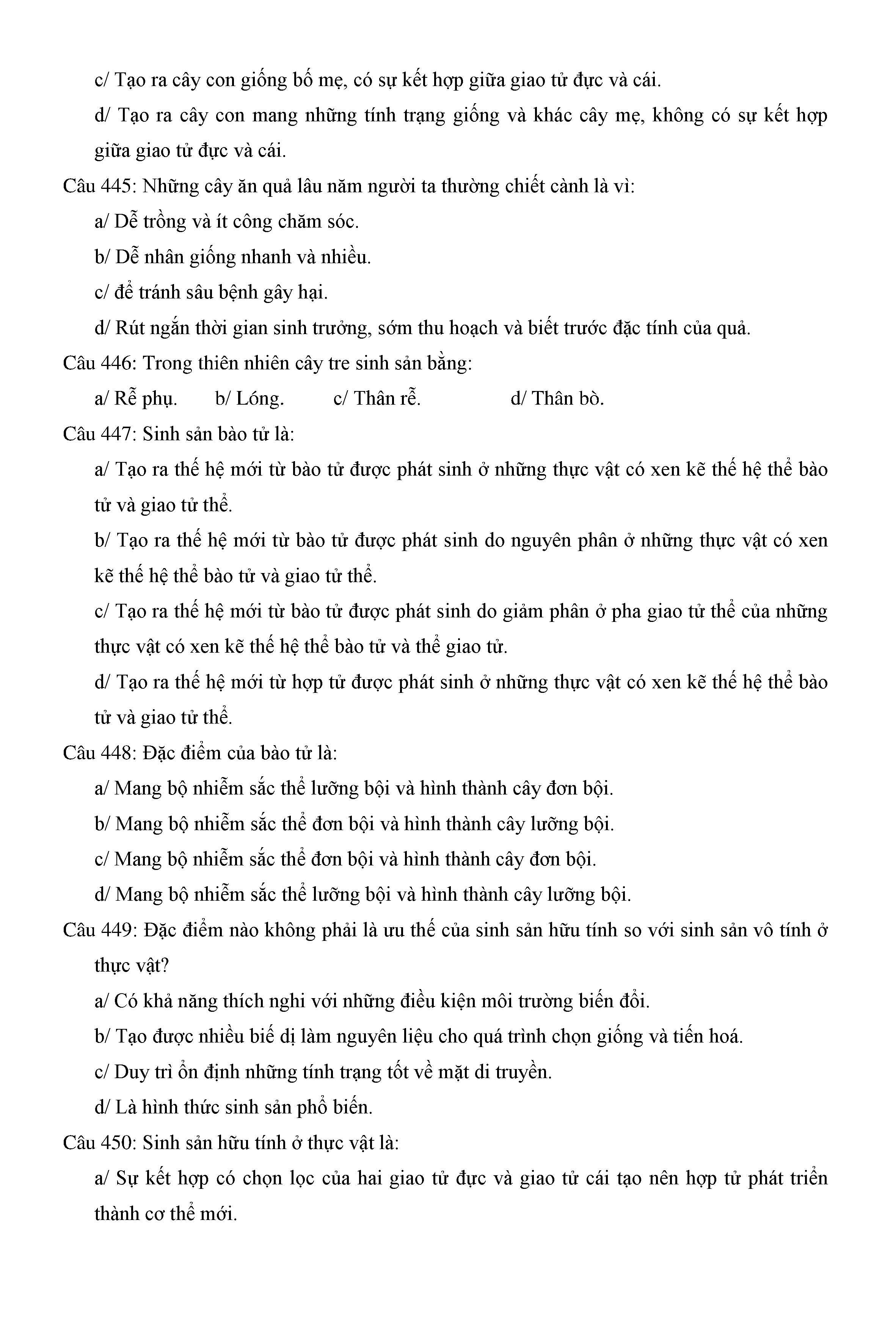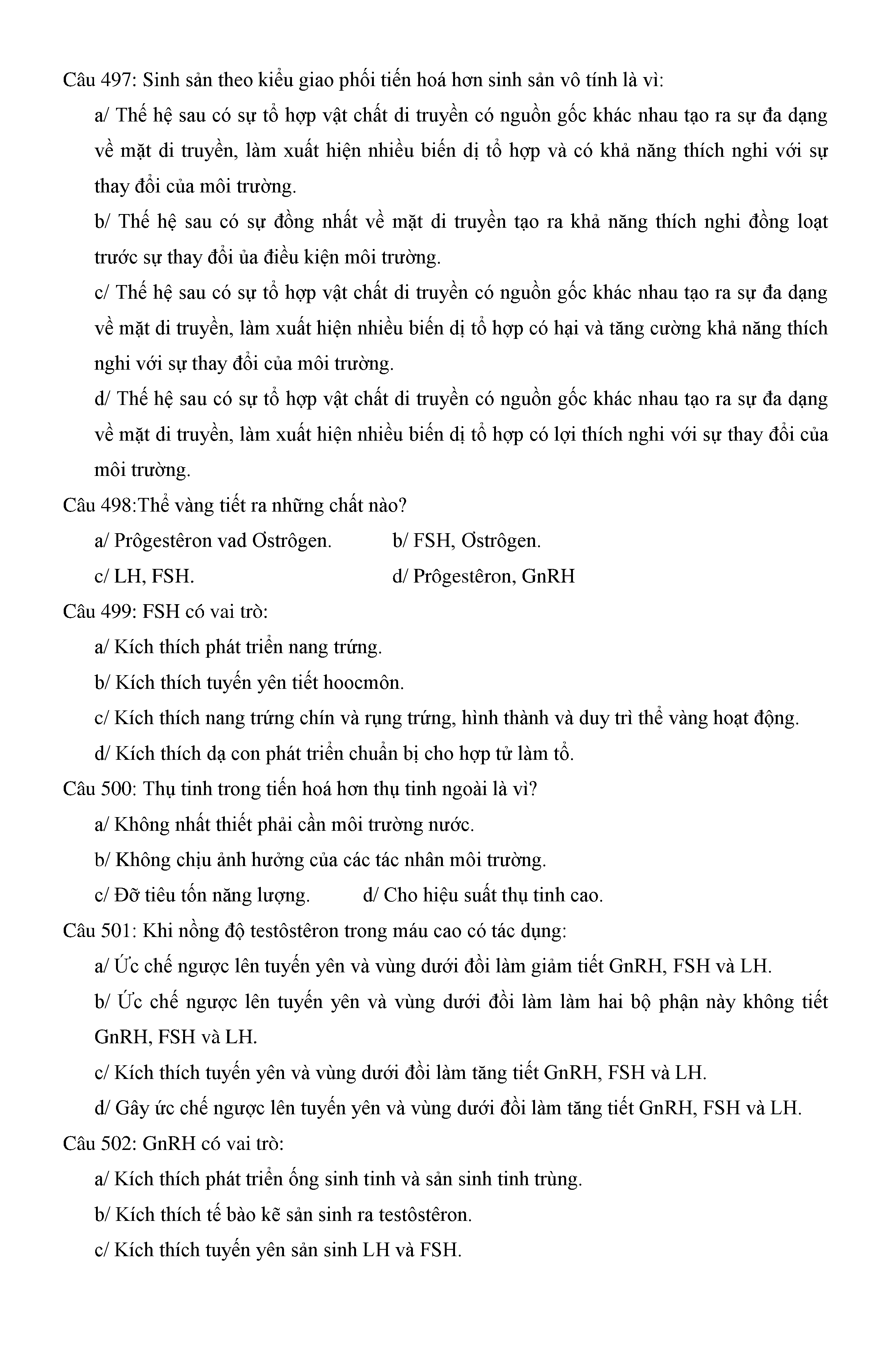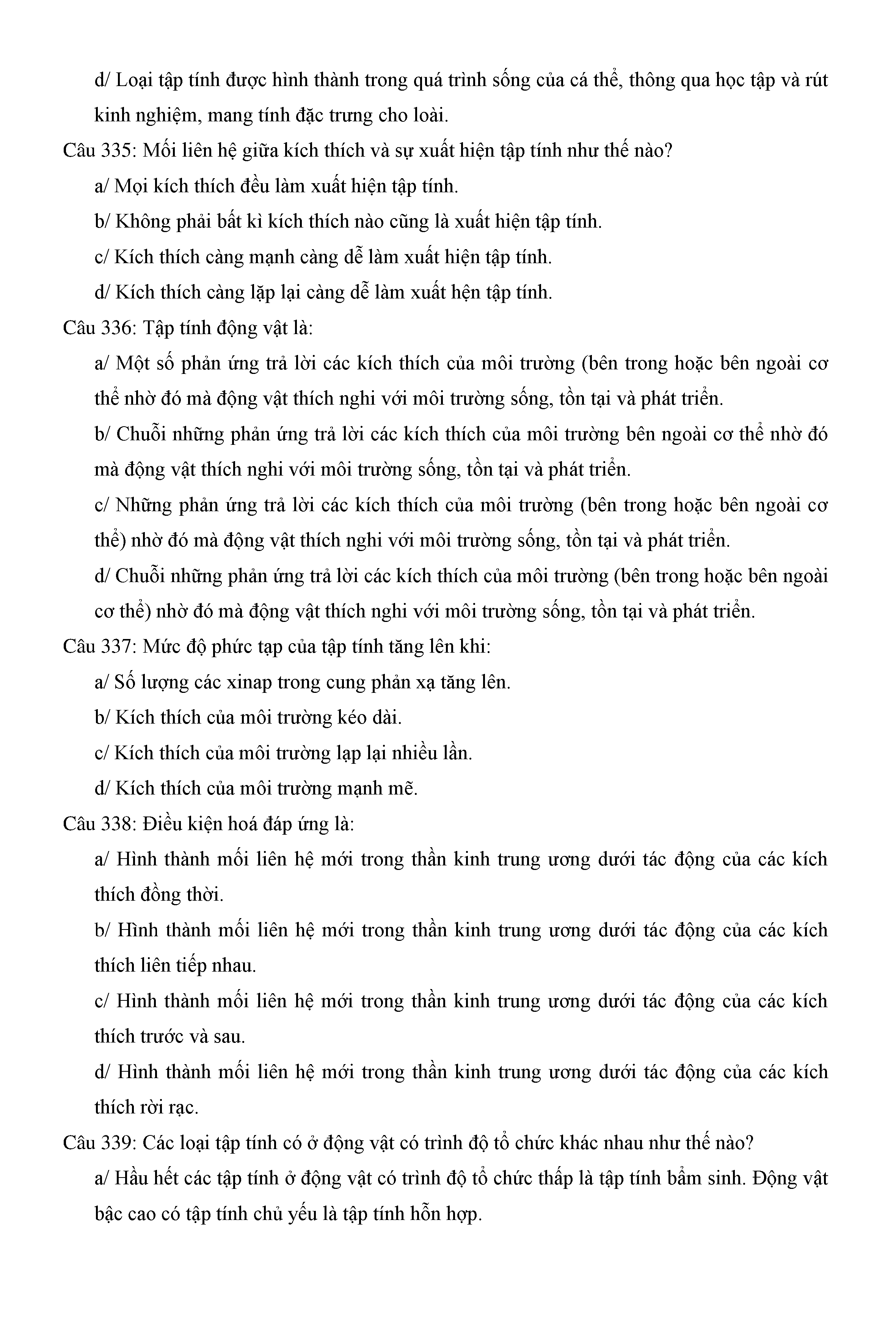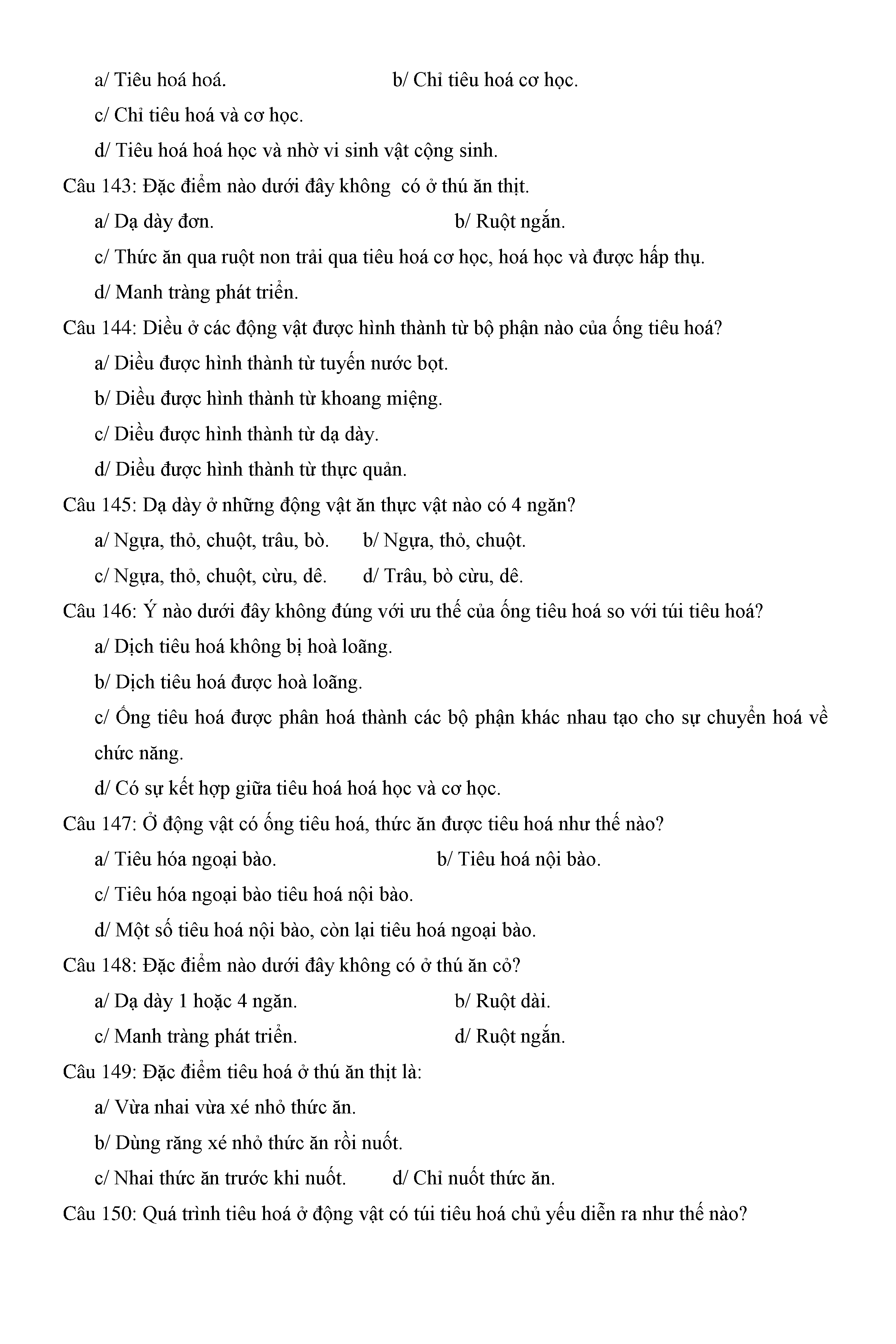 Trắc nghiệm Sinh học 11 (có đáp án)