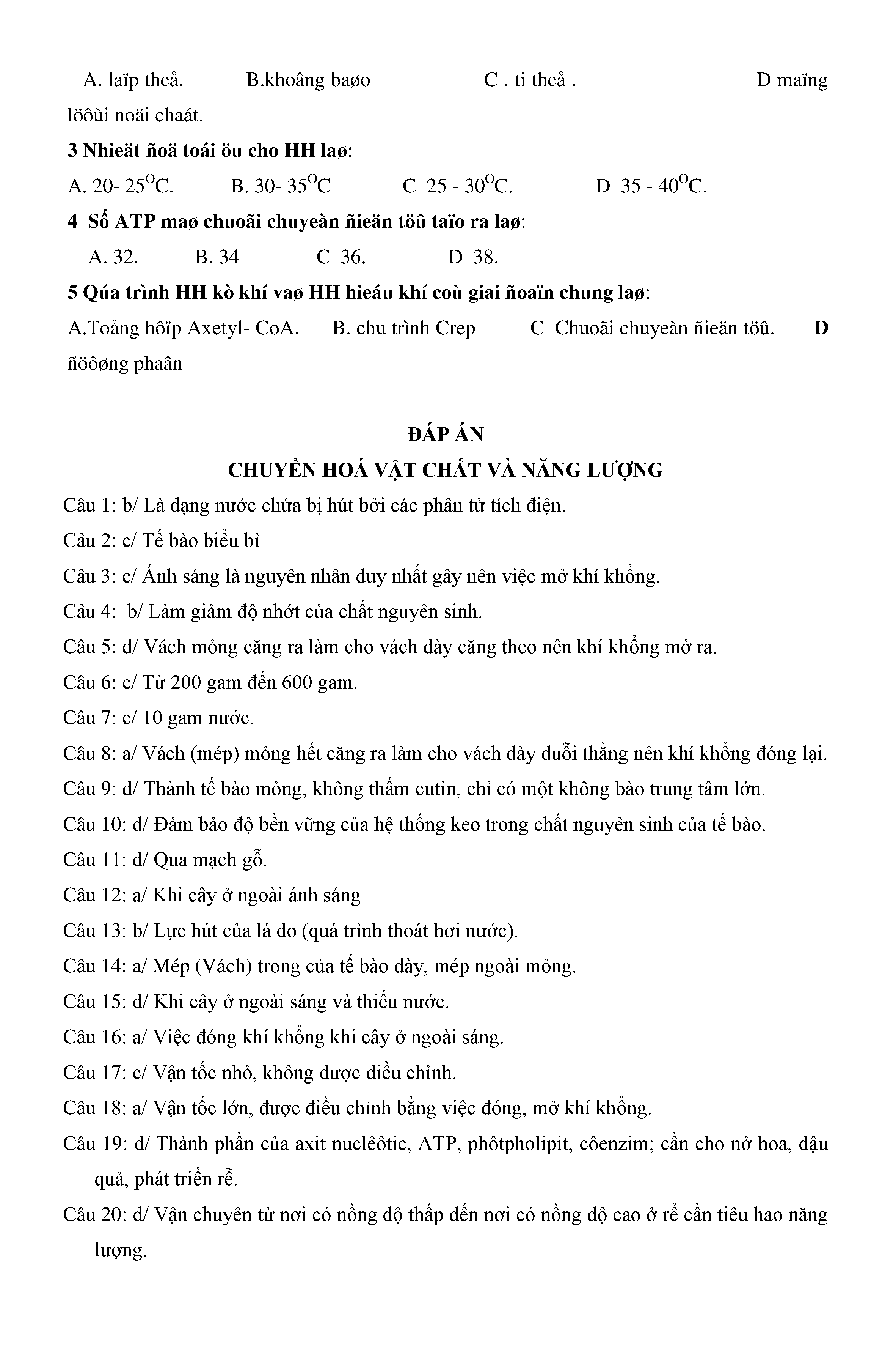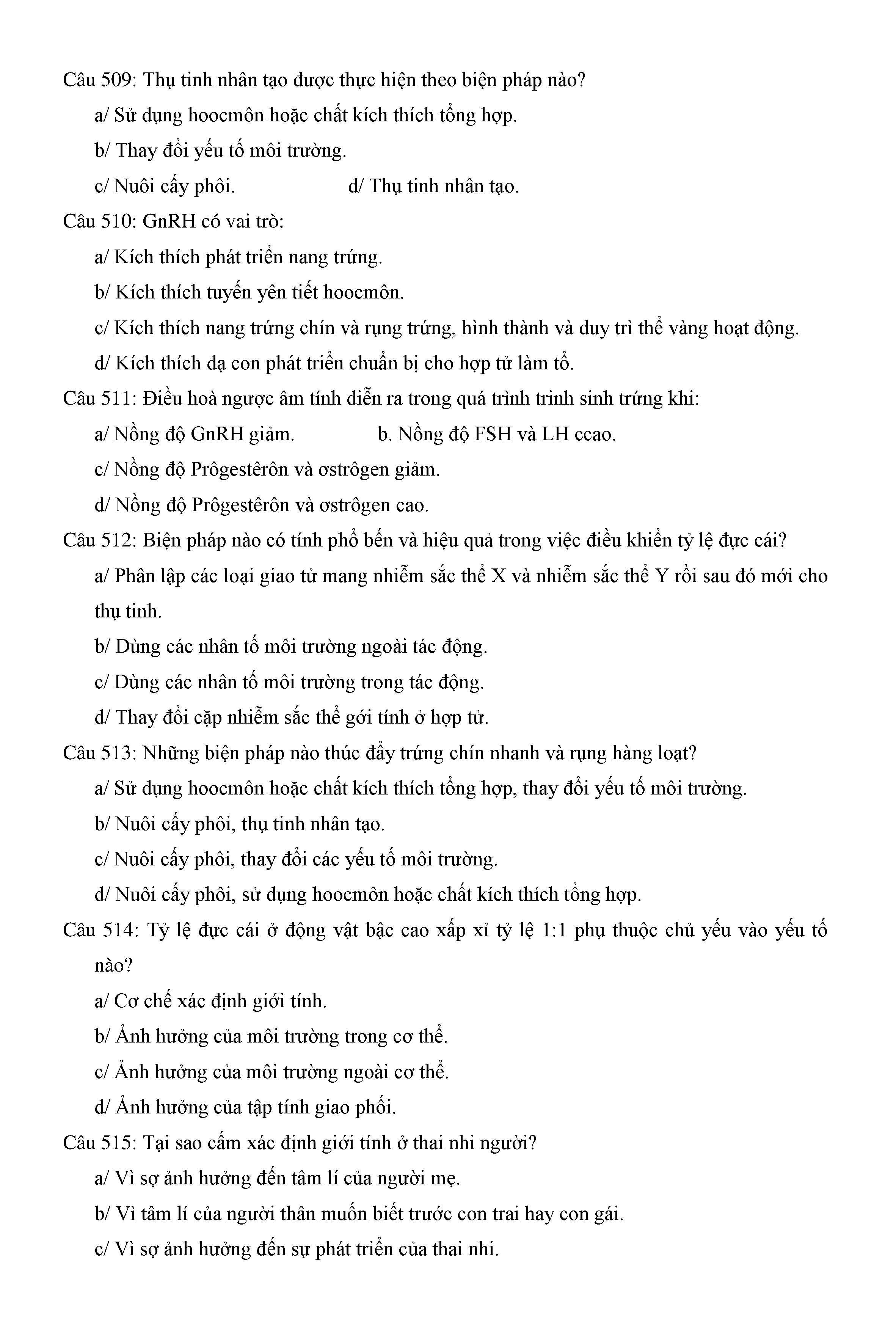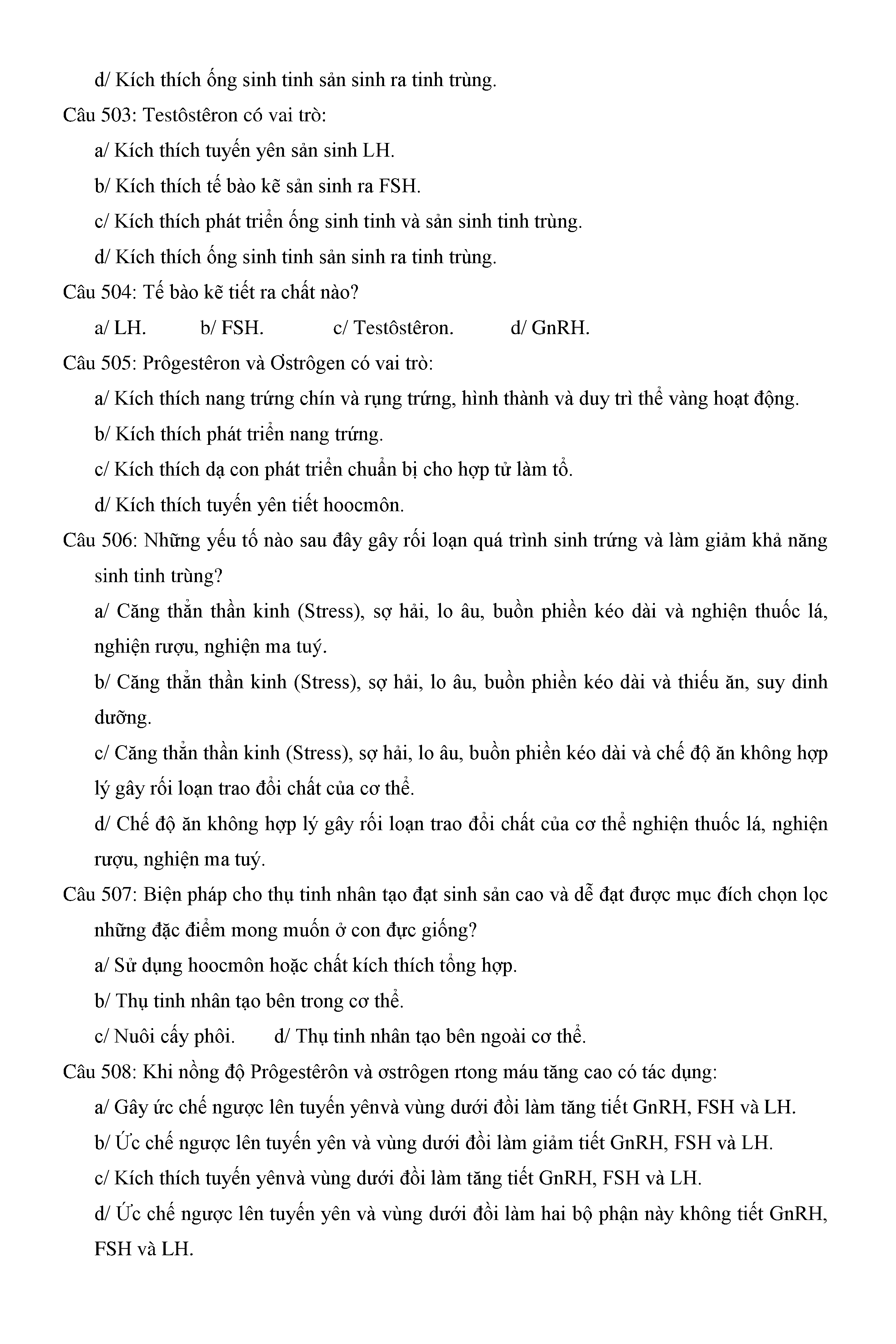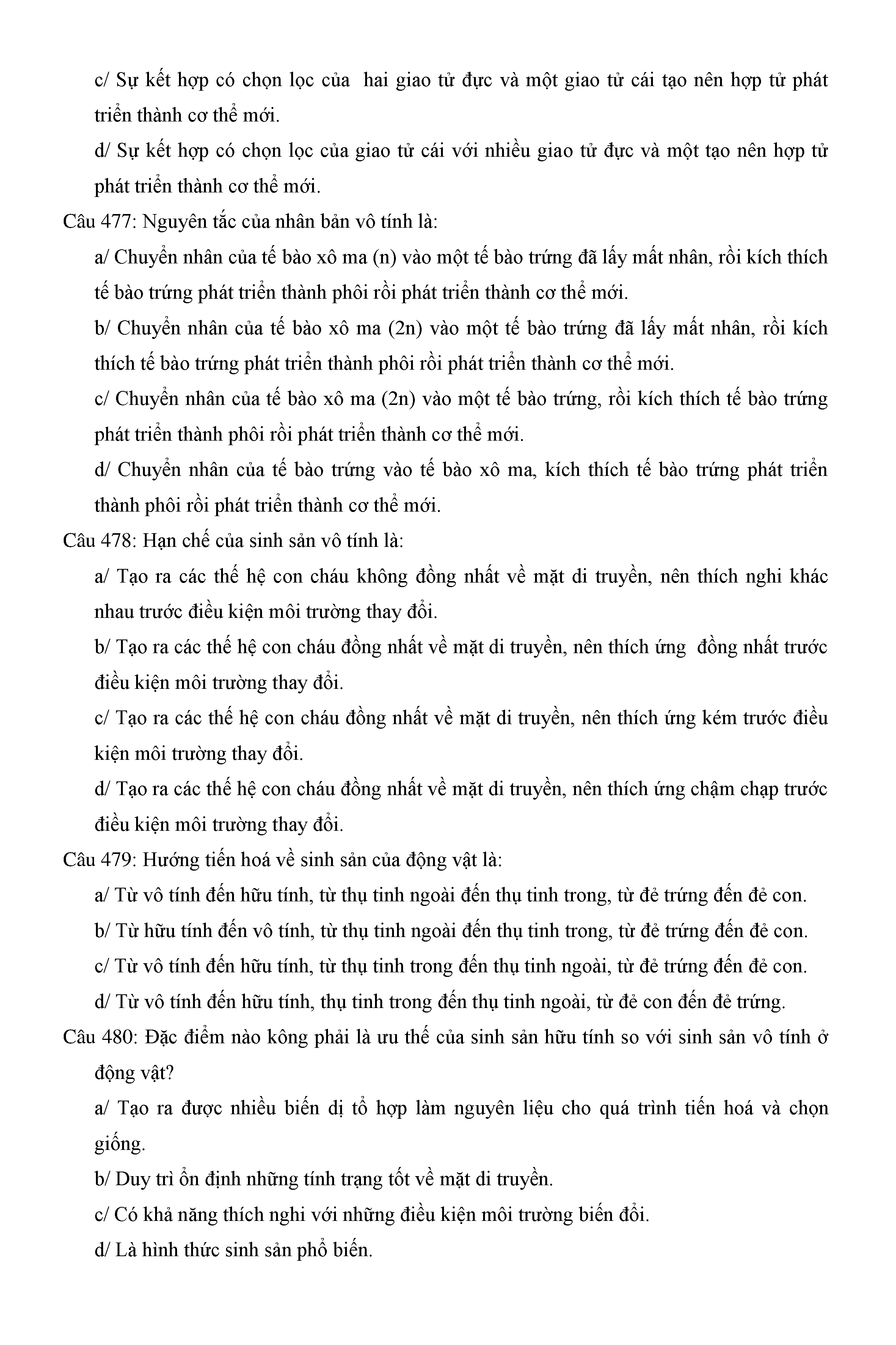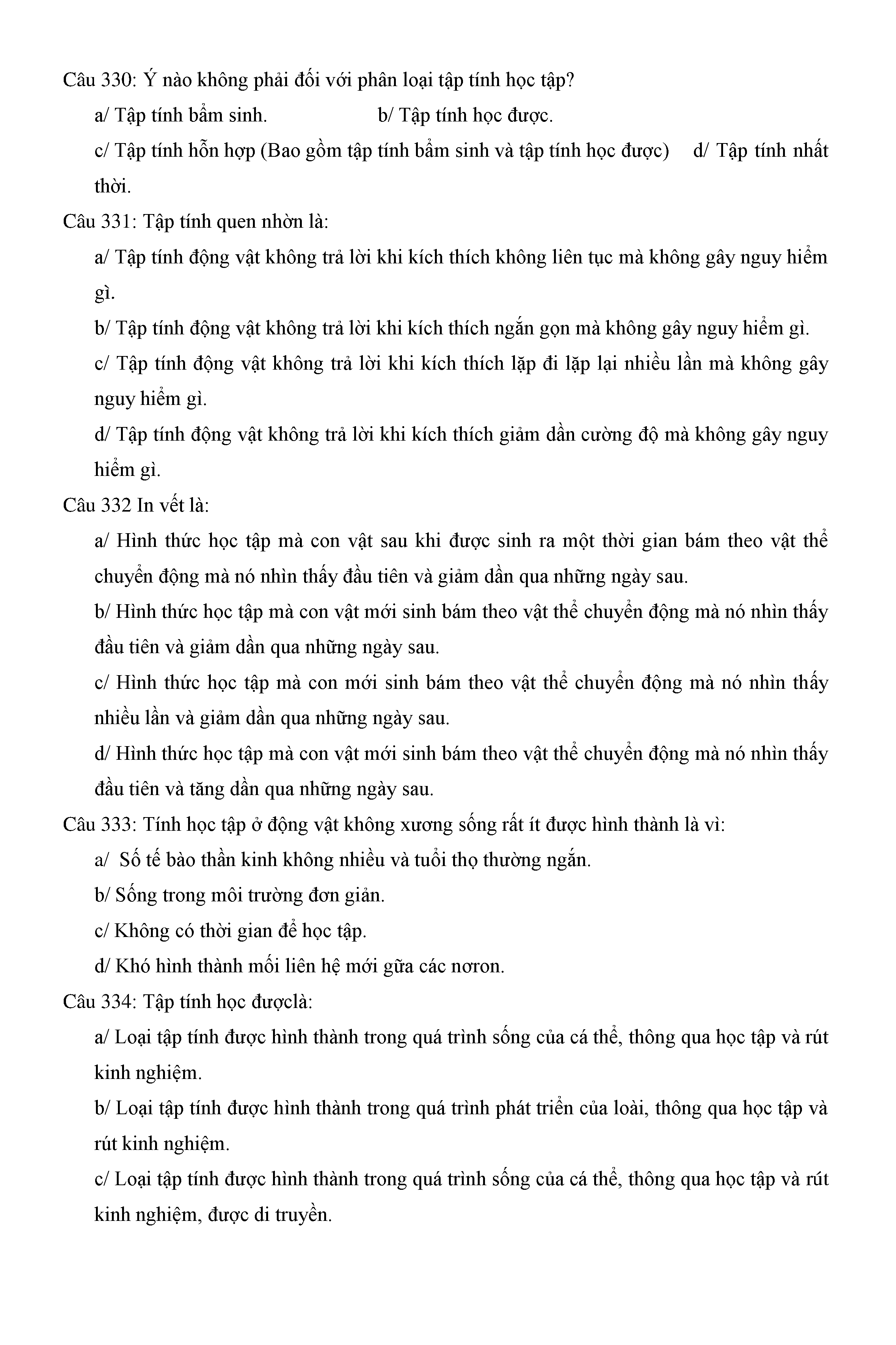Trắc nghiệm Sinh học 11 (có đáp án)