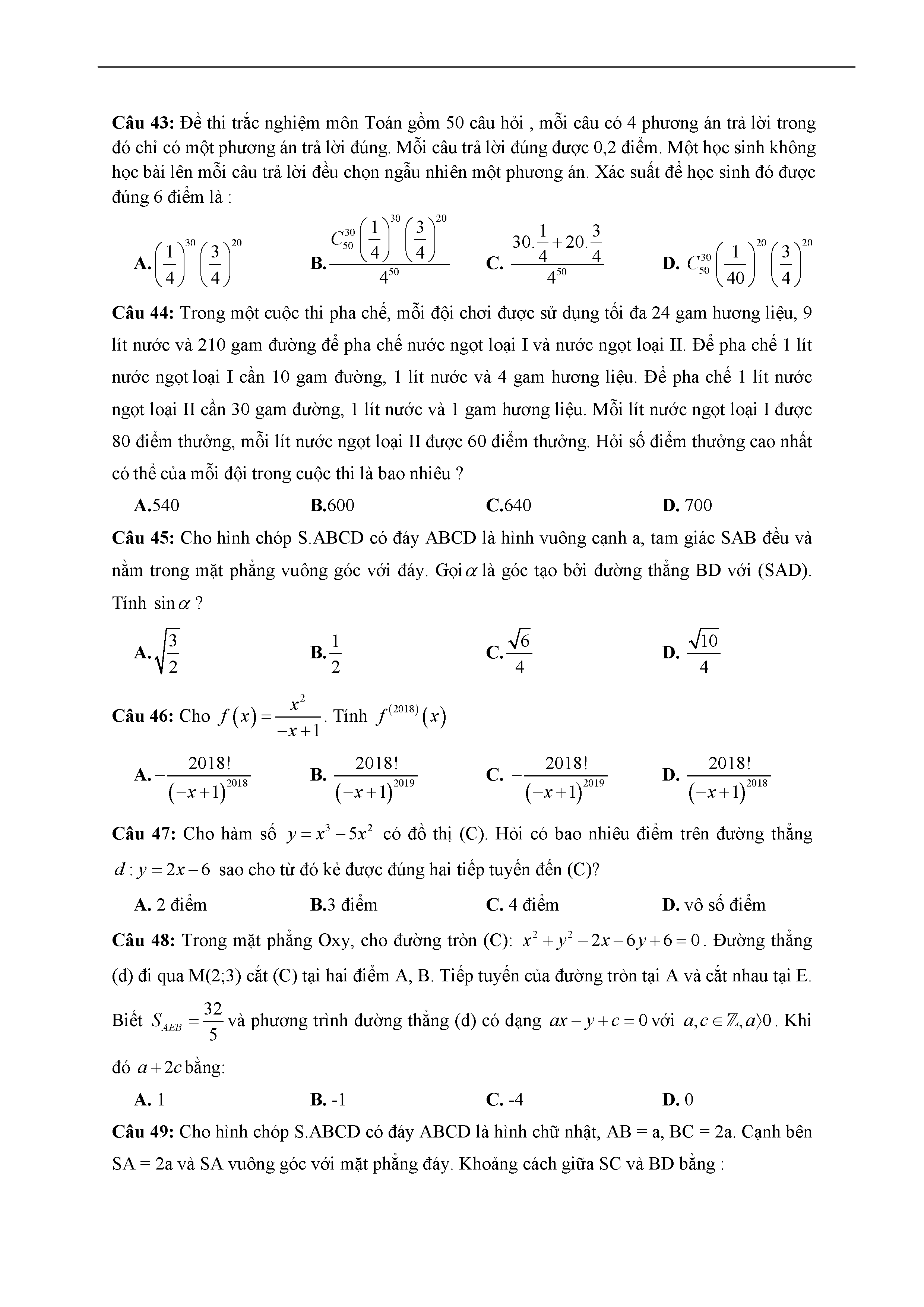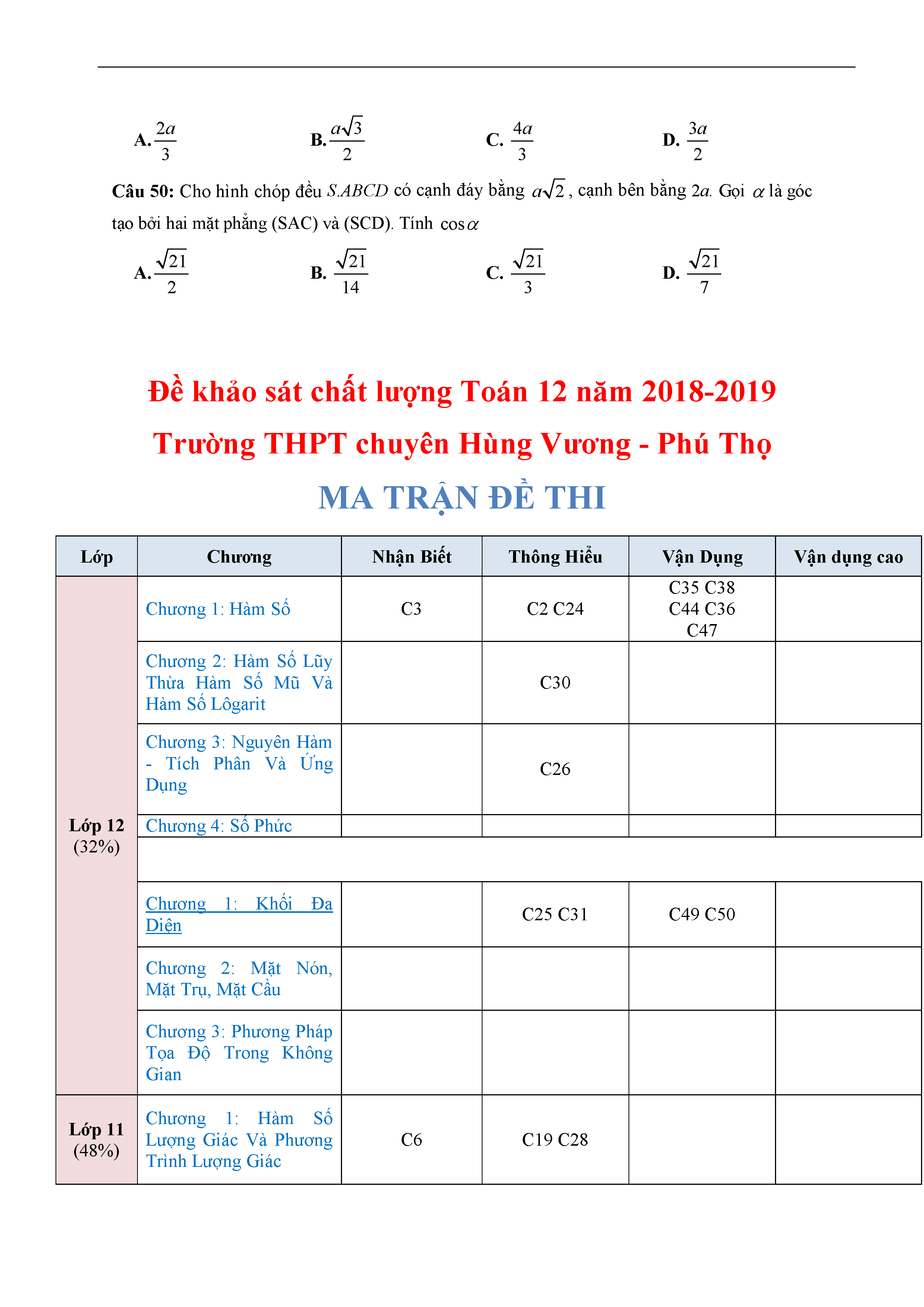 02. Đề thi thử THPT năm 2019 môn Toán trường Chuyên Hùng Vương - Phú Thọ - Lần 1