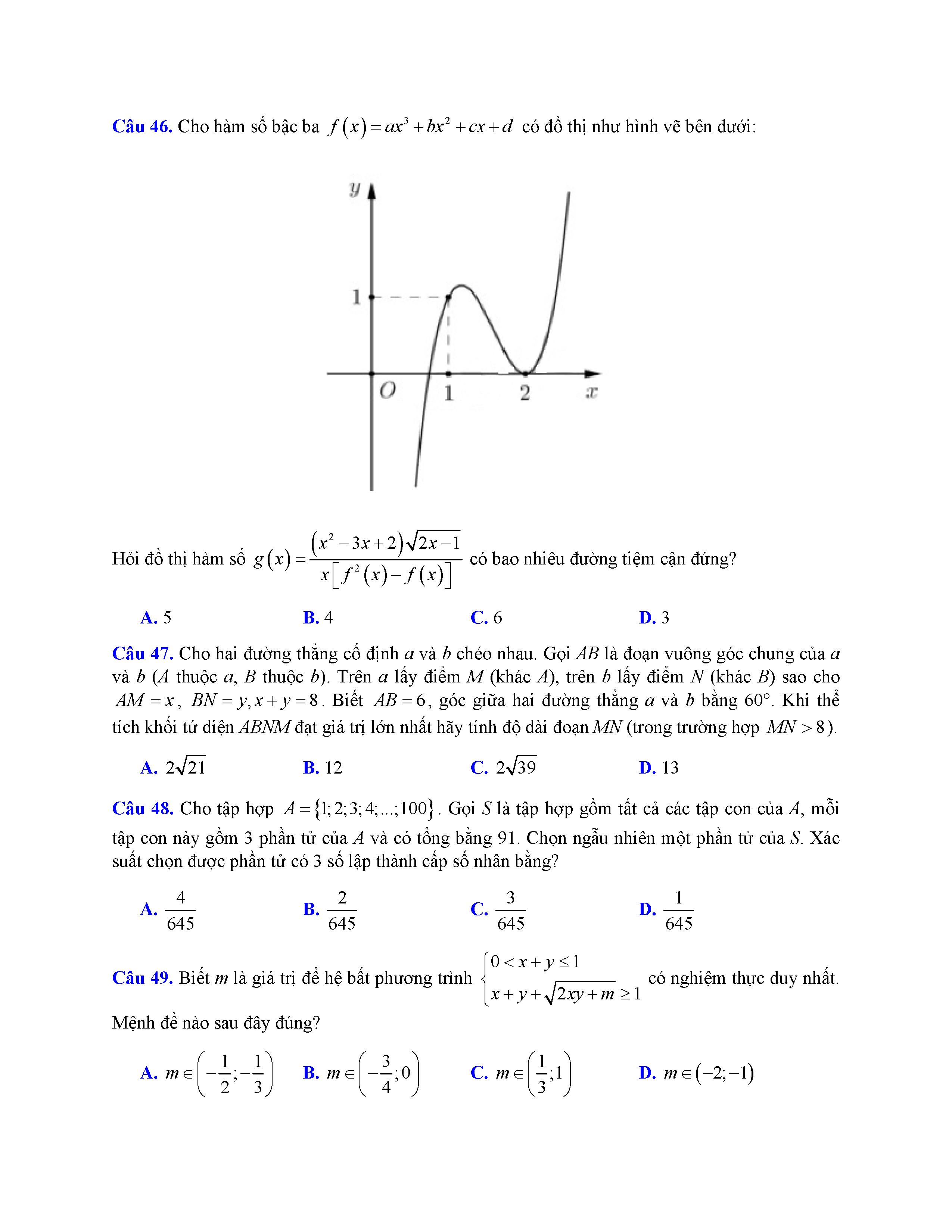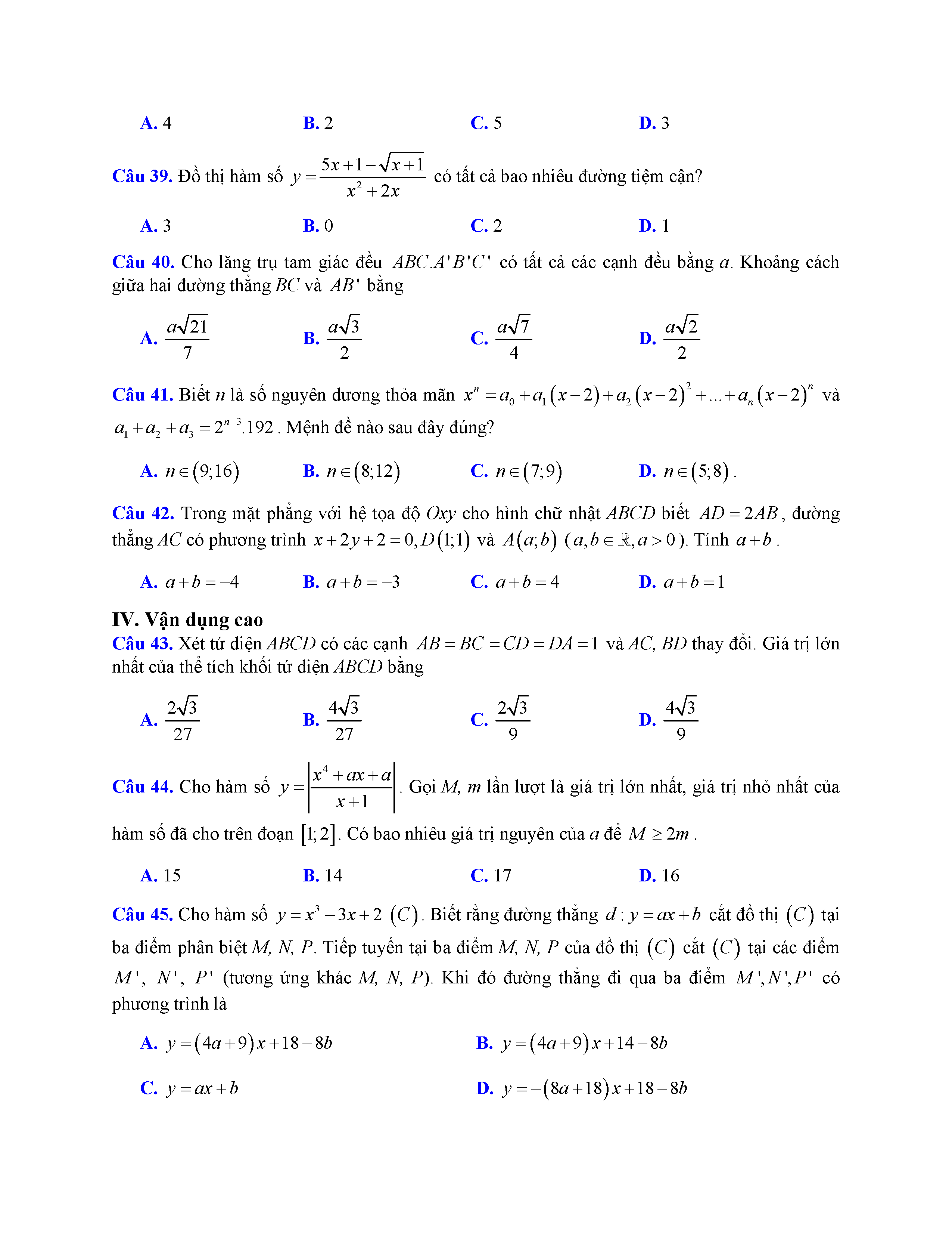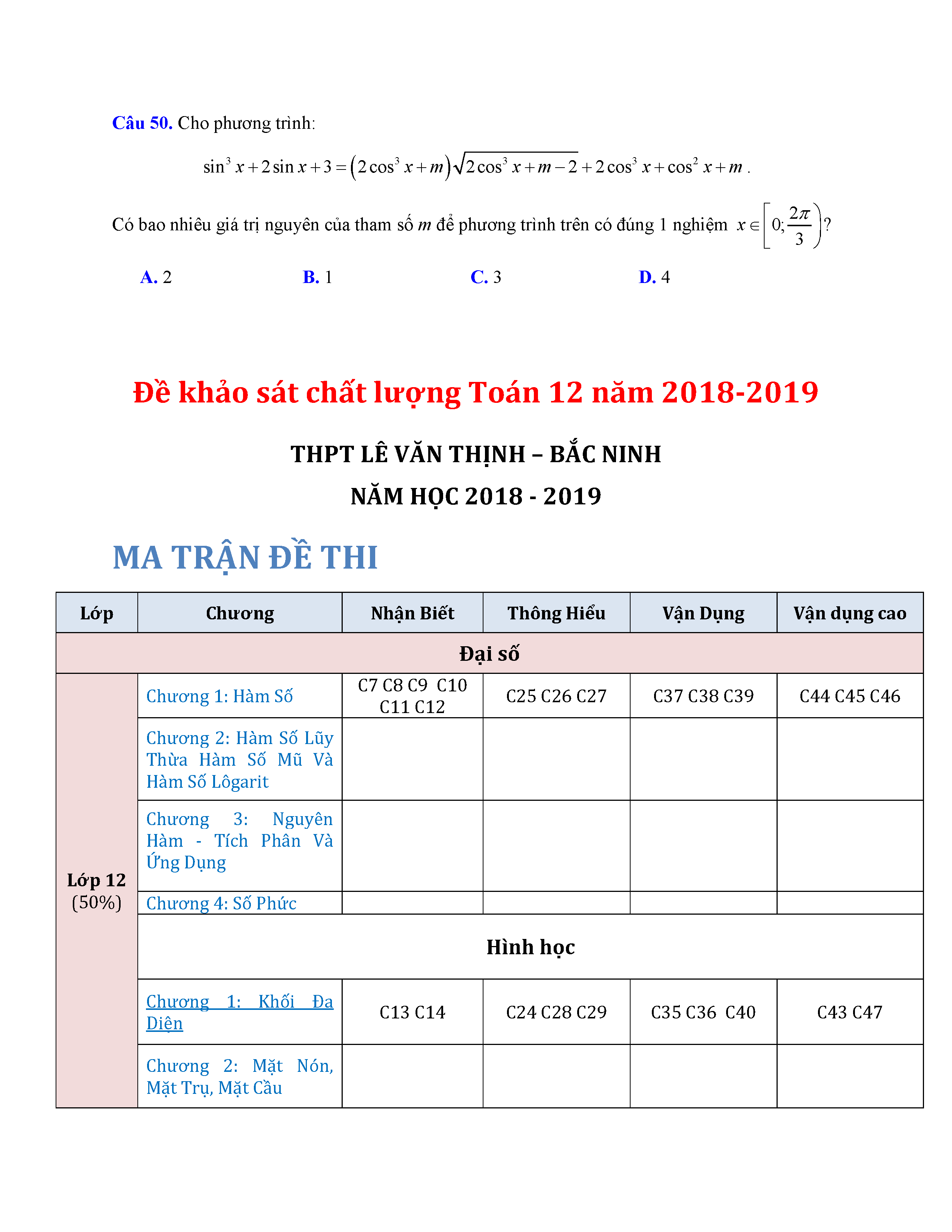 03. Đề thi thử THPT năm 2019 môn Toán trường Lê Văn Thịnh - Bắc Ninh - Lần 1