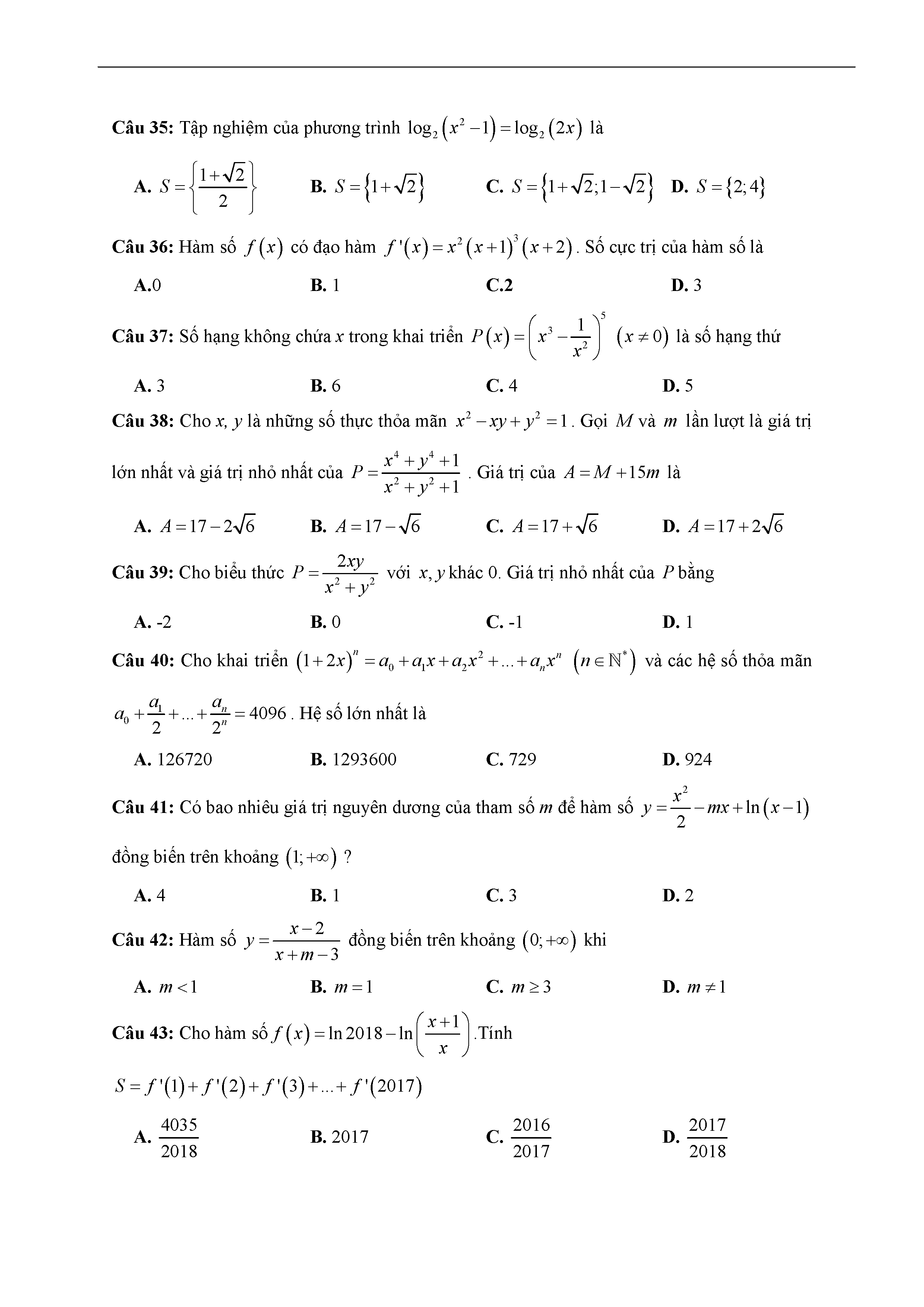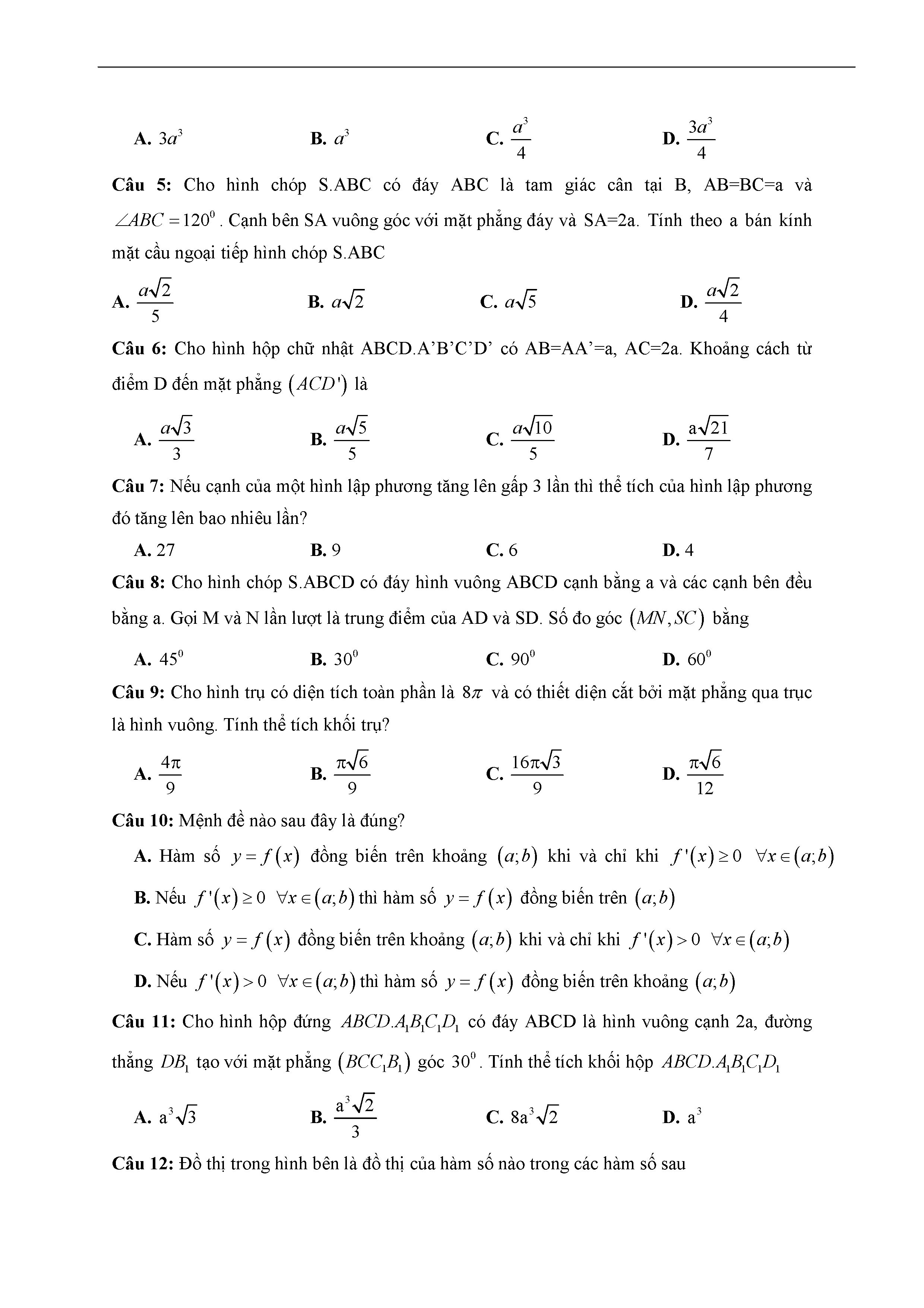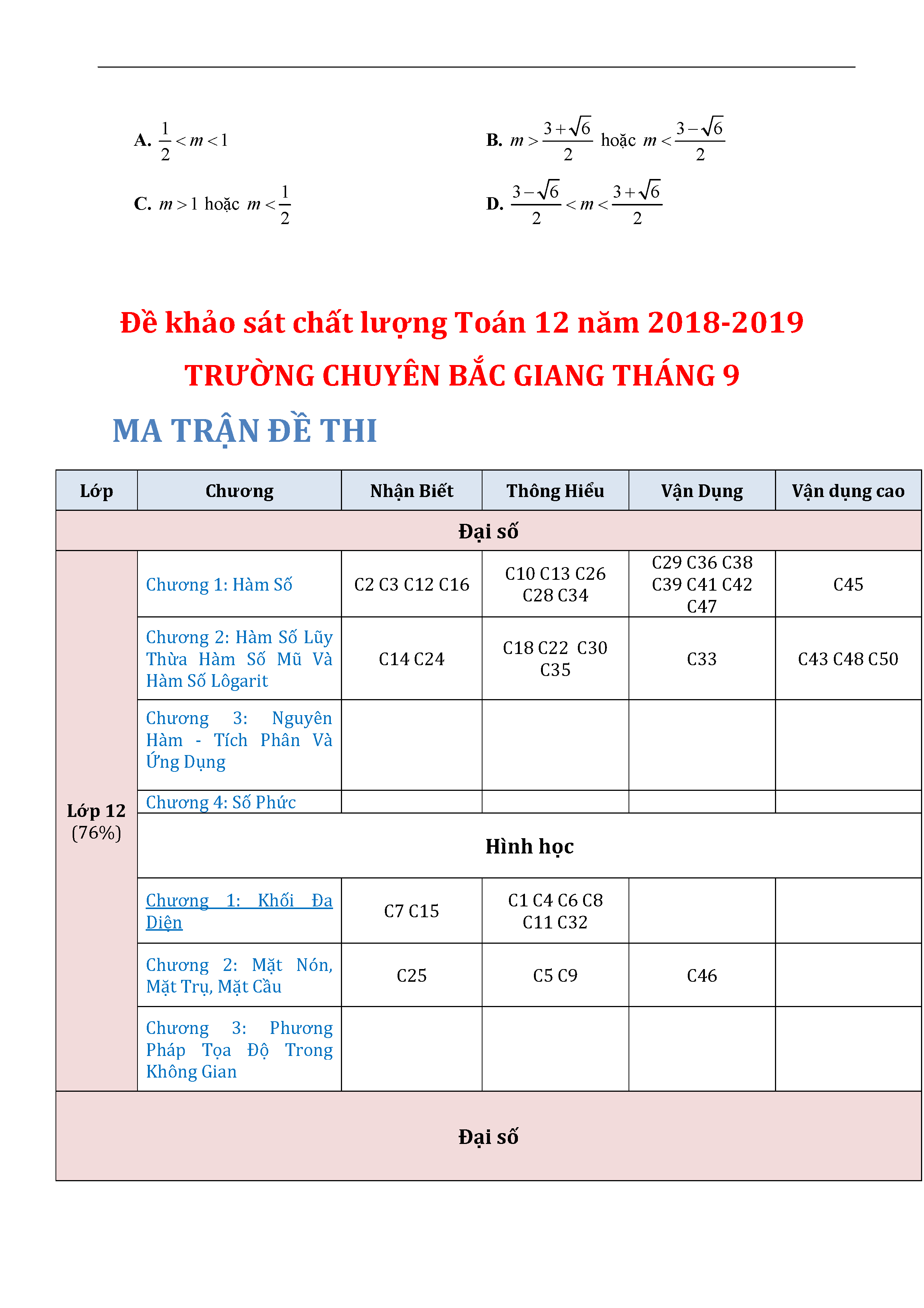 04. Đề thi thử THPT năm 2019 môn Toán trường Chuyên Bắc Giang - Lần 1