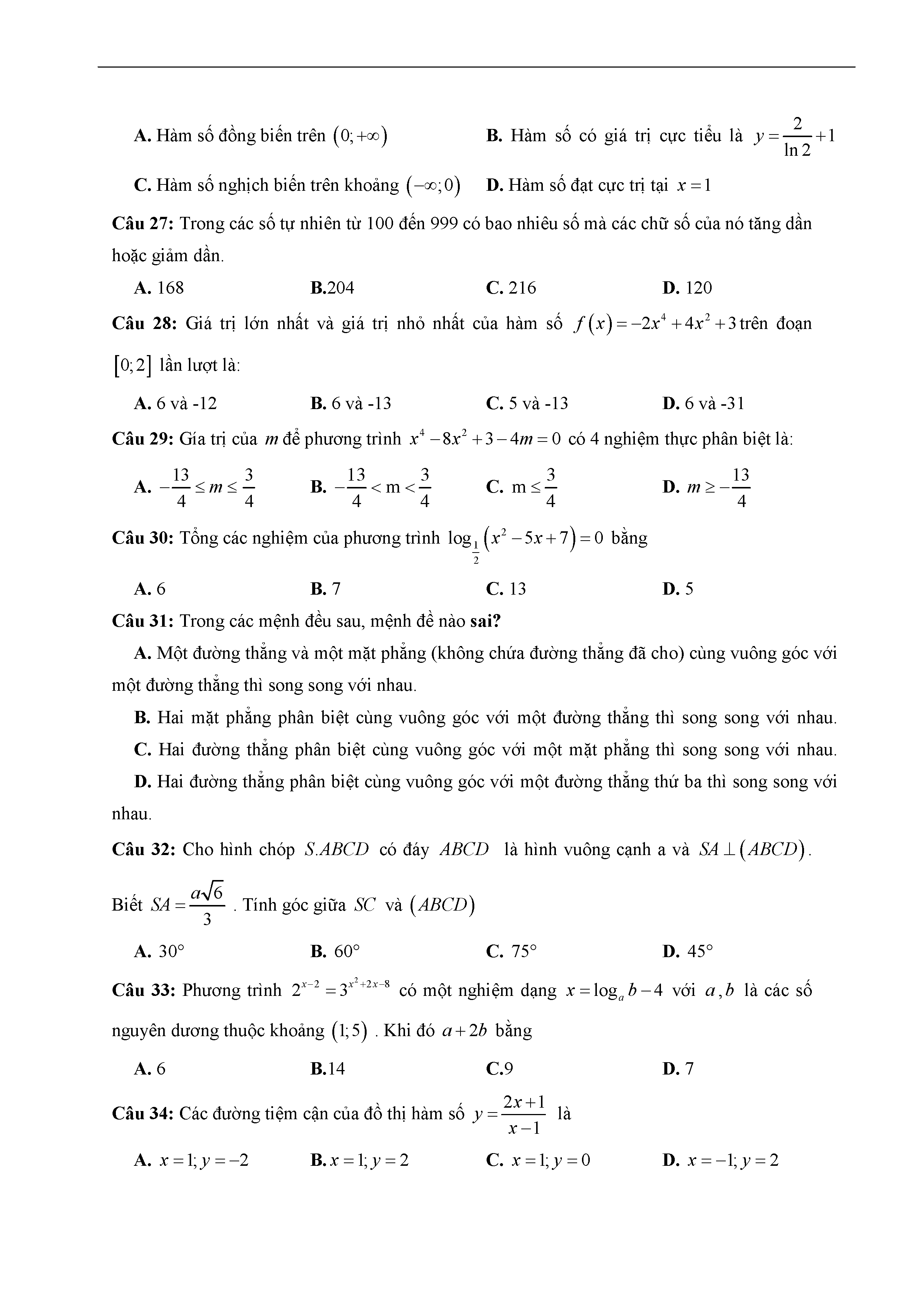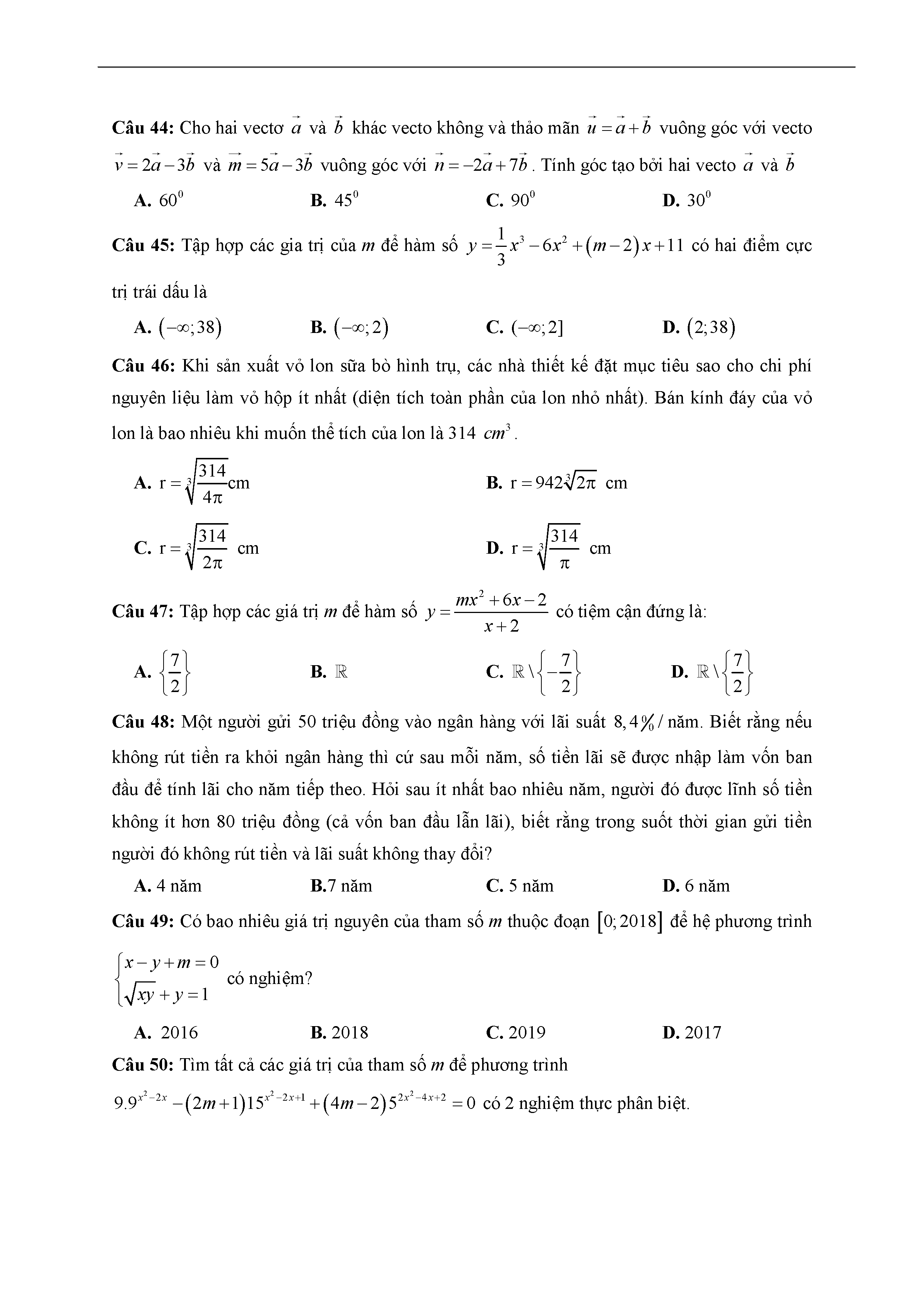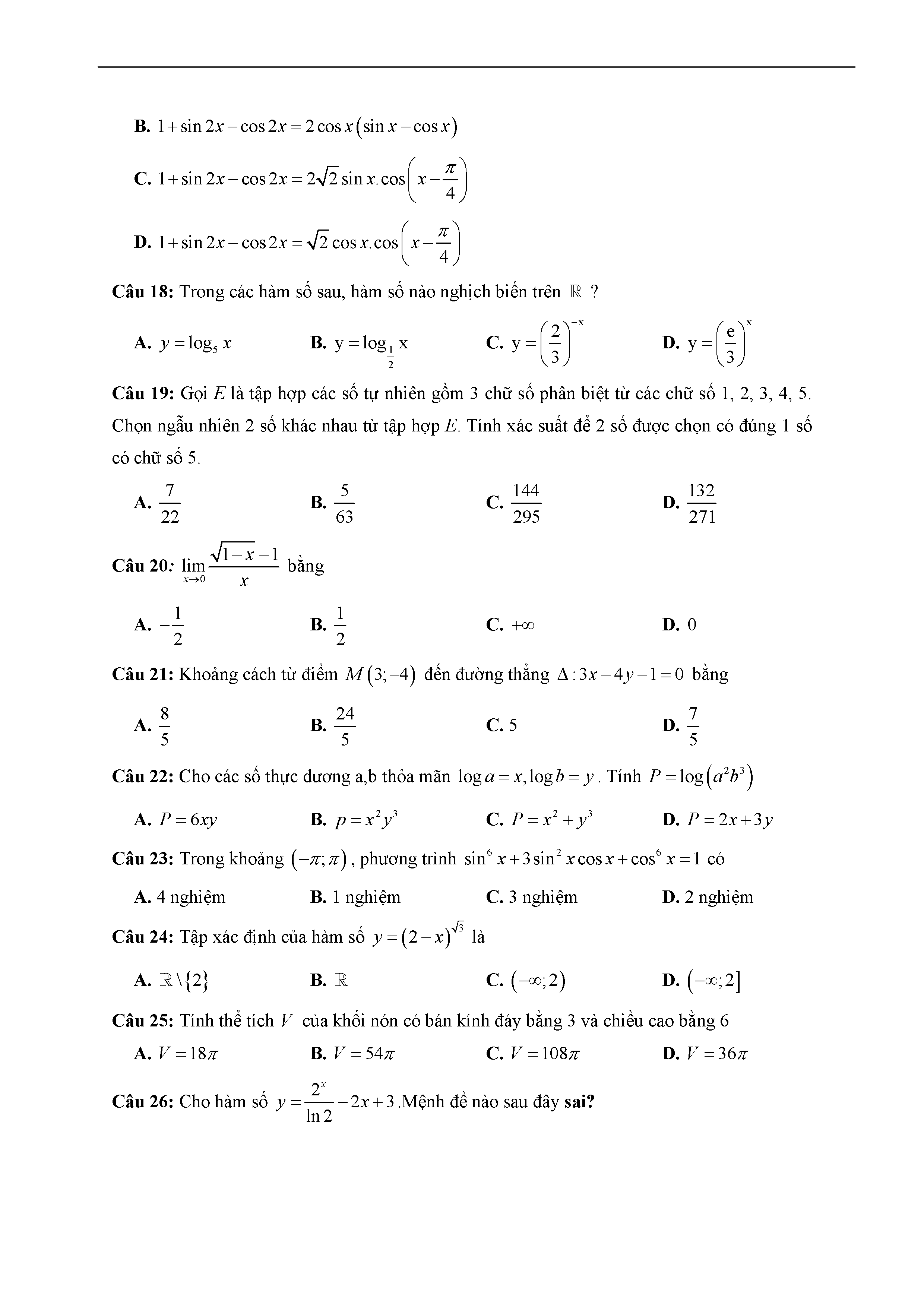 04. Đề thi thử THPT năm 2019 môn Toán trường Chuyên Bắc Giang - Lần 1