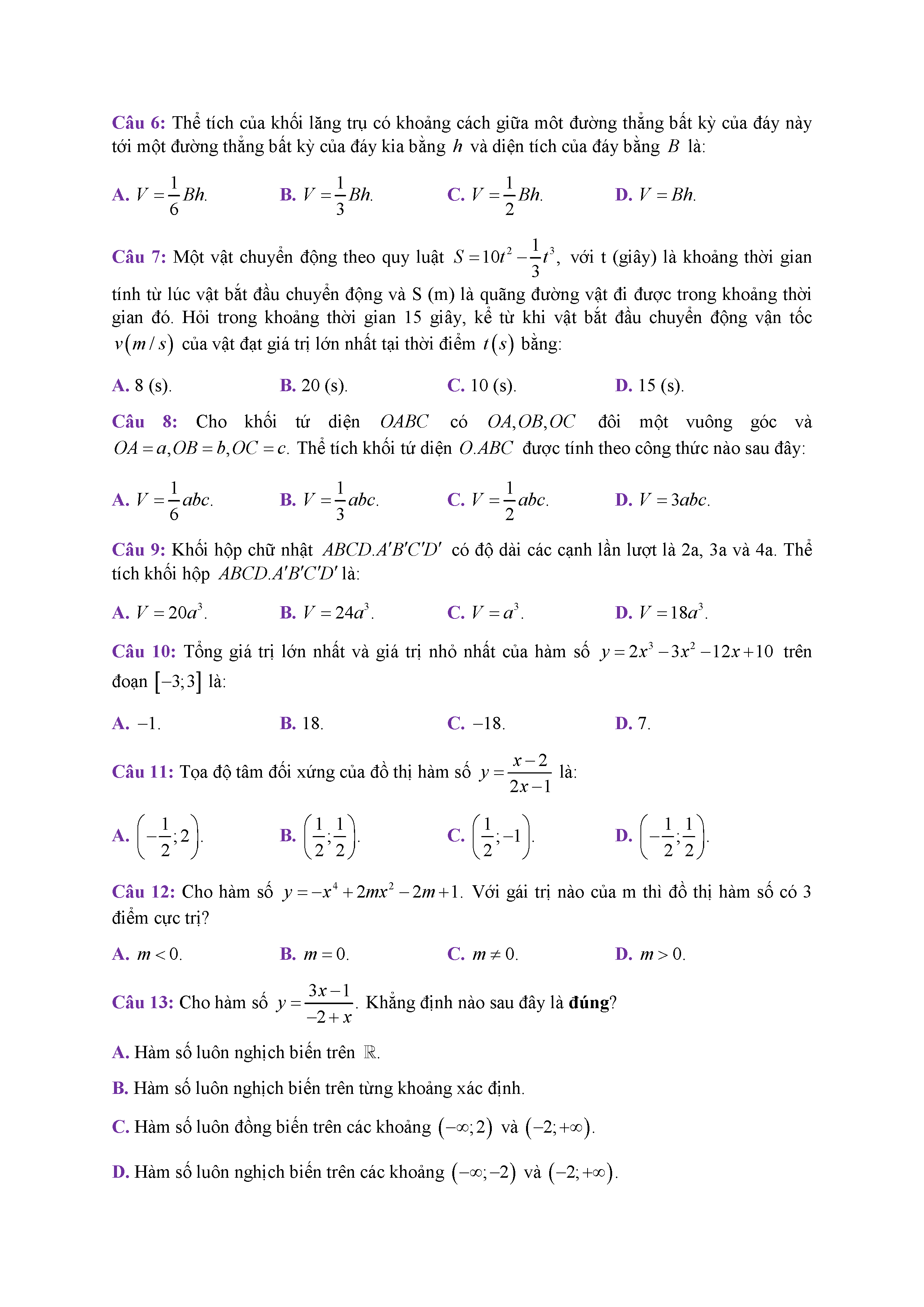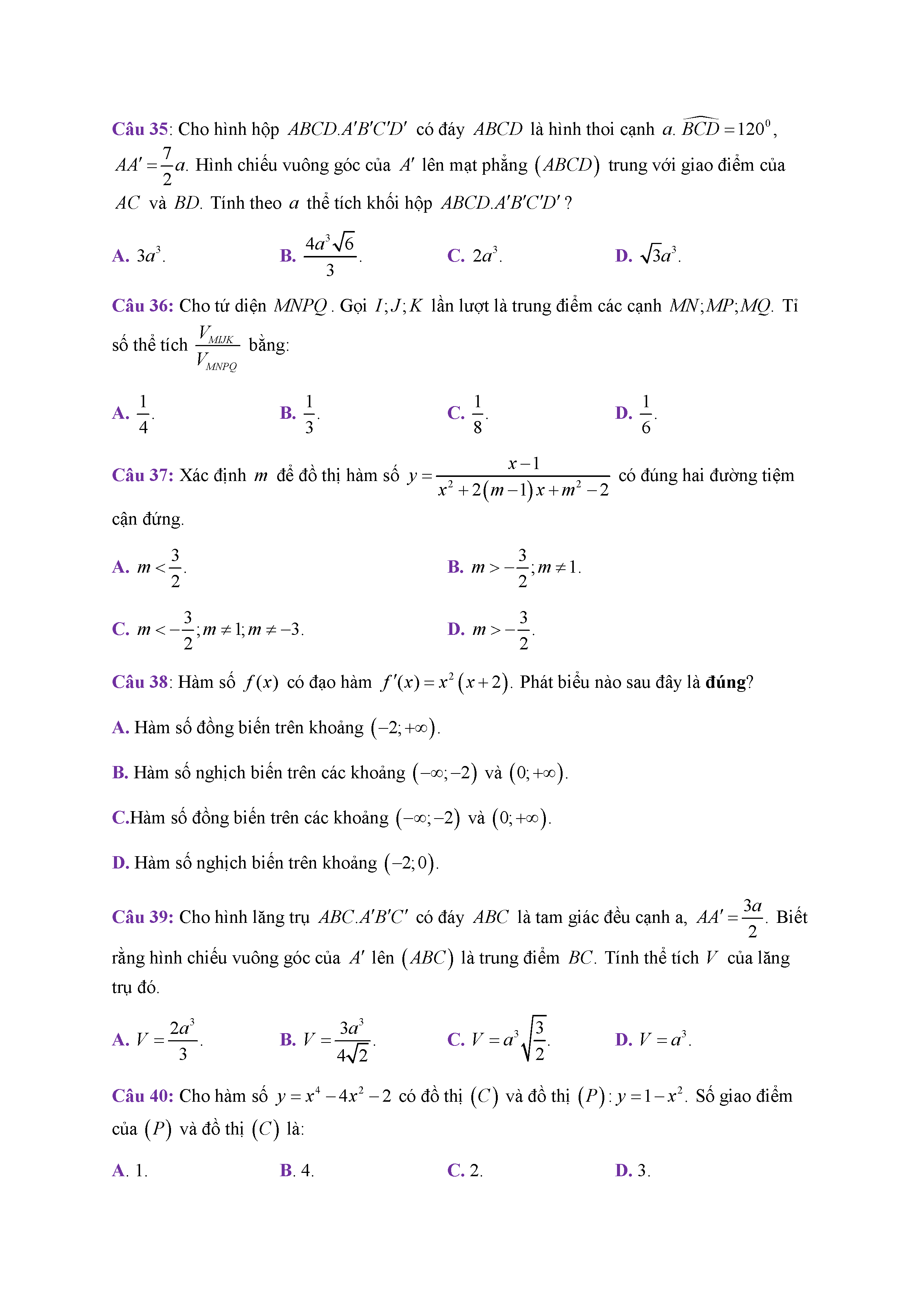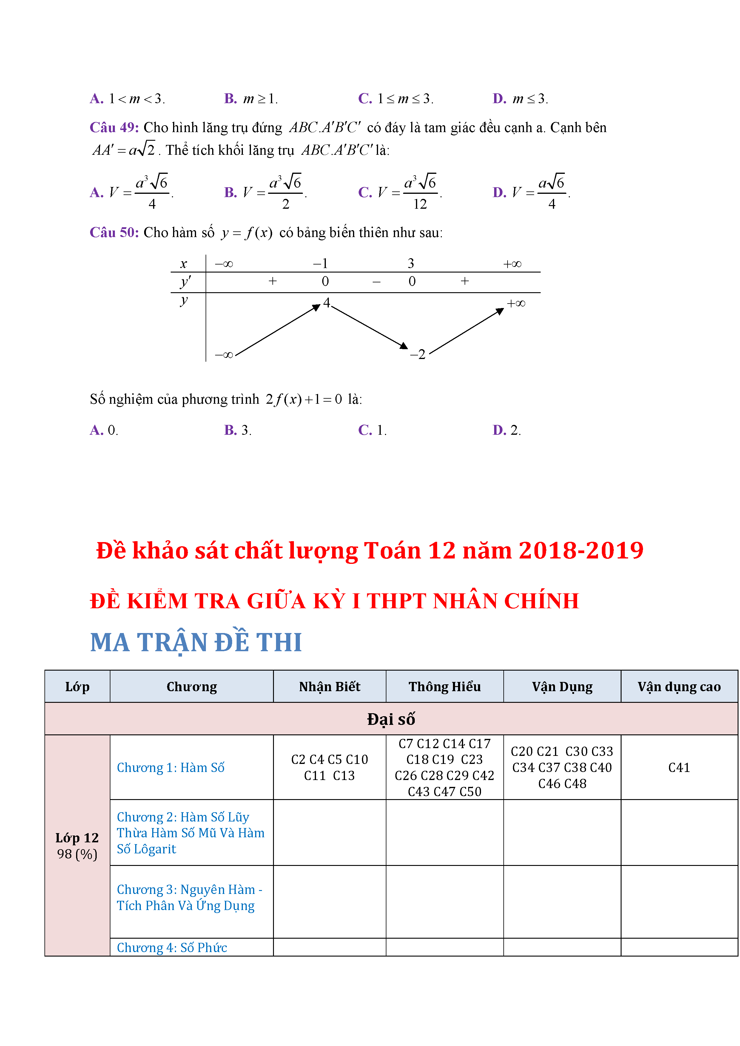 12. Đề thi thử THPT năm 2019 môn Toán trường Nhân Chính – Hà Nội - Lần 1