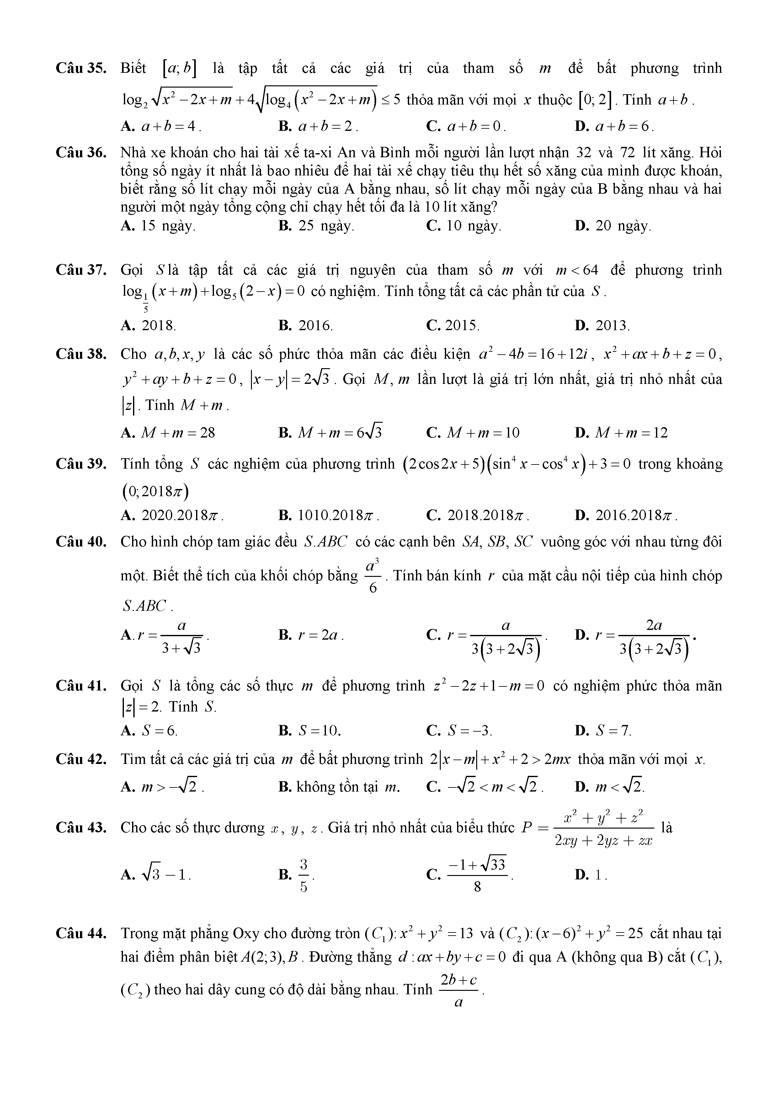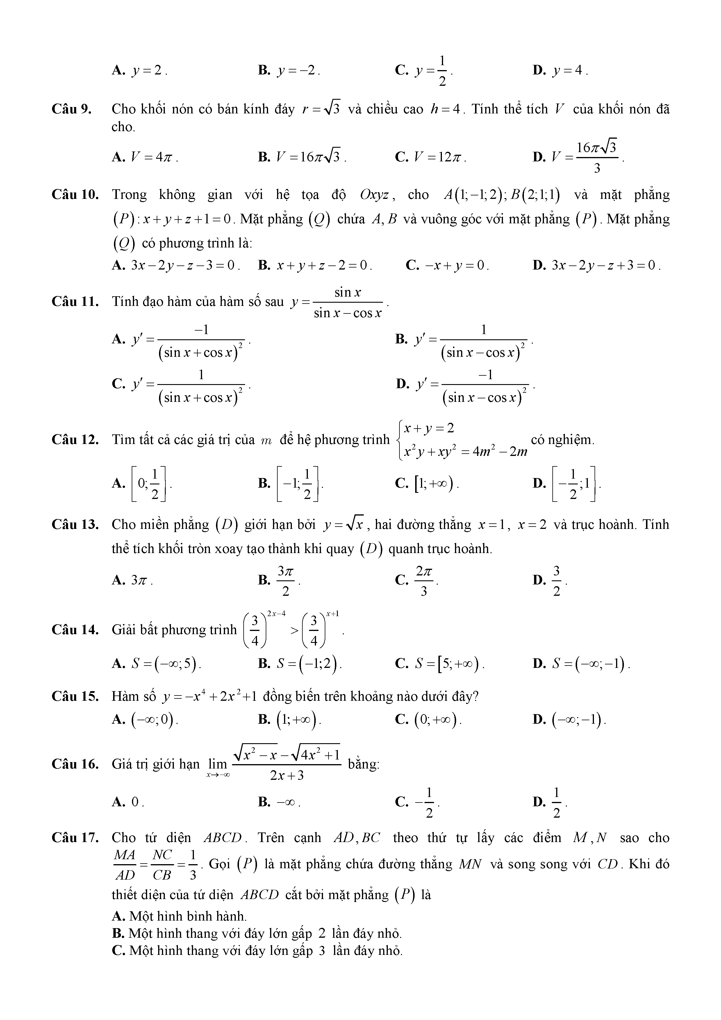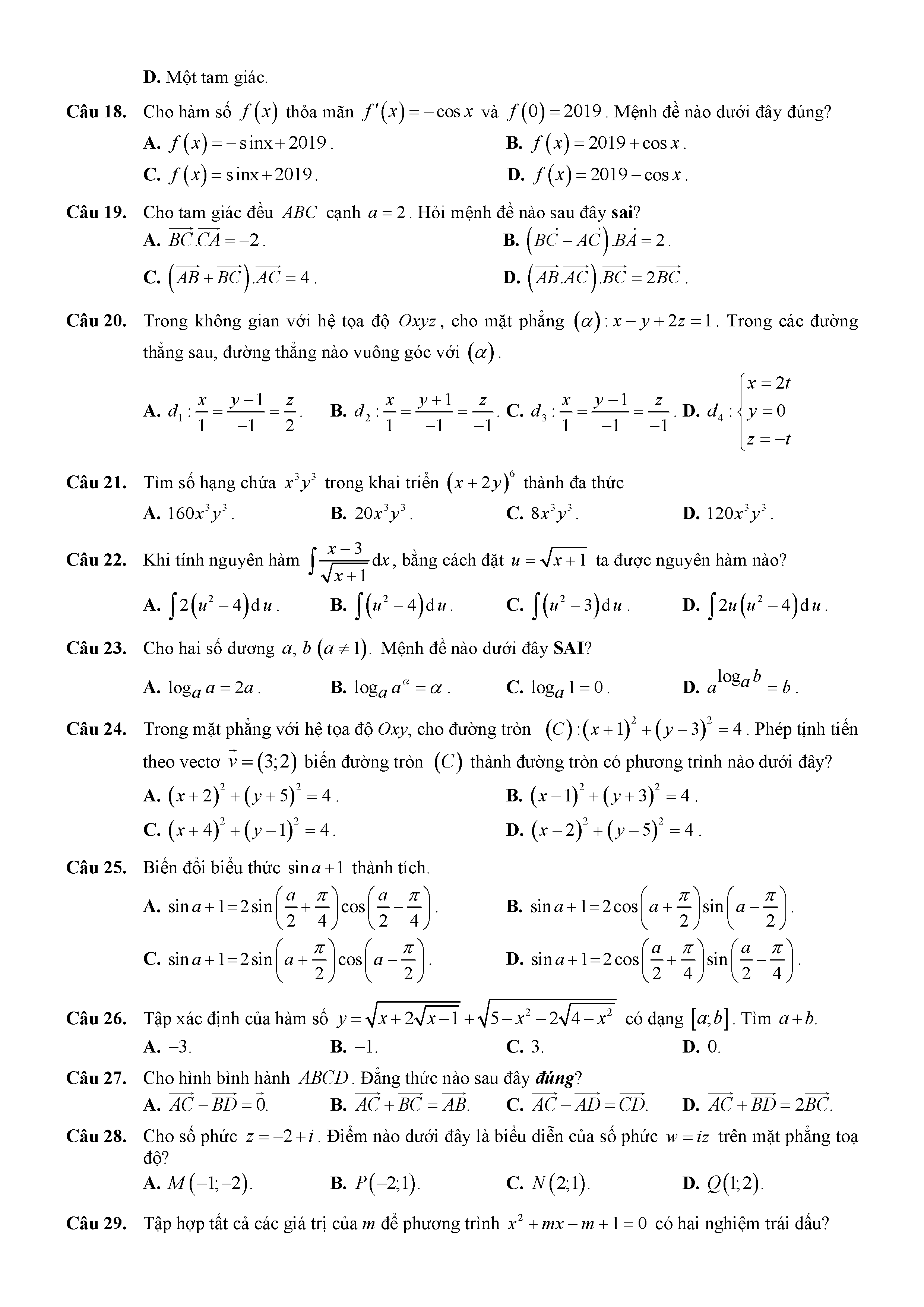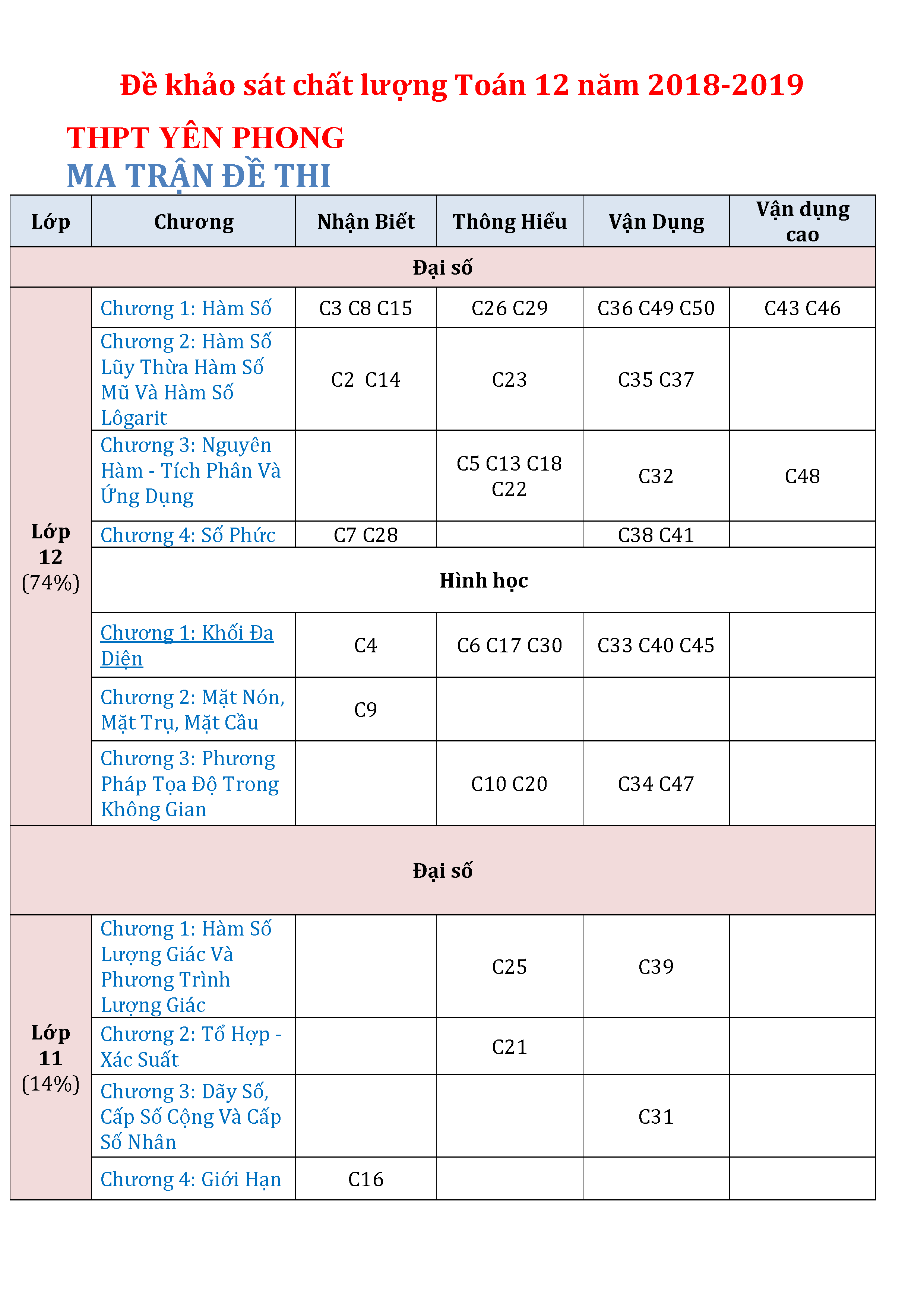 15. Đề thi thử THPT năm 2019 môn Toán trường Yên Phong - Bắc Ninh - Lần 1