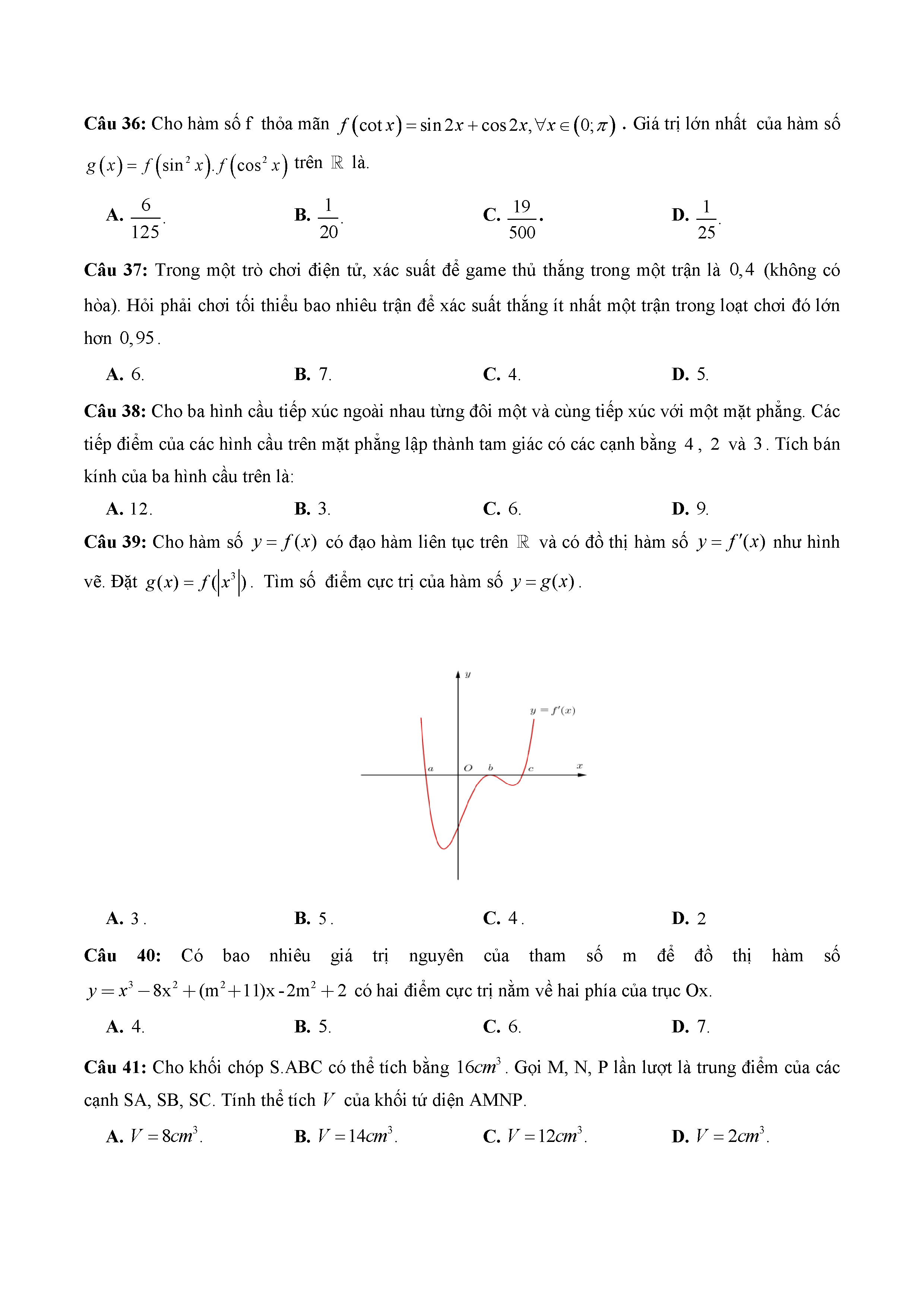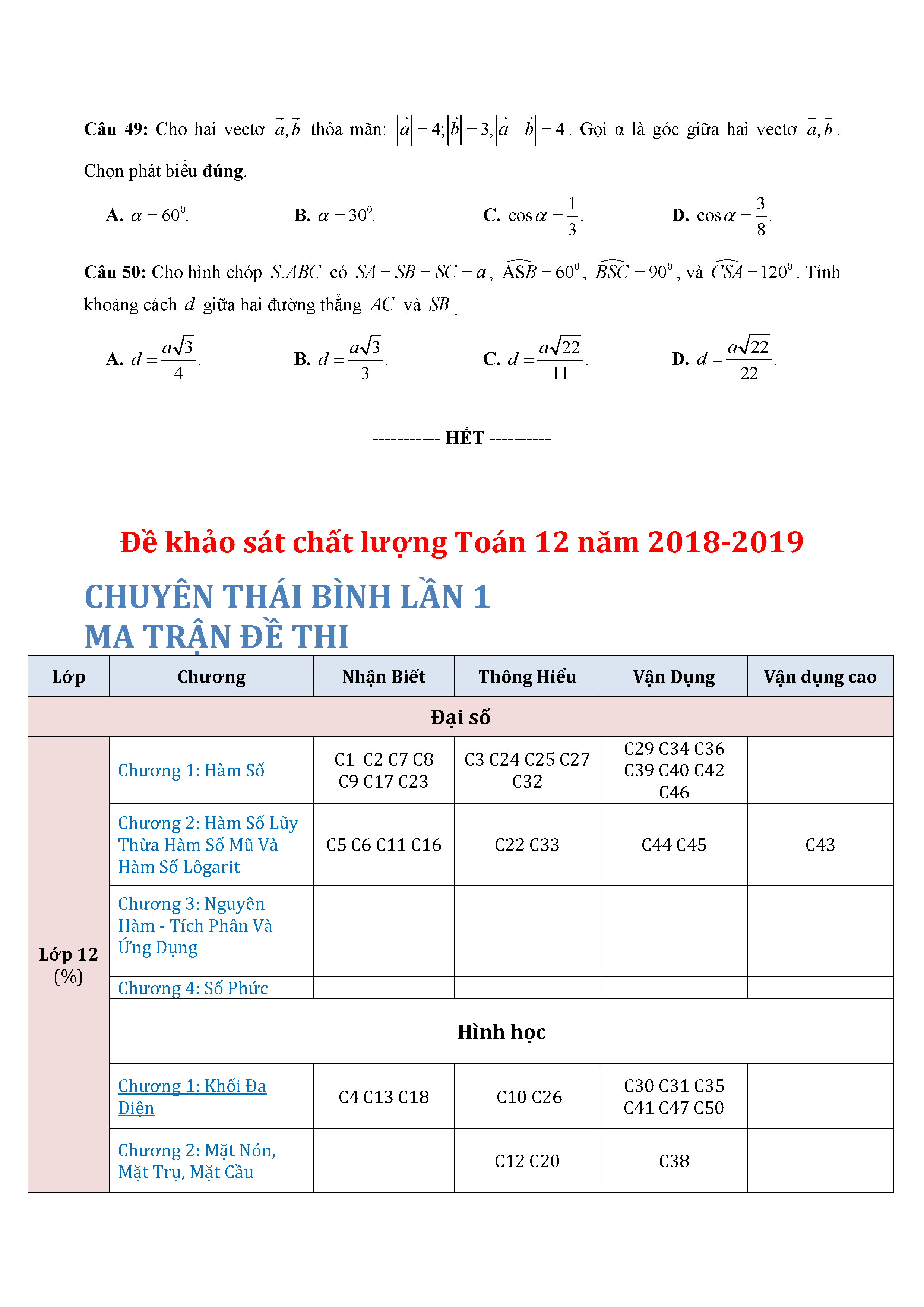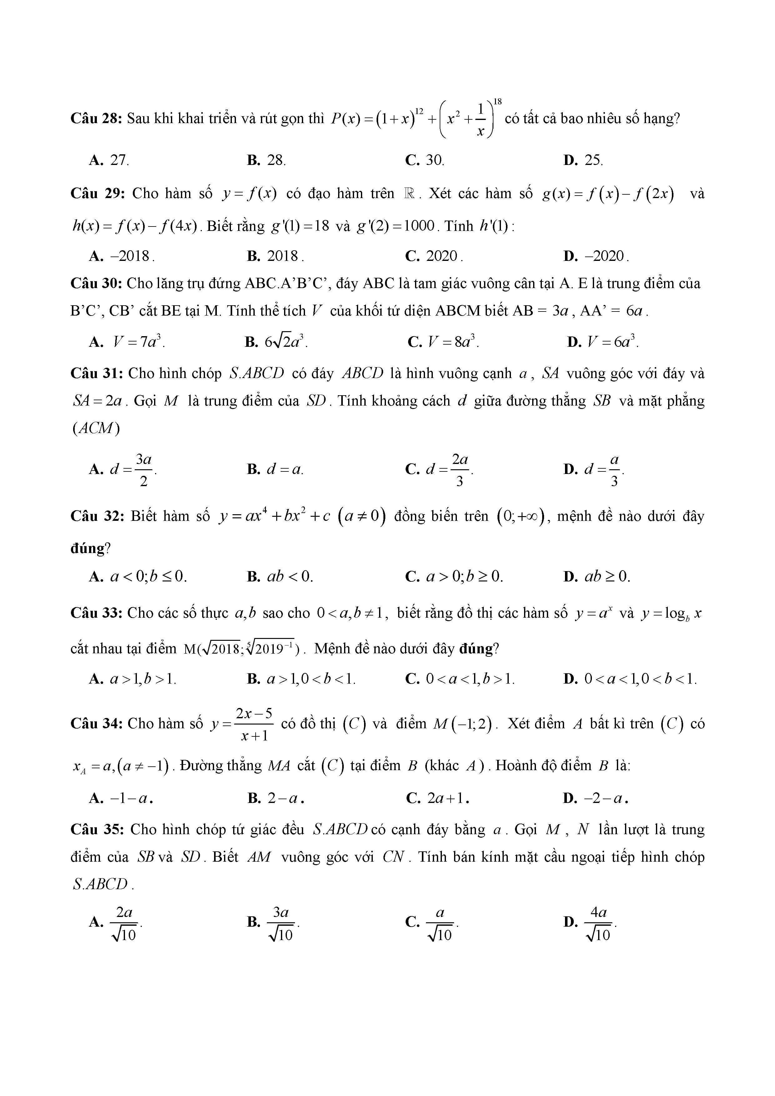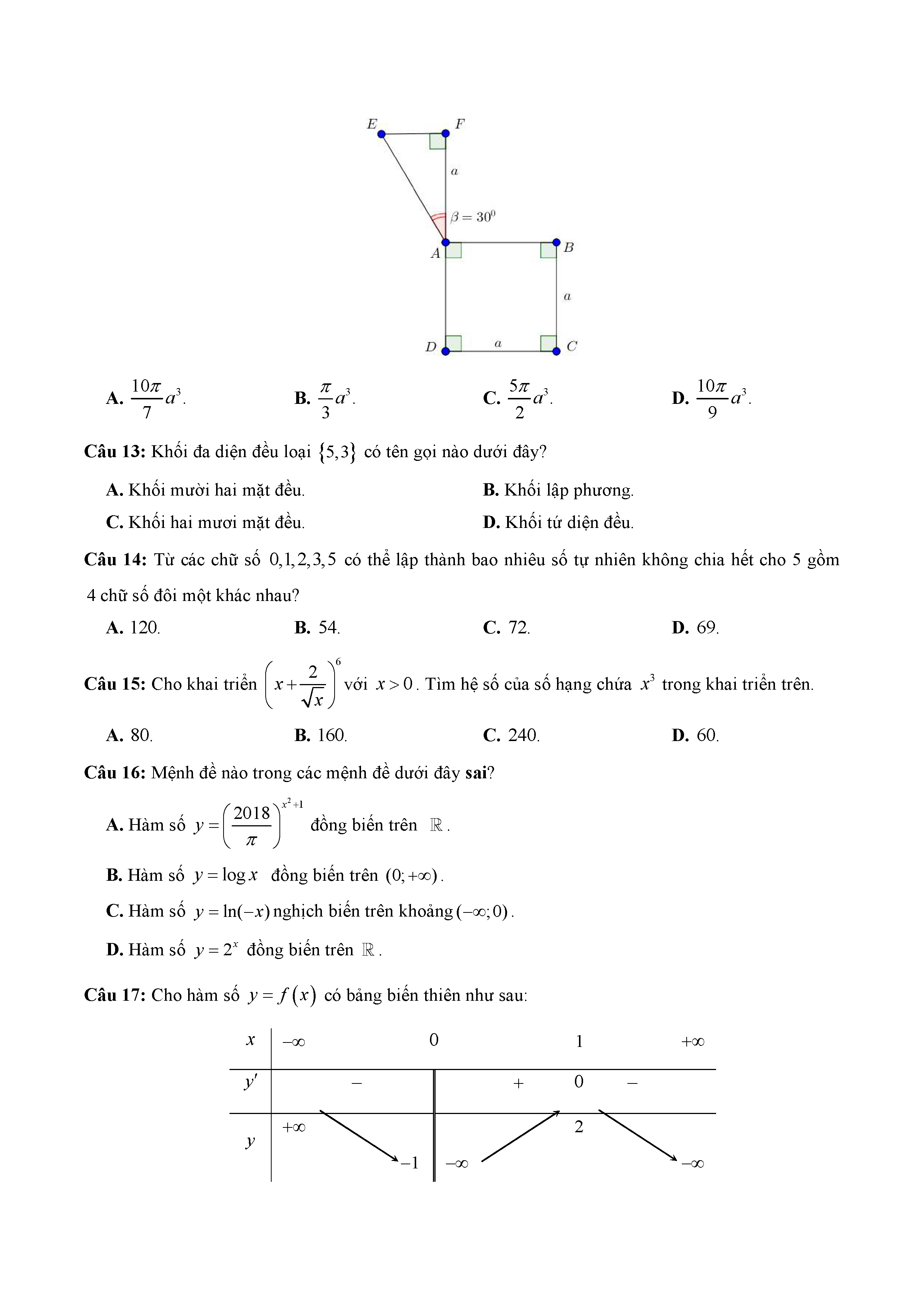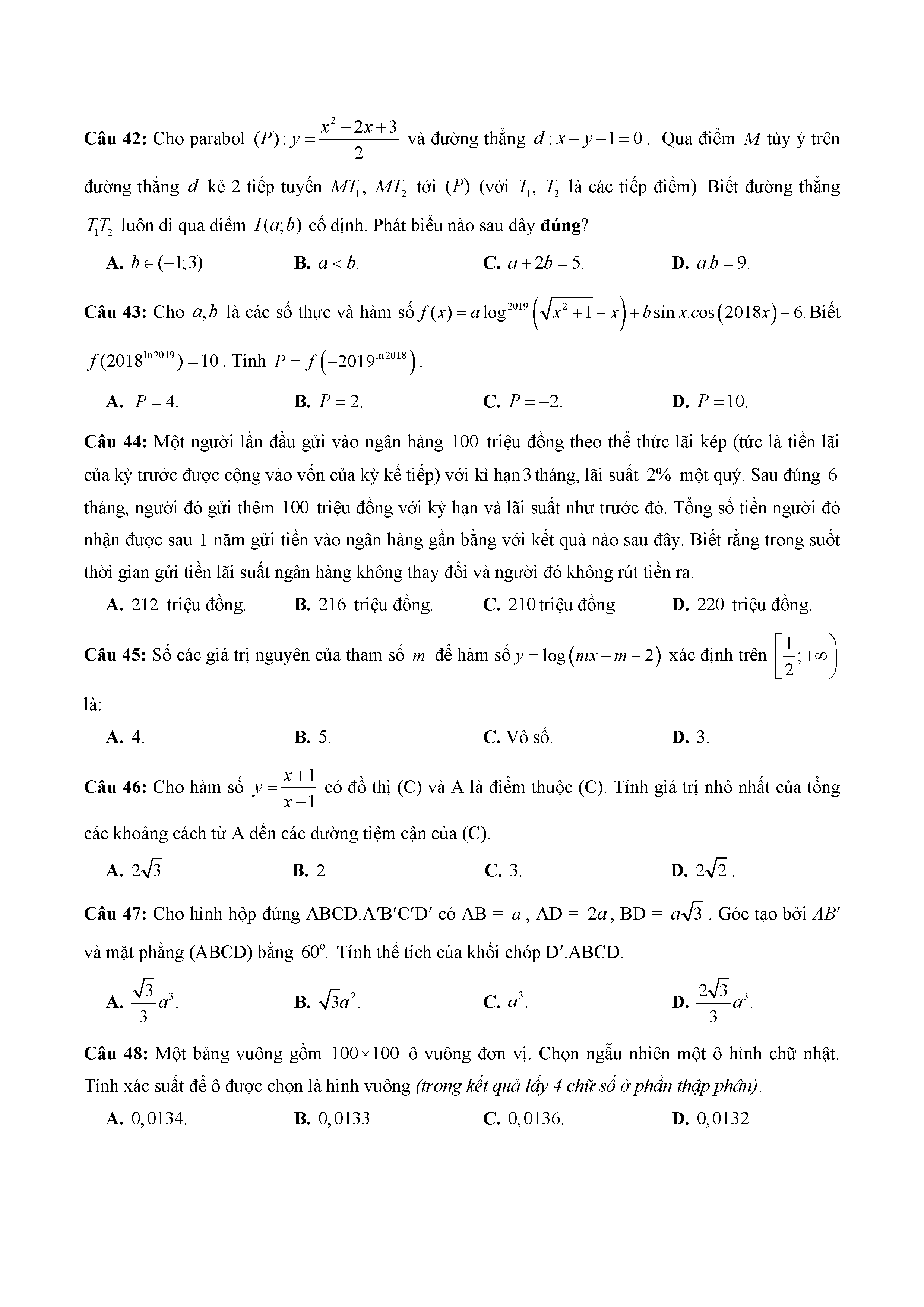 16. Đề thi thử THPT năm 2019 môn Toán trường Chuyên Thái Bình - Thái Bình - Lần 1