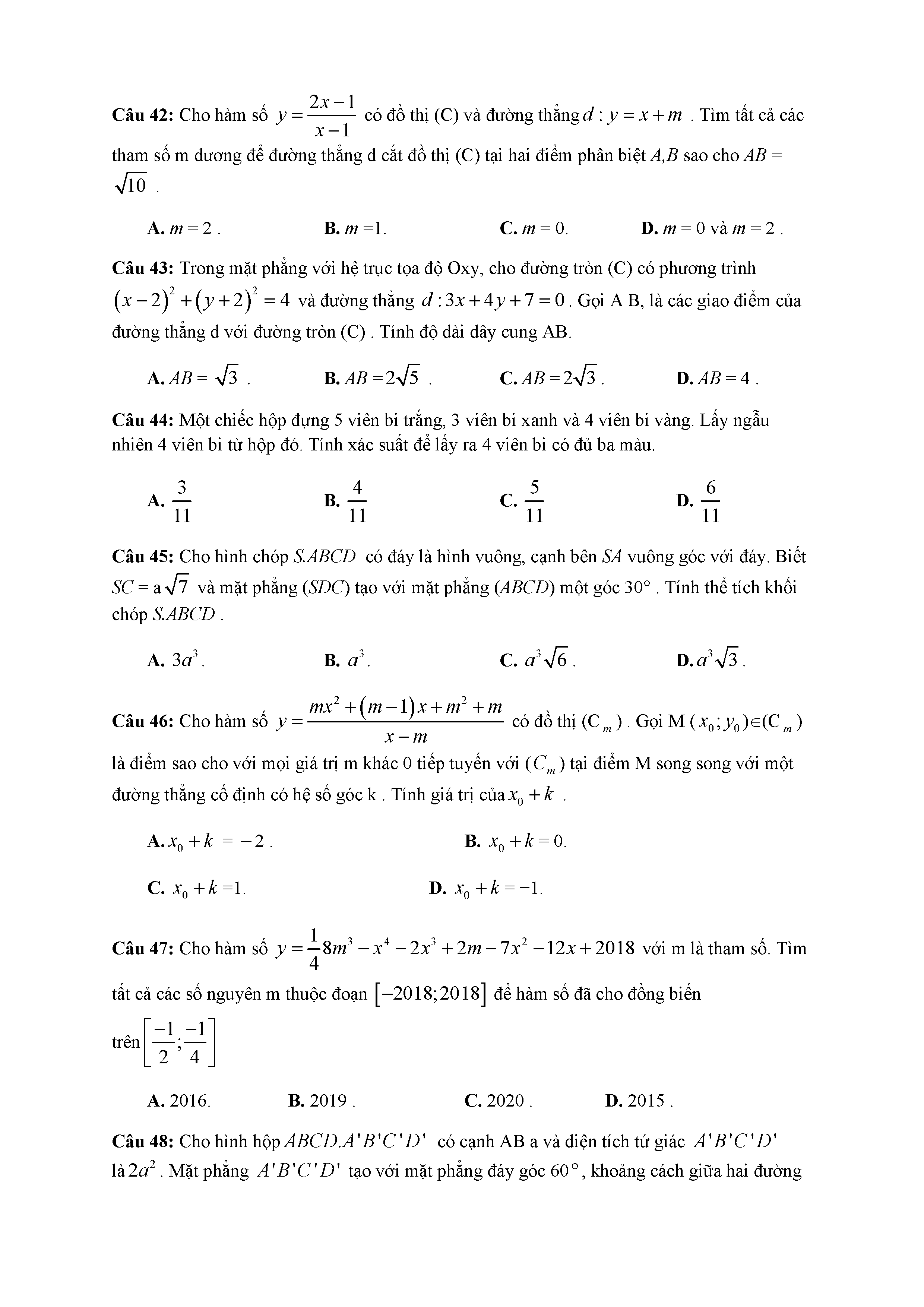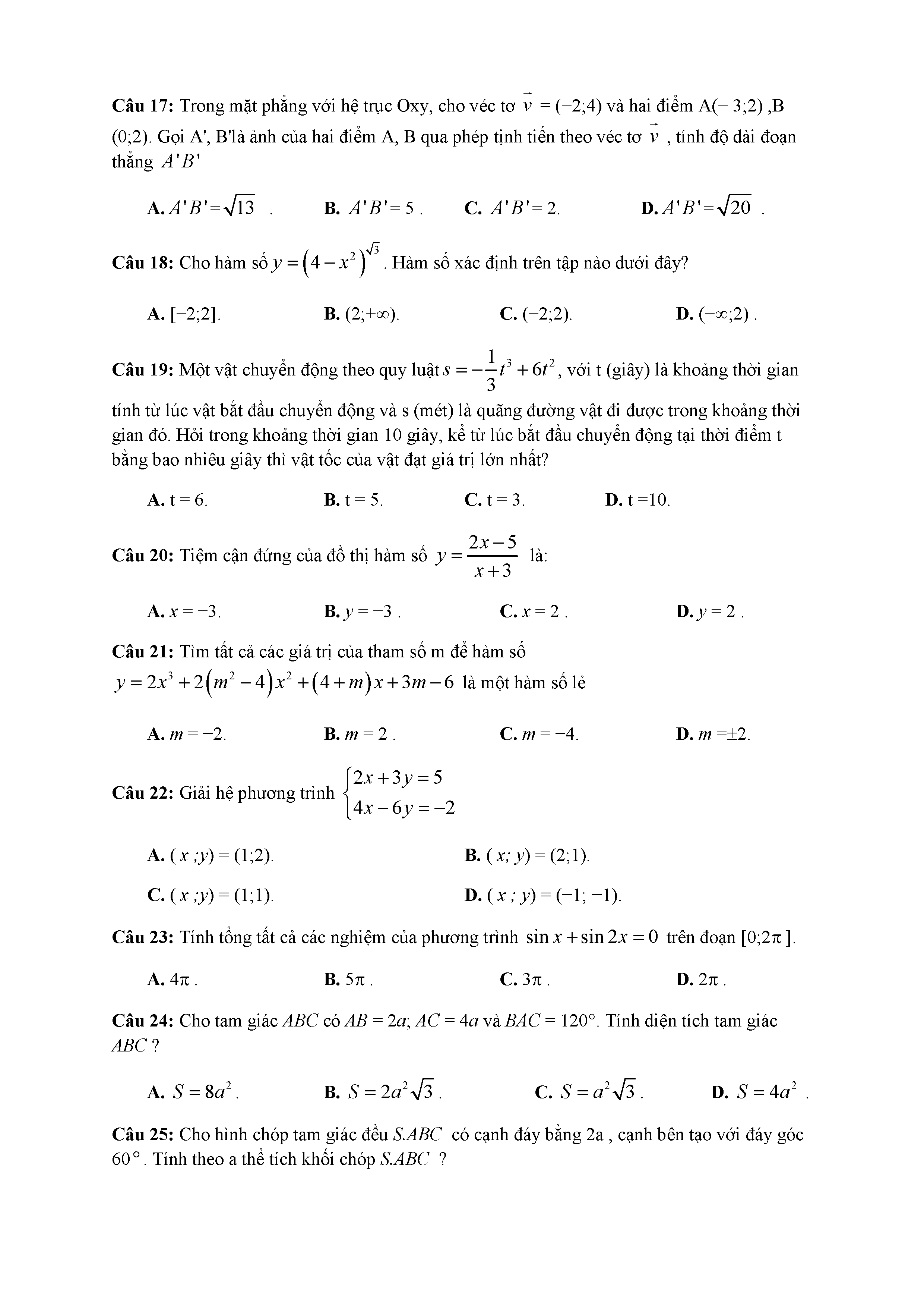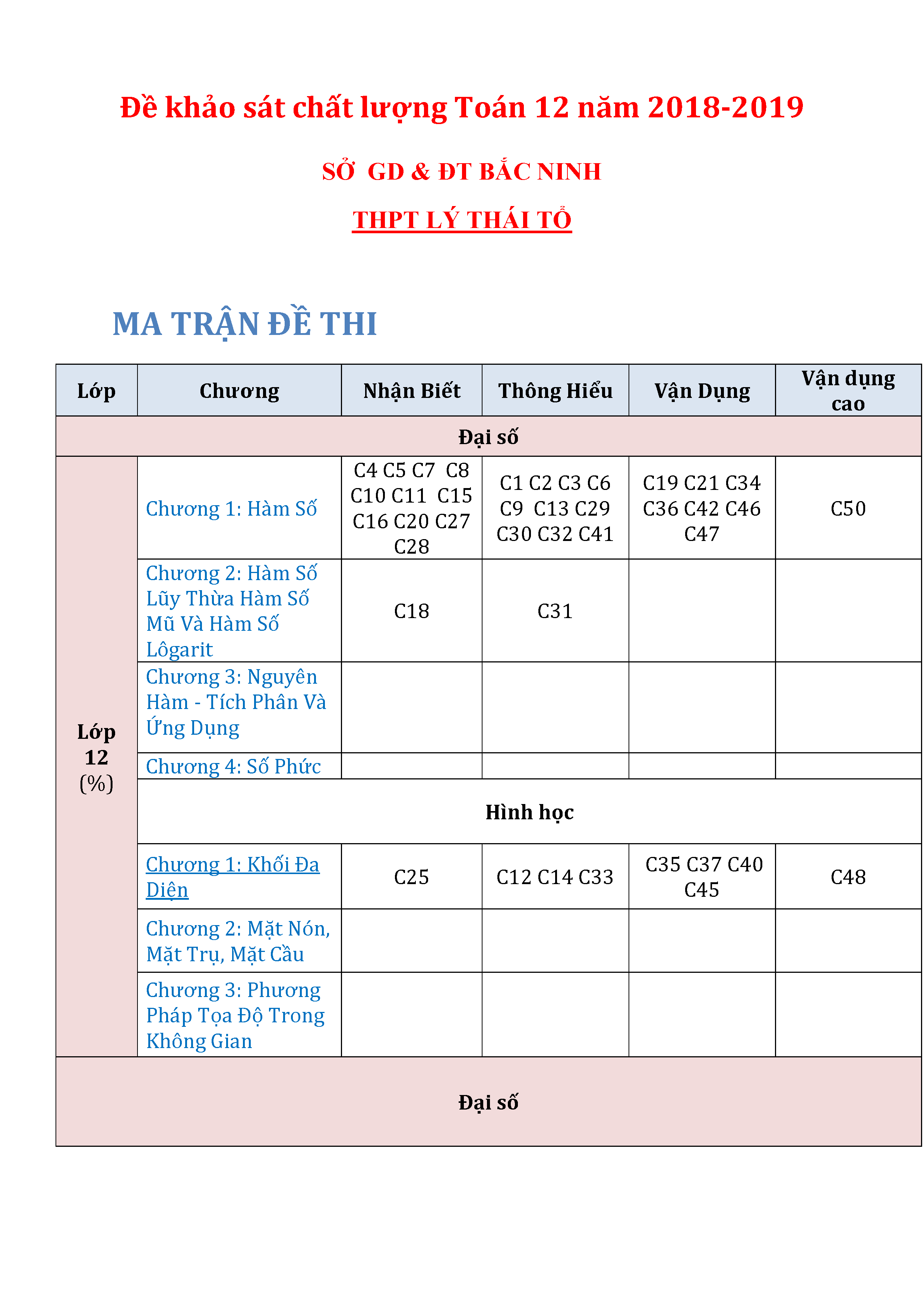 17. Đề thi thử THPT năm 2019 môn Toán trường Lý Thái Tổ - Bắc Ninh - Lần 1