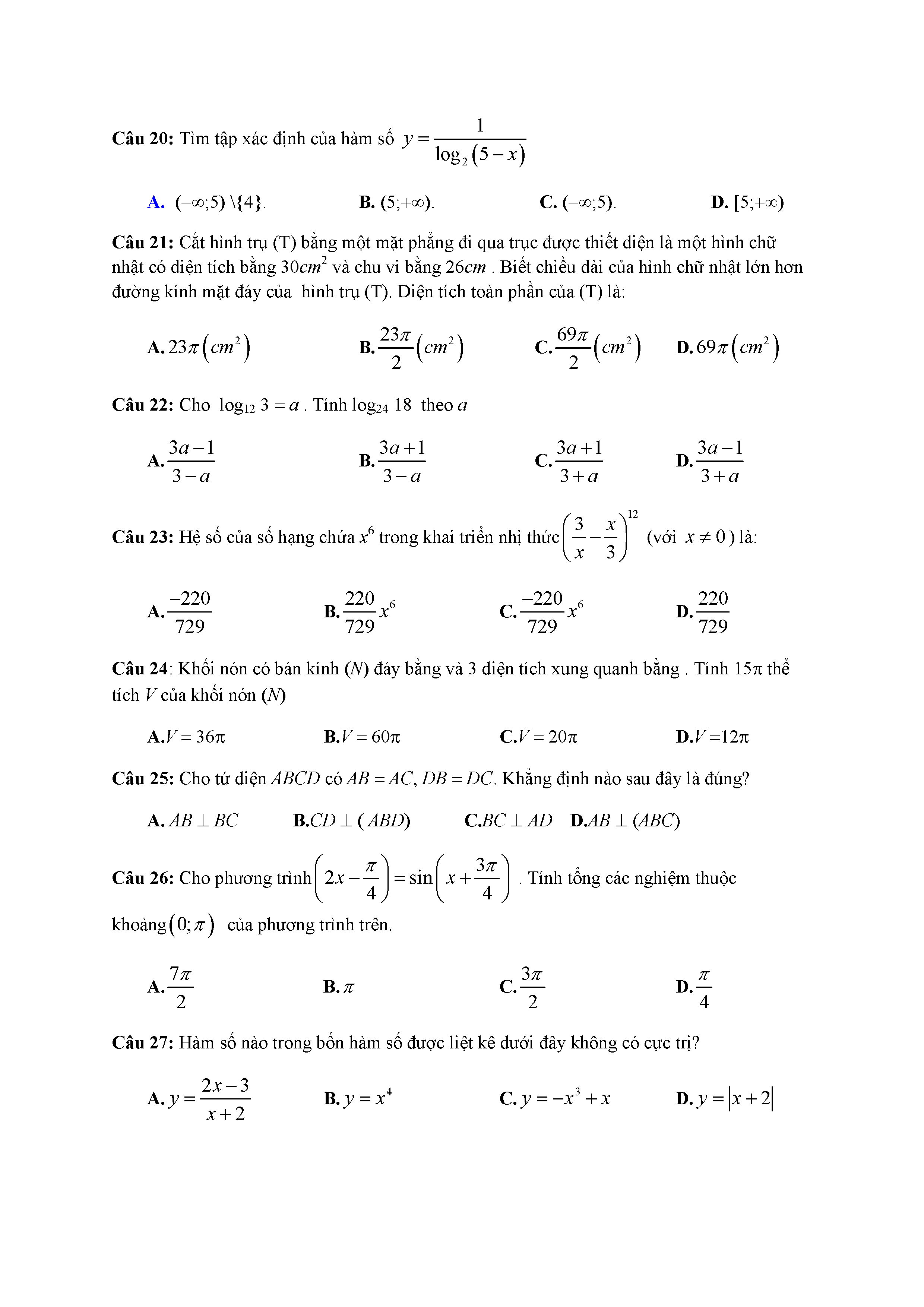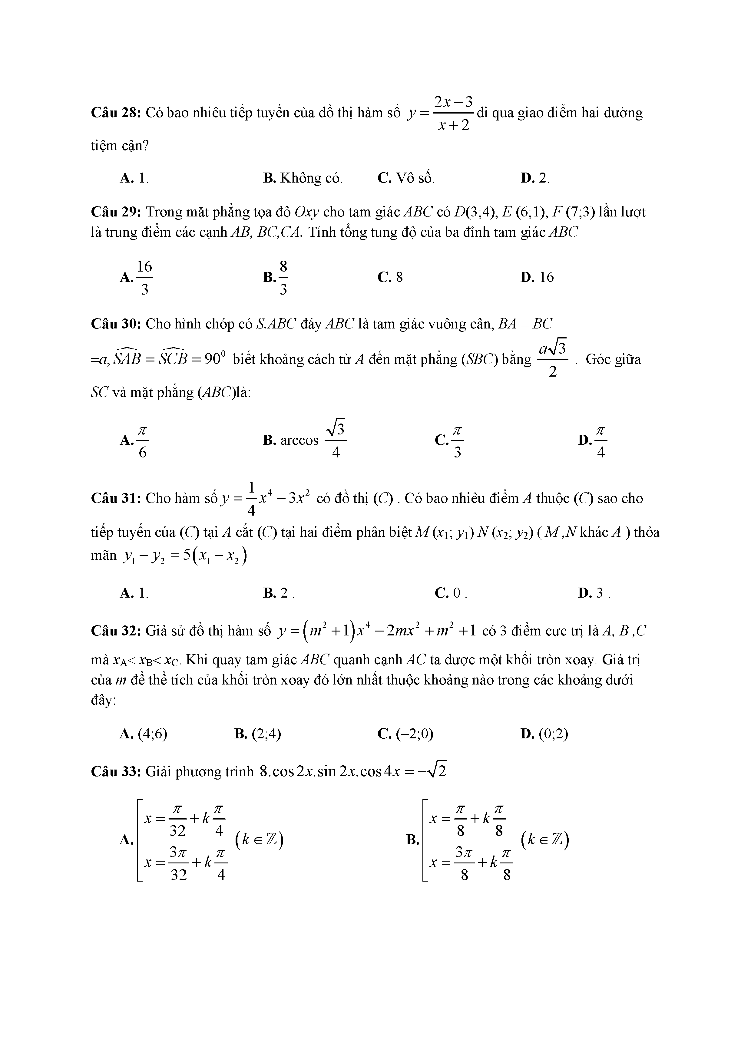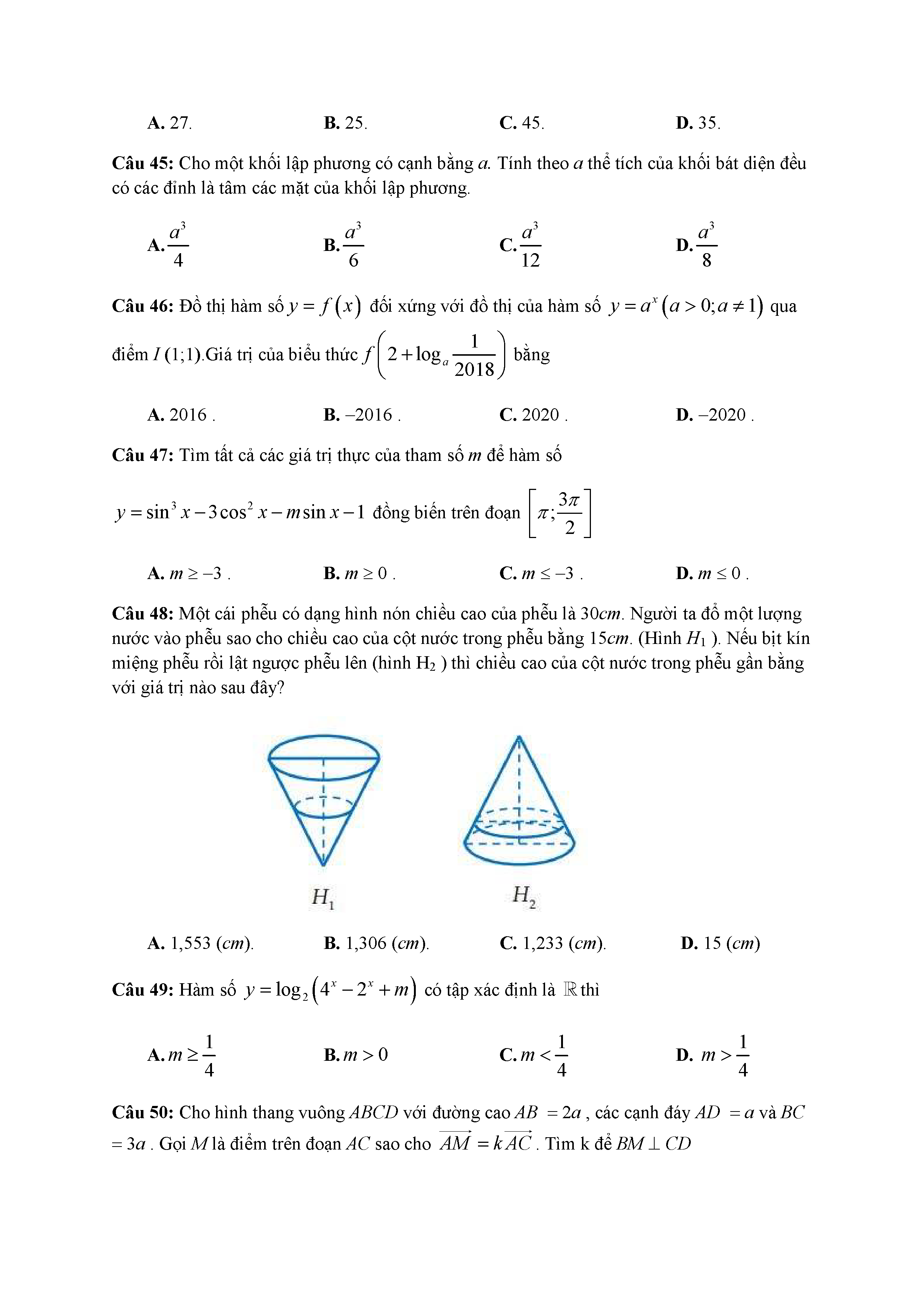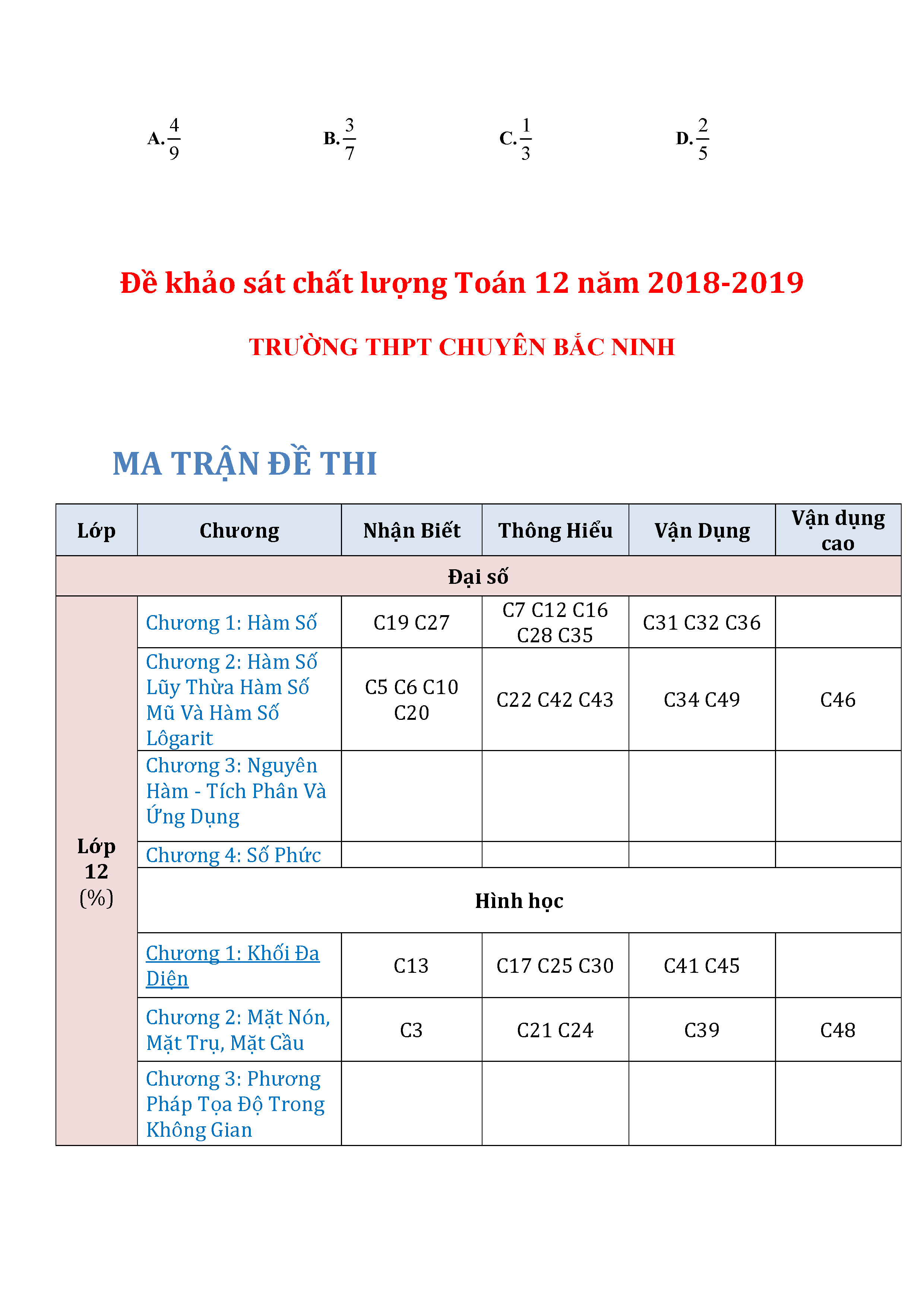 18. Đề thi thử THPT năm 2019 môn Toán trường Chuyên Bắc Ninh - Lần 2