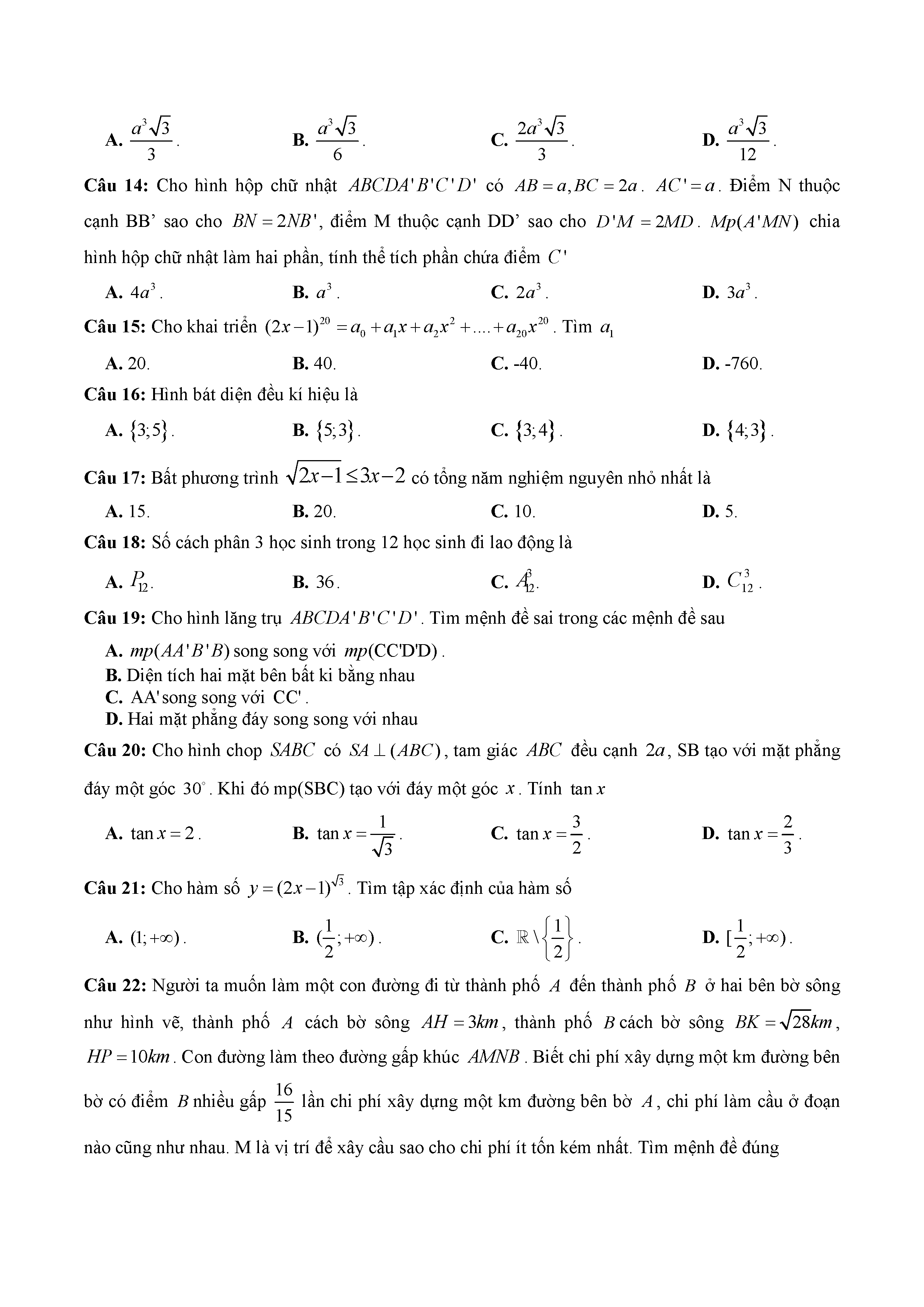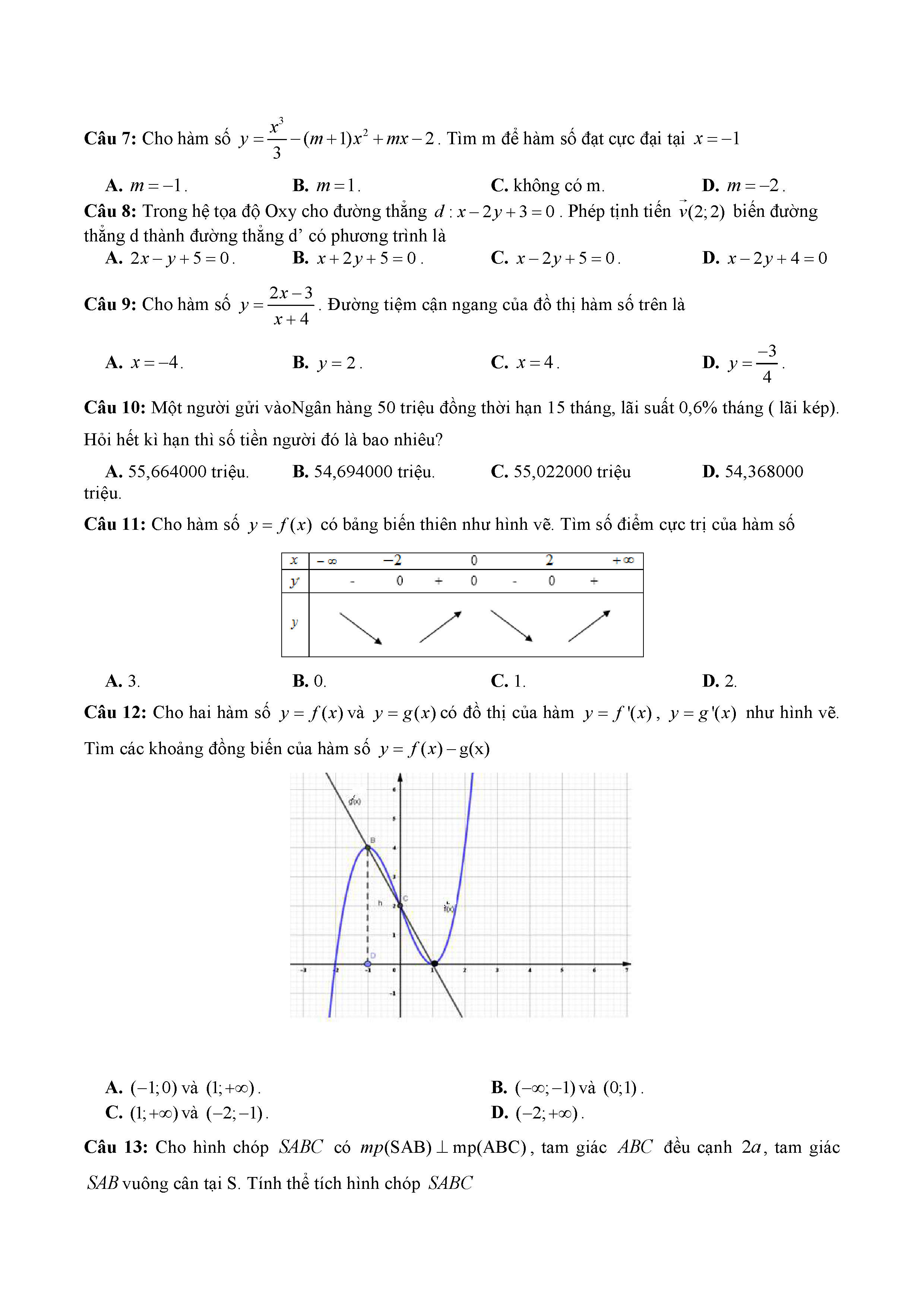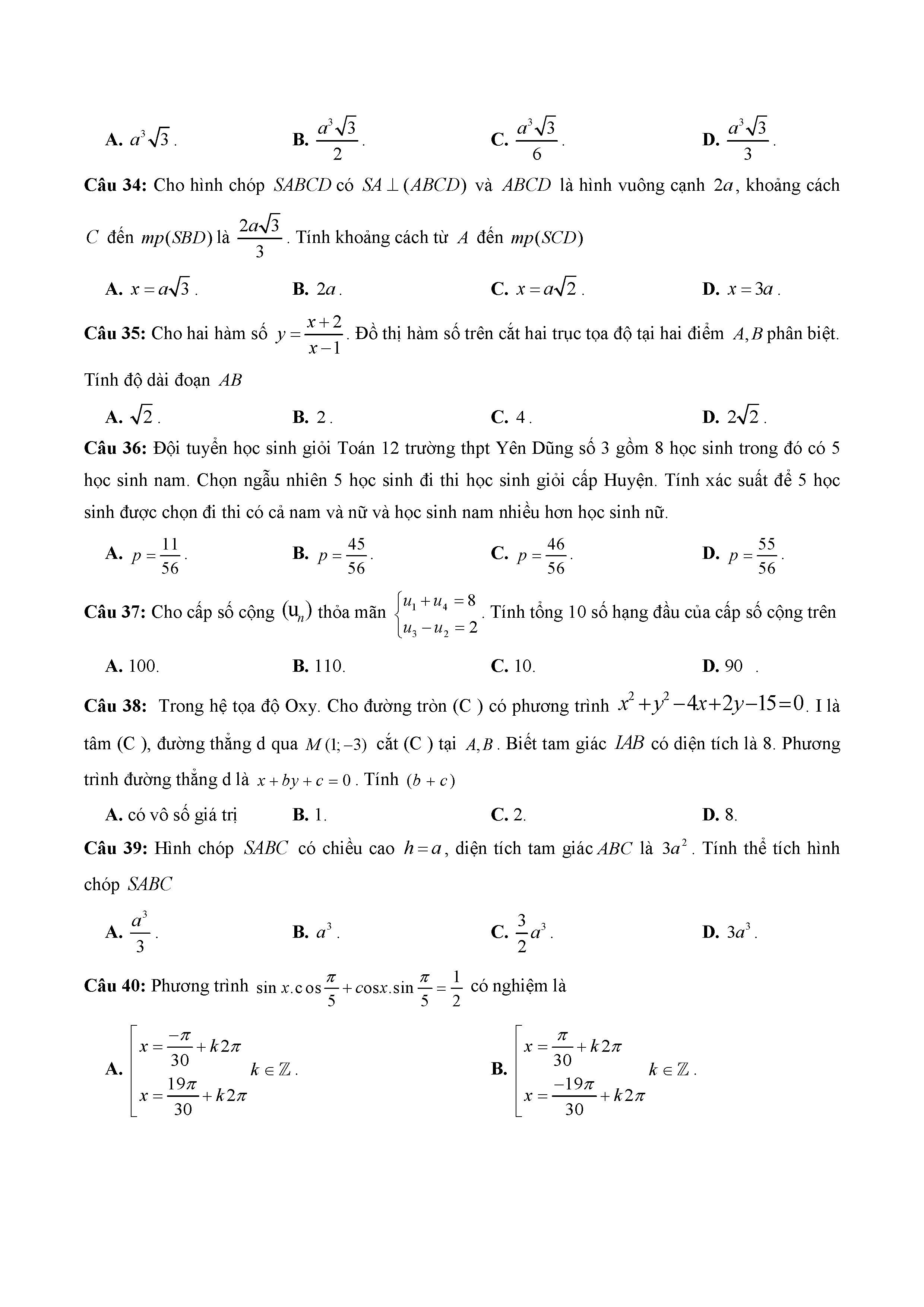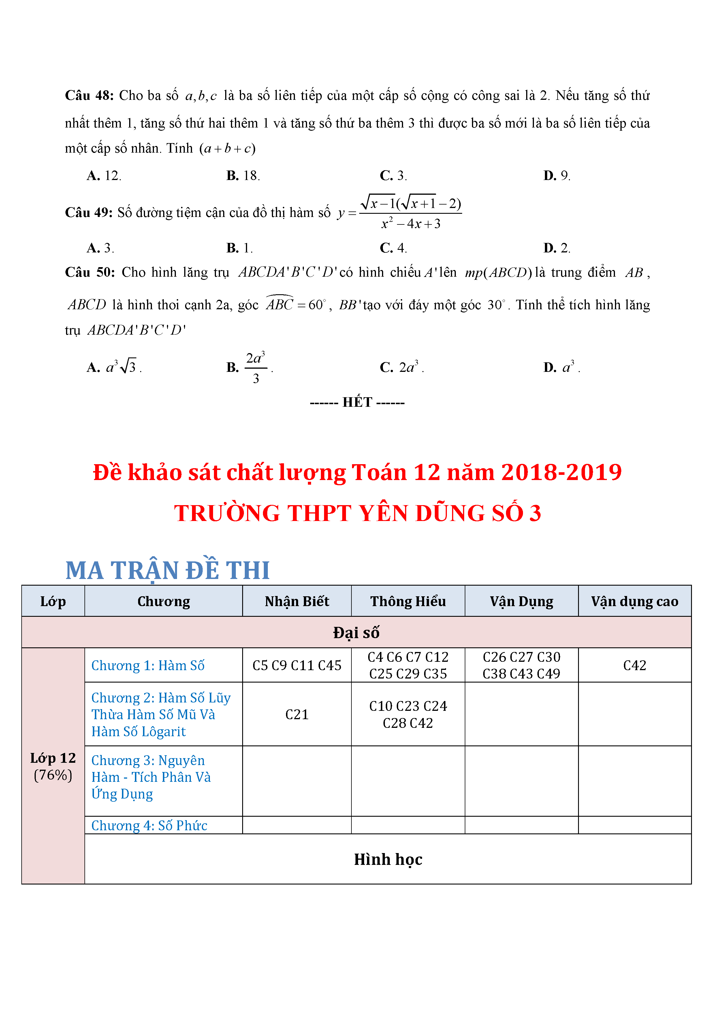20. Đề thi thử THPT năm 2019 môn Toán trường Yên Dũng 3 - Lần 1