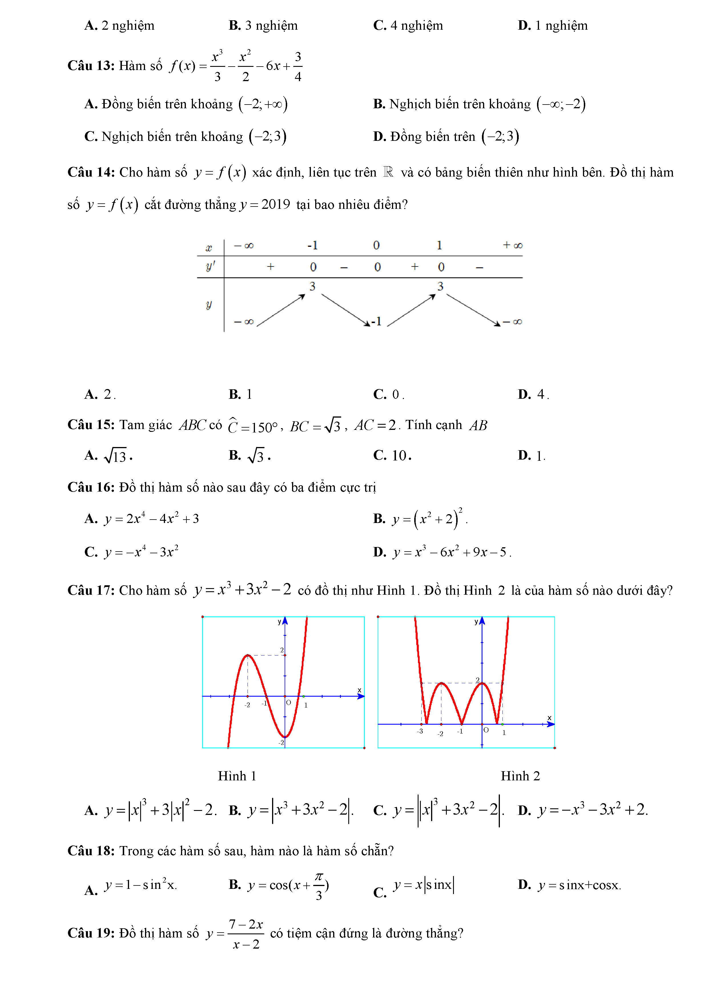 22. Đề thi thử THPT năm 2019 môn Toán trường Vĩnh Yên - Vĩnh Phúc - Lần 1