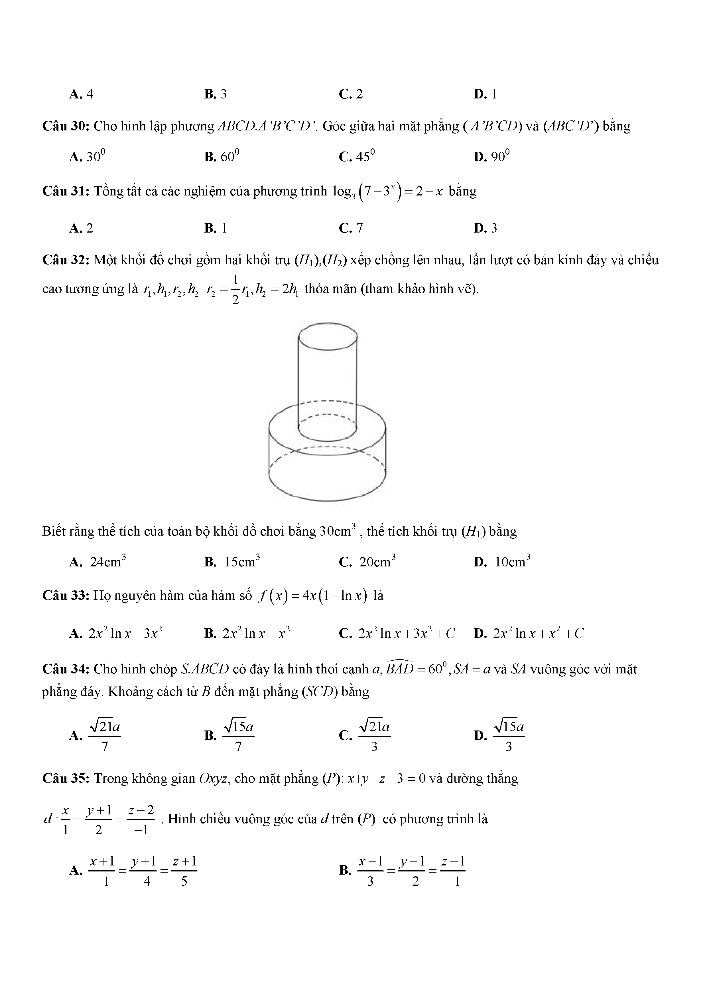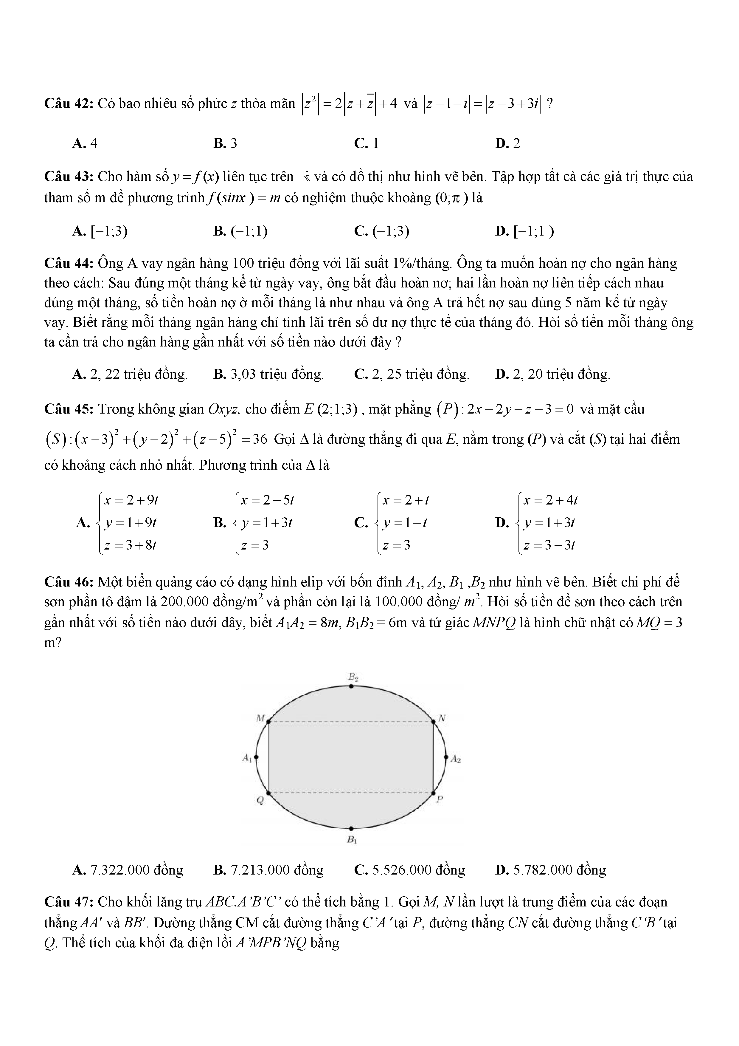 26. Đề minh hoạ THPT Quốc gia năm 2019 môn Toán
