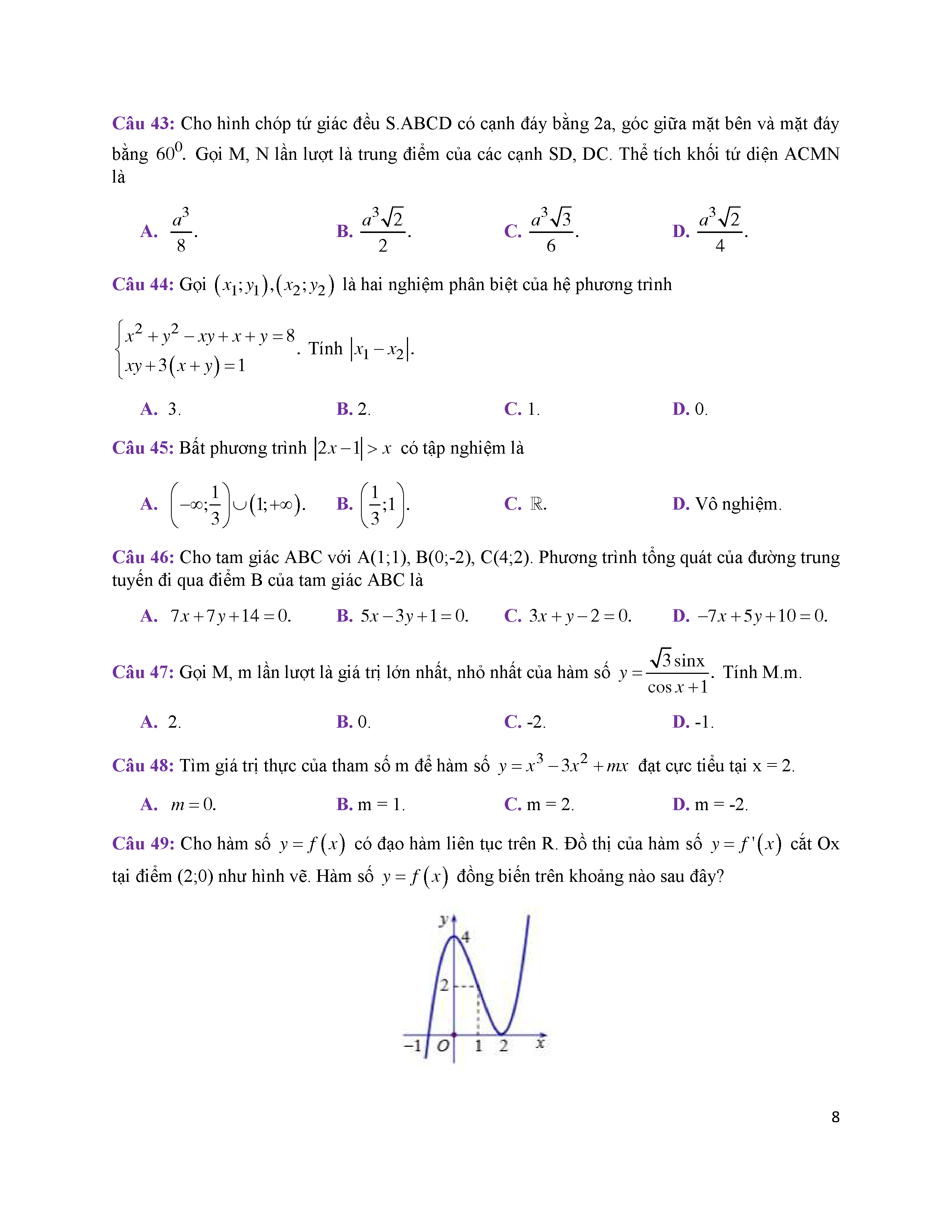 31. Đề thi thử THPT năm 2019 môn Toán trường Bình Minh – Ninh Bình - Lần 1