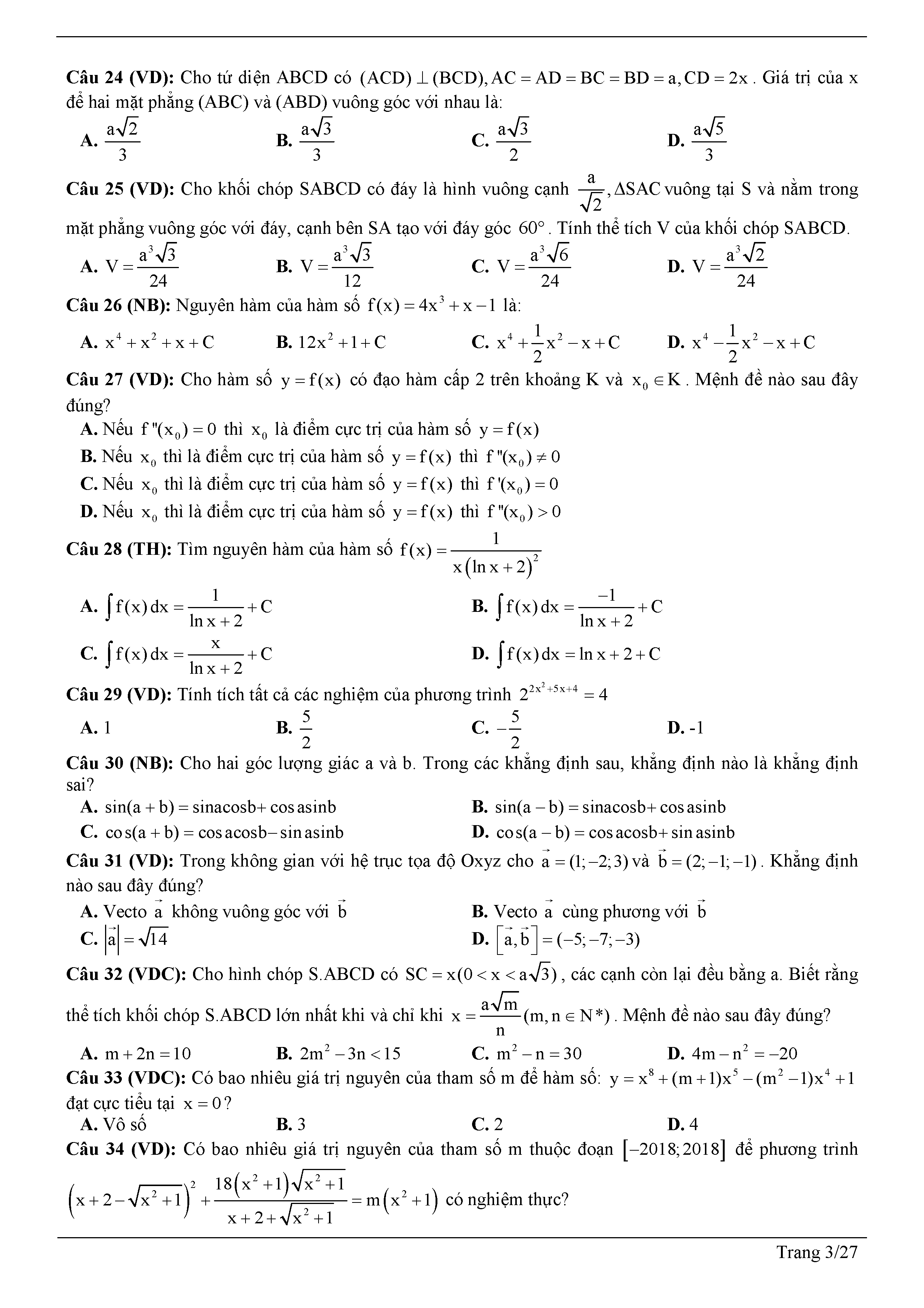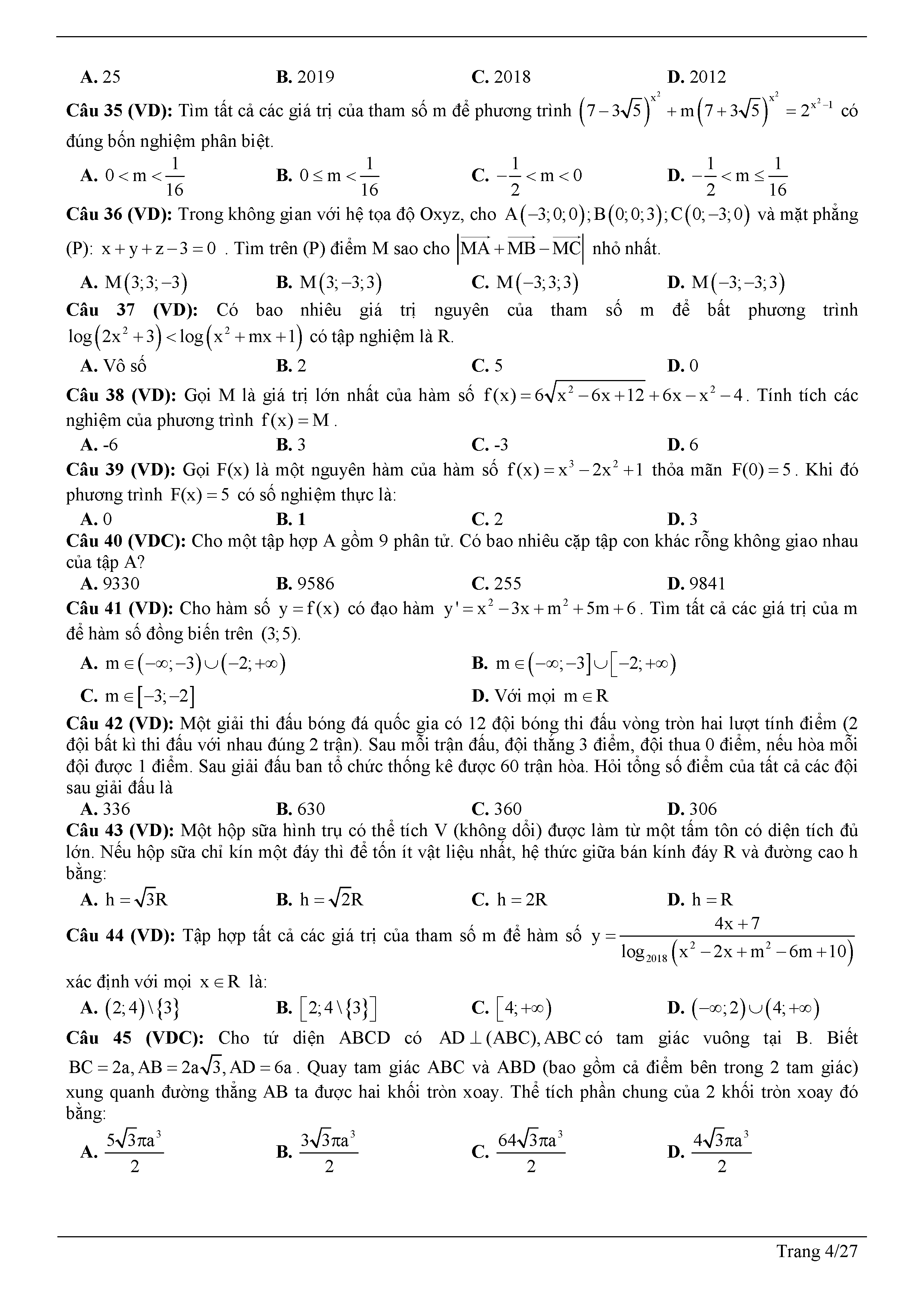 40. Đề thi thử THPT năm 2019 môn Toán trường chuyên Bắc Ninh - Lần 3