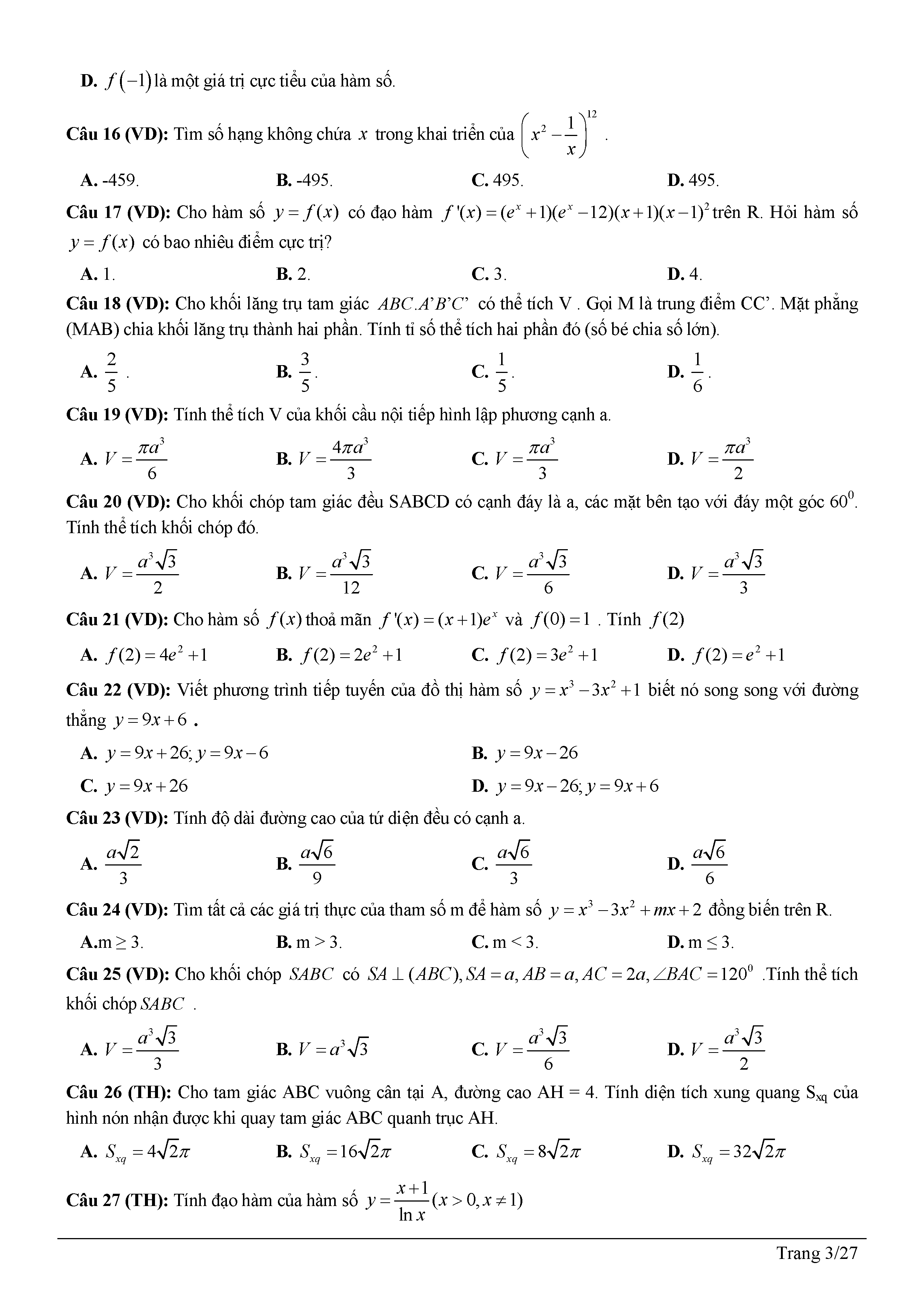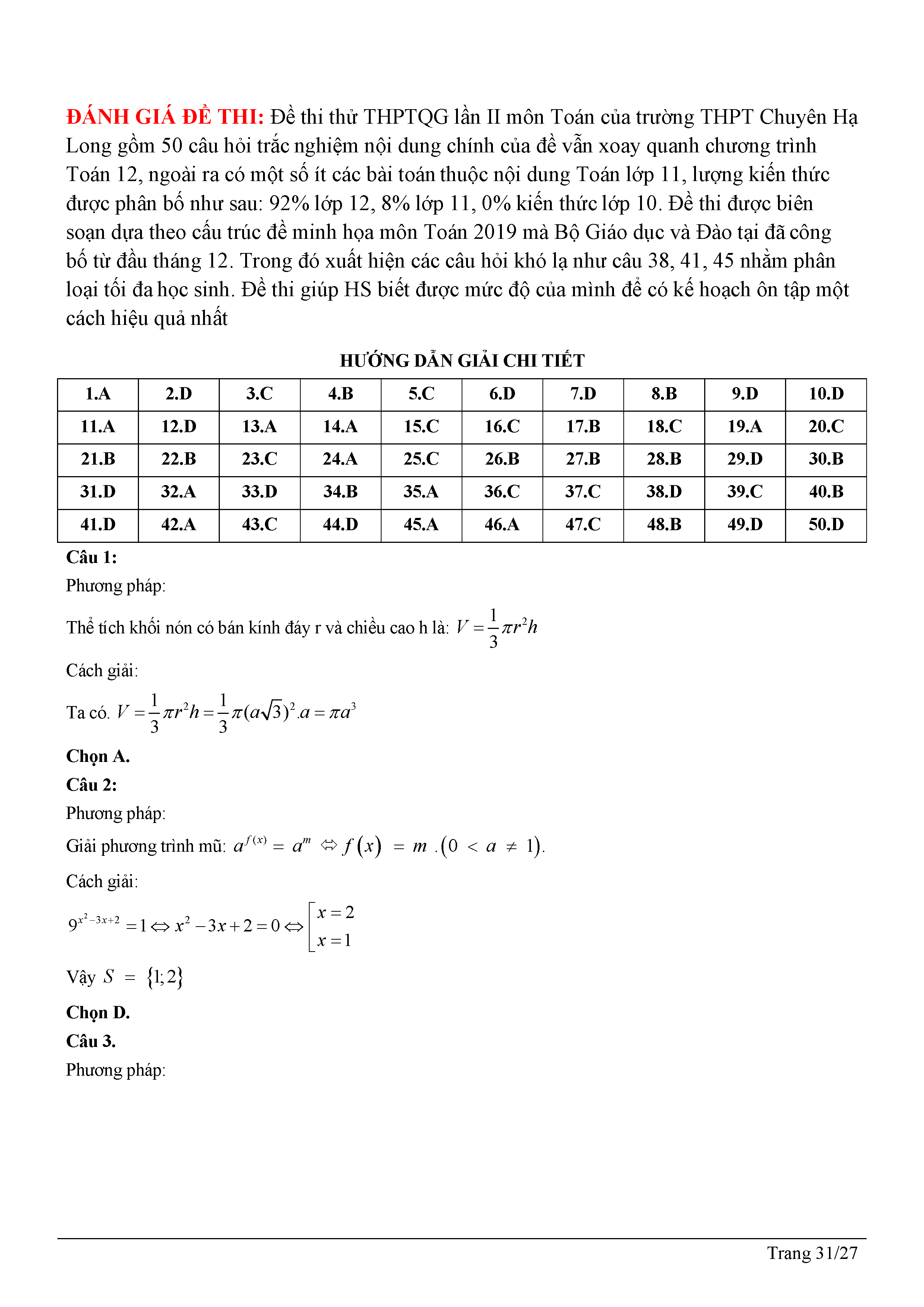 41. Đề thi thử THPT năm 2019 môn Toán trường chuyên Hạ Long – Lần 1