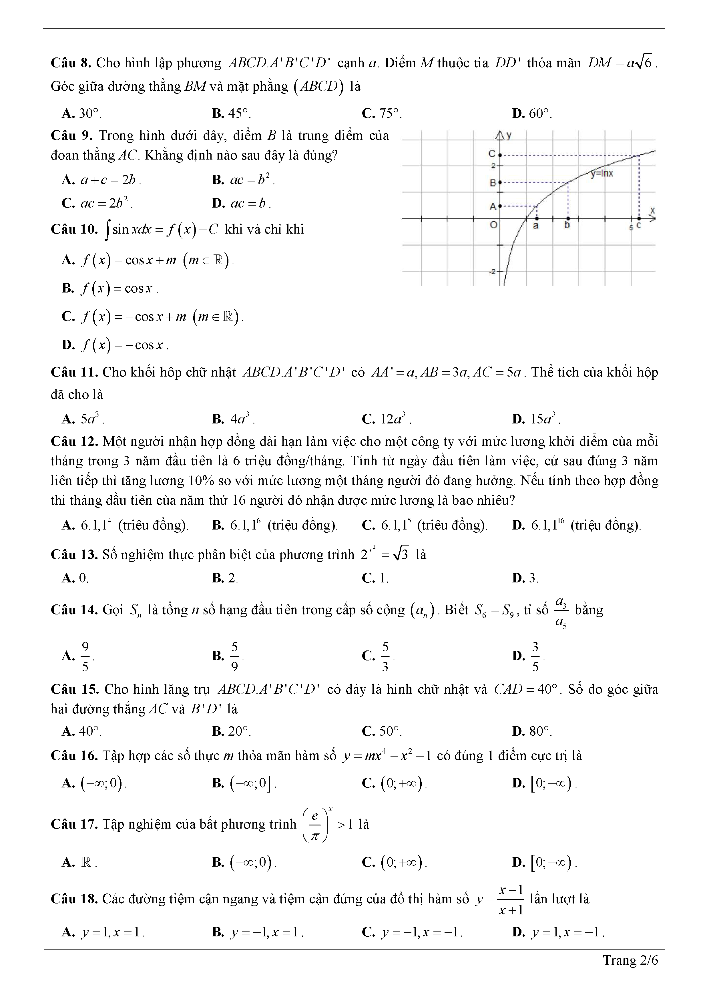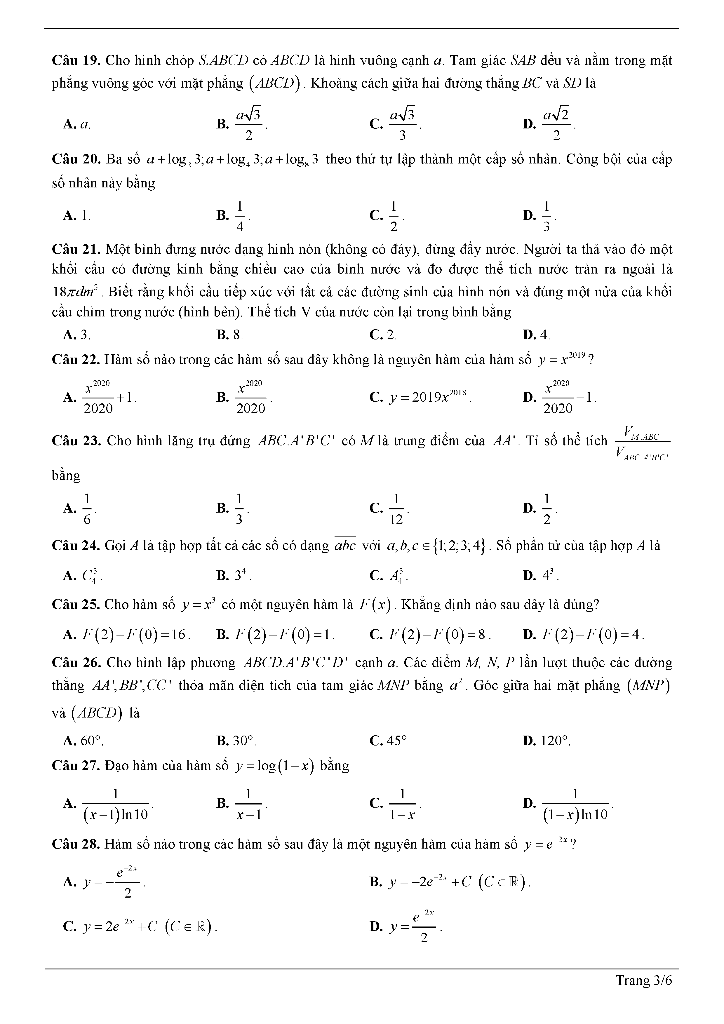 66. Đề thi thử THPT năm 2019 môn Toán trường Chuyên ĐH SPHN - Hà Nội - Lần 1