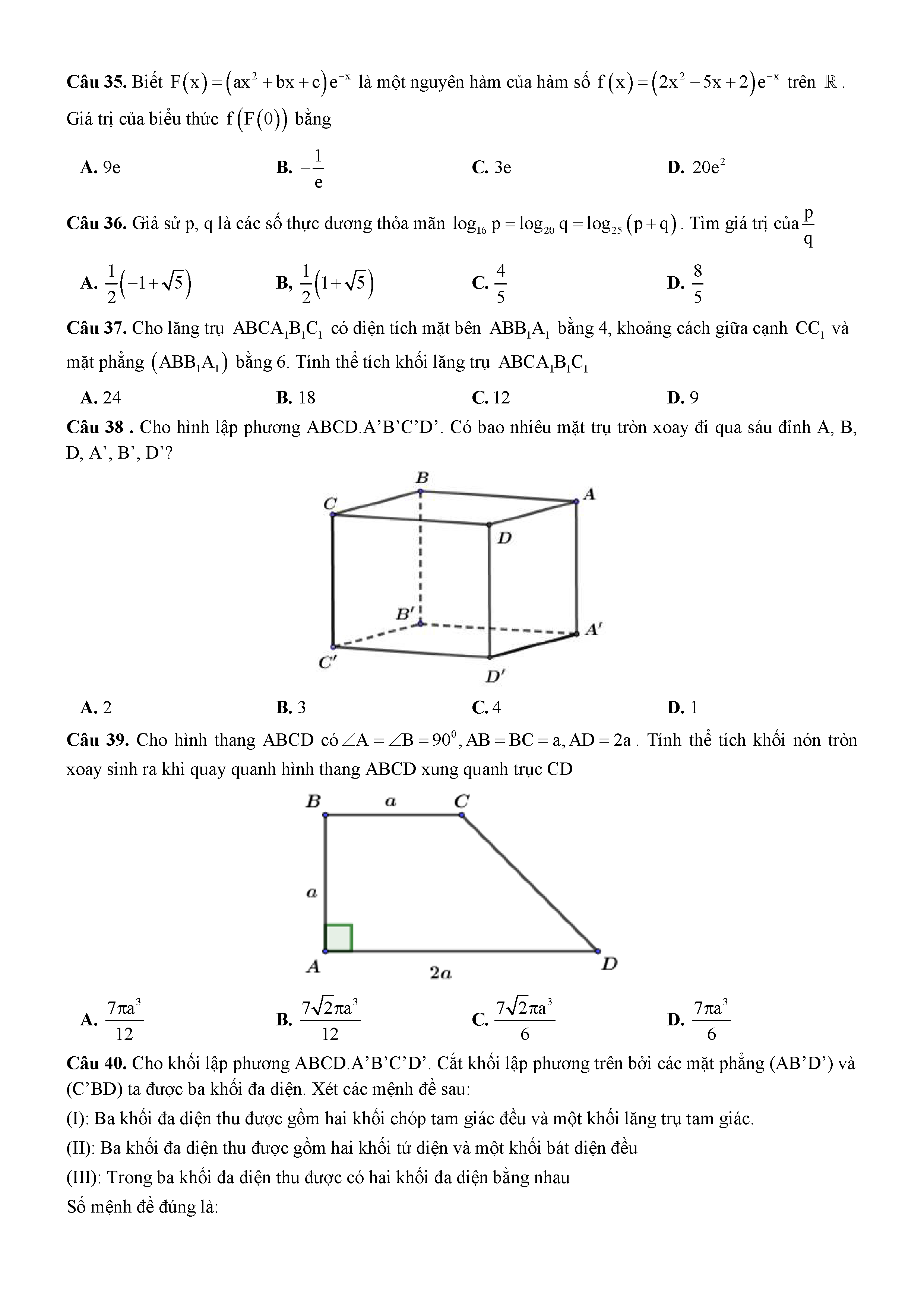 69. Đề thi thử THPT QG 2019 - Môn Toán - Chuyên Lương Văn Tụy - Ninh Bình – Lần 2